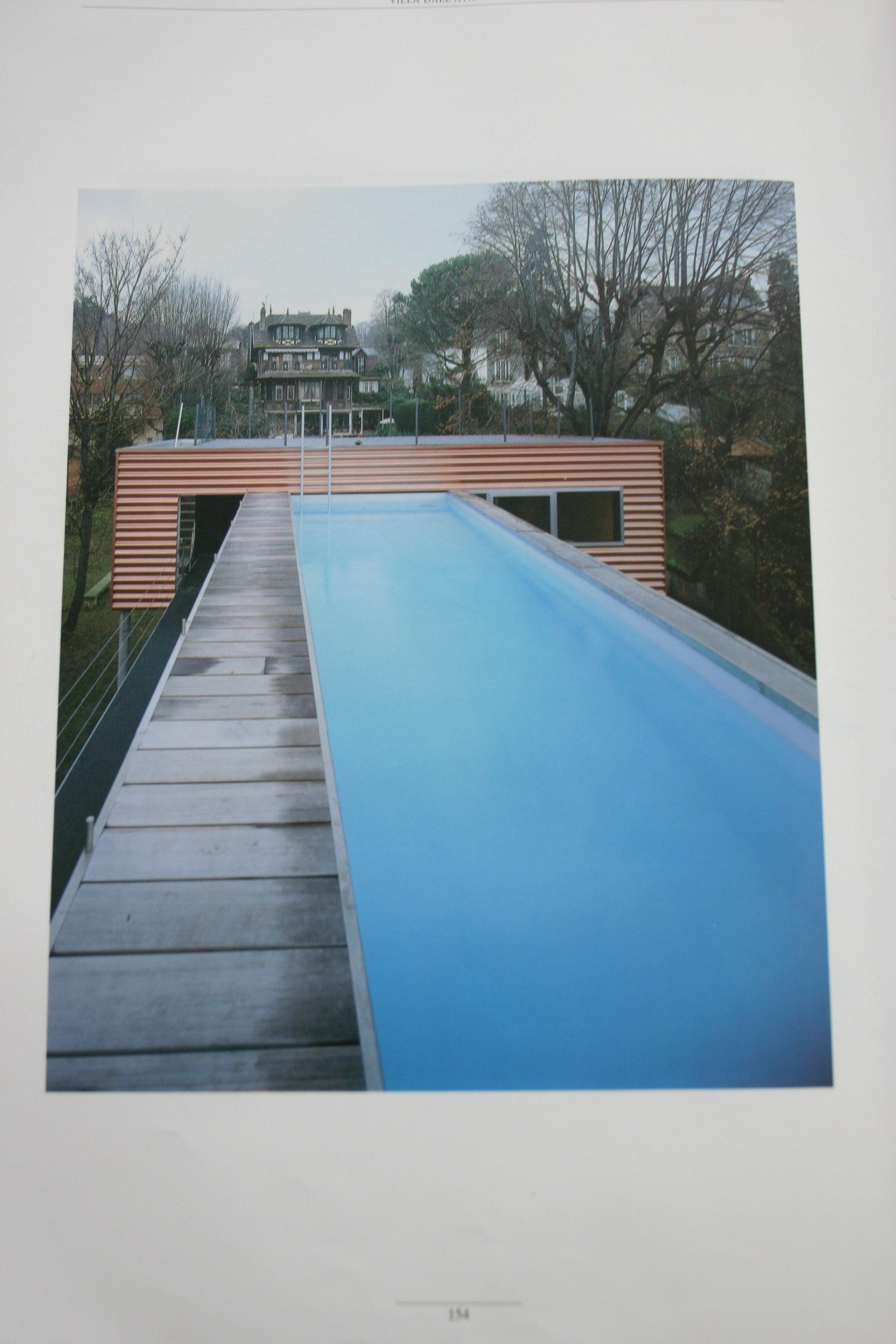 J'axe l'affiche sur la légèreté, l'inversion des masses, la transparence et l'aspect central de l'escalier, le tout dans un tracé épuré et moderne qui laisse visible les différents matériaux utilisés et la présence de la piscine.