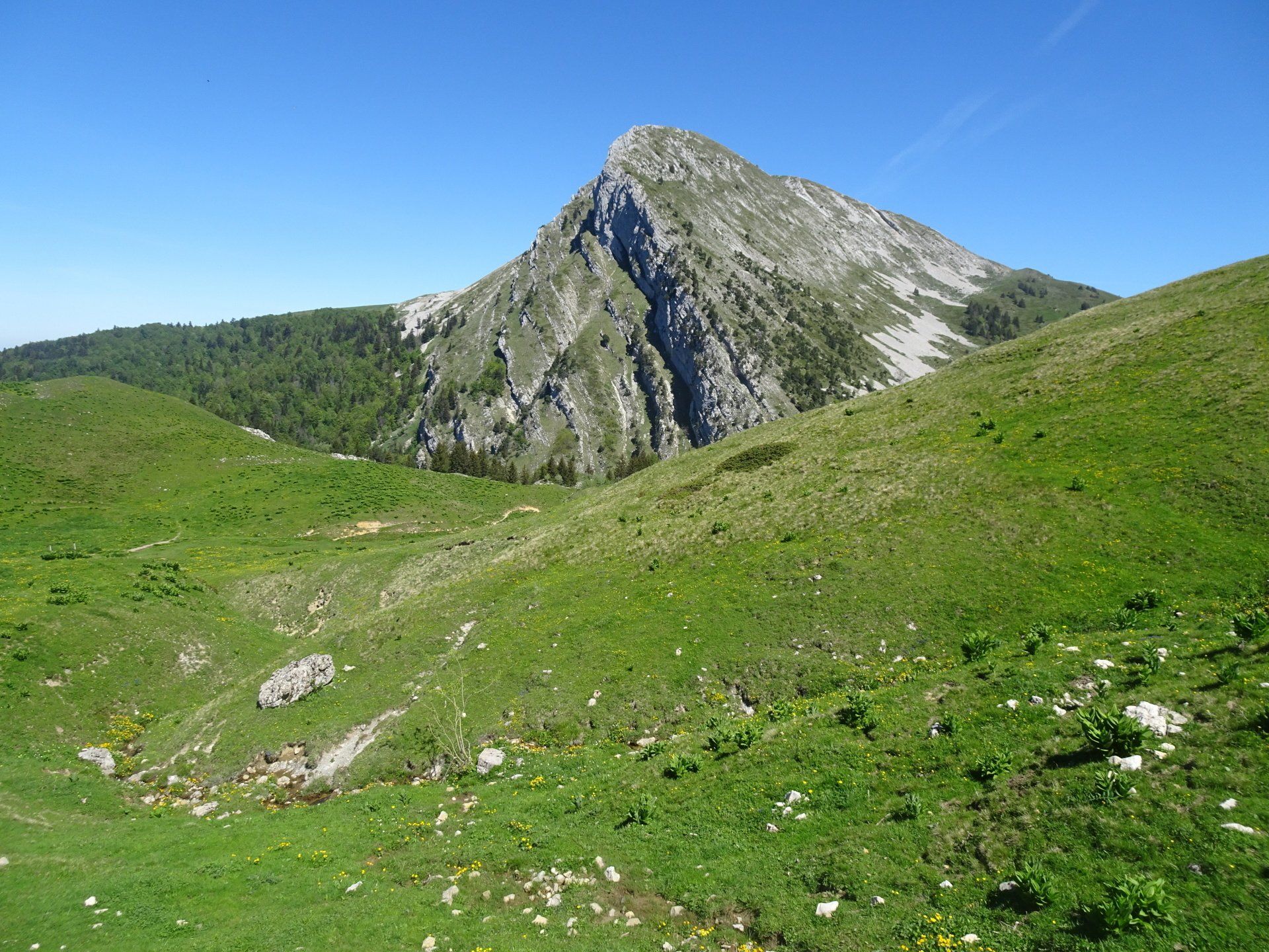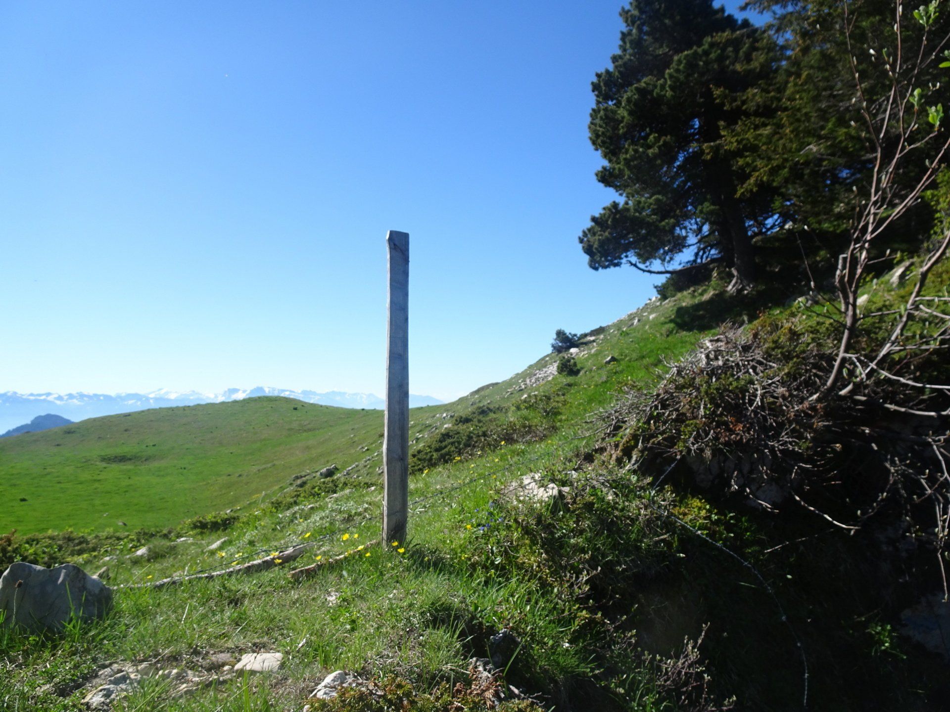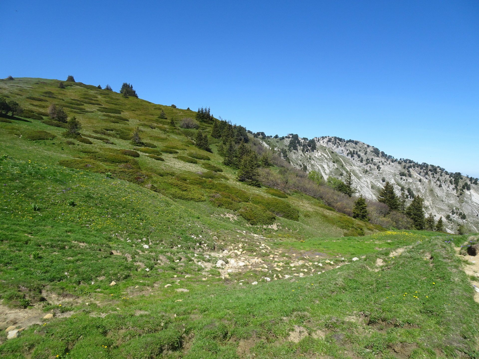 Après ce premier palier bien agréable, la pente est plus forte, le minéral plus présent en direction de la cheminée du Lorzier.