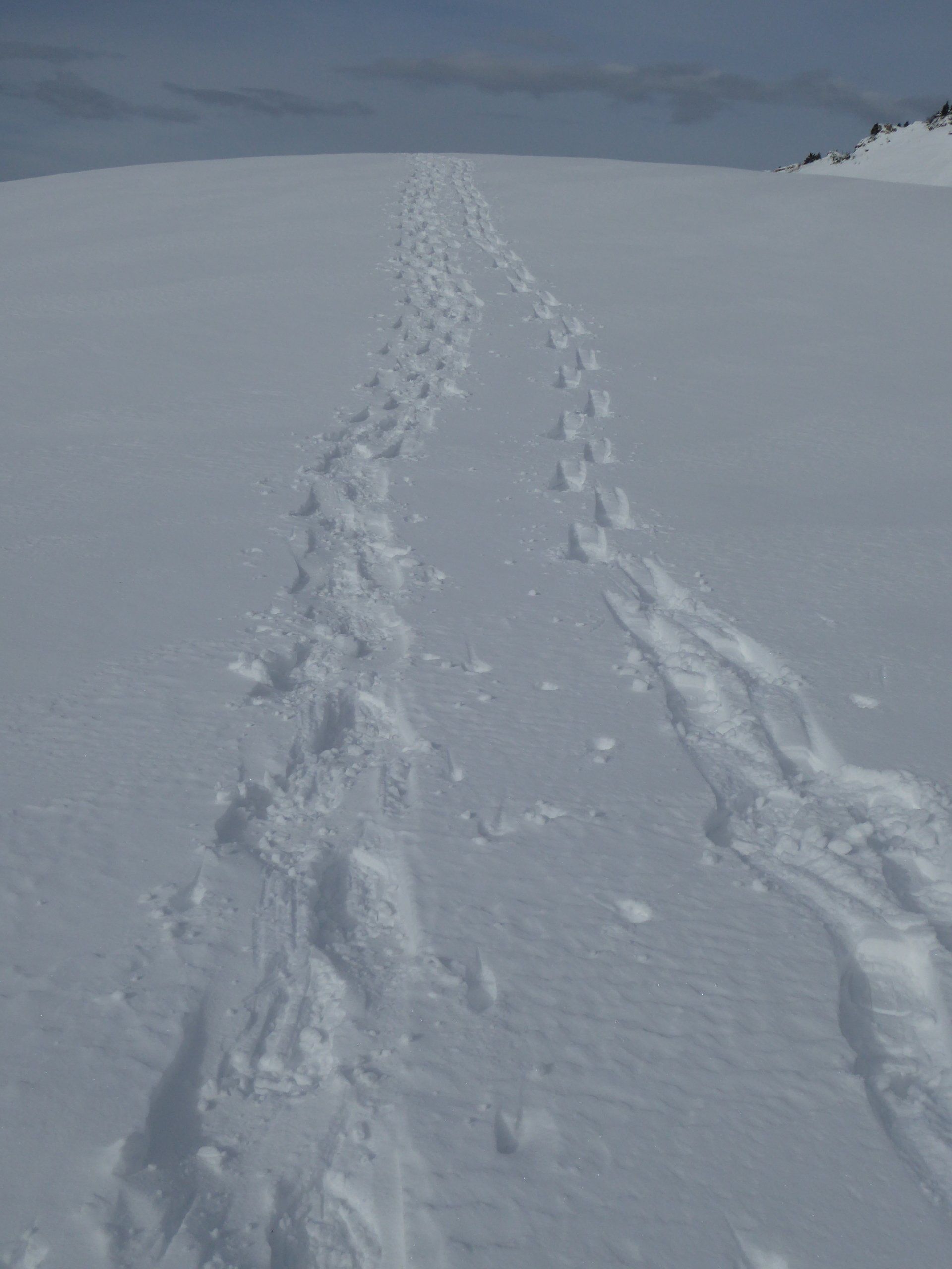Nous profitons du relief et de la poudreuse pour dissimuler à la volée l'un de nos ARVAs.