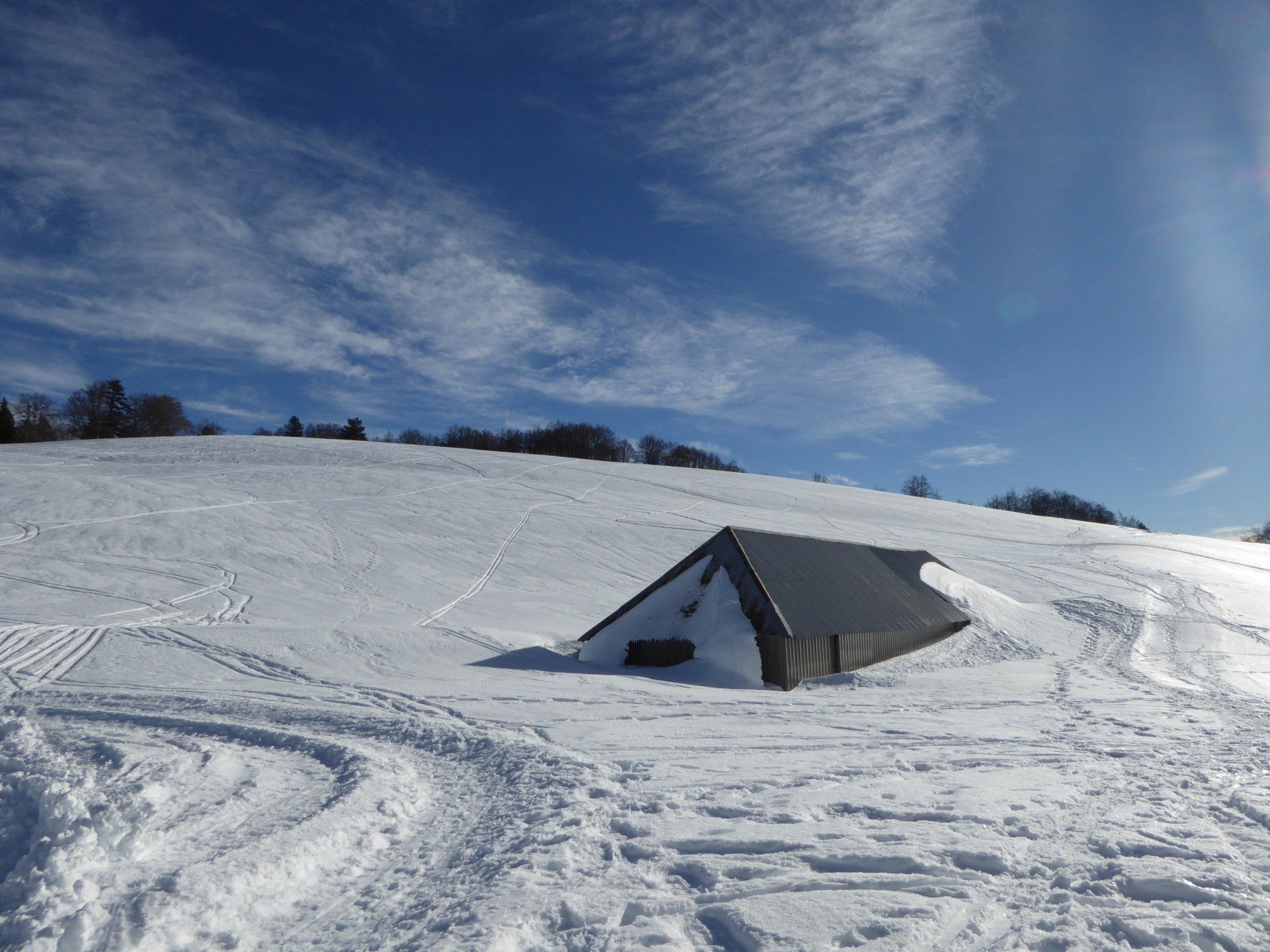 Nous profitons du relief et de la poudreuse pour dissimuler à la volée l'un de nos ARVAs.