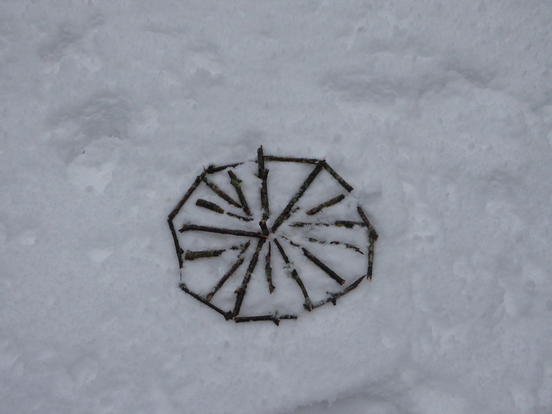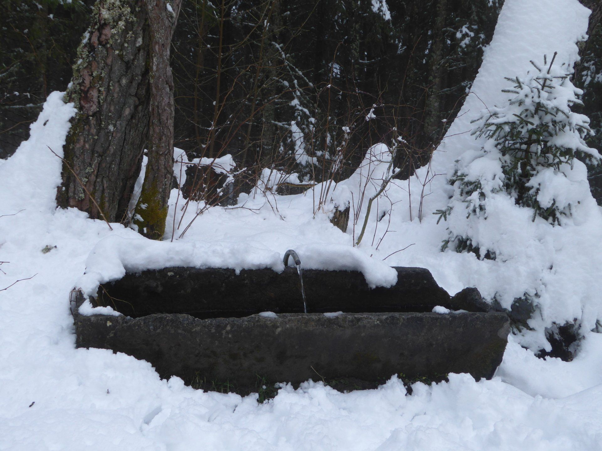 De jolies rencontres : un abreuvoir, un chien sous un manteau, un joli dessin de brindilles.