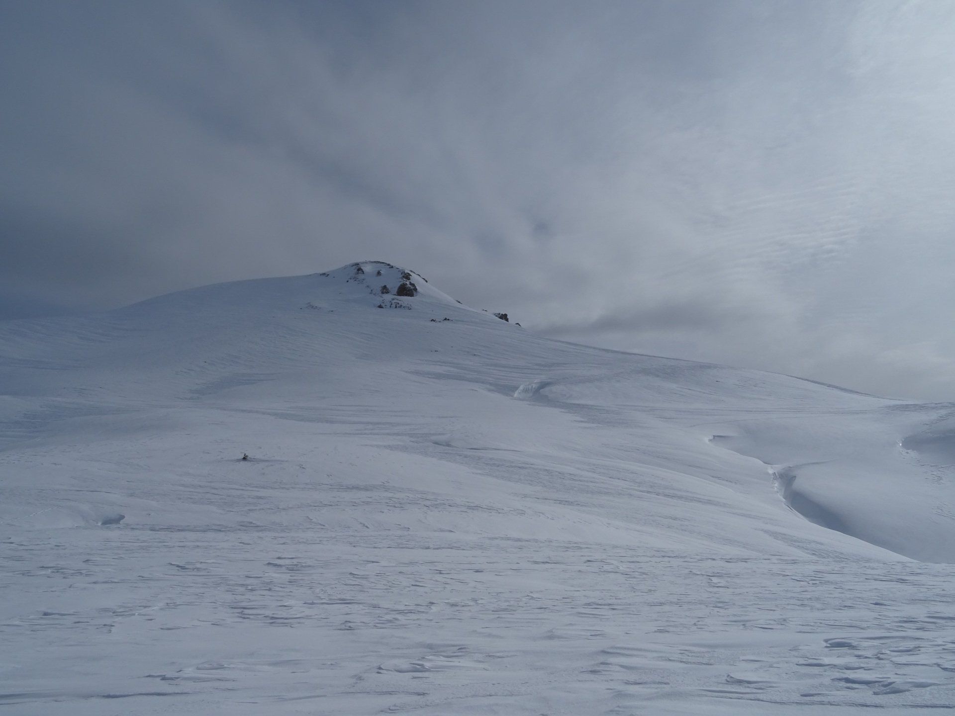 Nous campons avec Lulu près d'un téléphérique technique fermé, entourés par une bonne épaisseur de neige. Au réveil, la météo n'est pas formidable mais pas de vent, ni neige, ni pluie.
