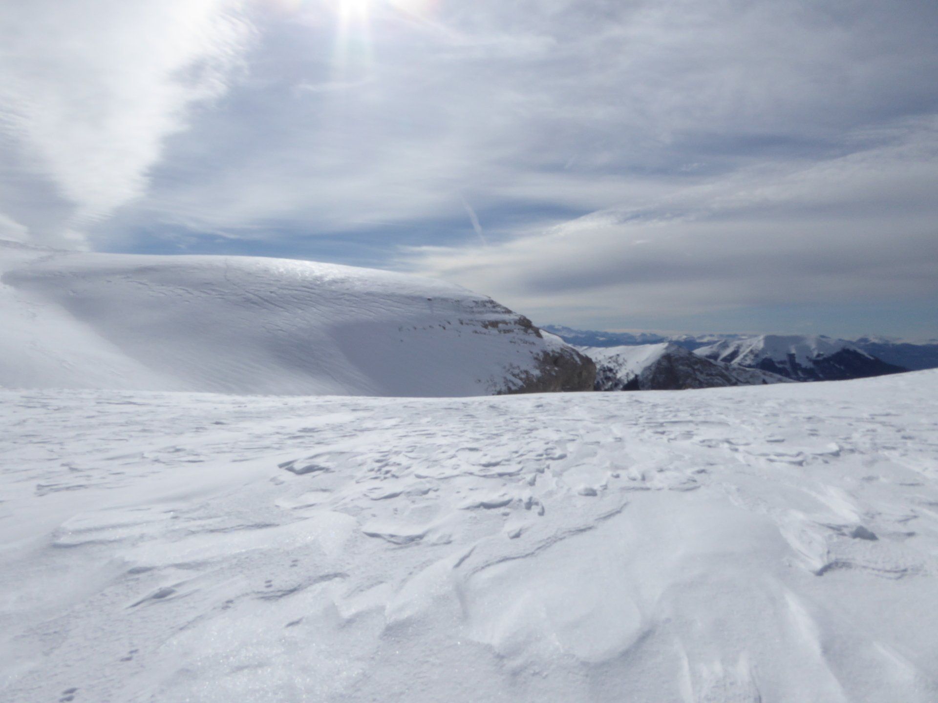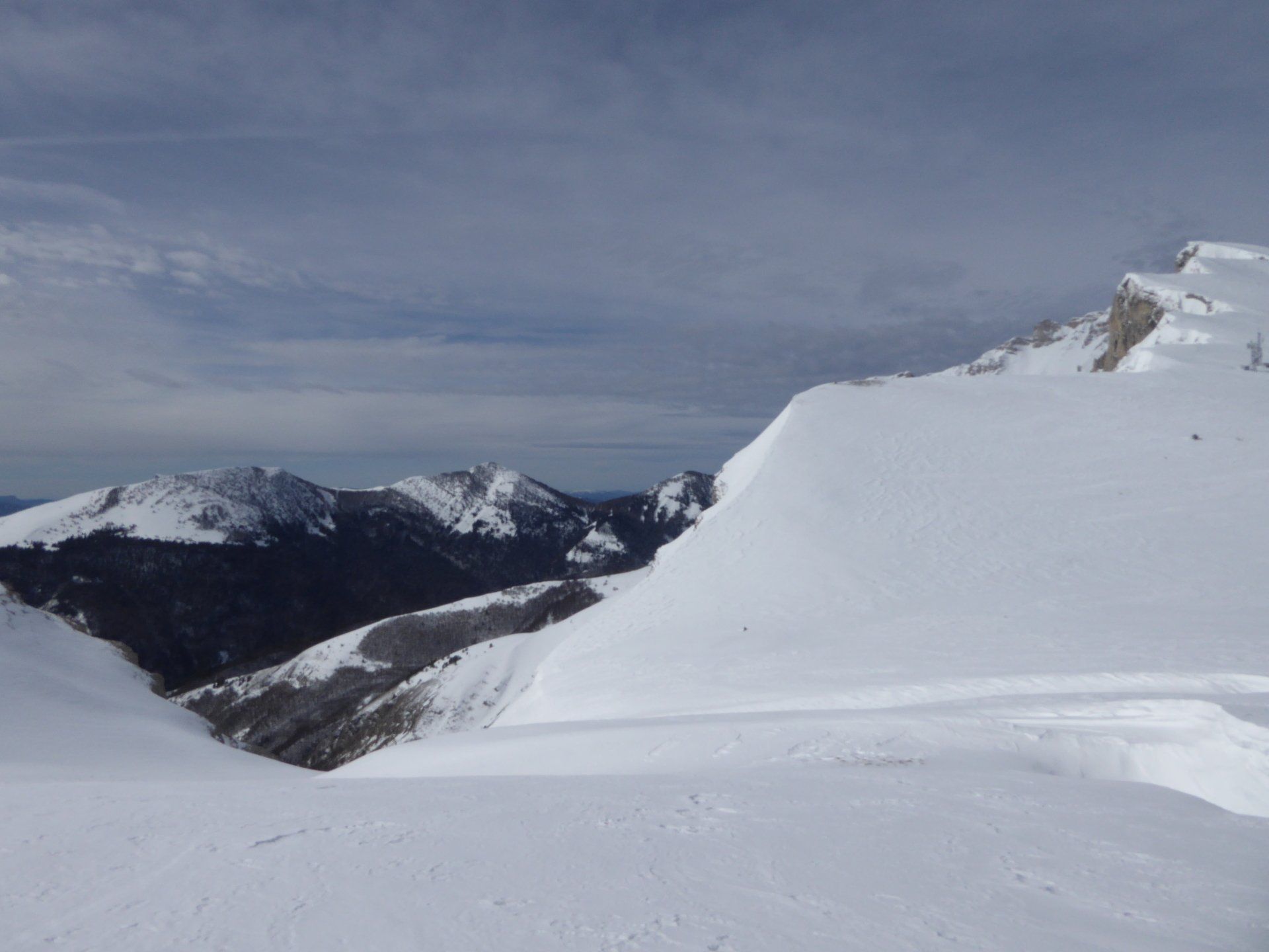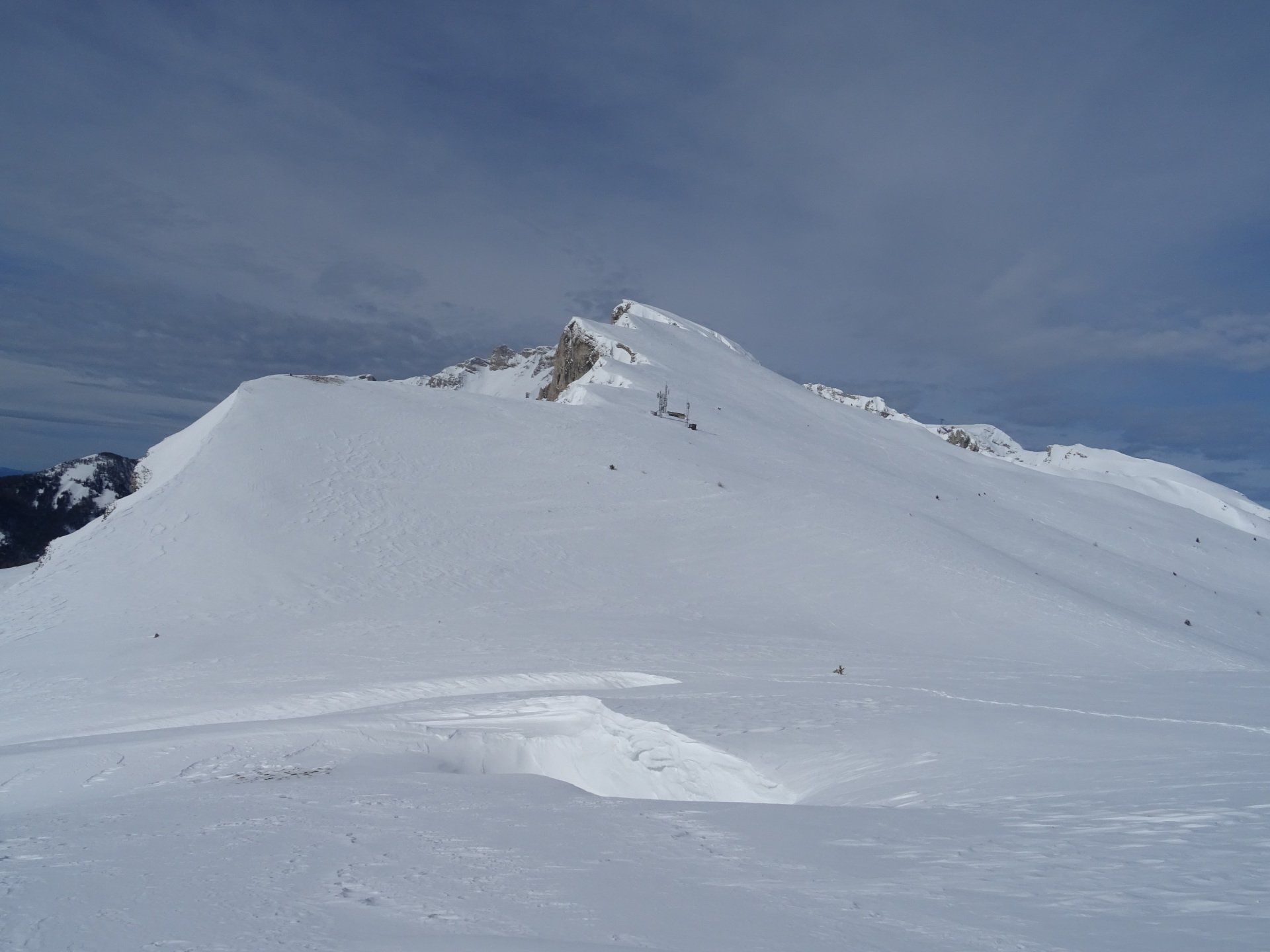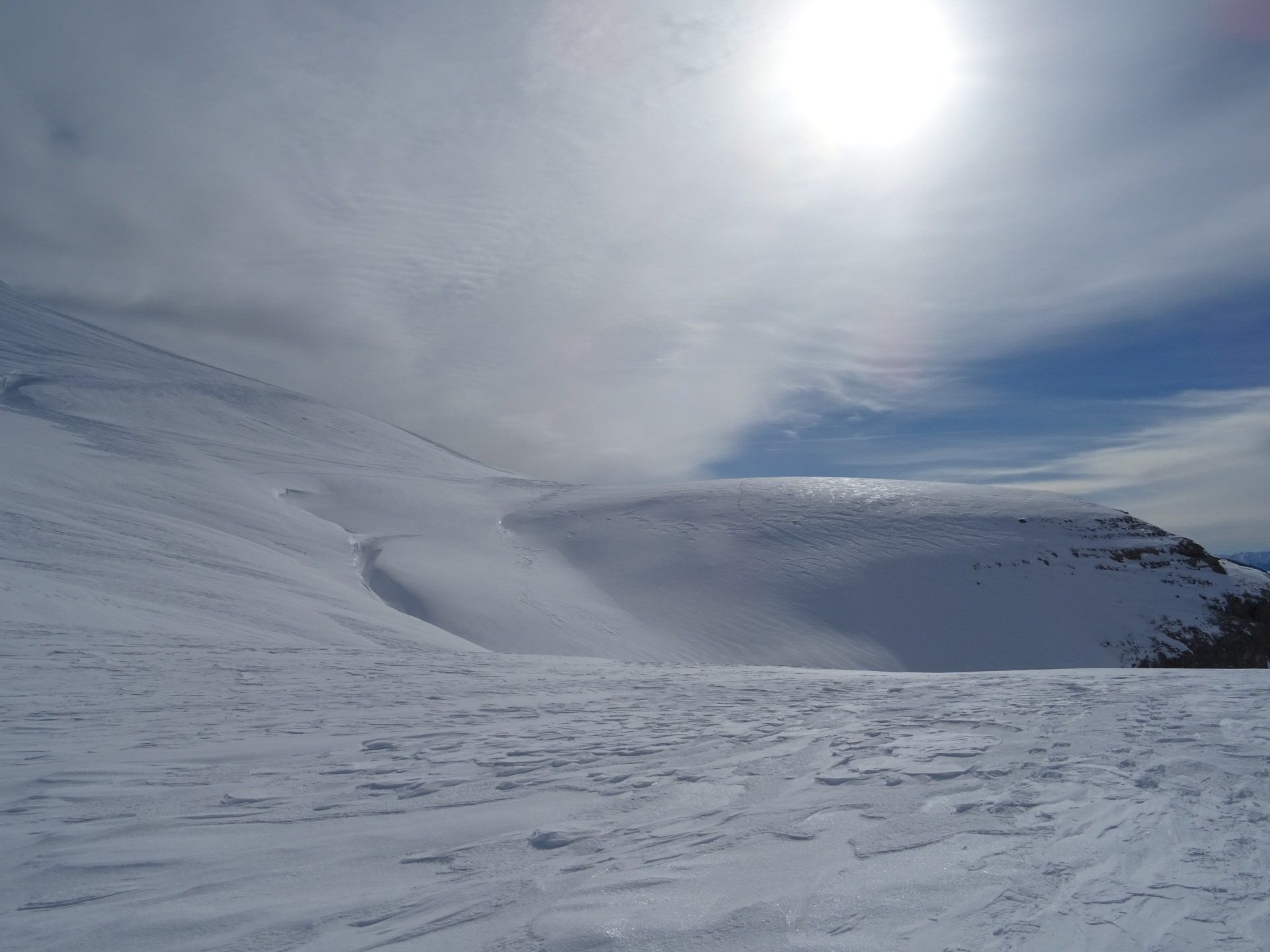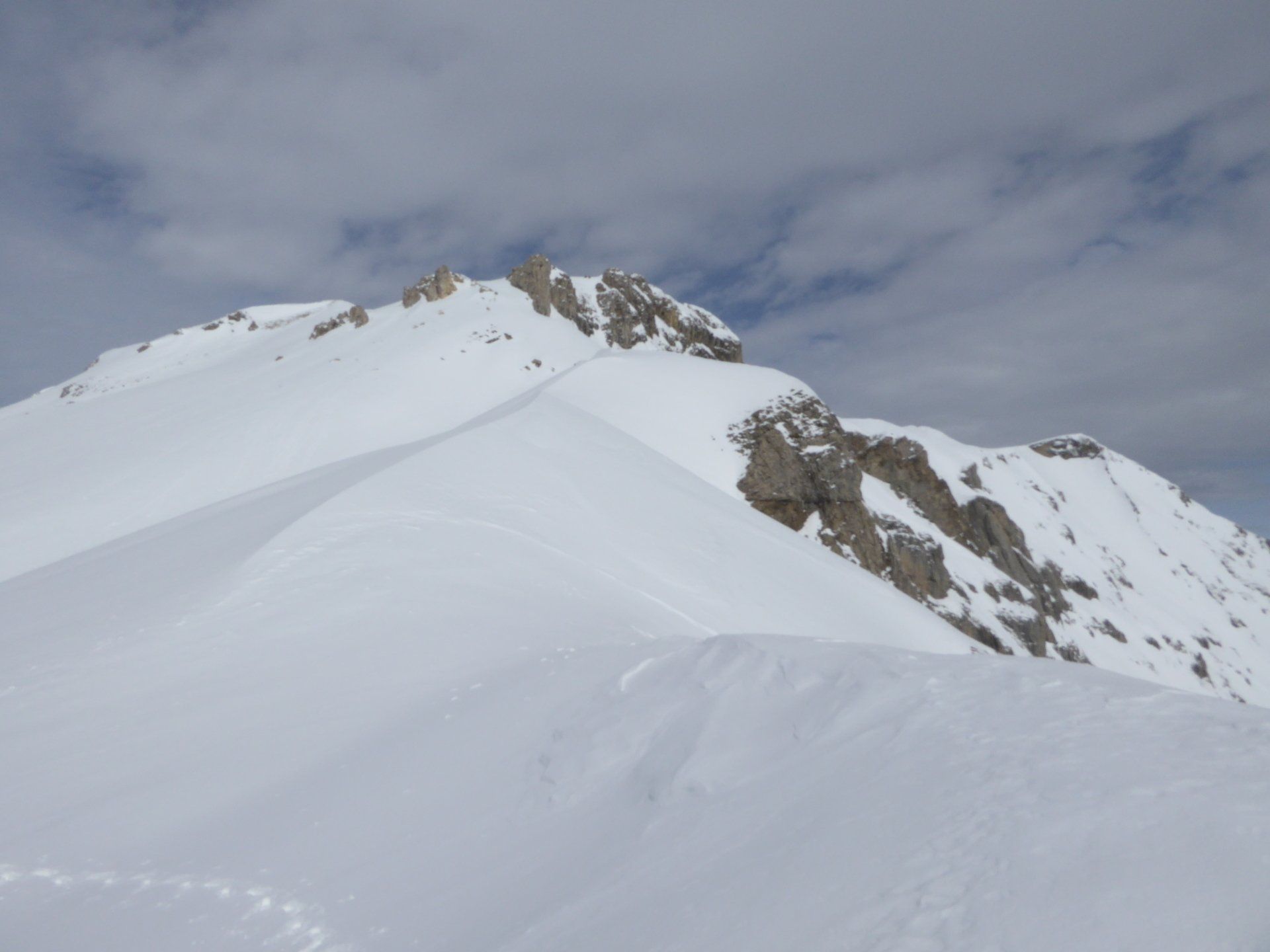 Je laisse mon co-randonneur faire seul les derniers 10 mètres qui me semblent trop incertains sans déchausser les raquettes.