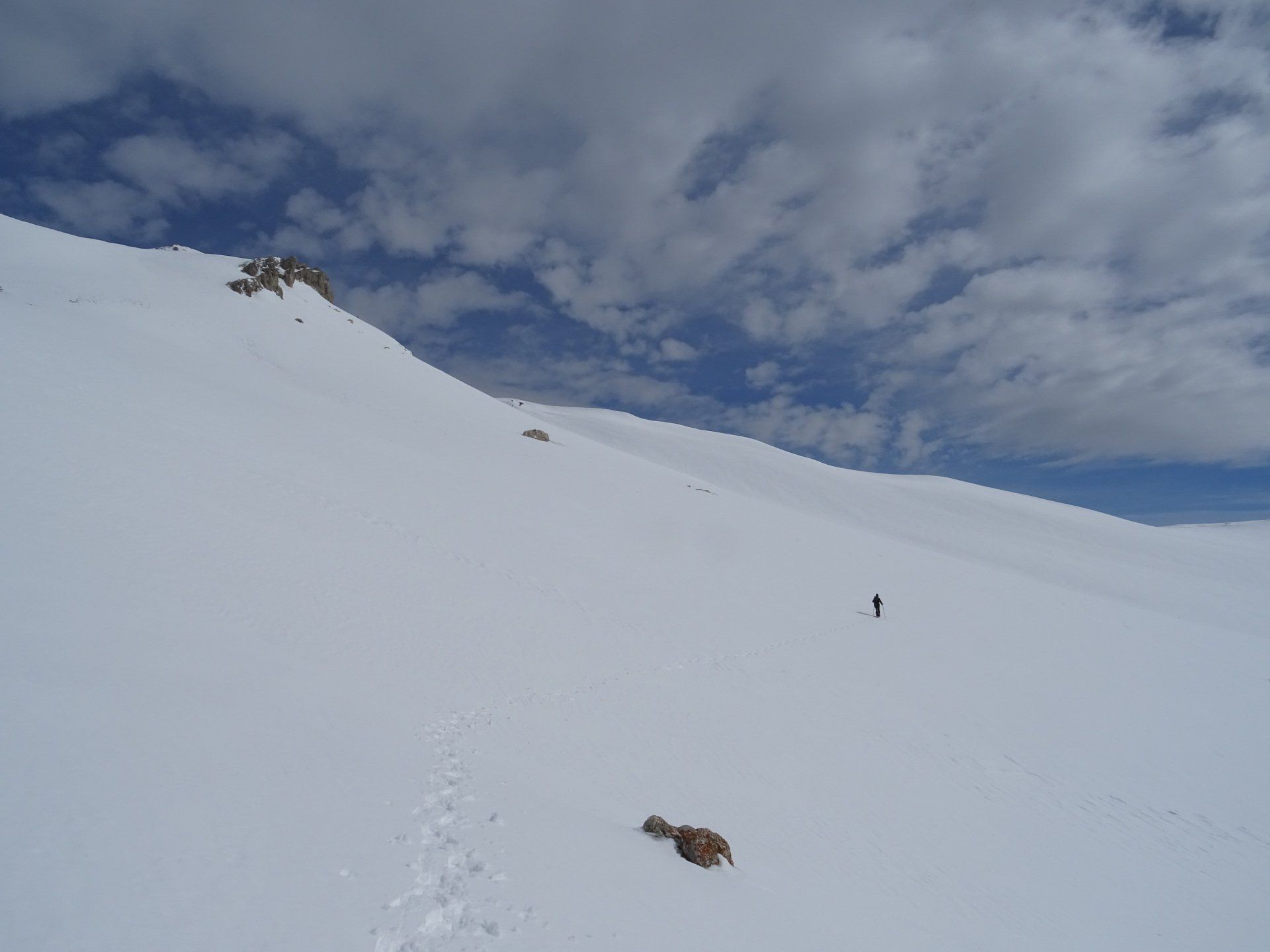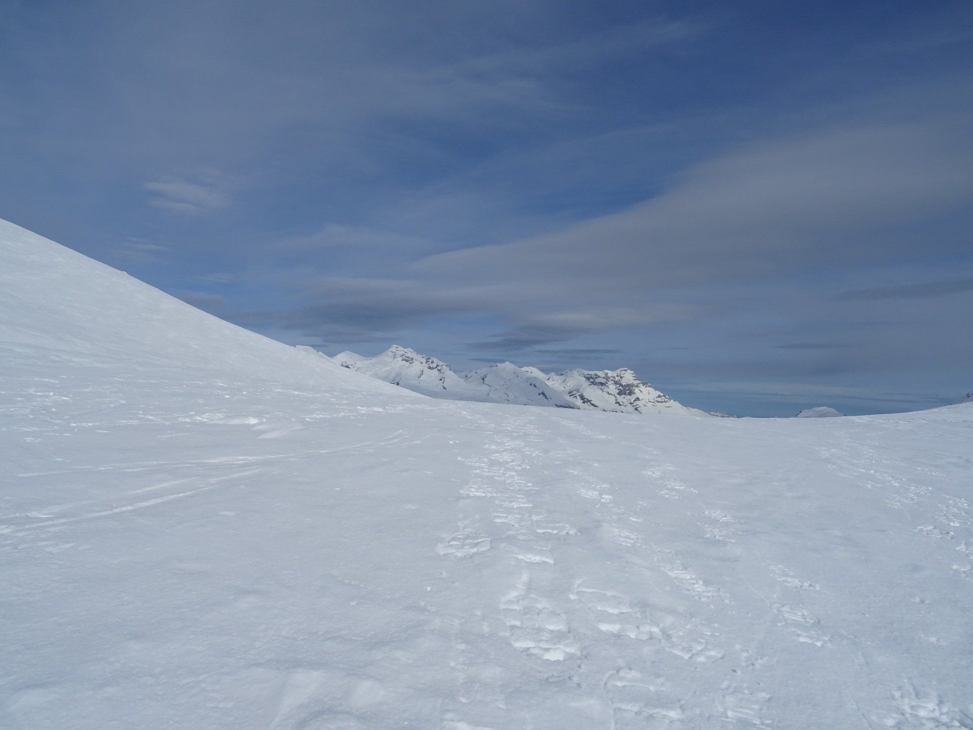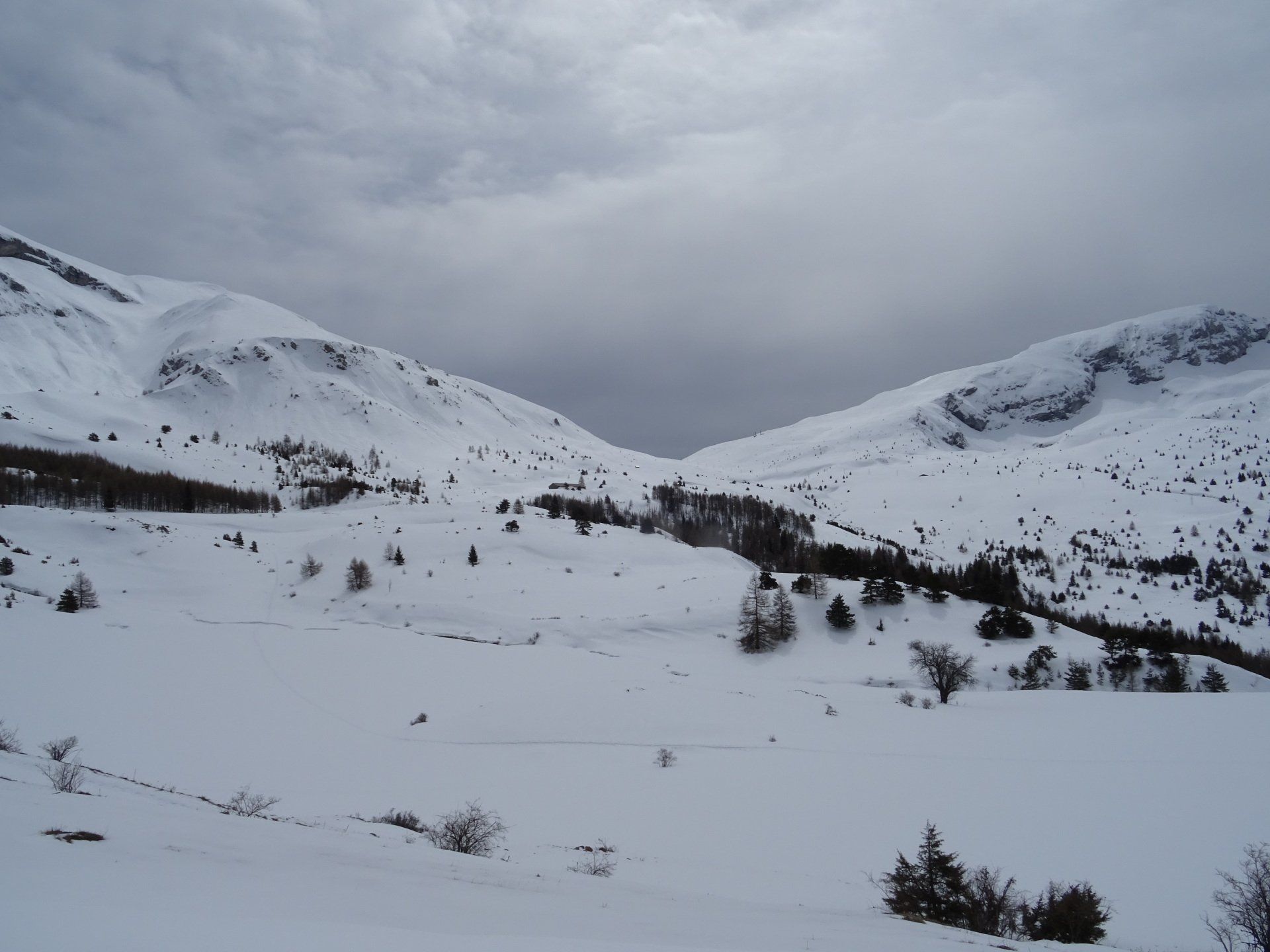 Peu de traces mais un vallon à suivre avec un col rapidement en ligne de mire même s'il est loin.