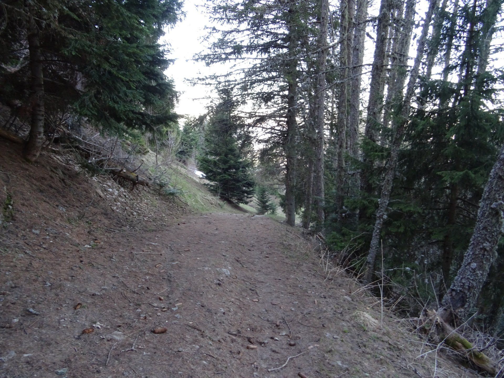 Les chemins sont parfois les seules zones qu'il reste d'enneigées vers le bas.