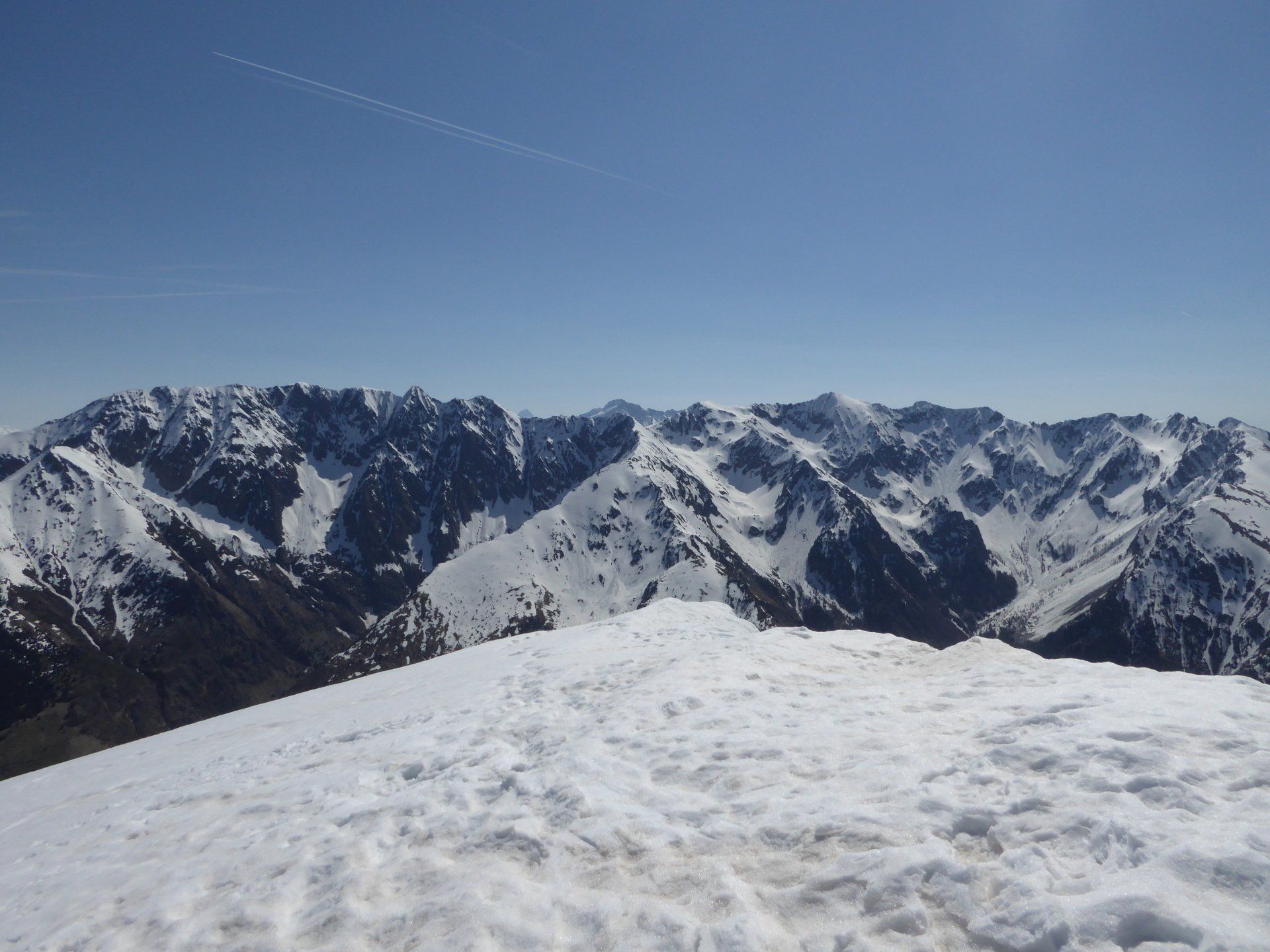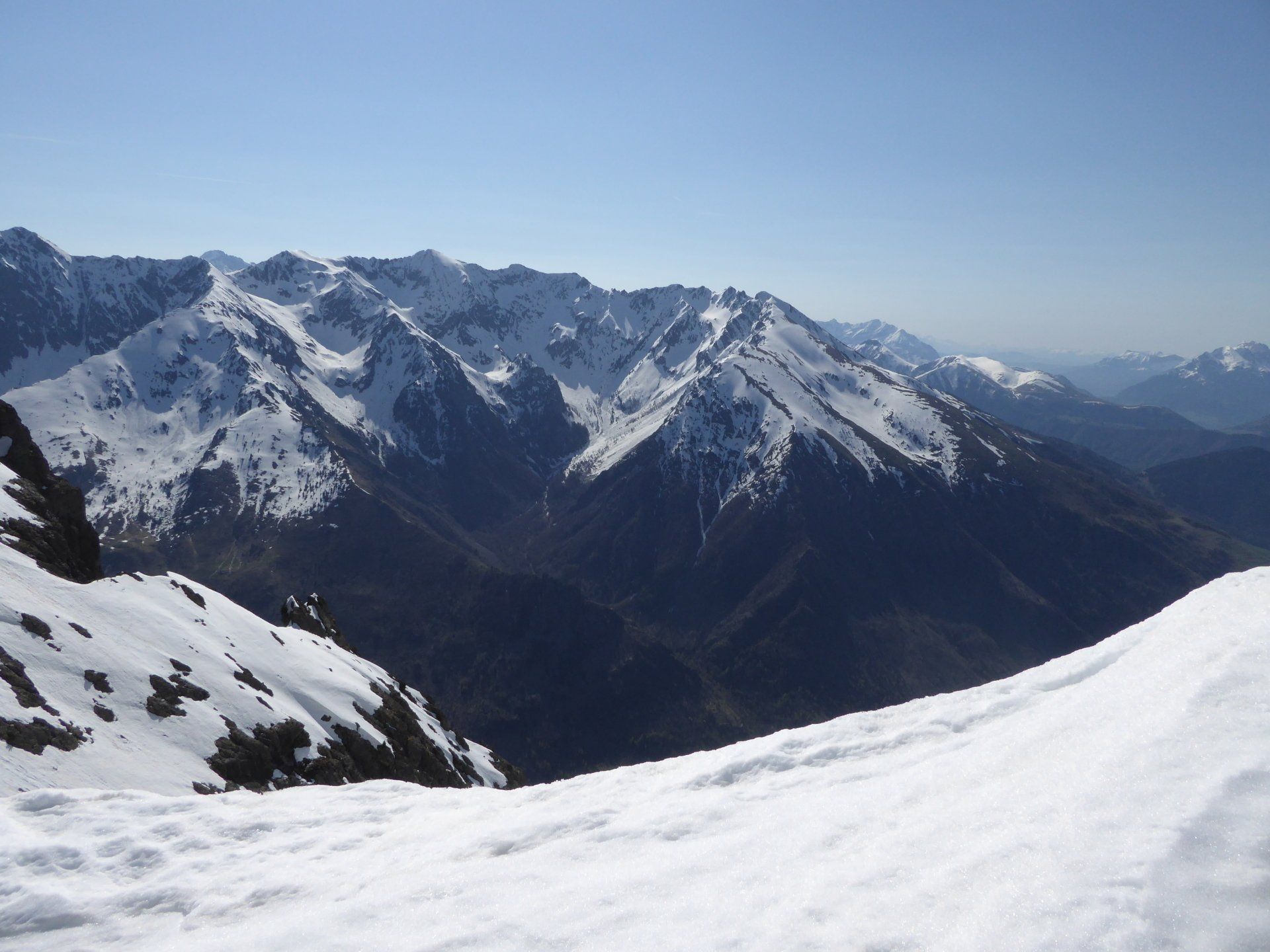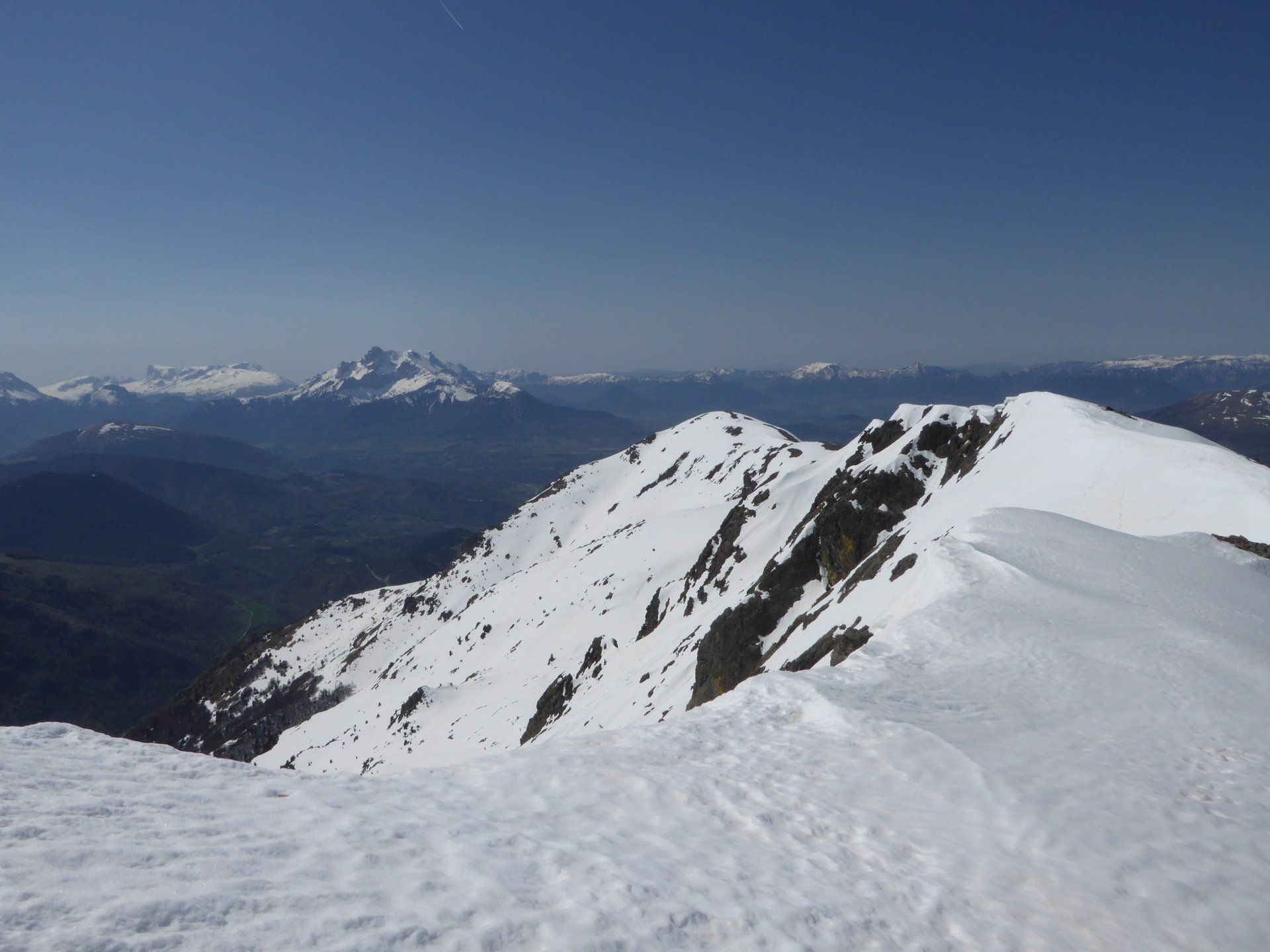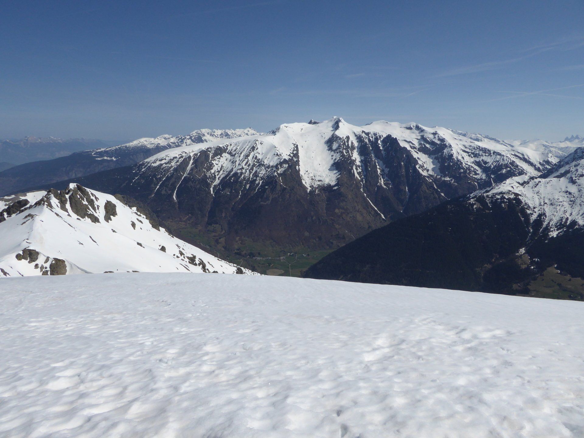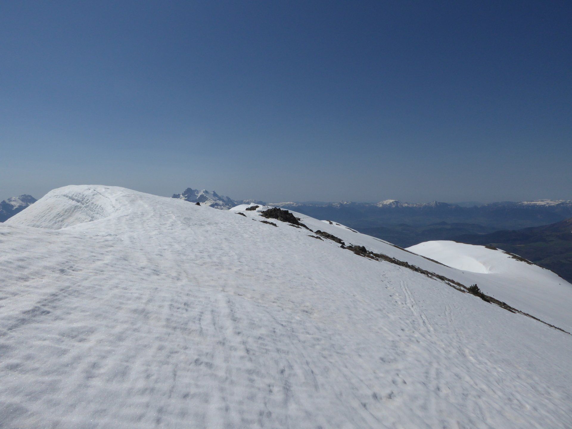 La neige est encore très présente. Neige de printemps avec glissades garanties. Quelques portions sur les fesses feront le bonheur de notre co-randonneuse.