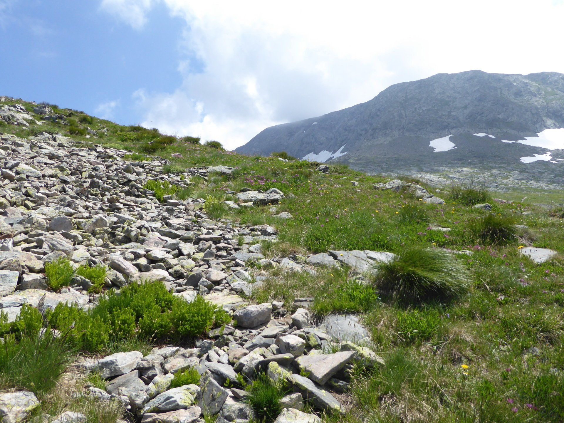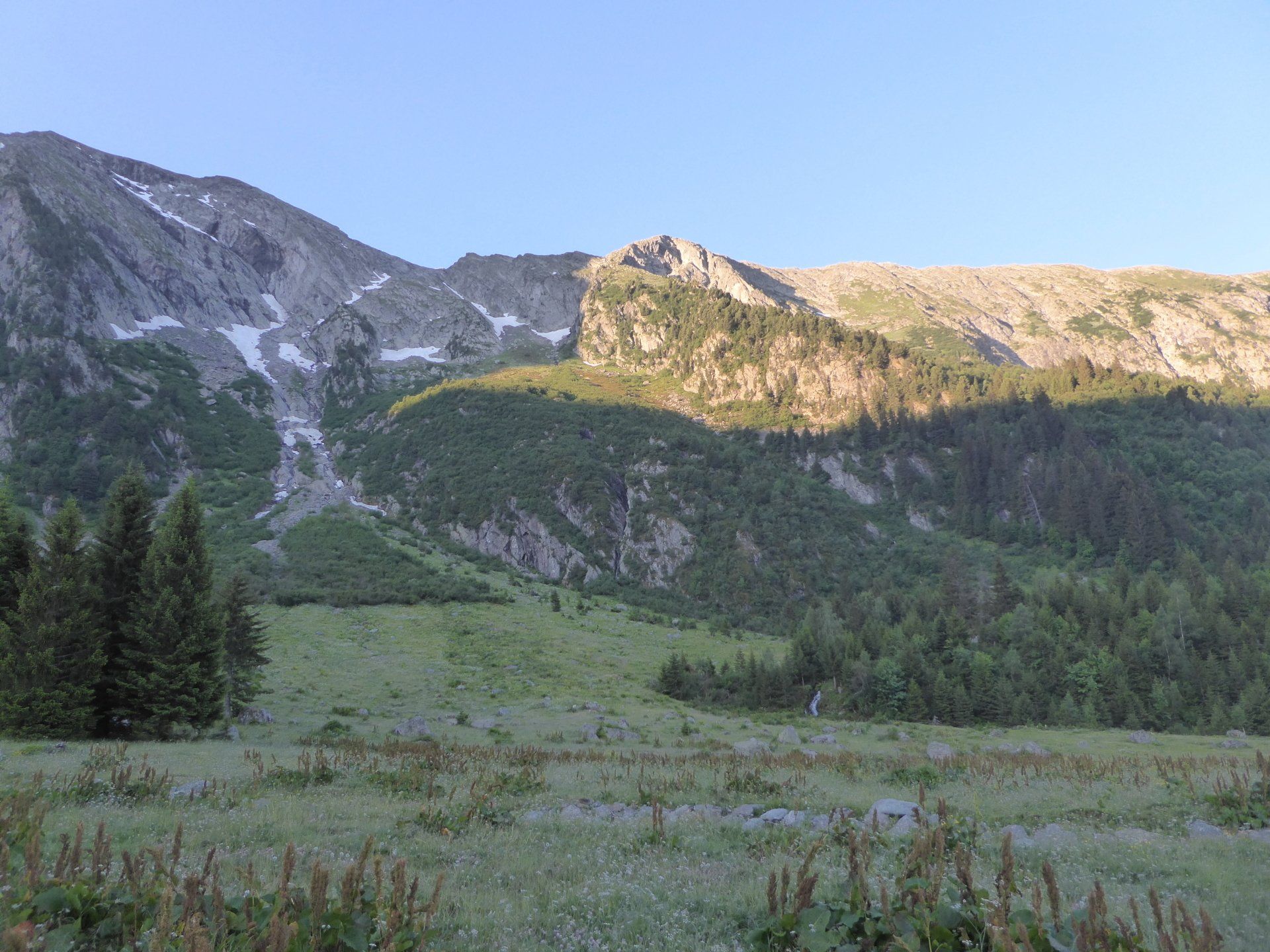 Au départ des chalets nous sommes pourchassés par les moustiques. Je pense qu'ils vont rapidement nous lâcher lorsque nous prendrons de l'altitude, ça ne sera pas le cas et seules quelques pauses pour massacrer les acharnés nous donneront un peu de répit. Les moustiques nous suivront jusqu'au col avant le Taillefer. Persévérants ces petites bêtes !