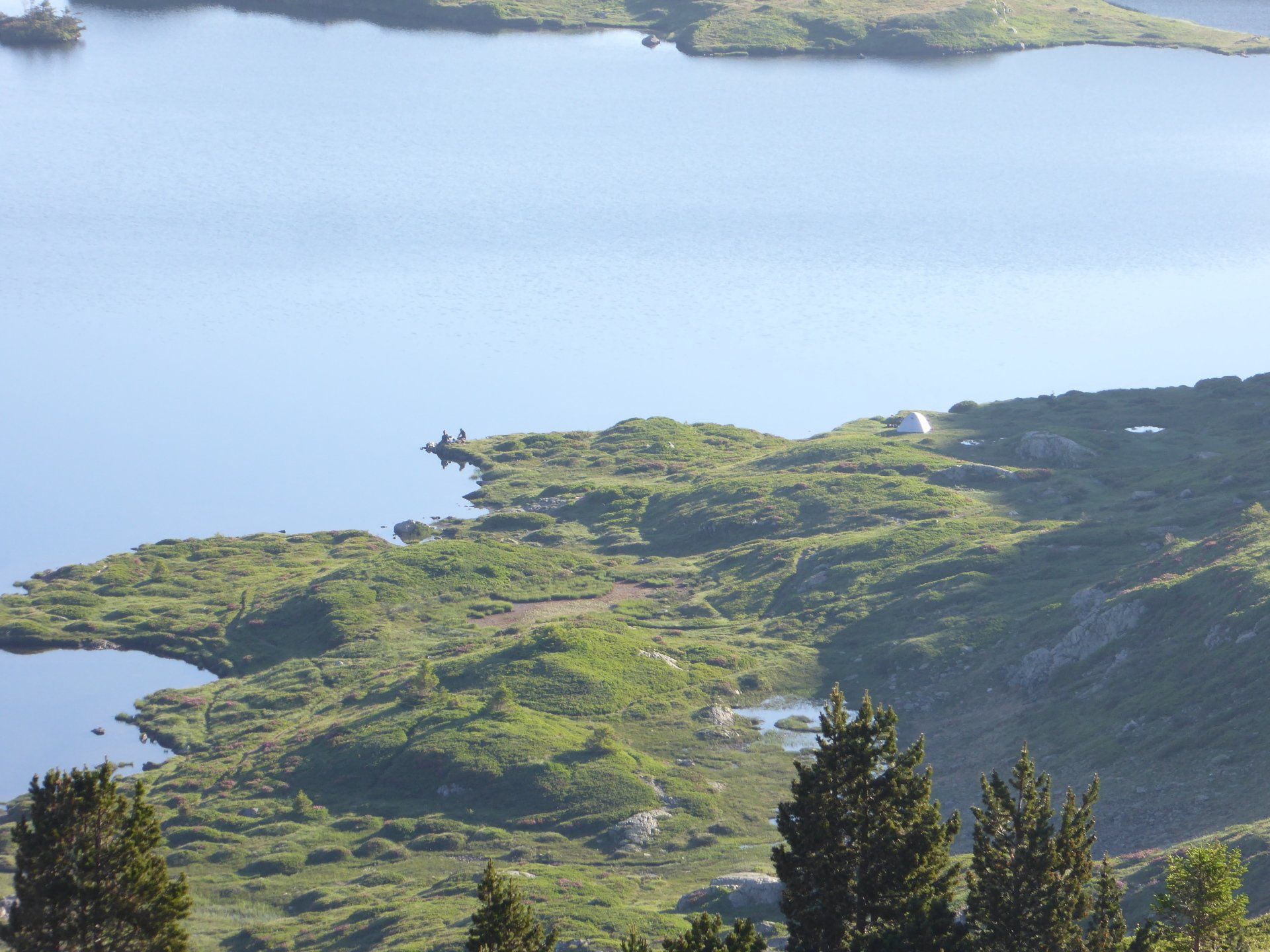 De loin, nous voyons que le Lac Fourchu a hébergé des campeurs. Avec un peu de chance ils avaient de l'anti-moustique.