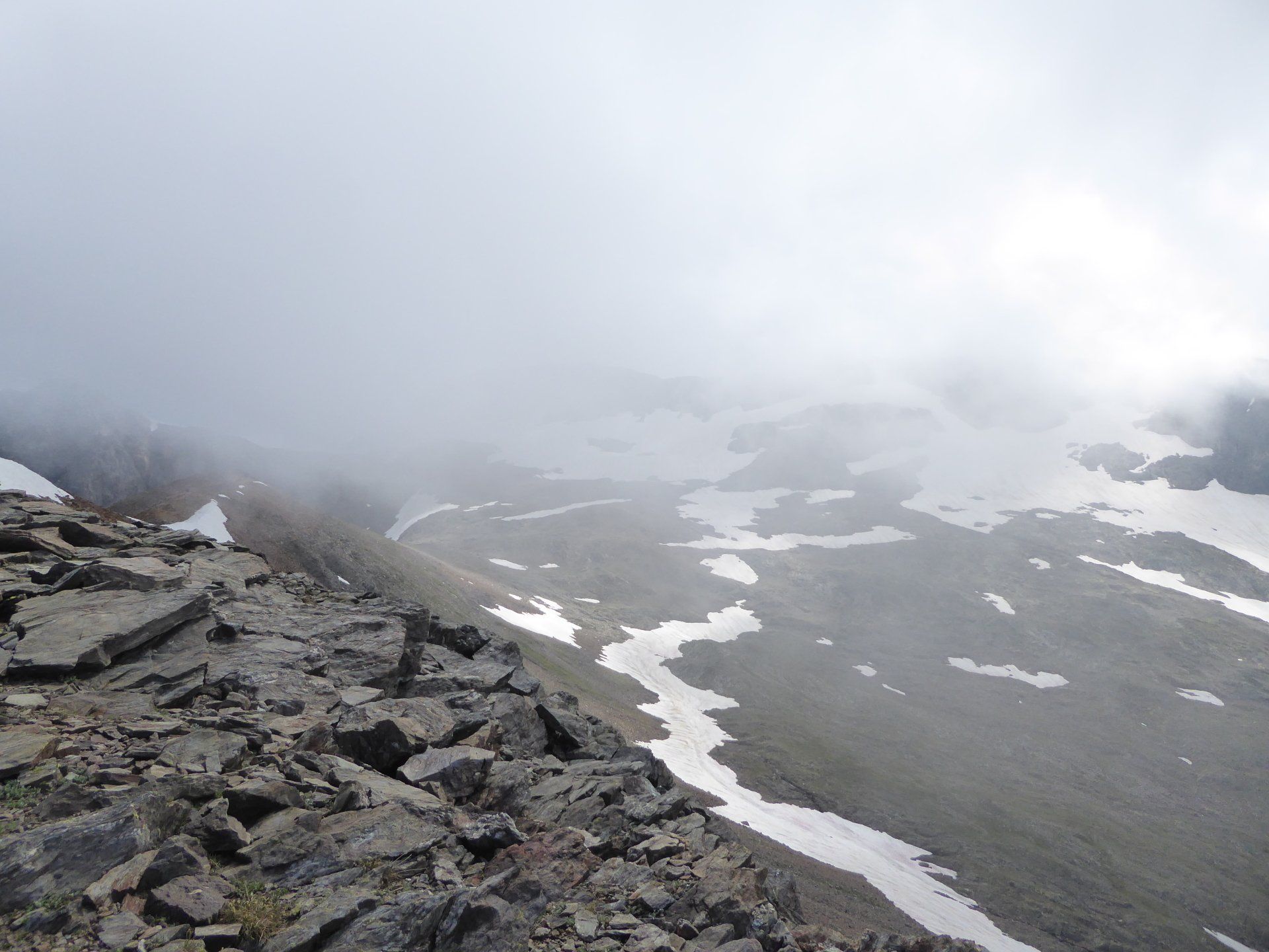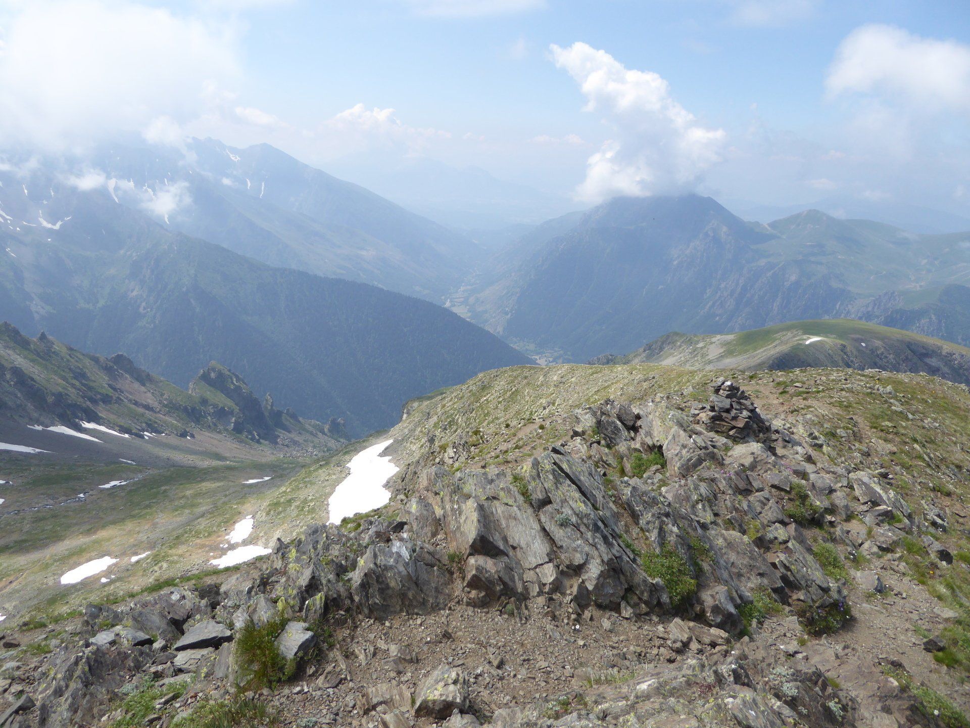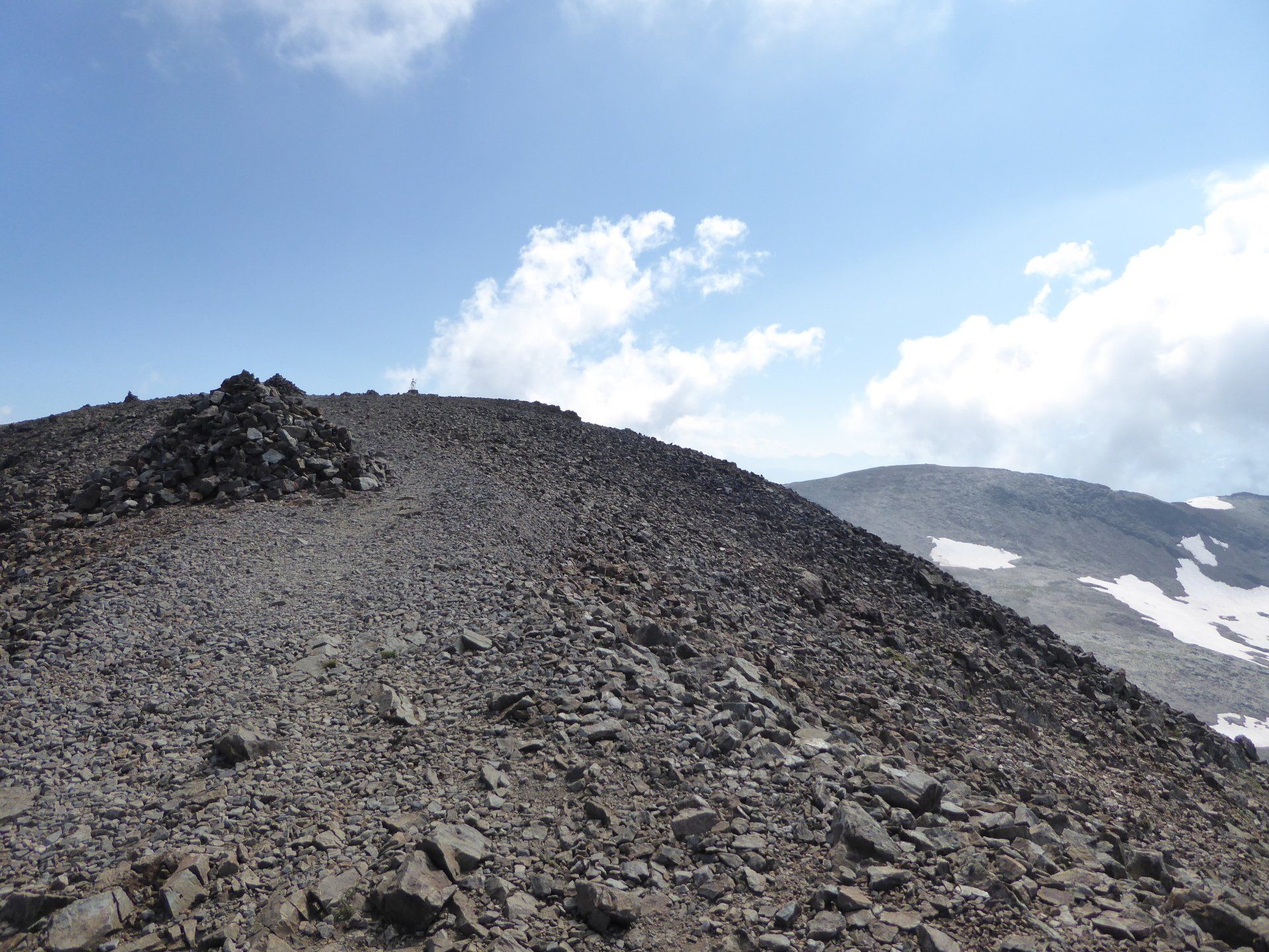 Nous arrivons au sommet par beau temps, avant que les nuages n'en prennent possession. Les randonneurs suivants, que nous croisons en redescendant, seront dans le brouillard.