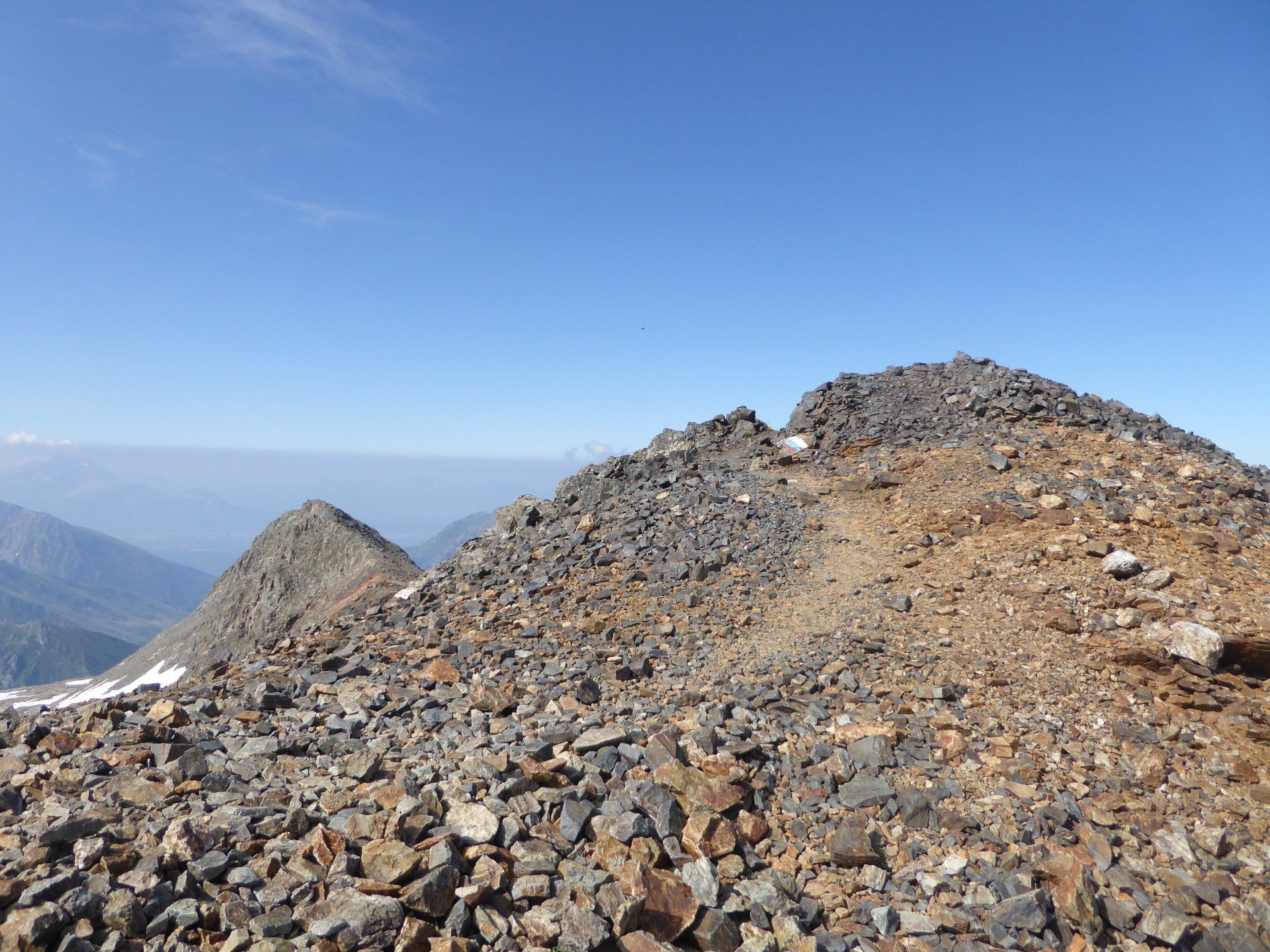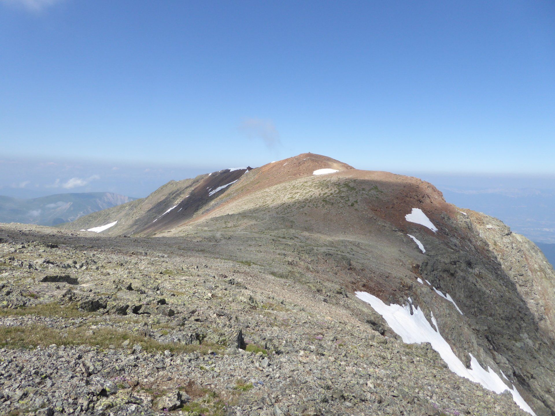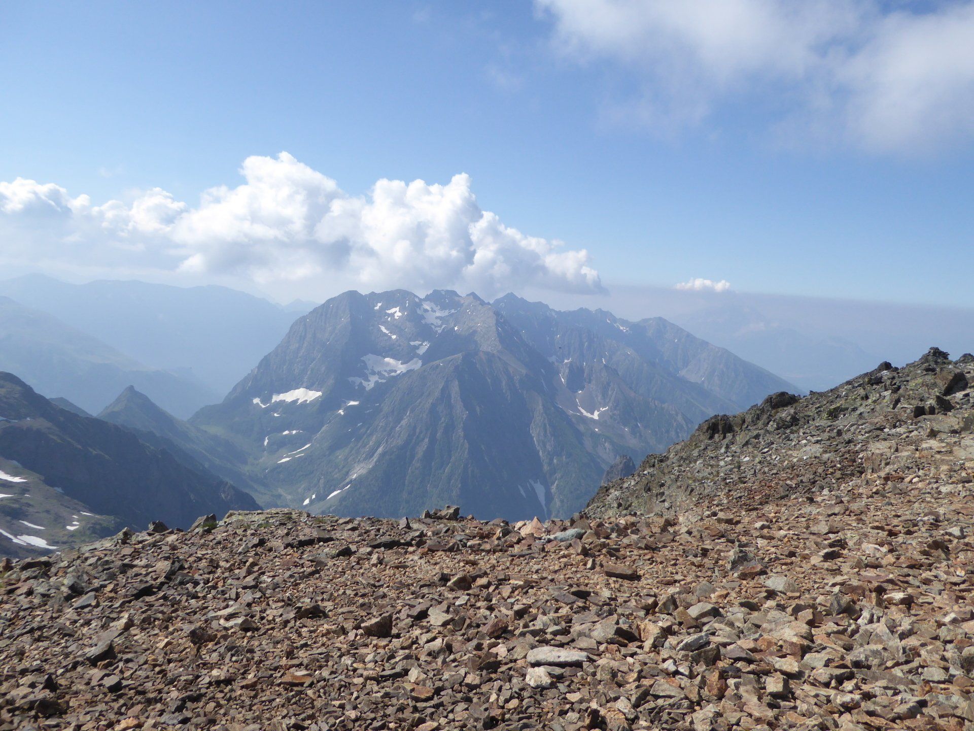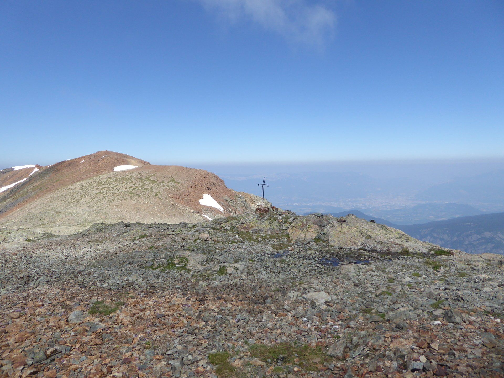 Nous arrivons au sommet par beau temps, avant que les nuages n'en prennent possession. Les randonneurs suivants, que nous croisons en redescendant, seront dans le brouillard.
