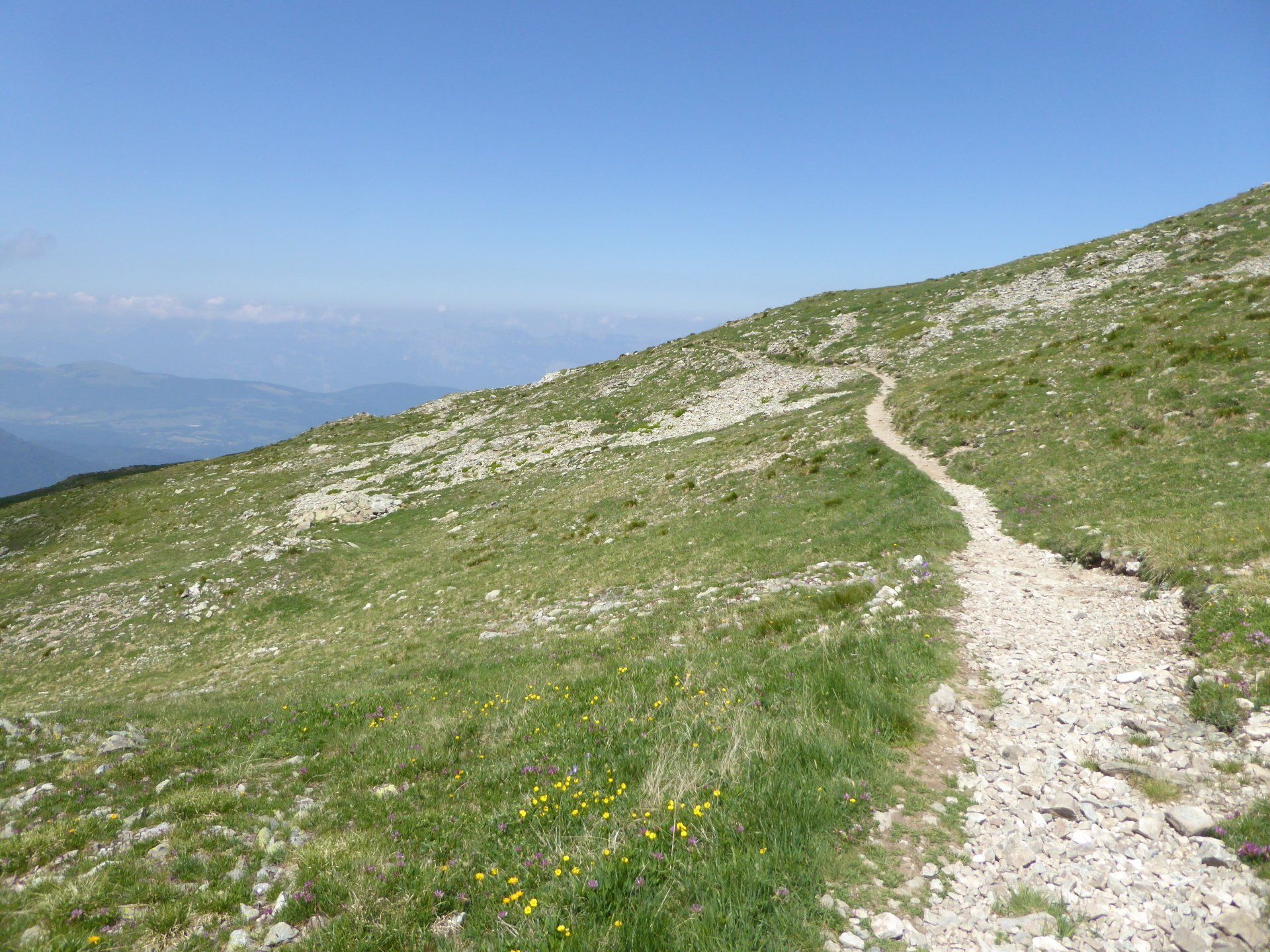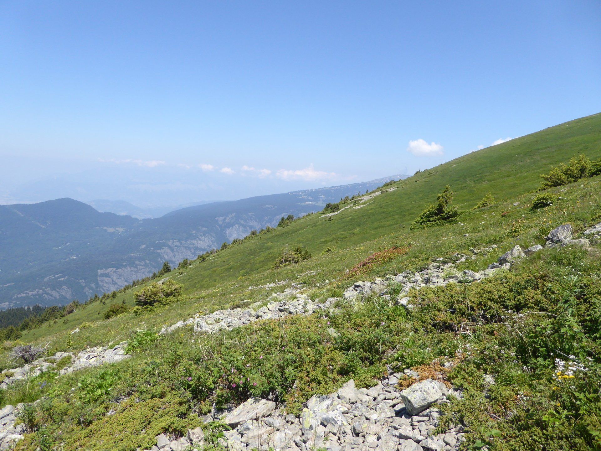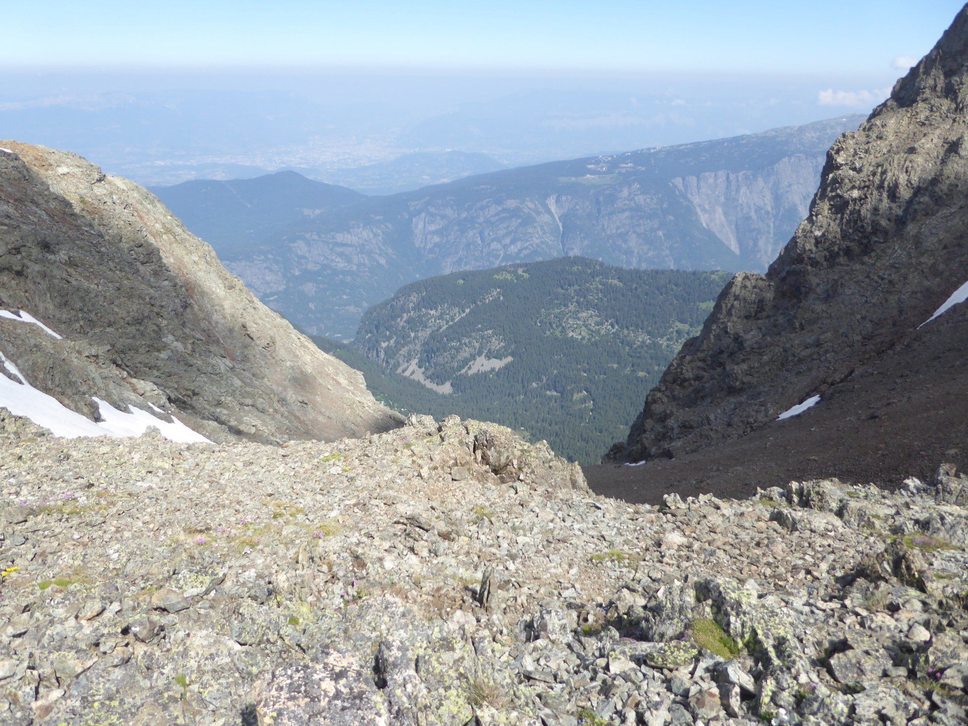 Après la crête du Bouffrier, nous plongeons dans le vallon.