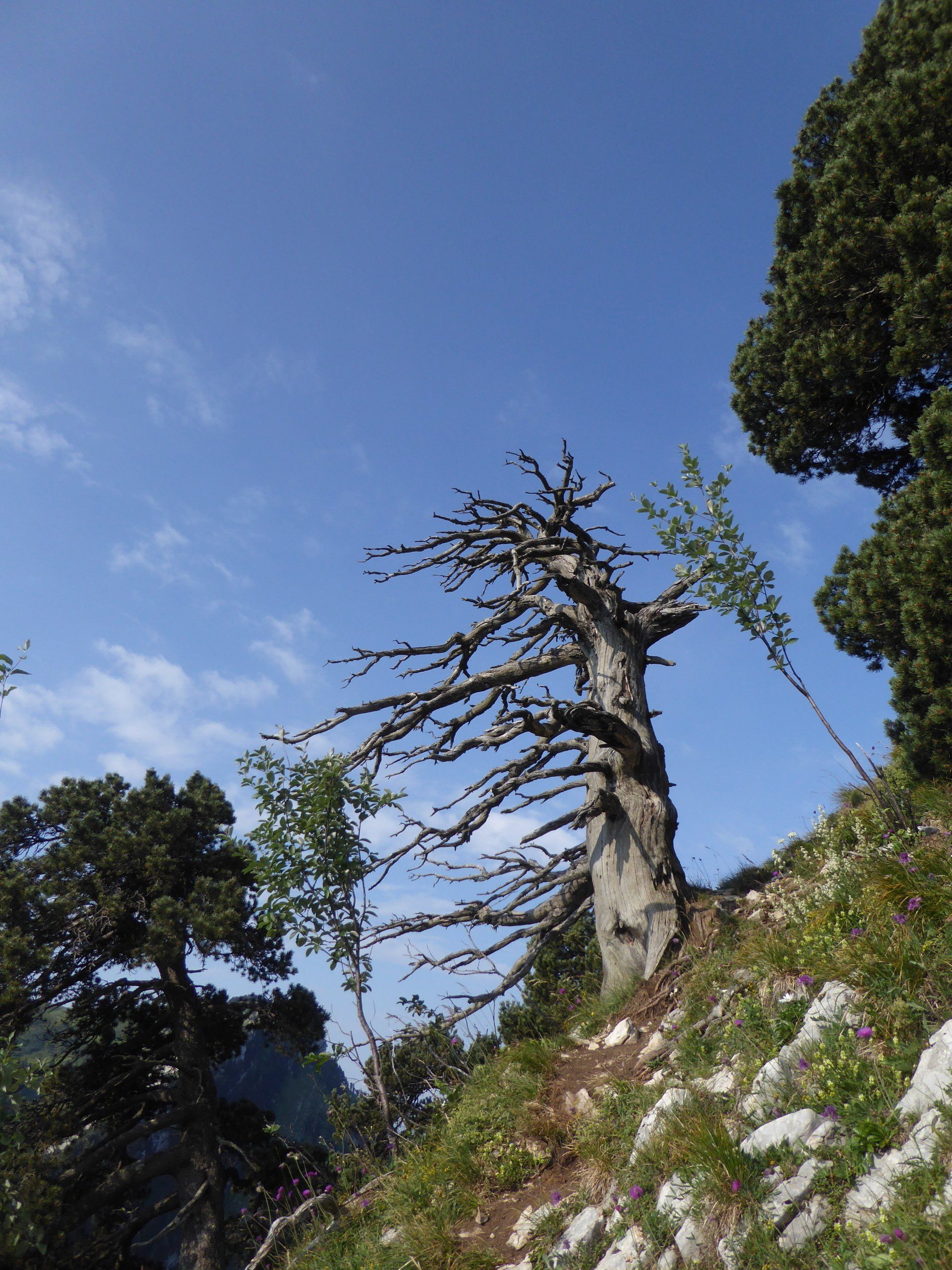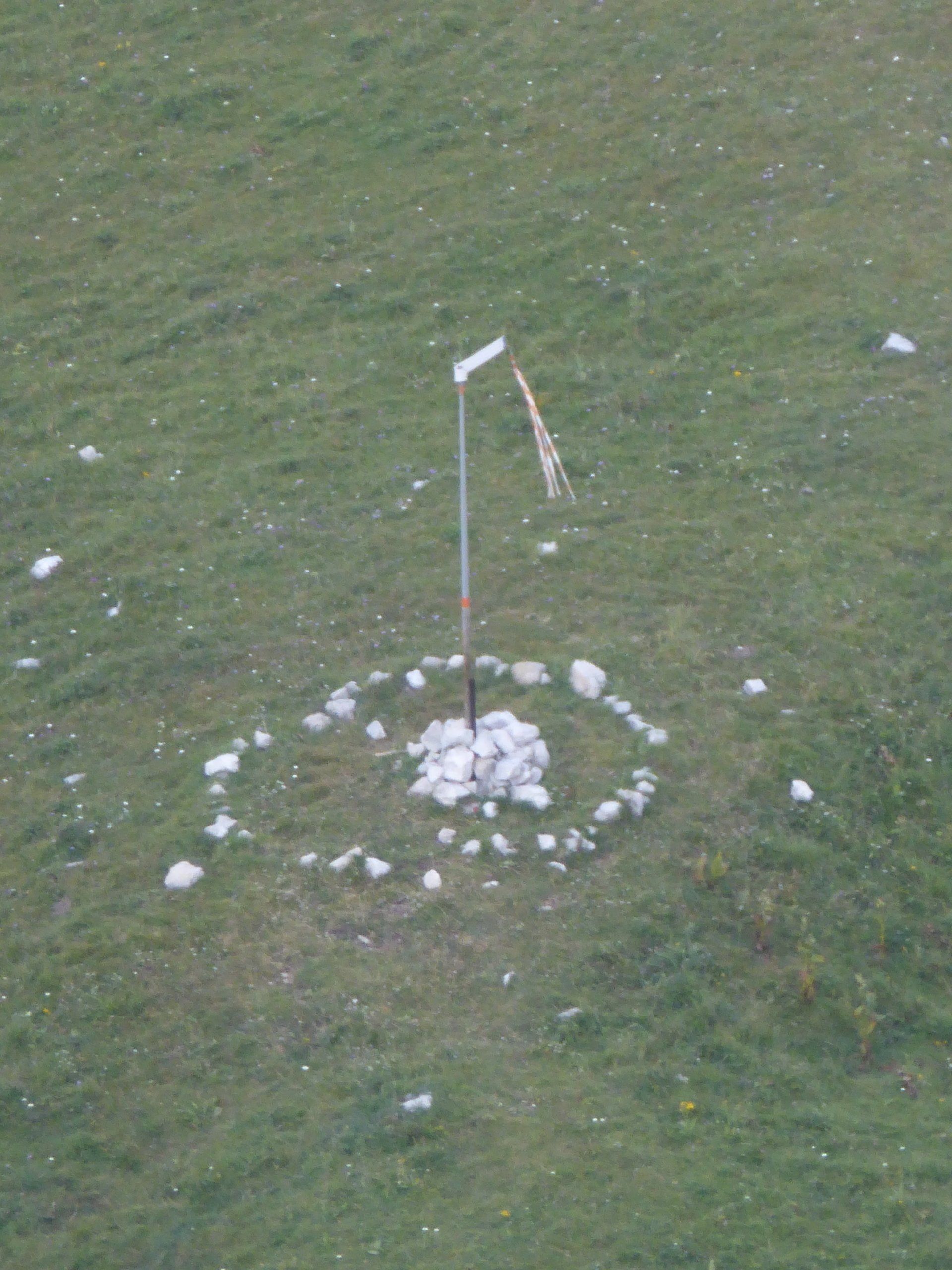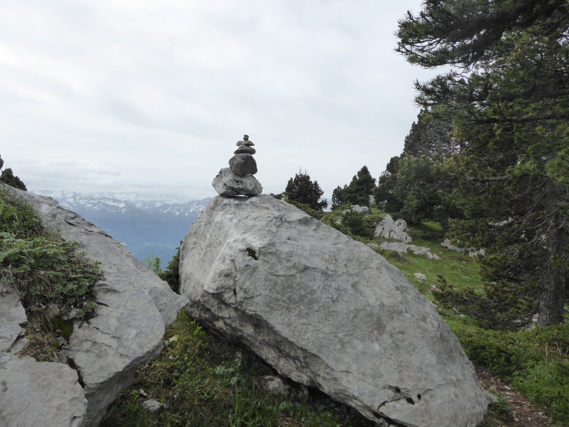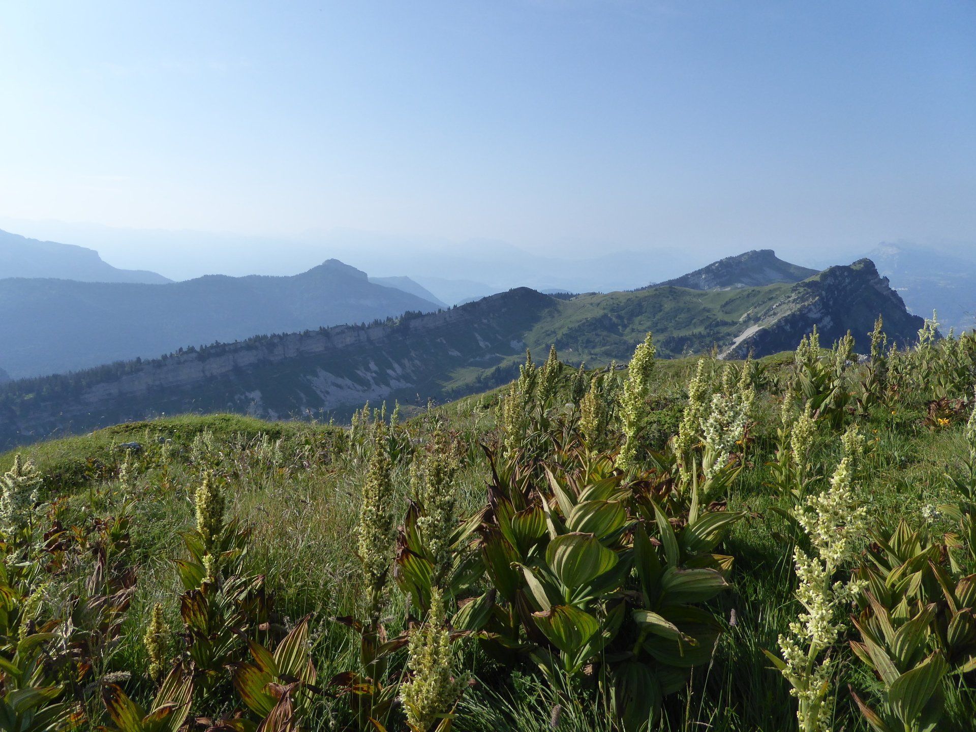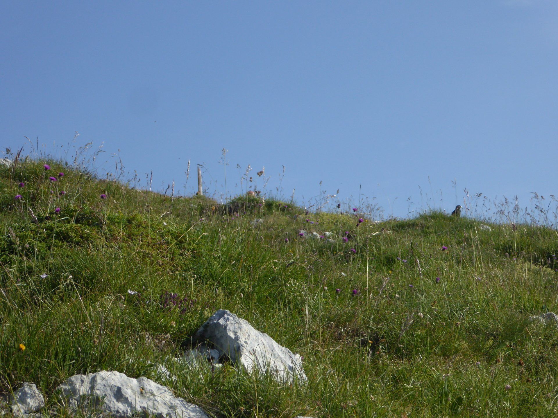 Le matin, nous rejoignons le vallon de la Grande Sure. La visibilité est bonne et nous permet de nous repérer dans cet entrelas de chemins de vaches. Nous repérons sans difficulté le pied de la crête à suivre. Quelques passages où les mains sont utiles mais sans être techniques. Le sommet est déjà occupé par un randonneur et un corbeau. En descendant vers le col de la Grande Vache nous croisons plusieurs groupes de randonneurs. Nos départs à l'aurore nous permettent de limiter les lieux fréquentés et de ne pas être ceux qui soufflent quand nous croisons d'autres personnes.