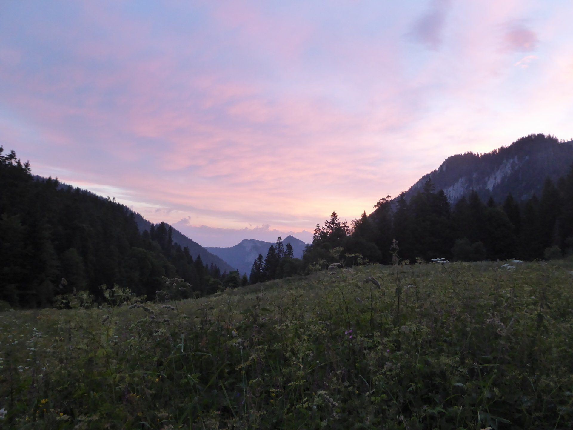 Lever du soleil au col de la Charmette. Fraîcheur matinale, le calme de la montagne nous enveloppe.