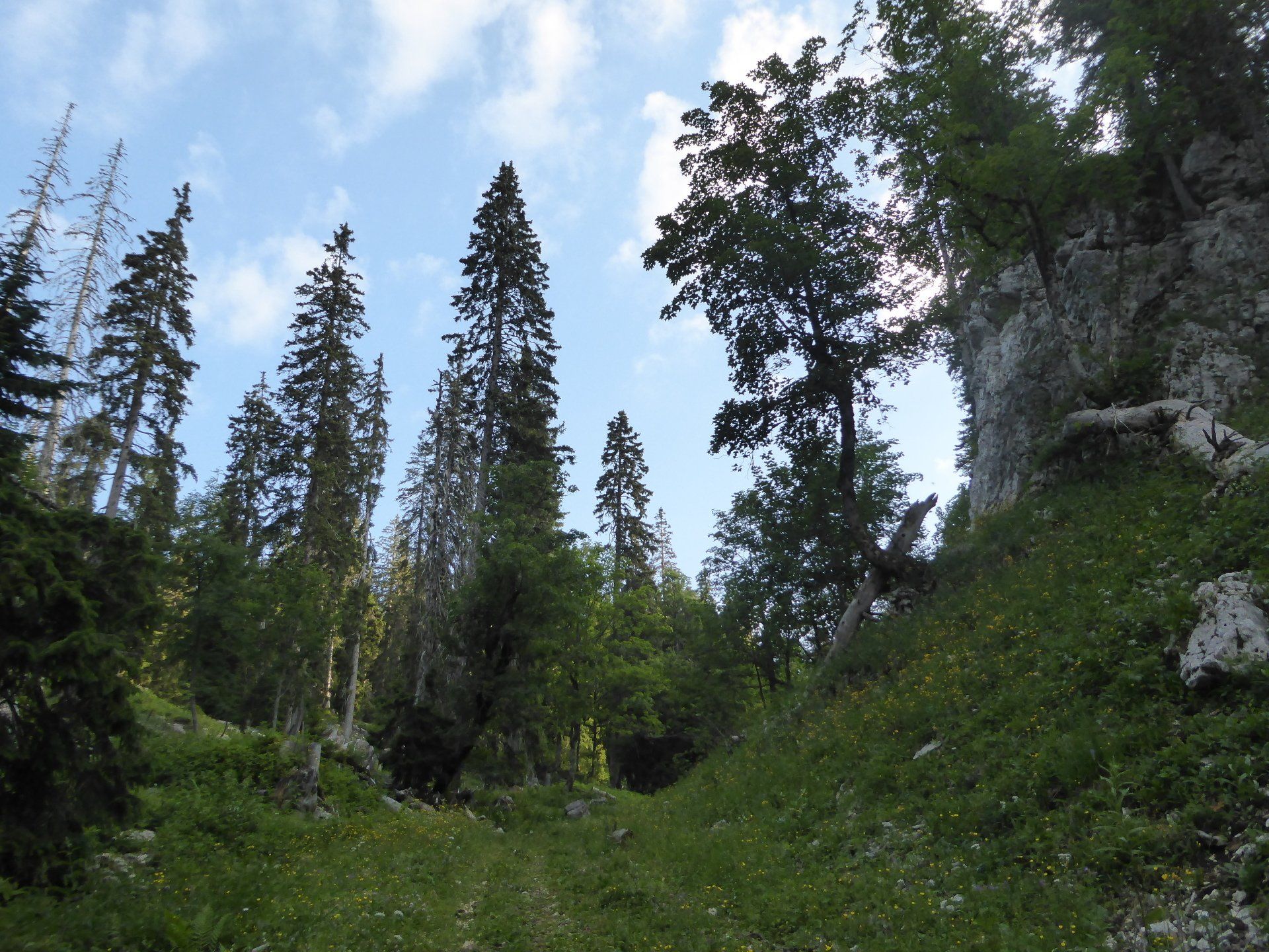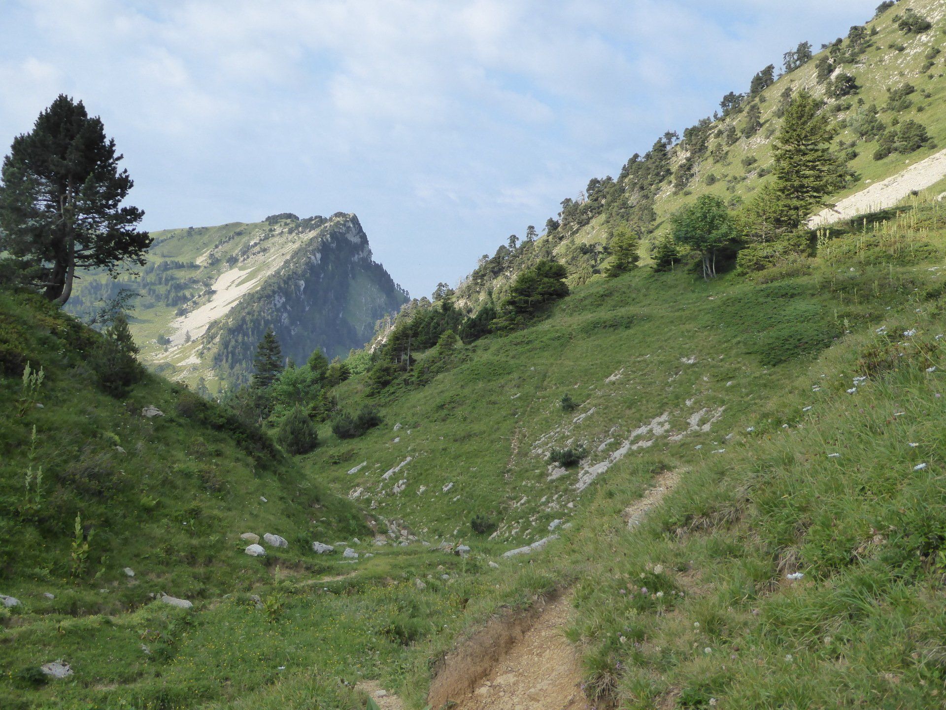 Nous quittons ce vallon vert tendre pour rejoindre la forêt et le col de la Charmette.