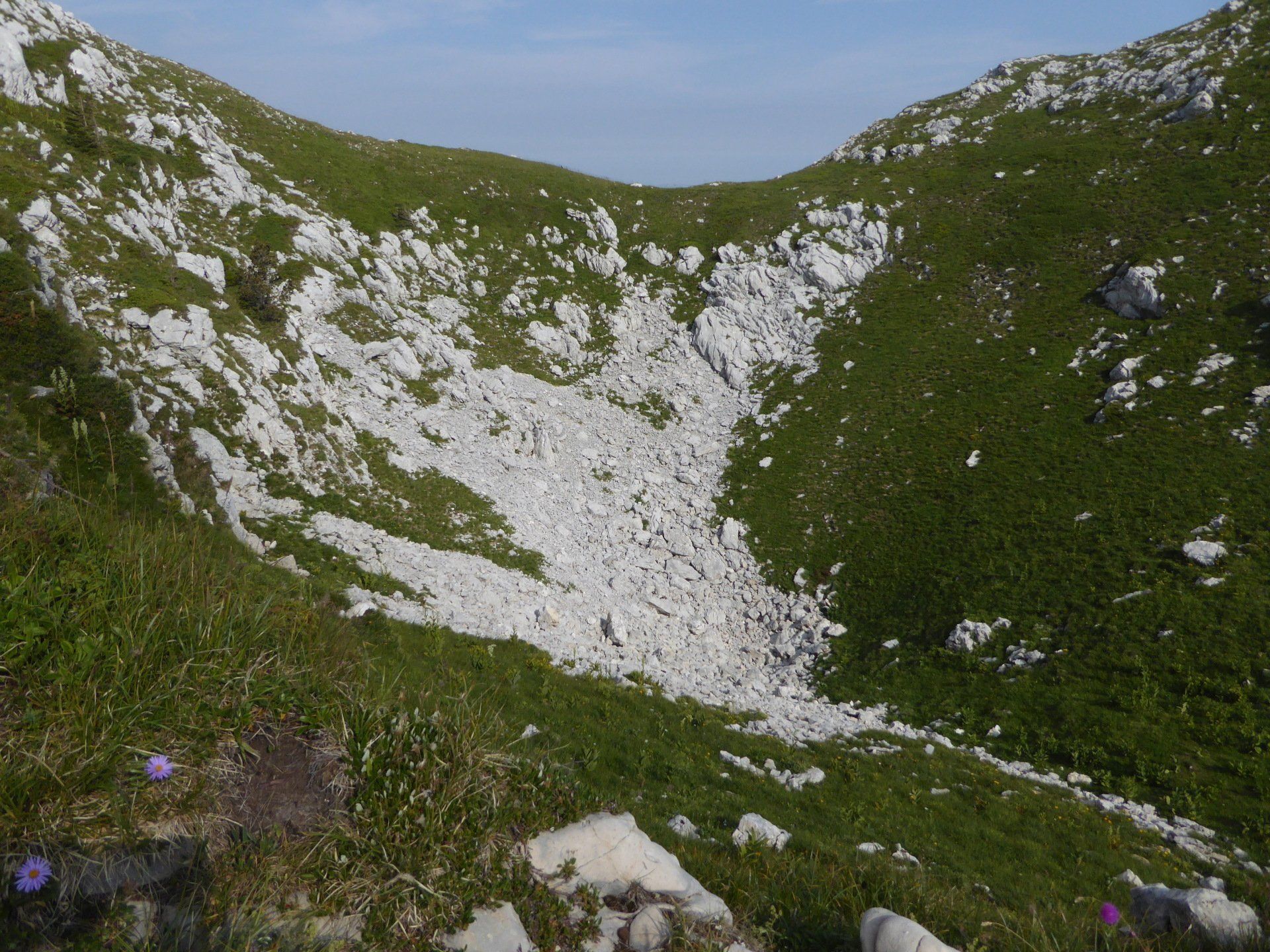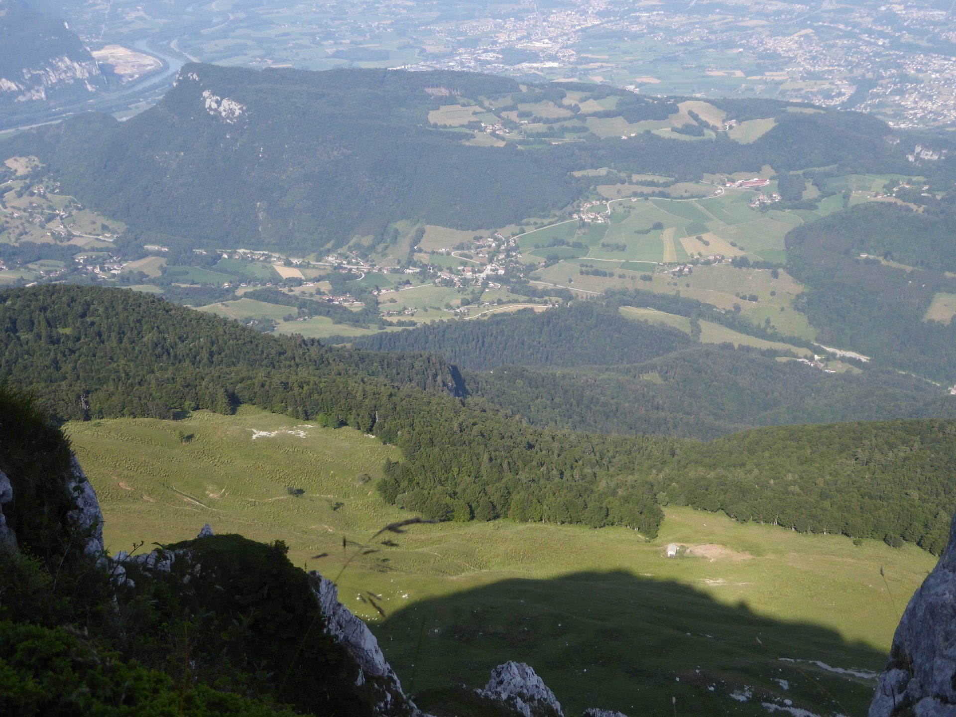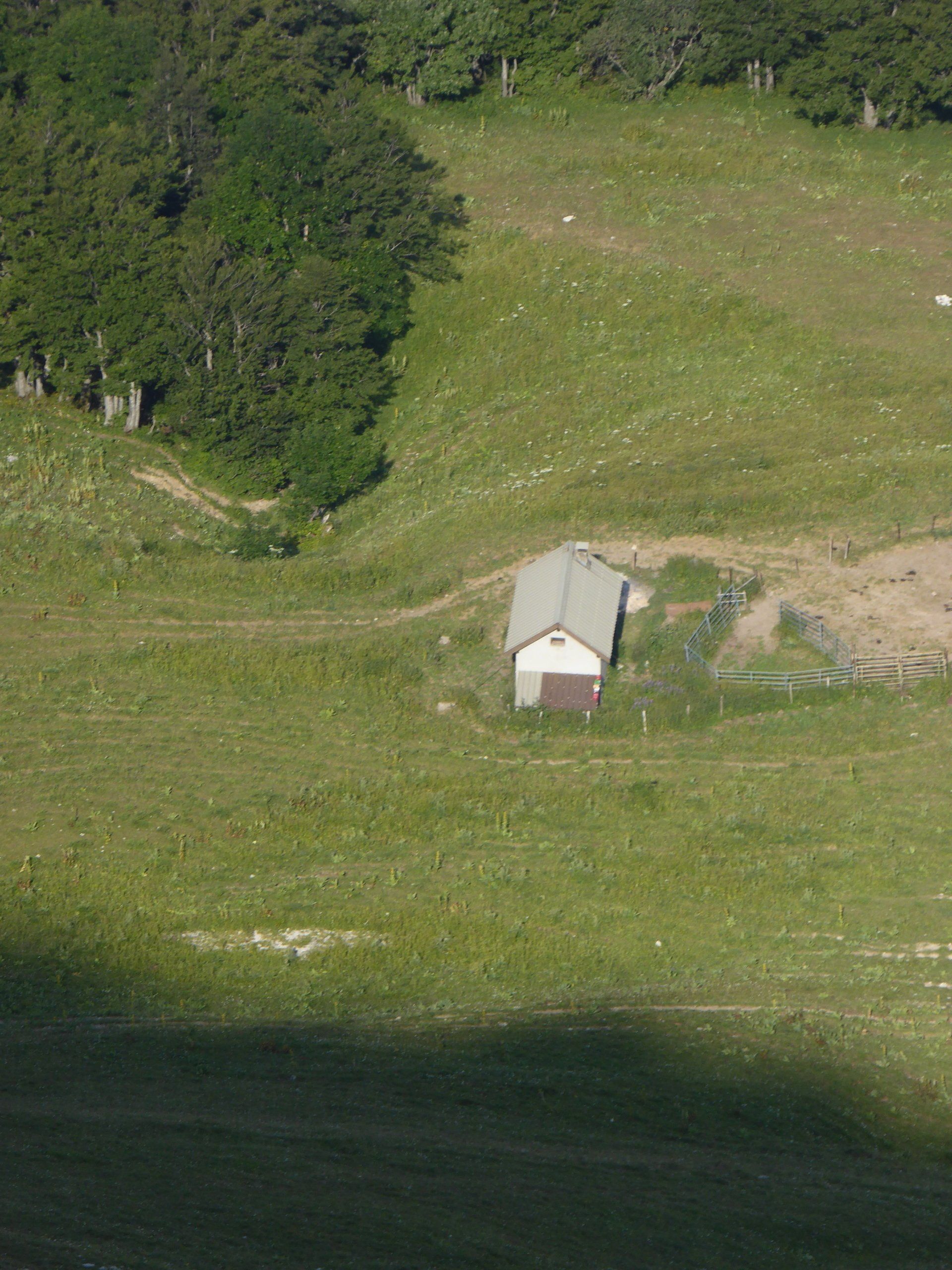 Quelques zooms d'en haut, au centre le chalet de Jusson en contrebas, que l'on peut rejoindre par la cheminée de la Grande sure.