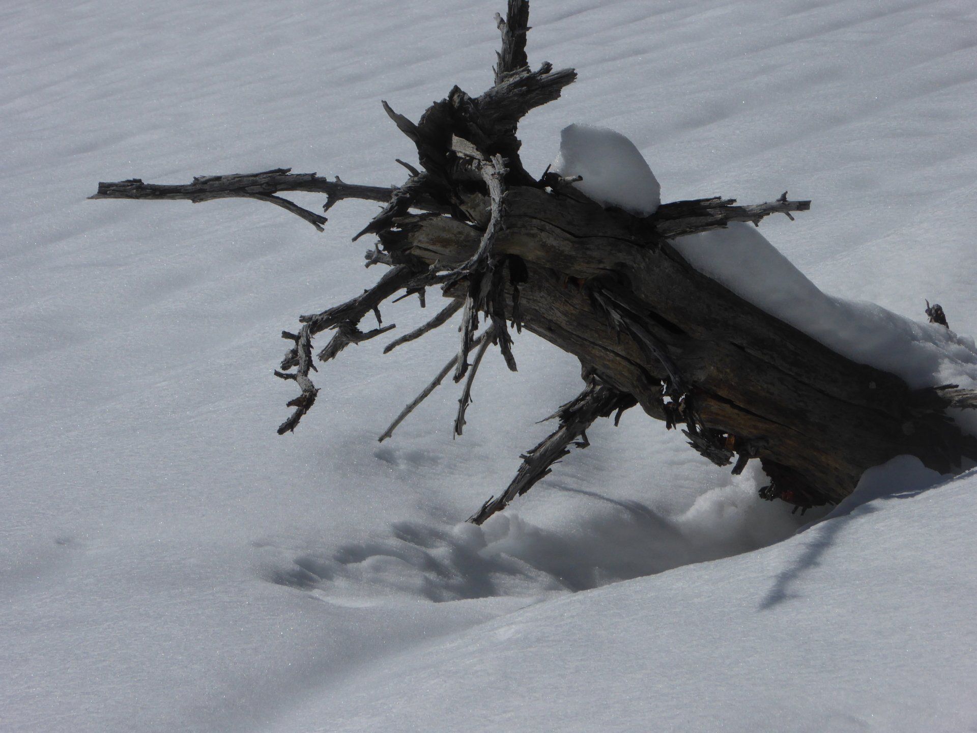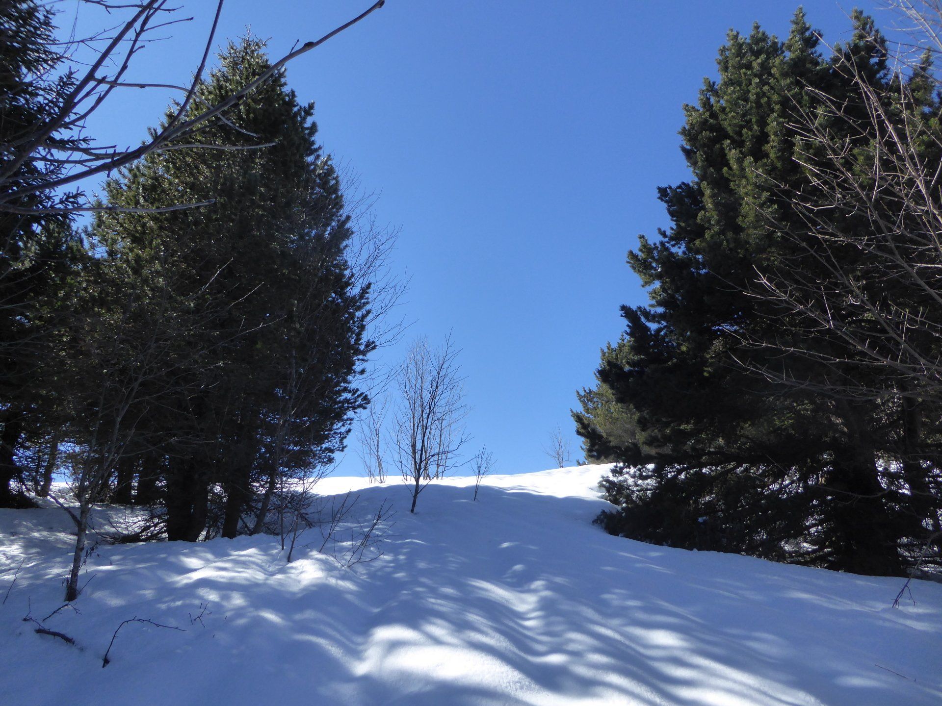 Nous perdons les traces avant le col, la suite sera également hors trace, en évitant les pentes trop prononcées.