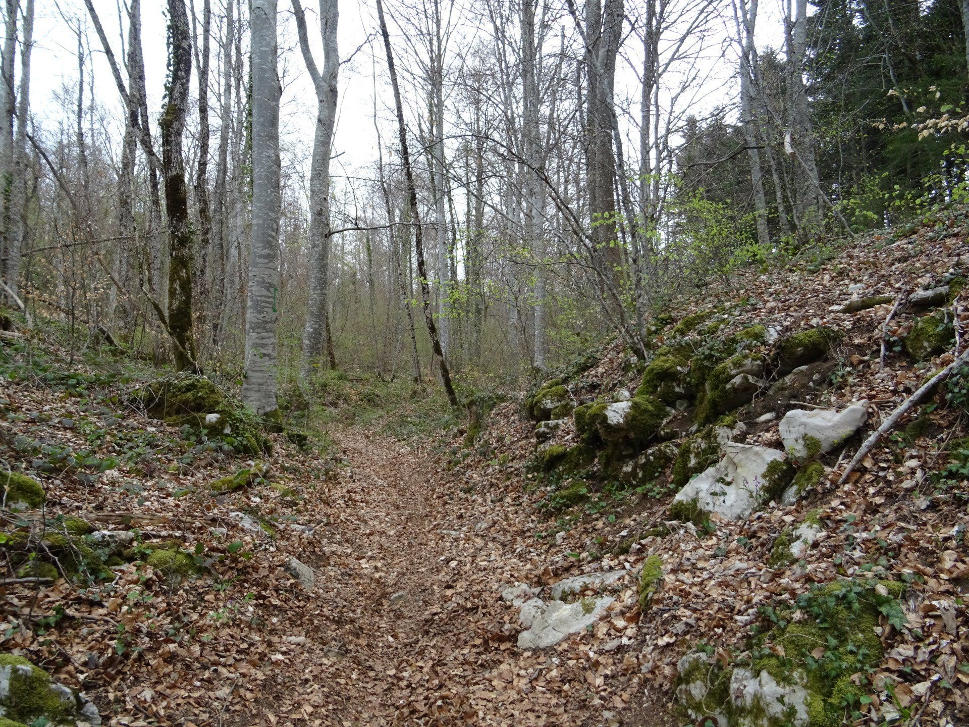 Météo maussade, la thématique de la rando est raccord avec le calendrier : dimanche de Pâques. Peu de courageux. Nous non plus d'ailleurs. La cheville qui tire et l'arrivée de la pluie nous feront raccourcir notre boucle que nous avions envisagée dans une version plus longue.