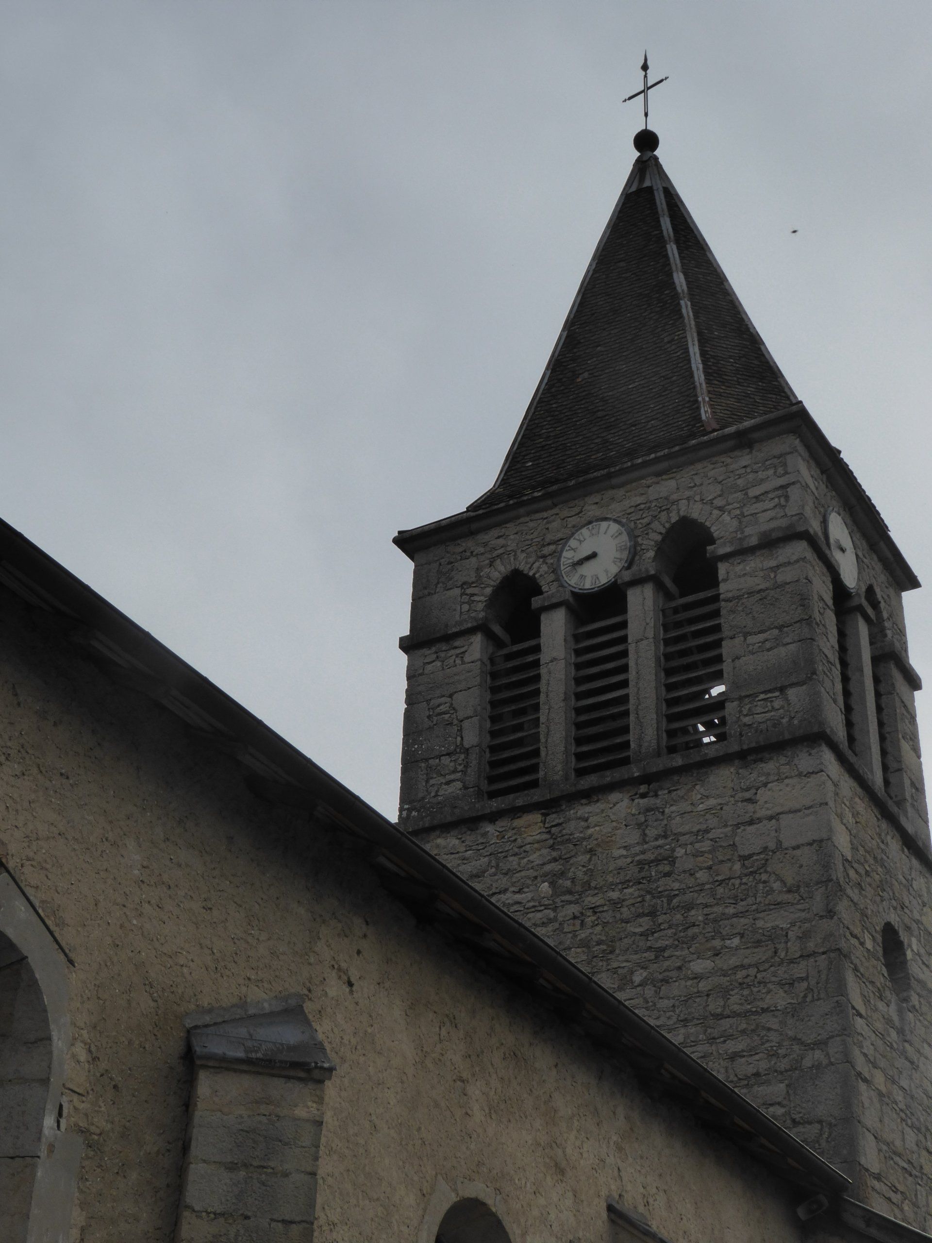 Départ de l'église de Bénonces où les abeilles ont trouvé le gîte.
