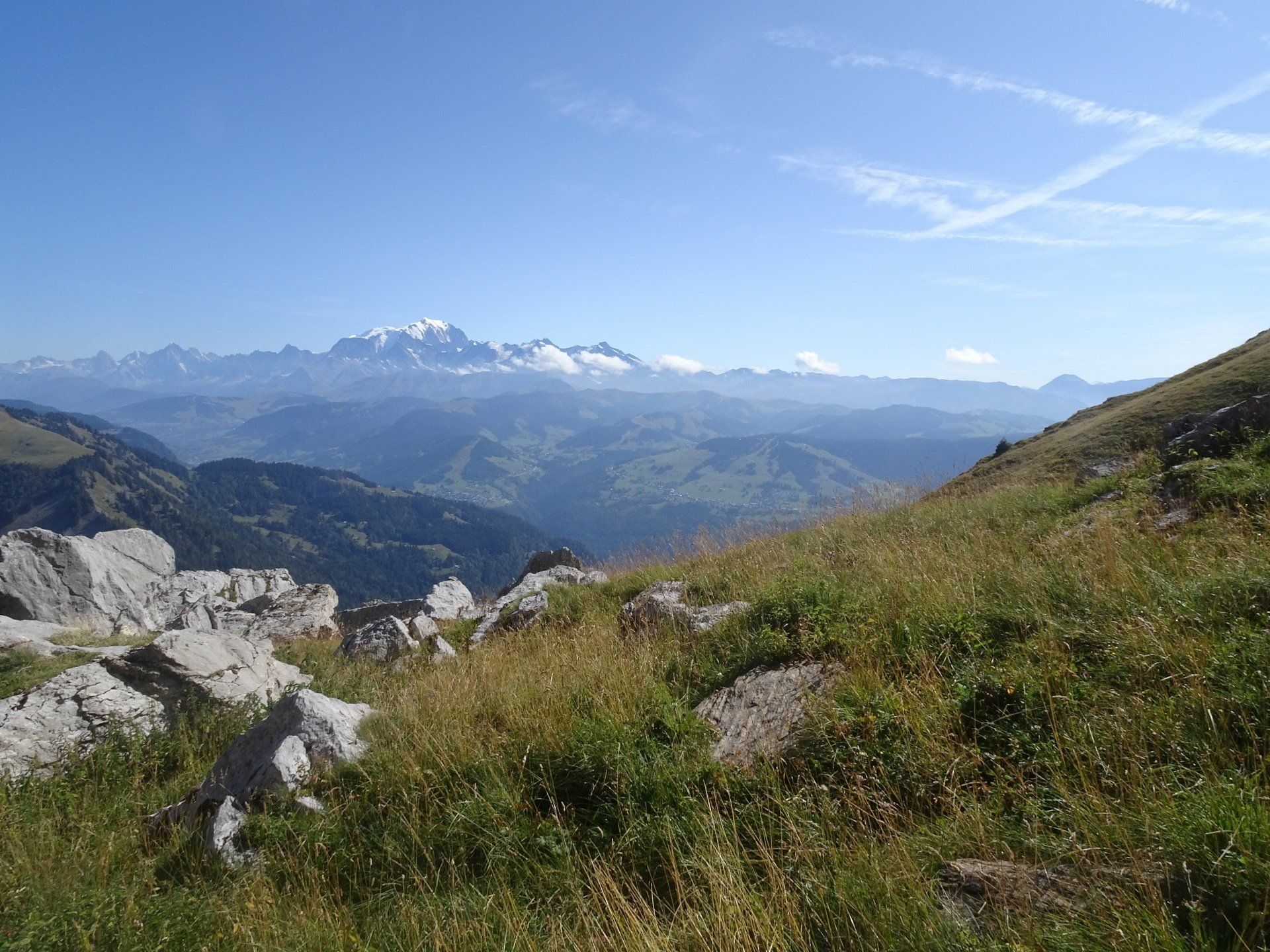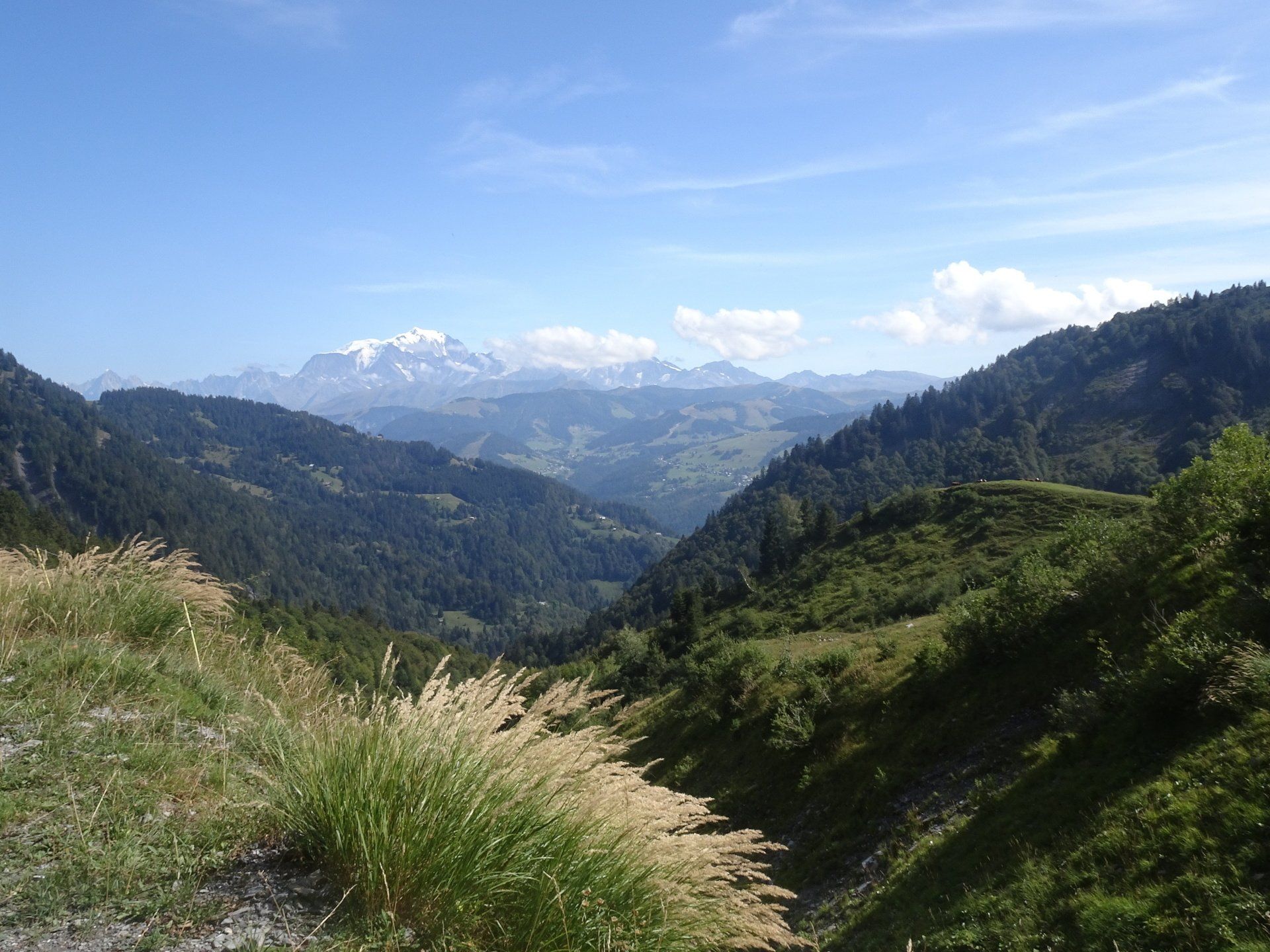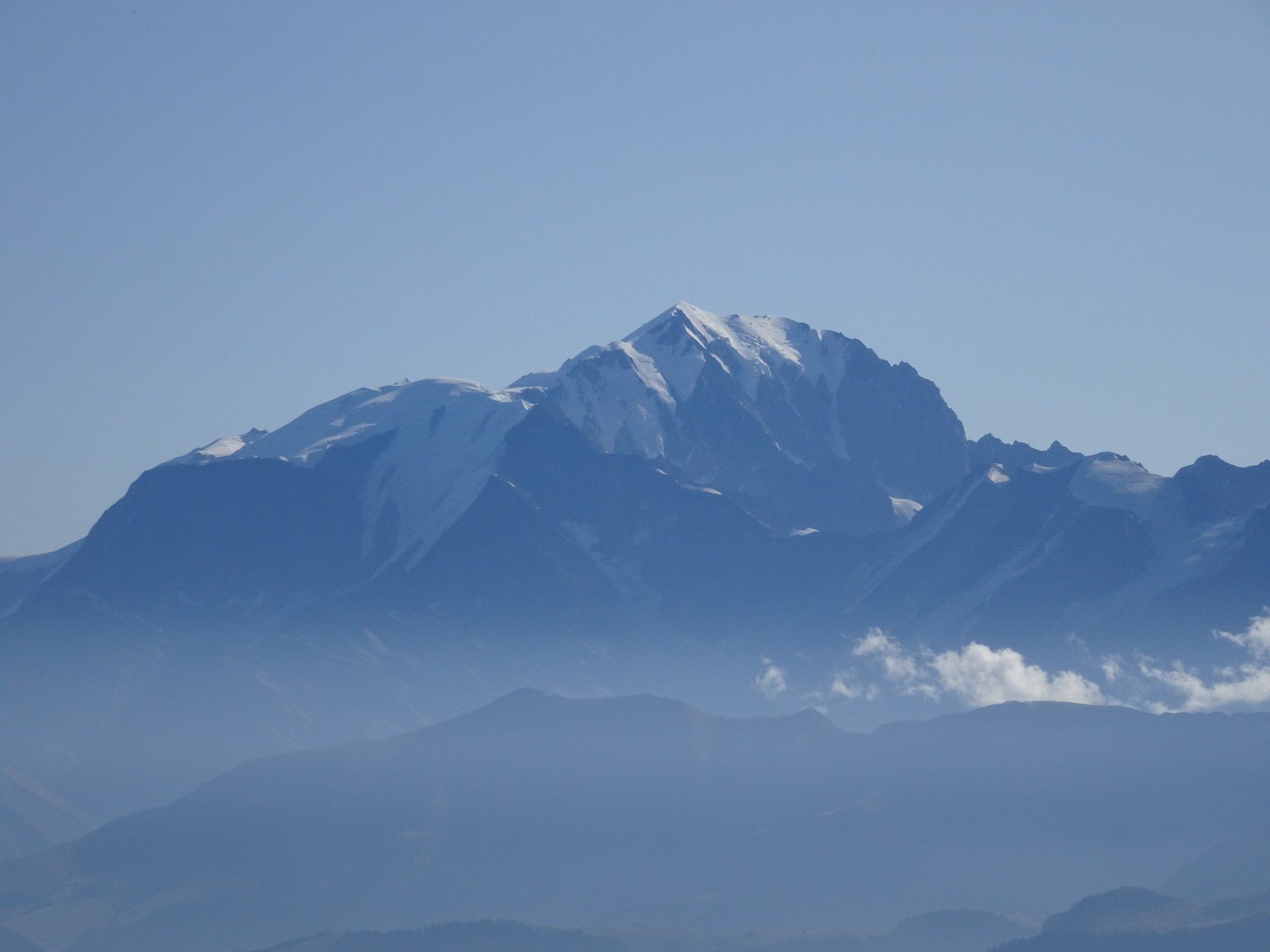 Petite pause bien méritée. La-bas, en face, le Mont blanc et les sommets qui l'entourent.