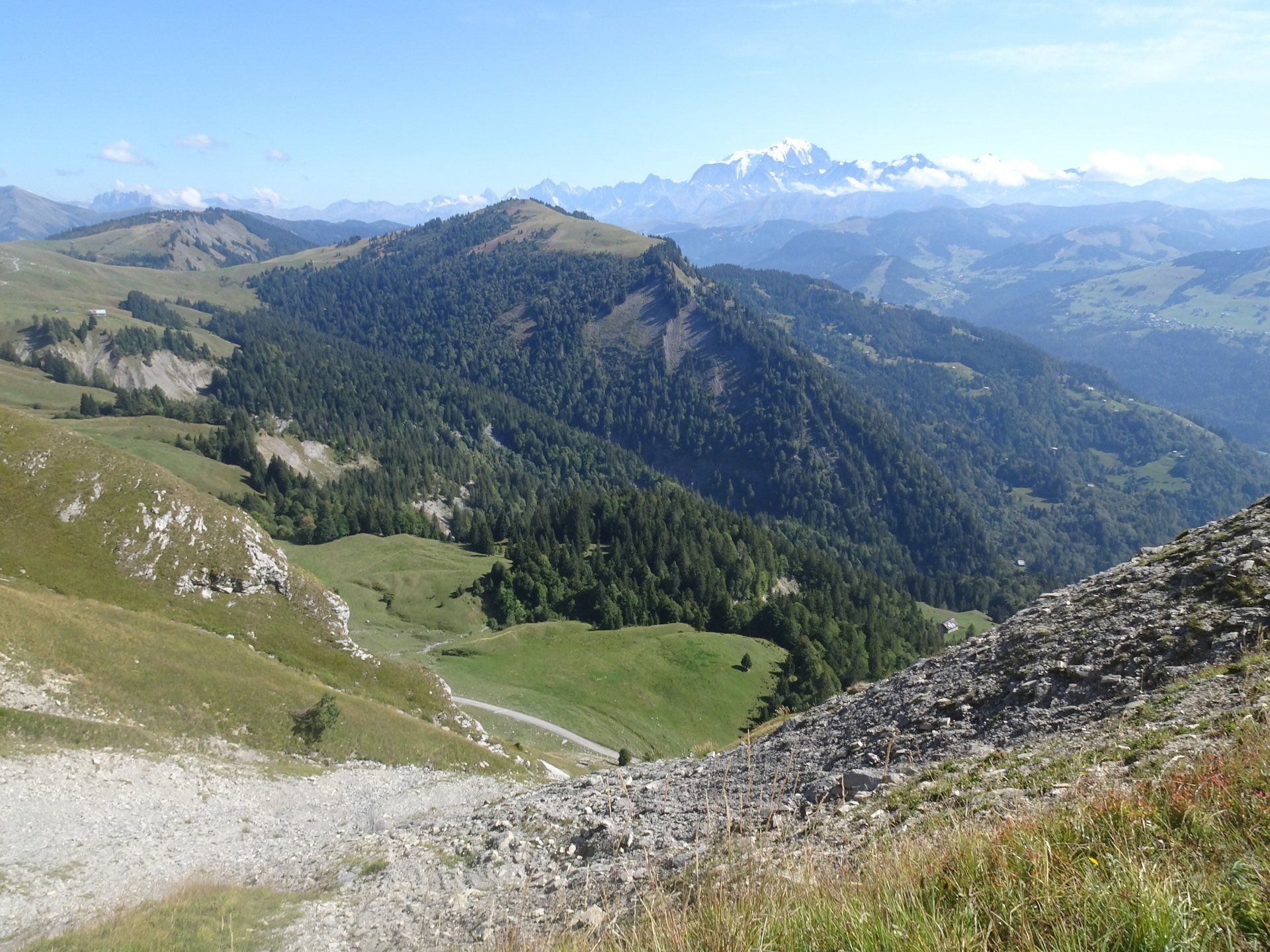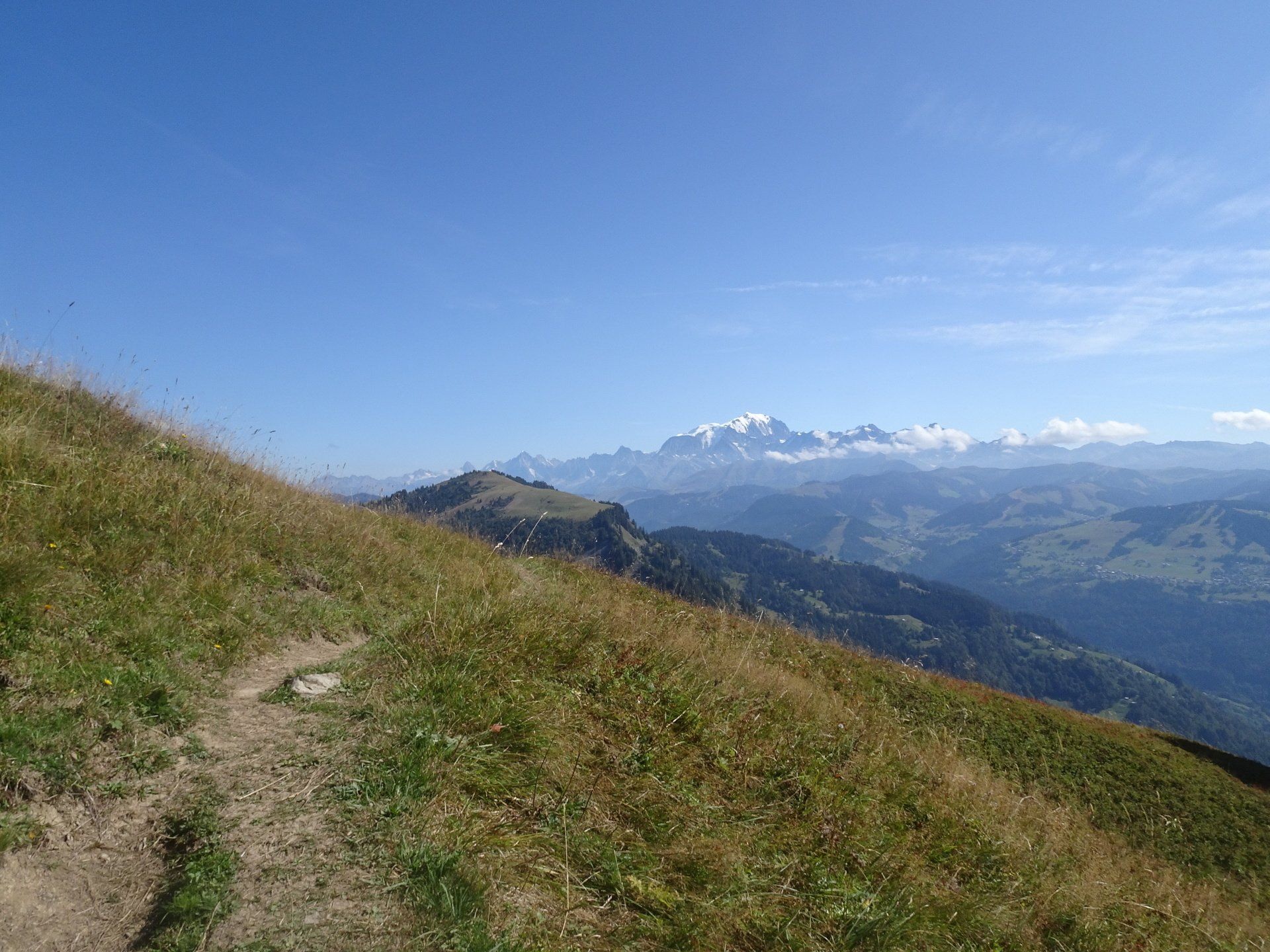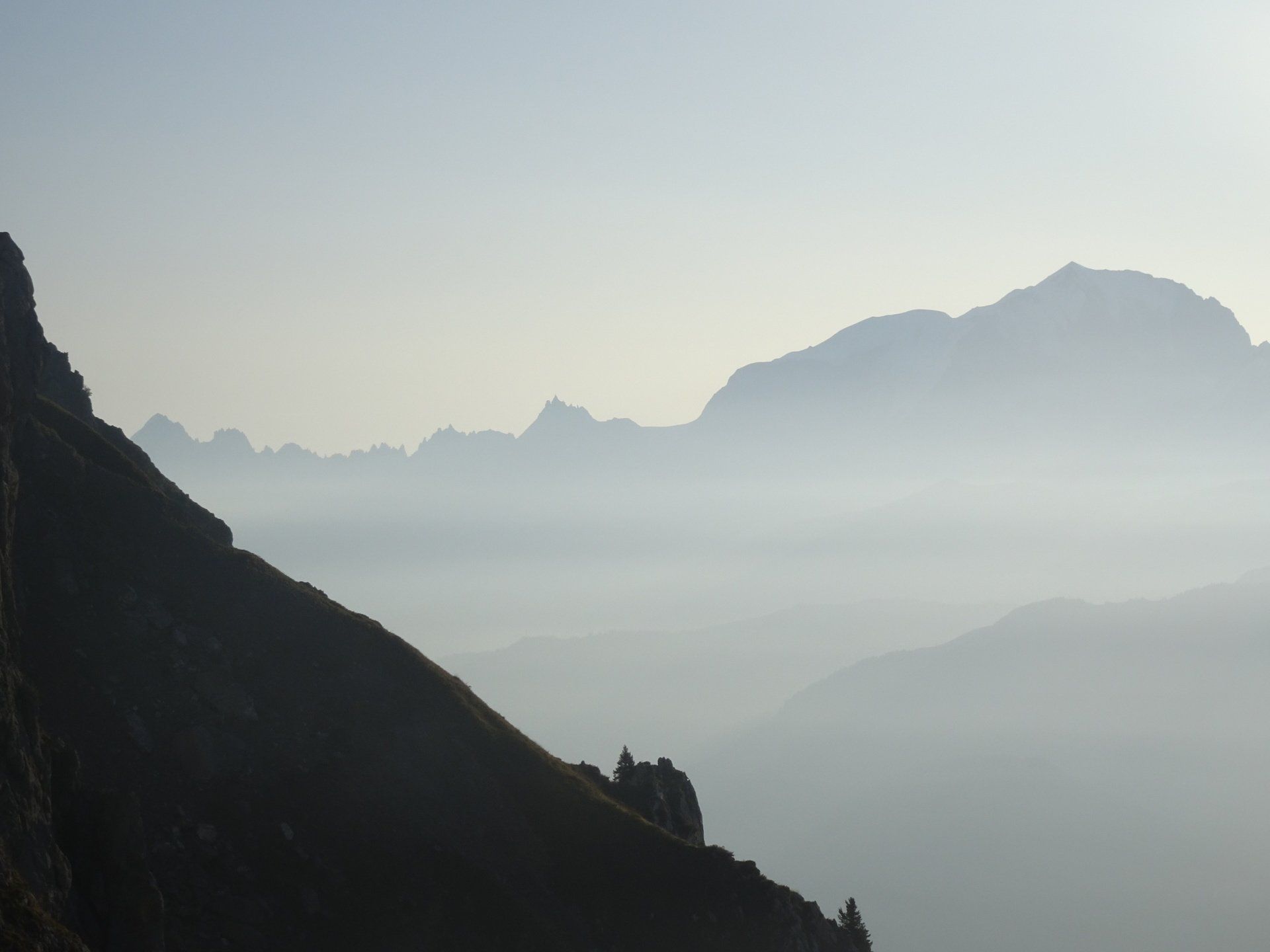 Petite pause bien méritée. La-bas, en face, le Mont blanc et les sommets qui l'entourent.