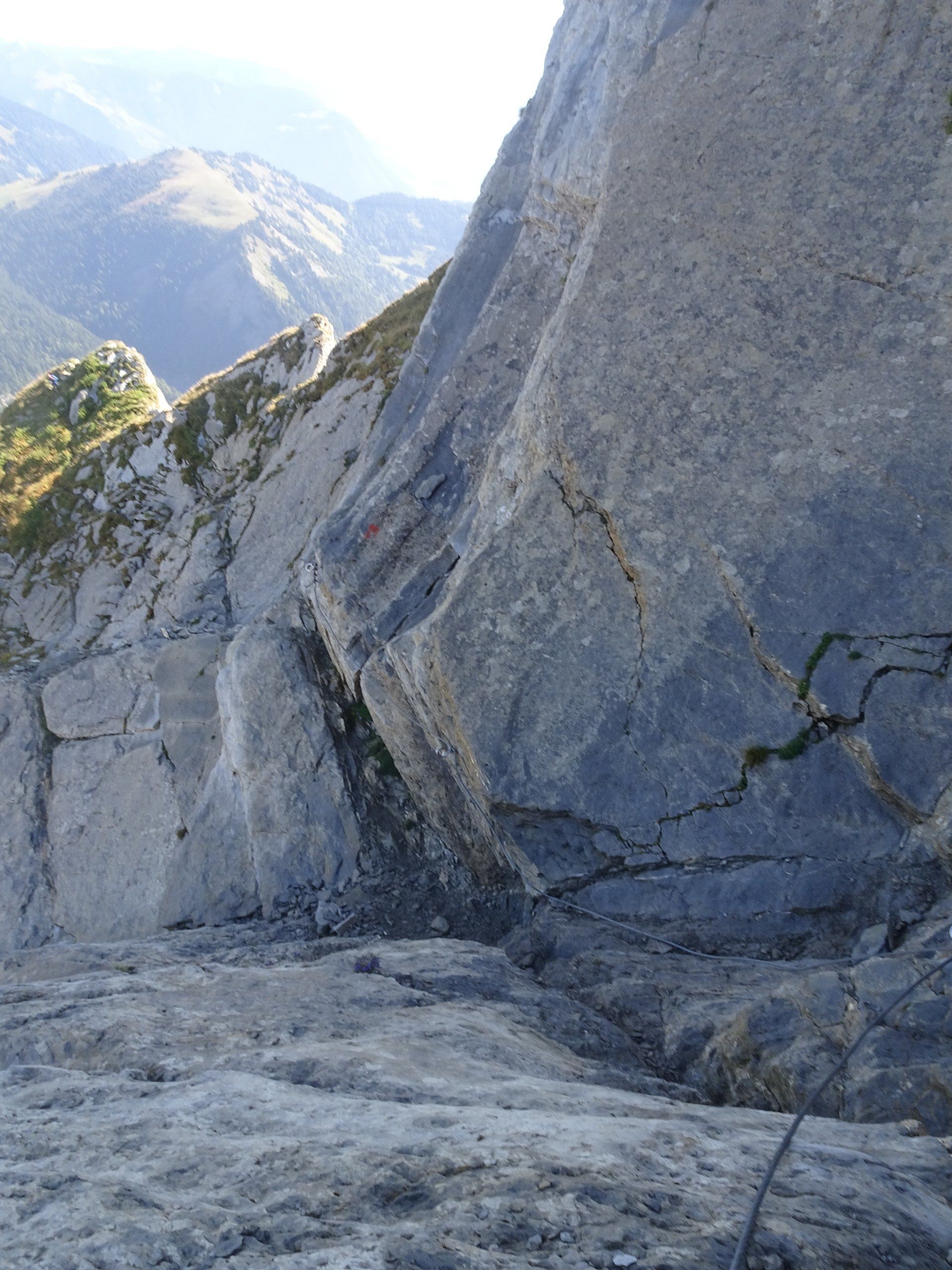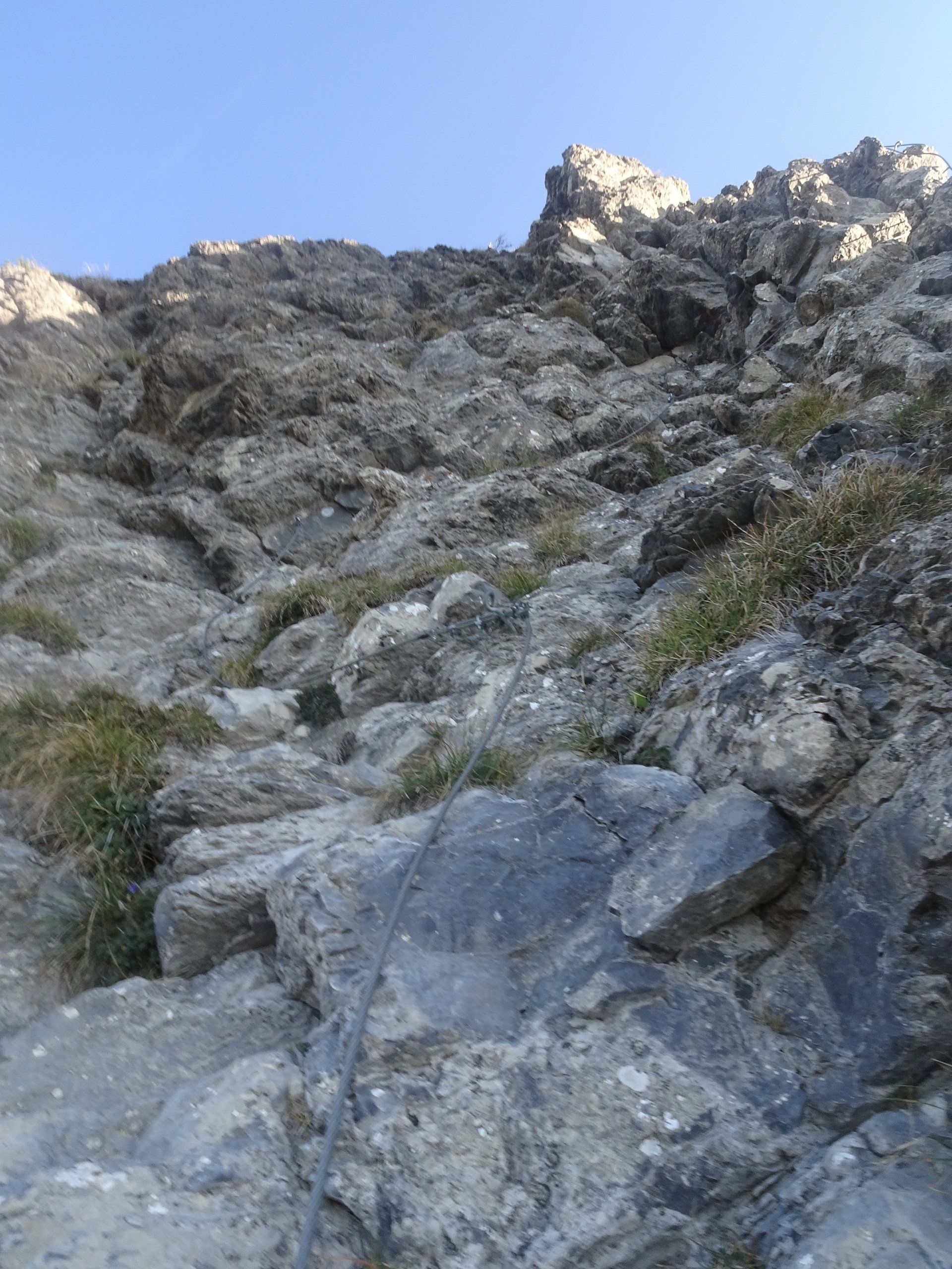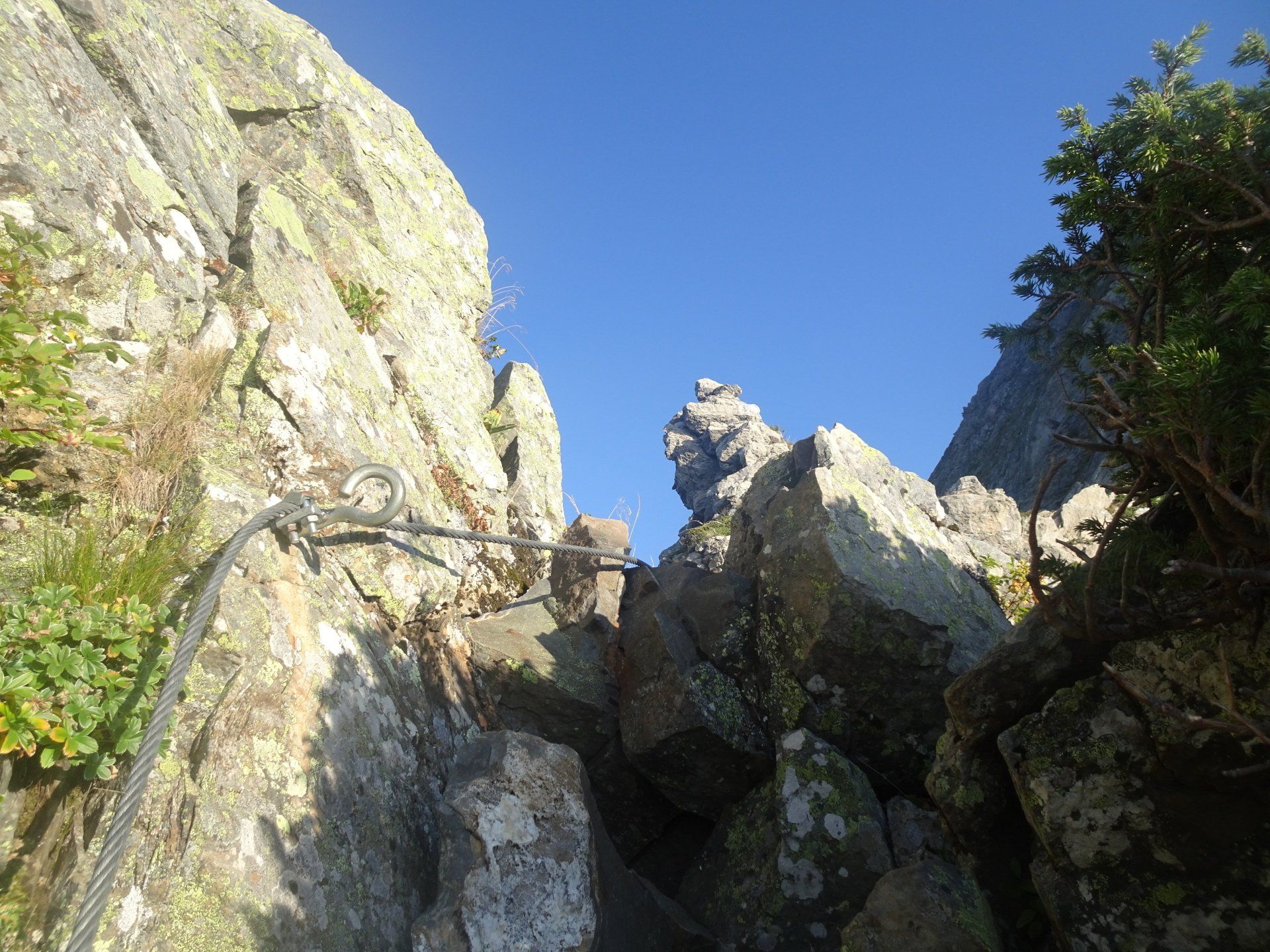 Après le col, nous empruntons le Pas de l'Ours, câblé ouf !