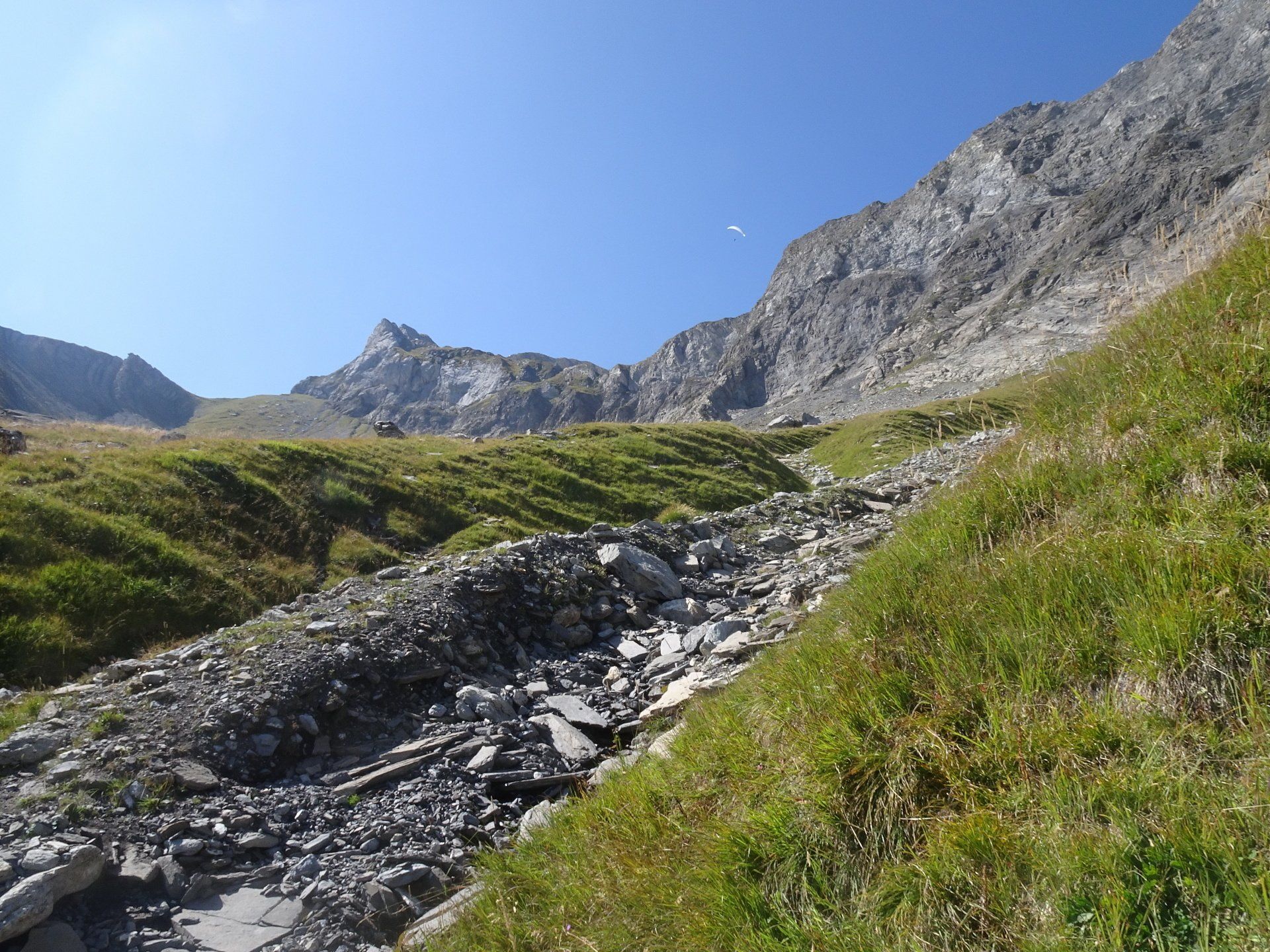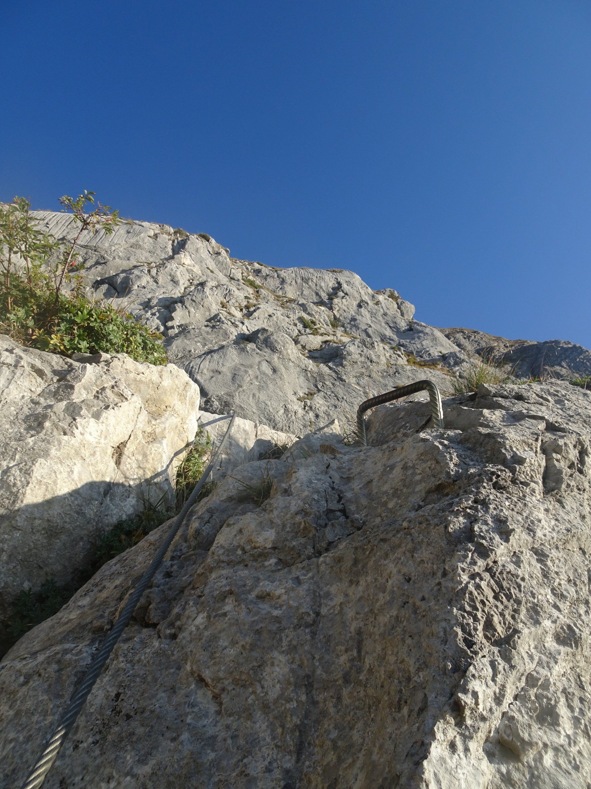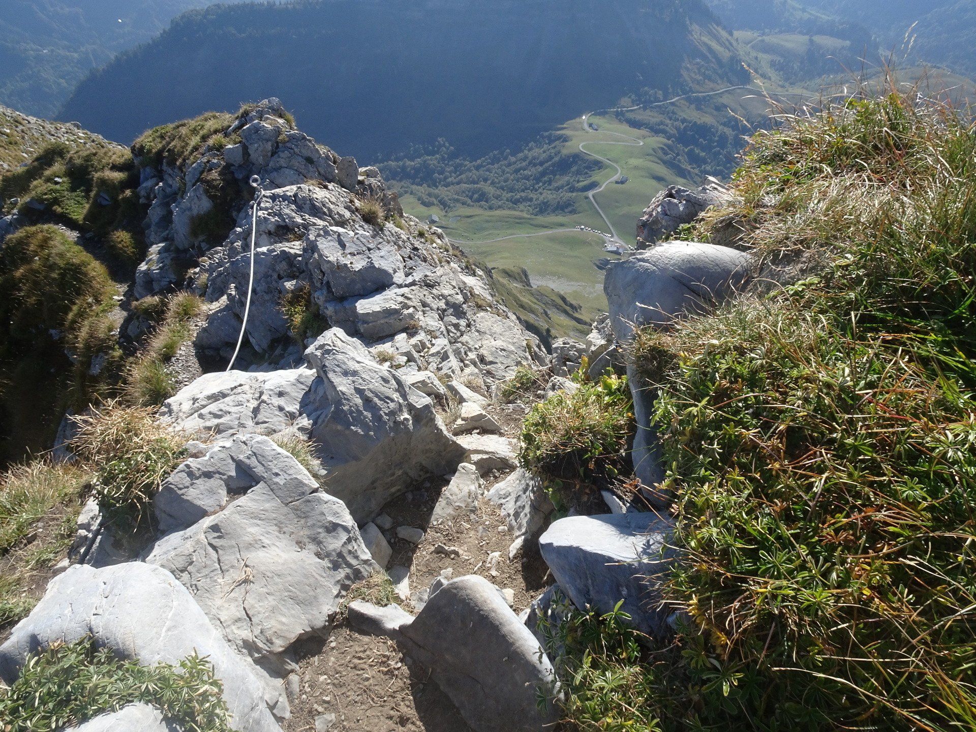 Après le col, nous empruntons le Pas de l'Ours, câblé ouf !