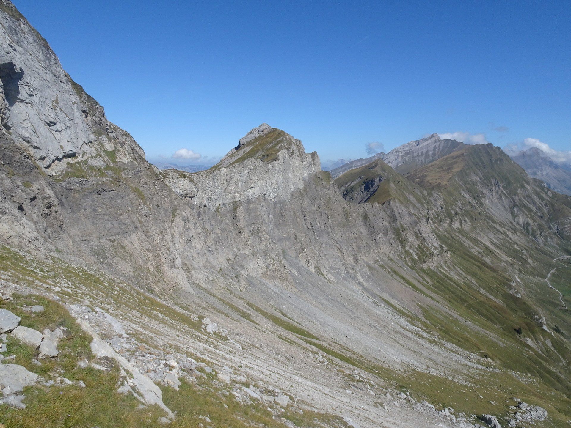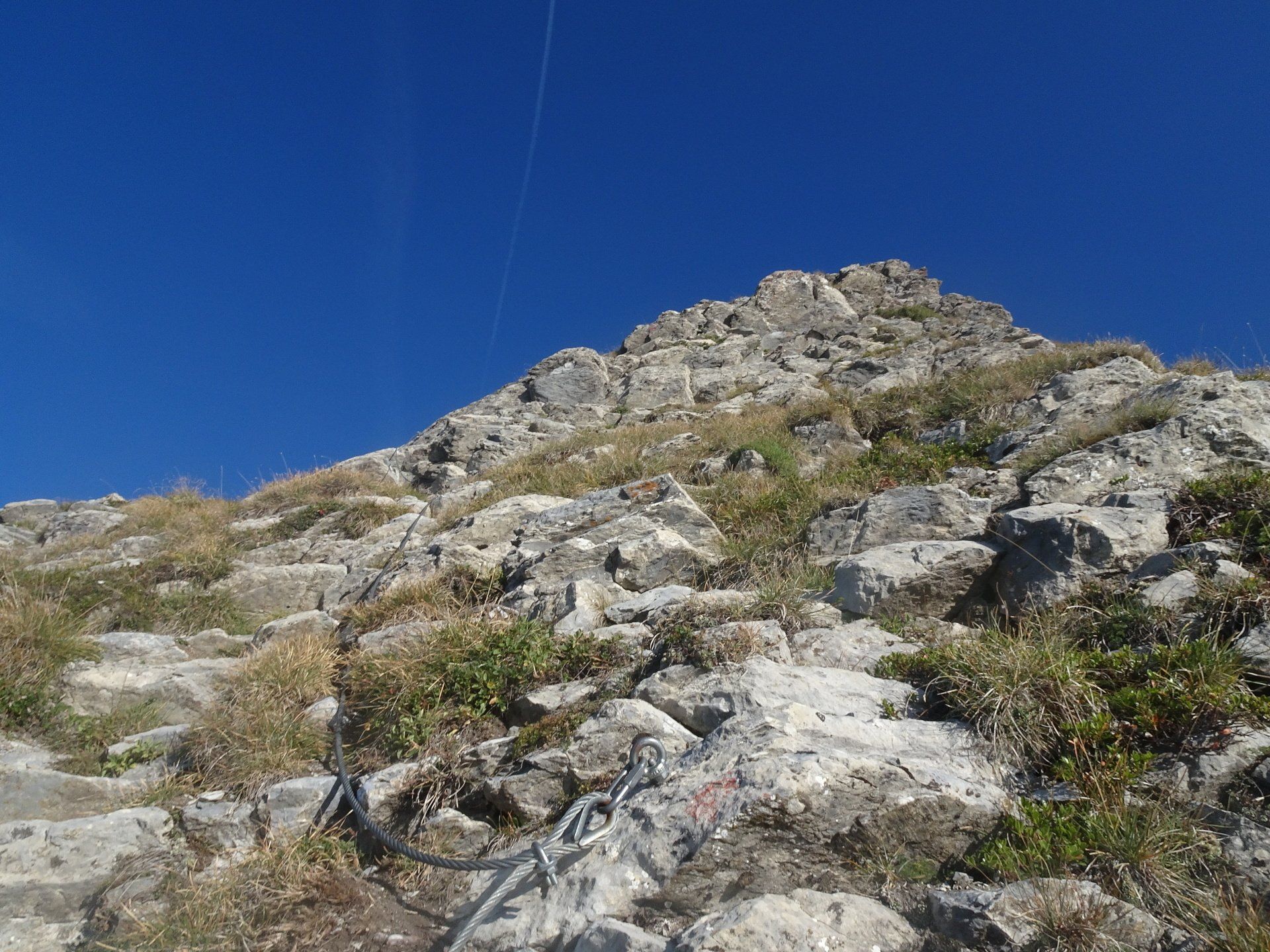 Arrivés au col, il nous reste une longue crête à monter, également avec une alternance de tronçons équipés, d'autres libres.