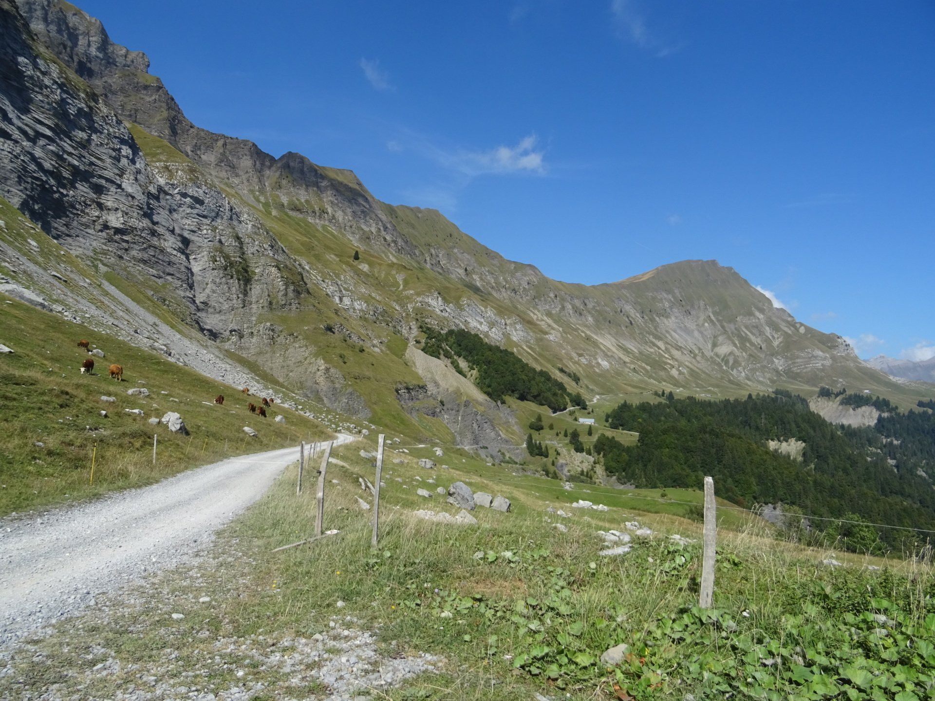 Après une grande traversée dans la direction opposée à notre direction finale, nous rejoignons la route forestière à la hauteur du chalet du Merdassier du Milieu.