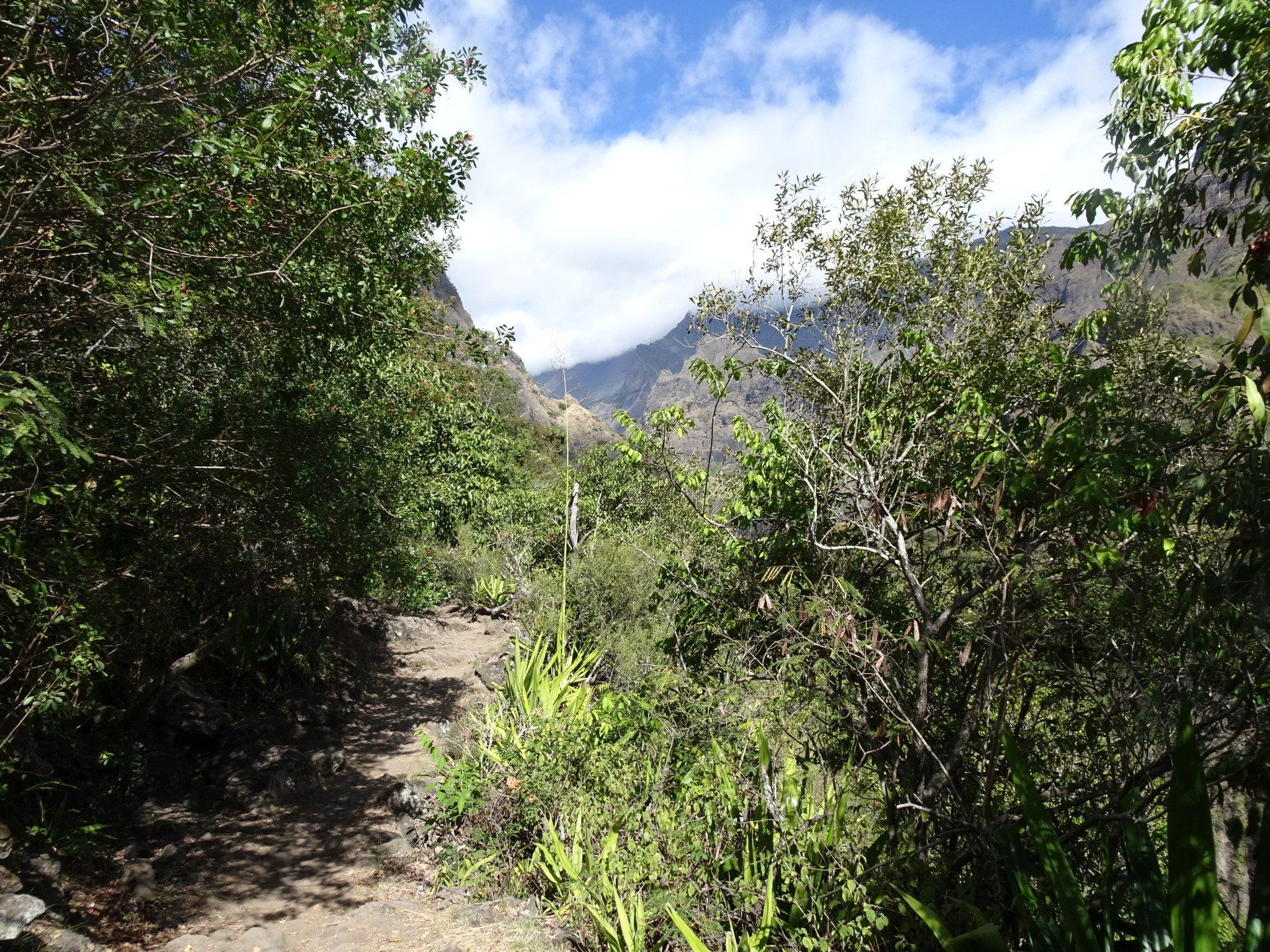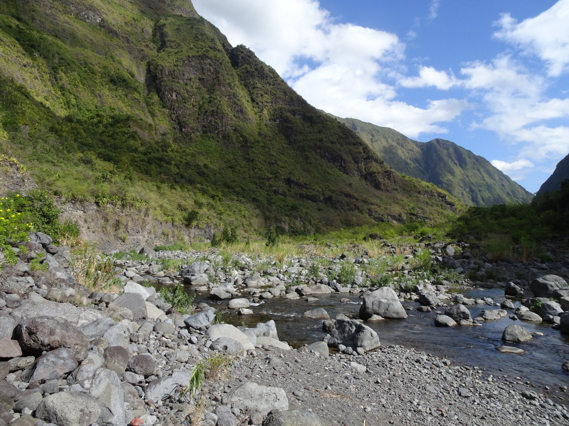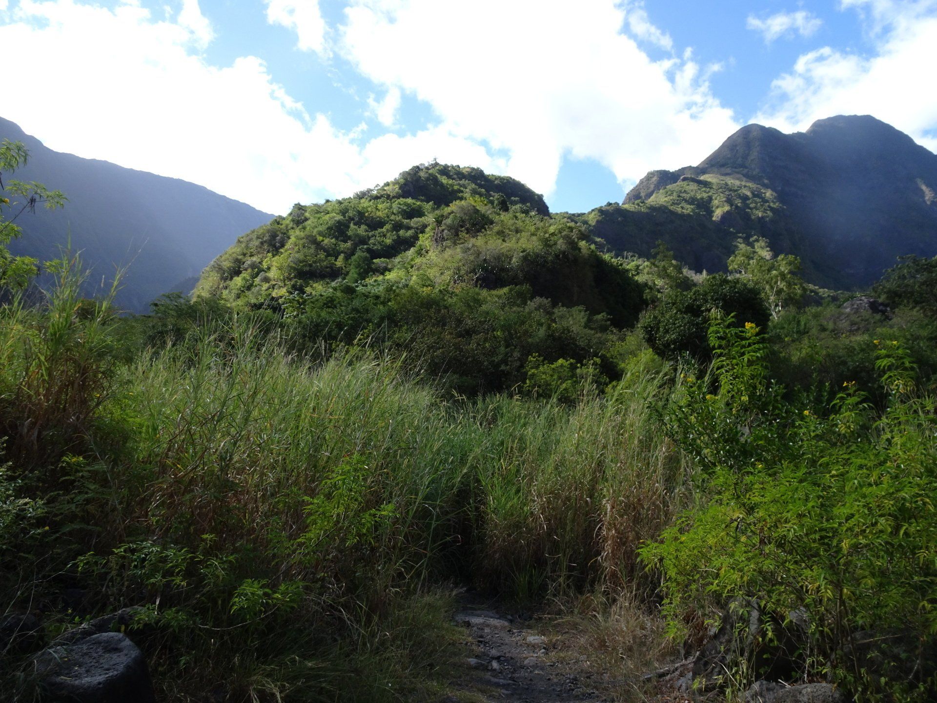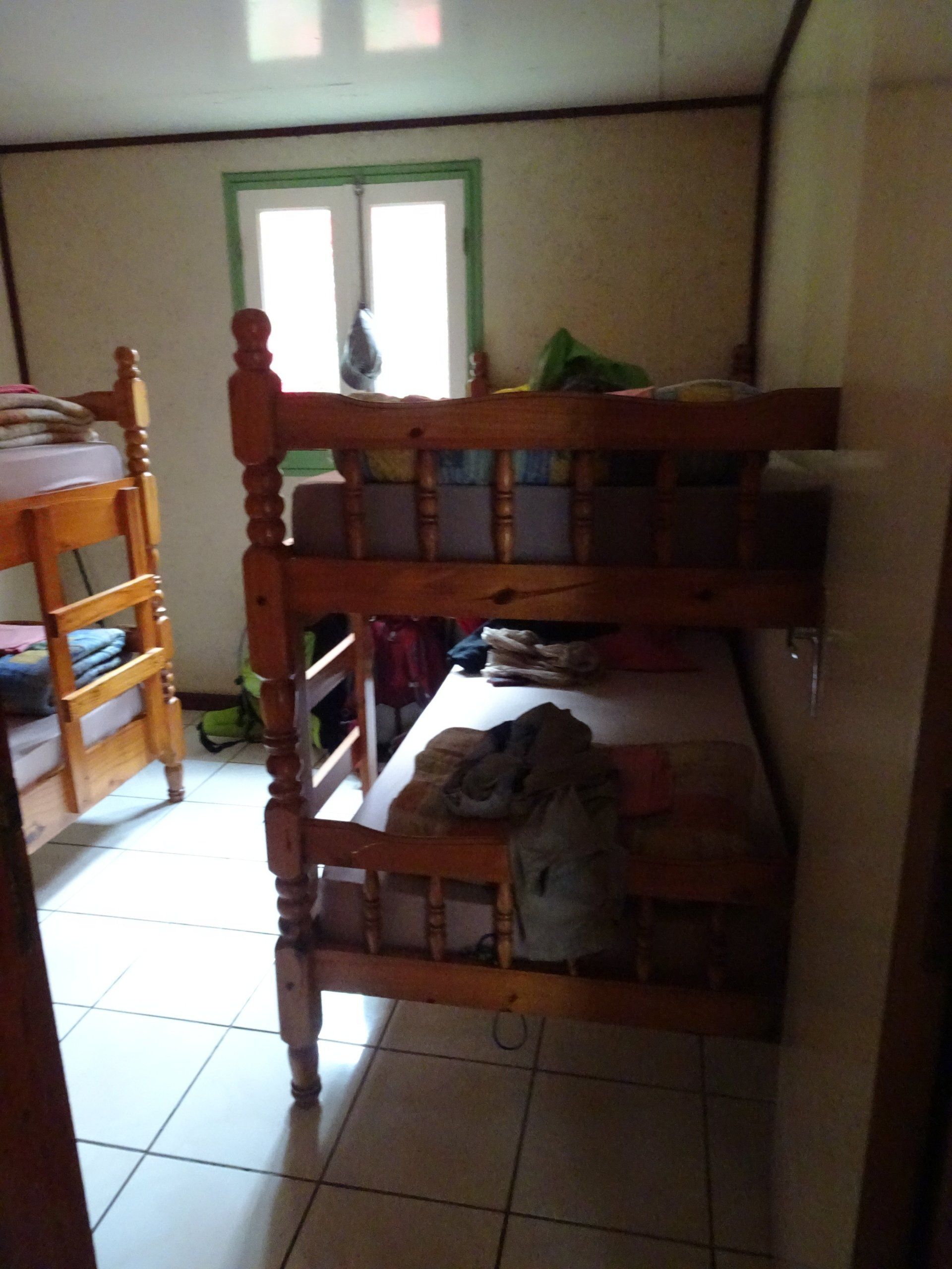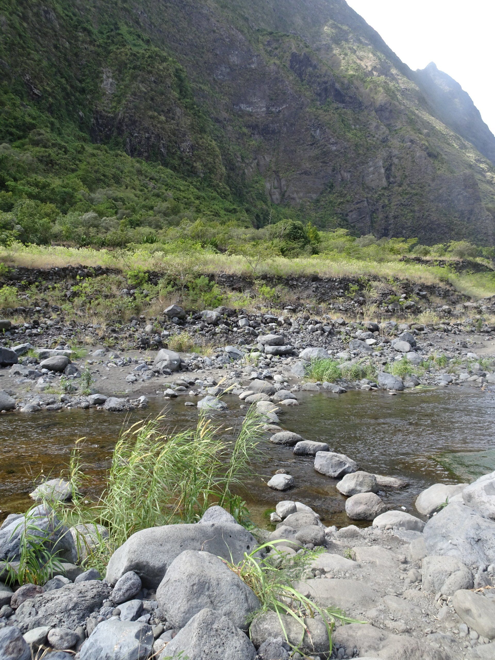Demi tour, nous finissons par trouver l’église et suivons de vue un trailer qui s’enfile par un étroit passage entre 2 propriétés qui nous conduit jusqu’au départ du chemin descendant vers 2 bras.