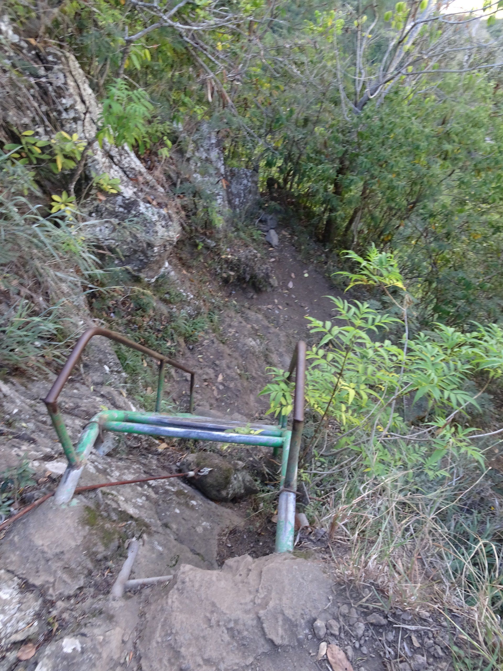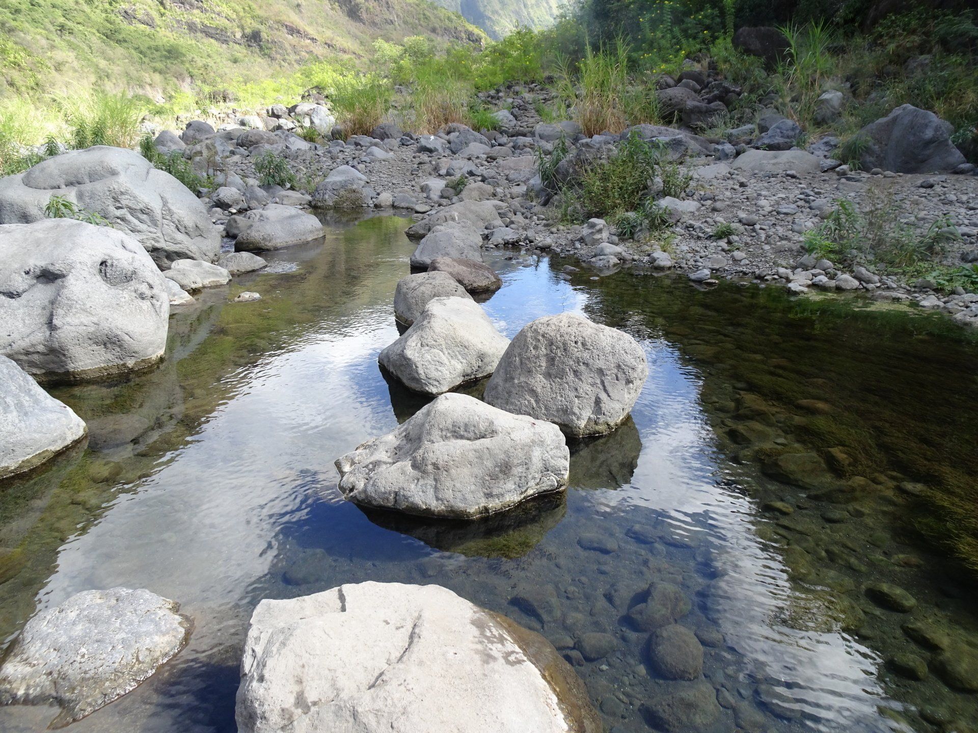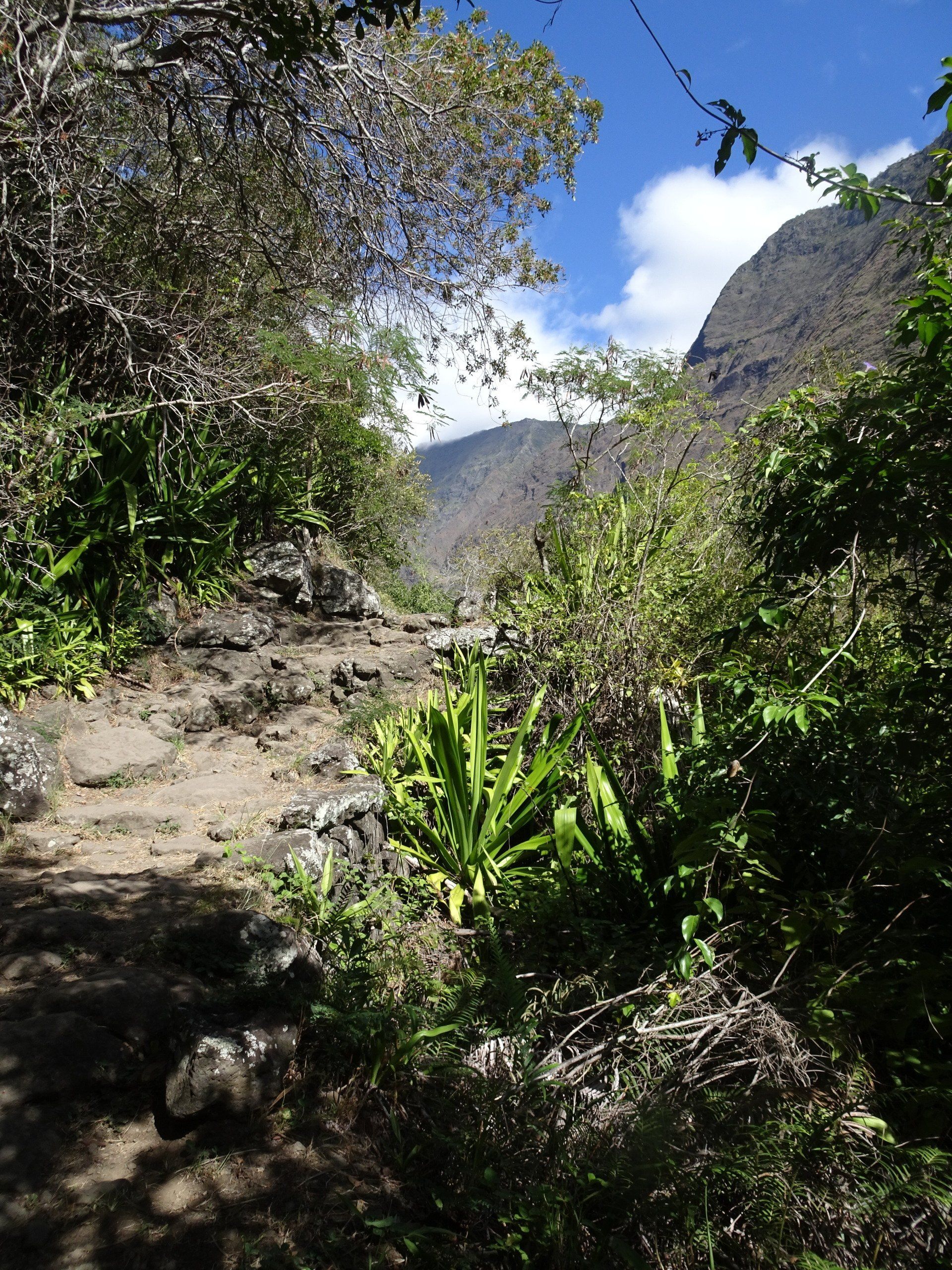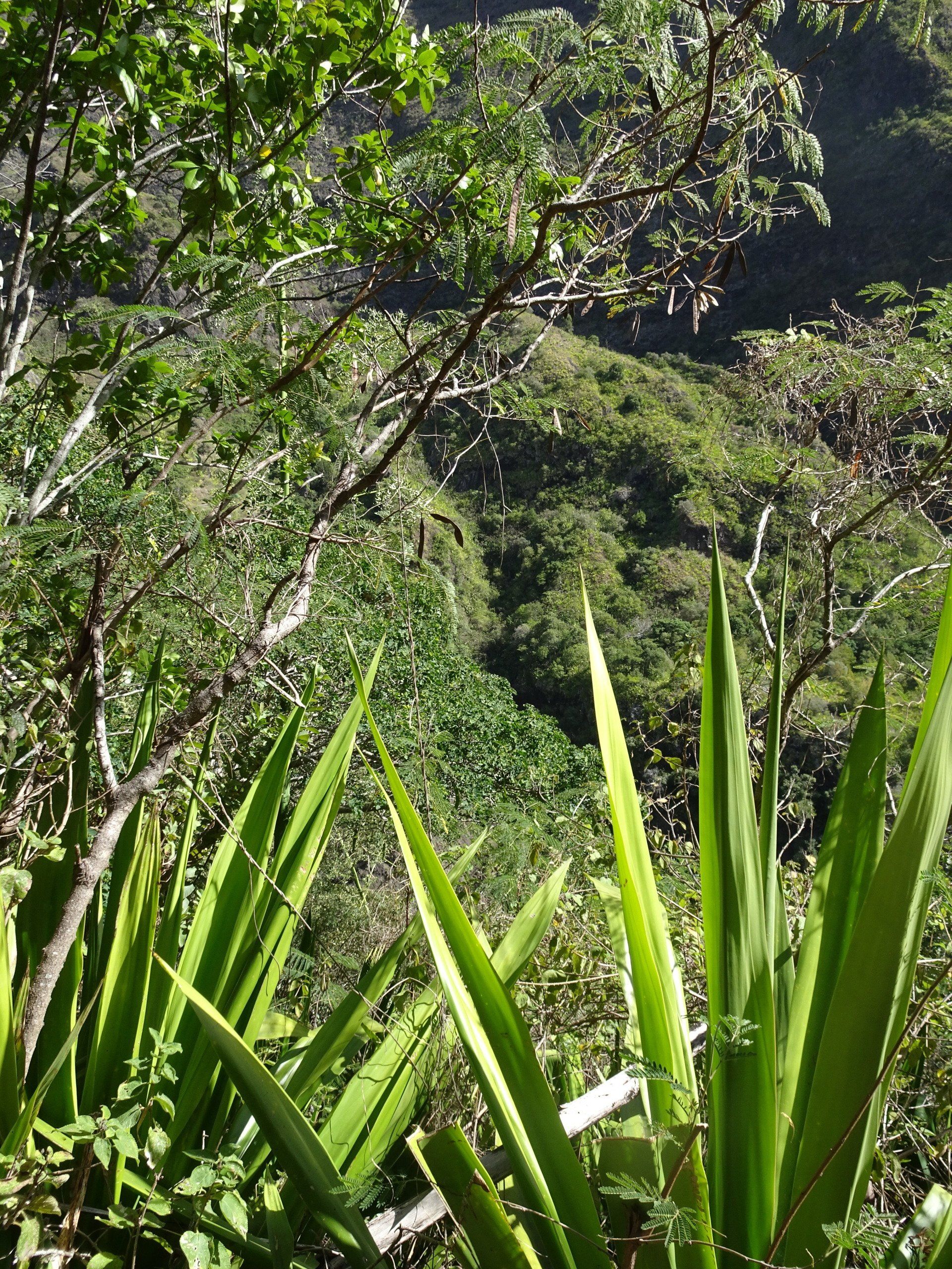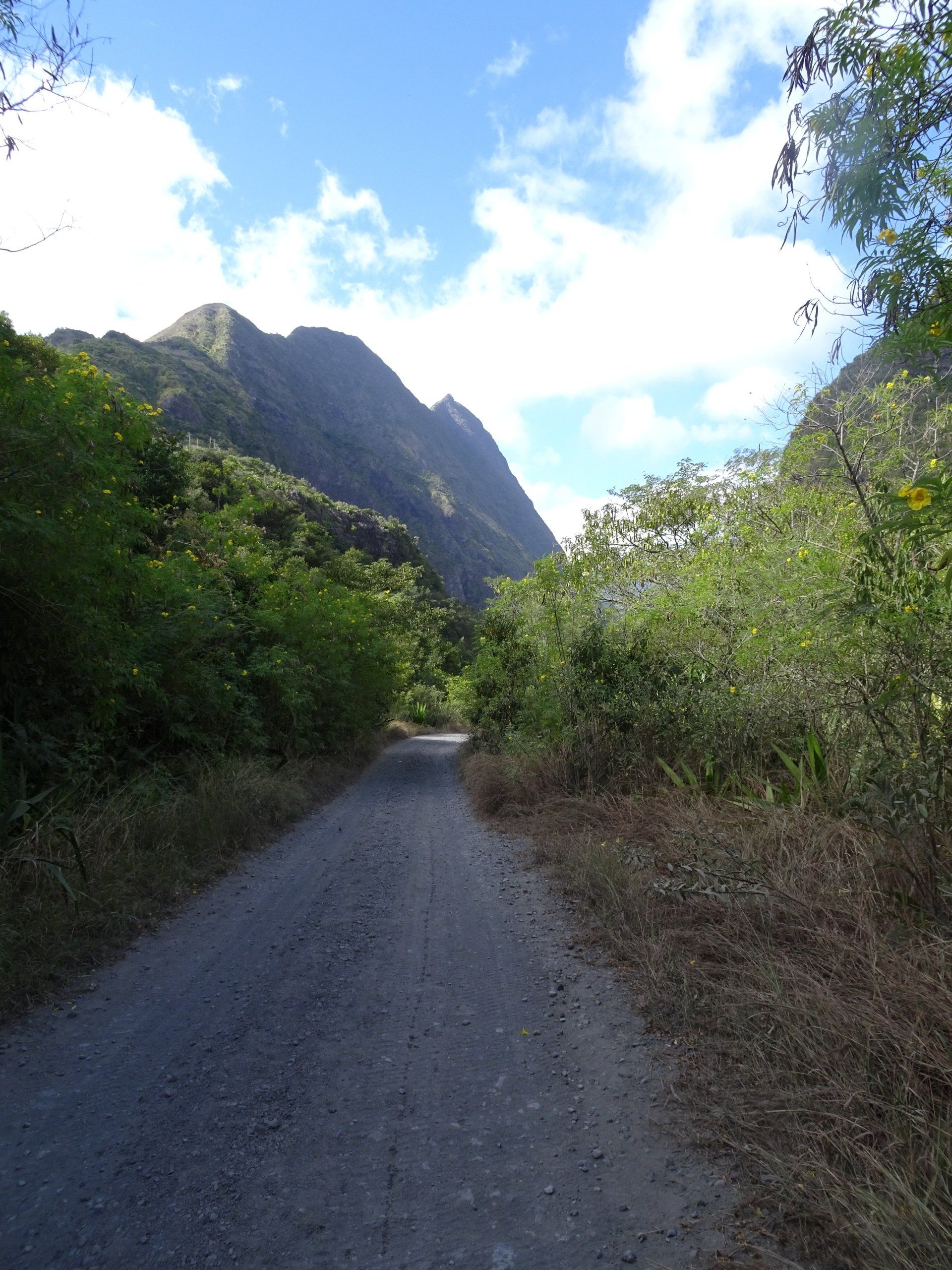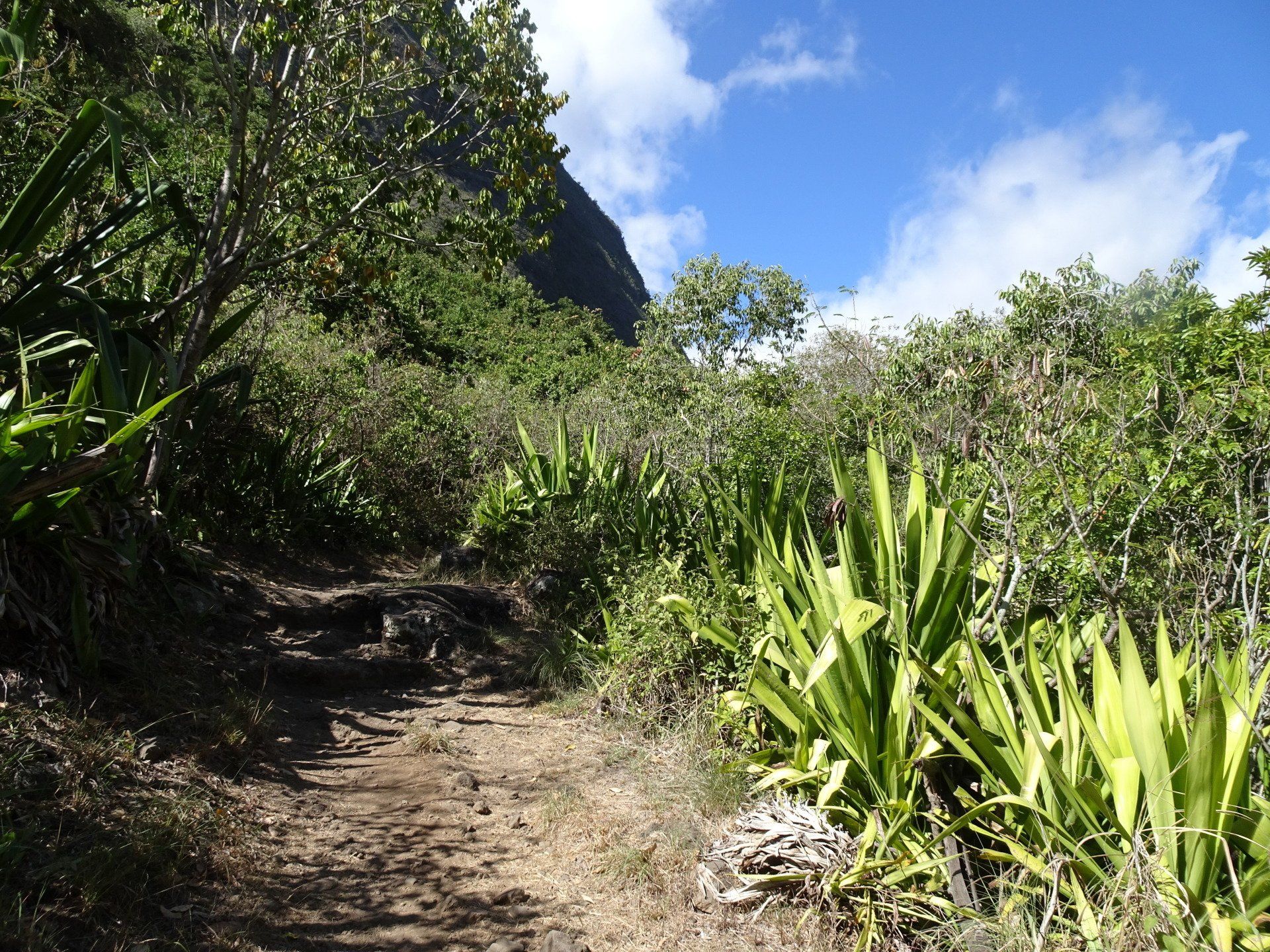 Demi tour, nous finissons par trouver l’église et suivons de vue un trailer qui s’enfile par un étroit passage entre 2 propriétés qui nous conduit jusqu’au départ du chemin descendant vers 2 bras.