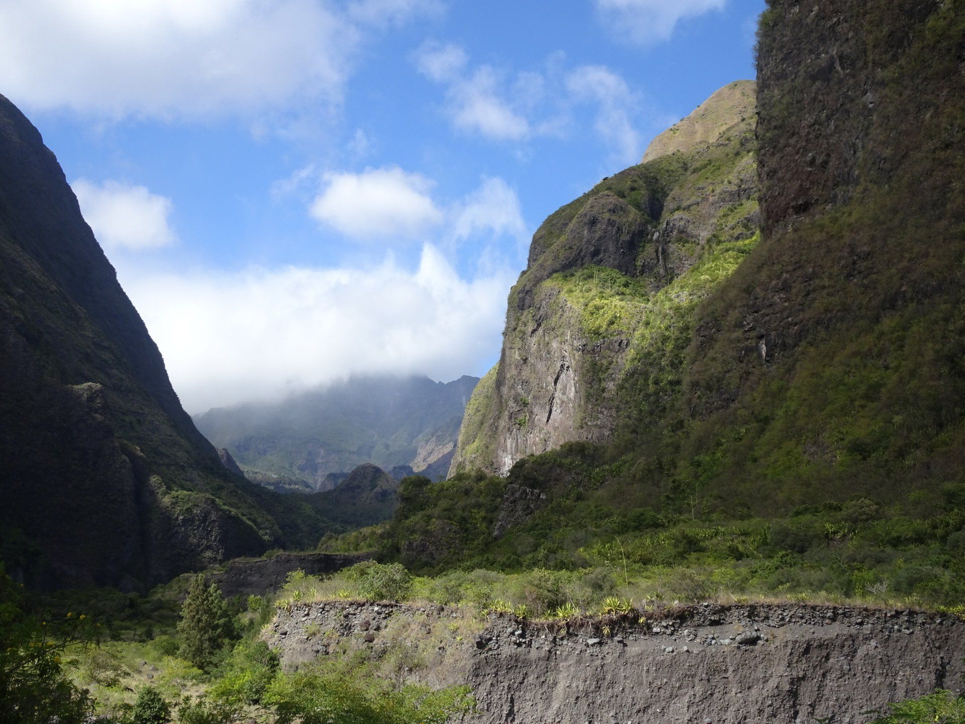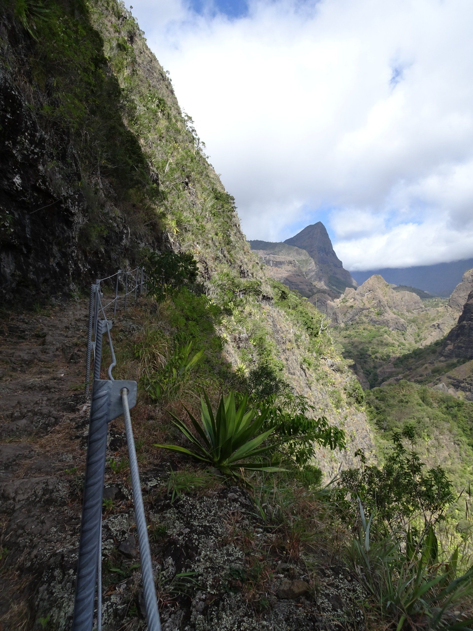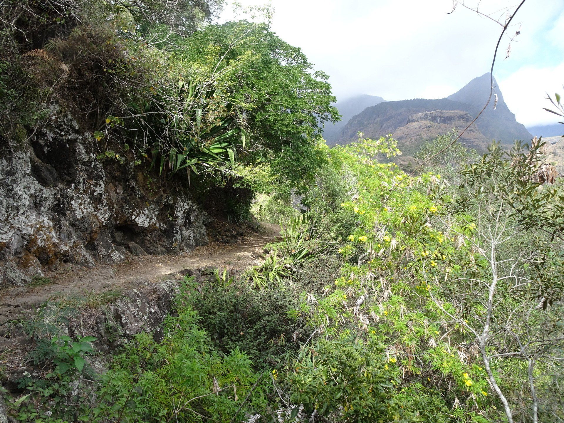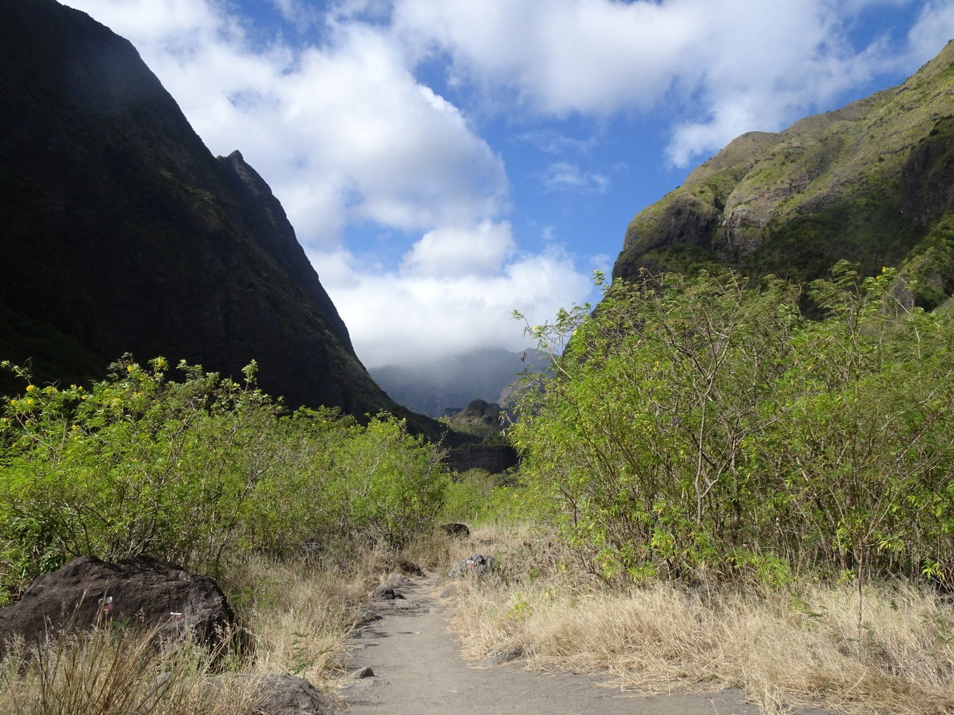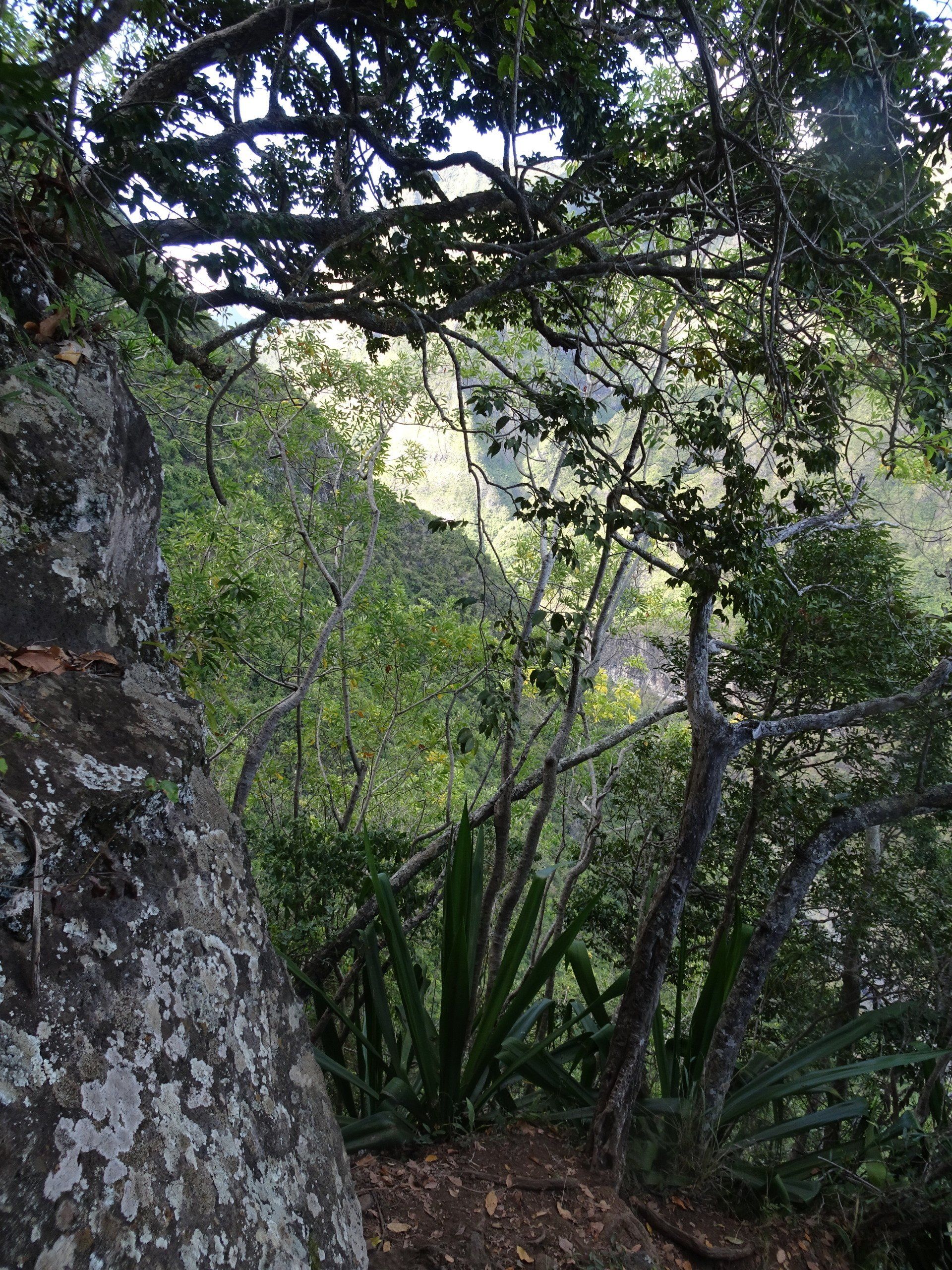 Demi tour, nous finissons par trouver l’église et suivons de vue un trailer qui s’enfile par un étroit passage entre 2 propriétés qui nous conduit jusqu’au départ du chemin descendant vers 2 bras.