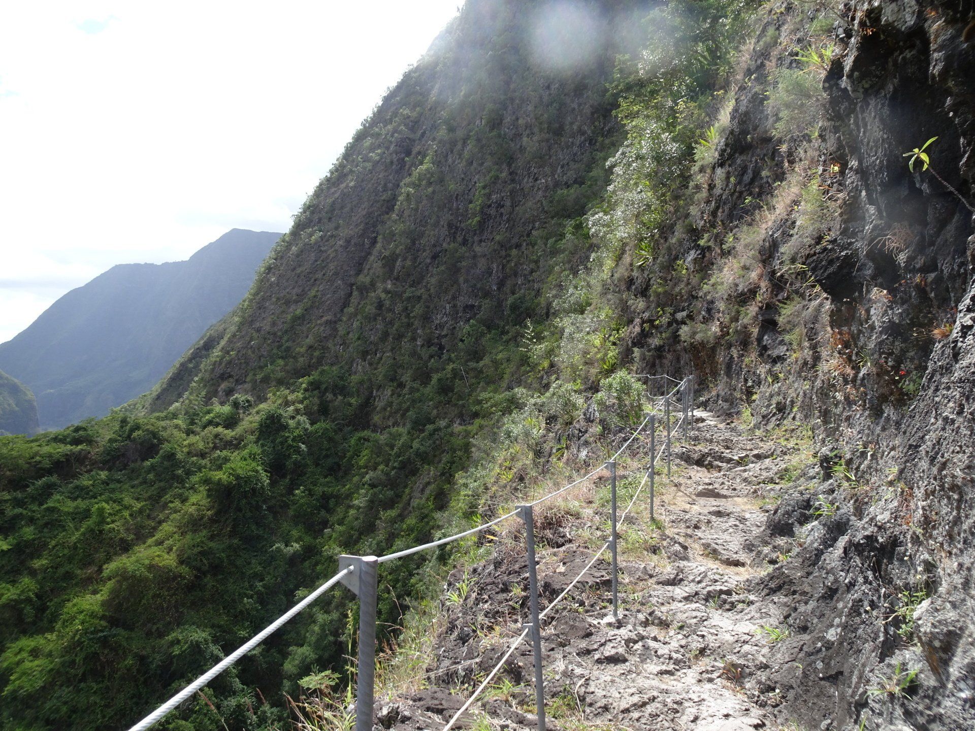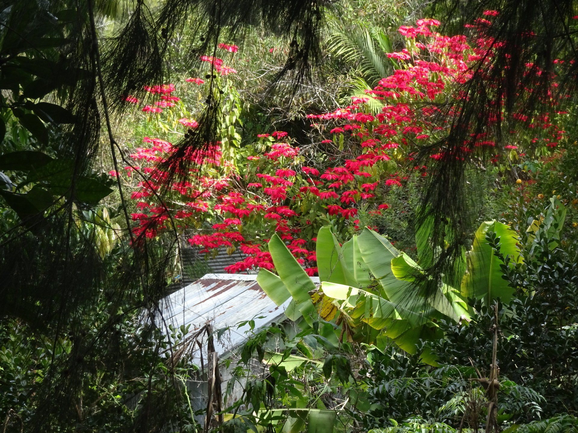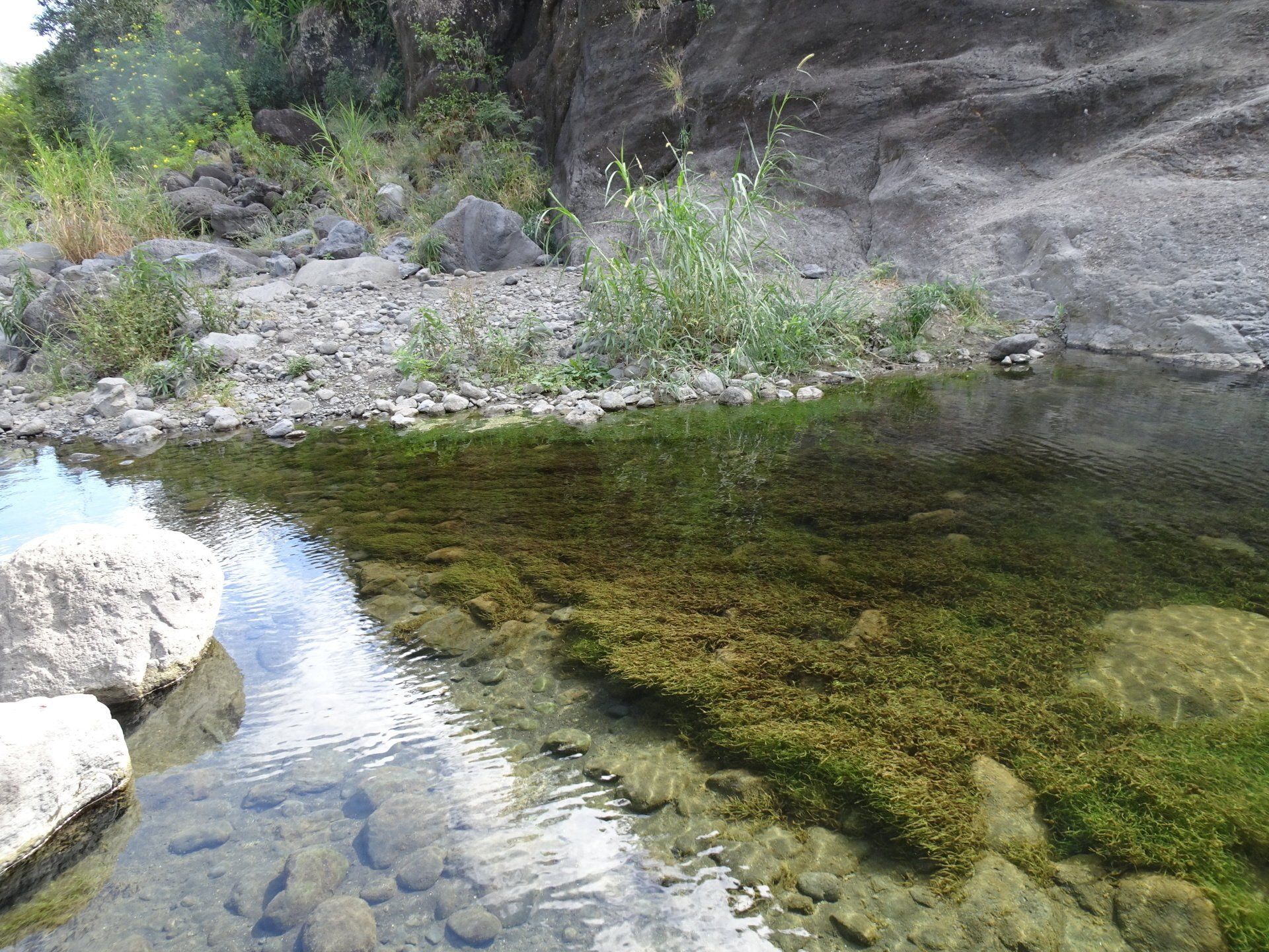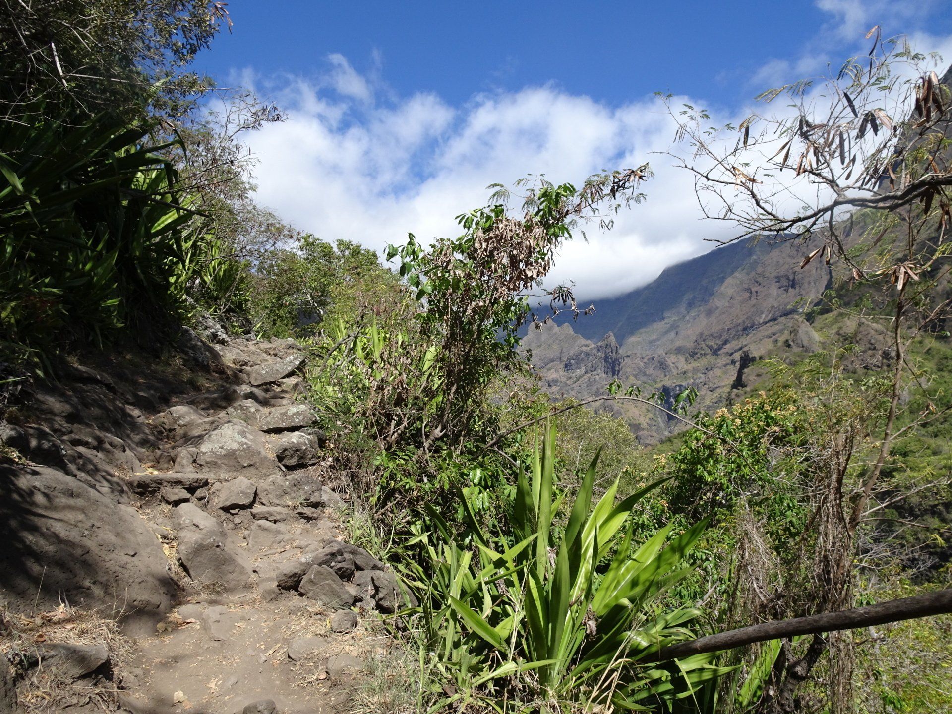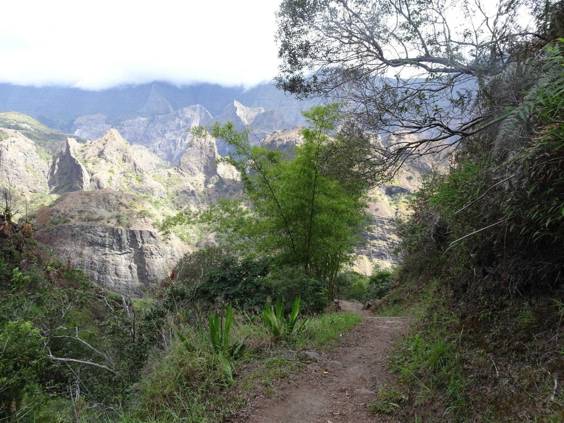 Demi tour, nous finissons par trouver l’église et suivons de vue un trailer qui s’enfile par un étroit passage entre 2 propriétés qui nous conduit jusqu’au départ du chemin descendant vers 2 bras.
