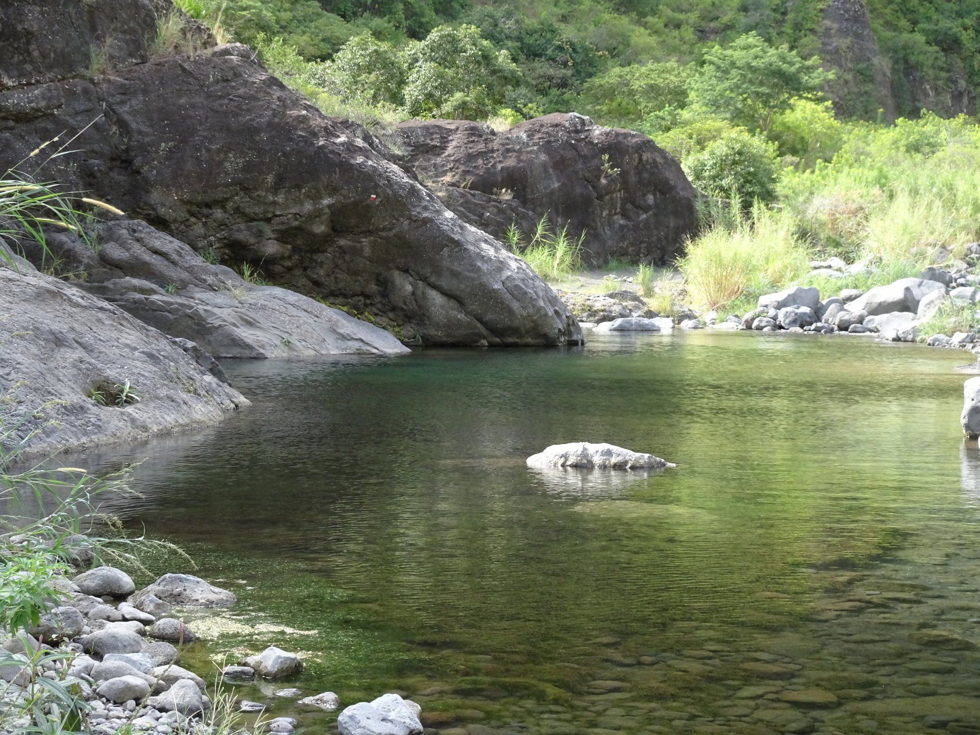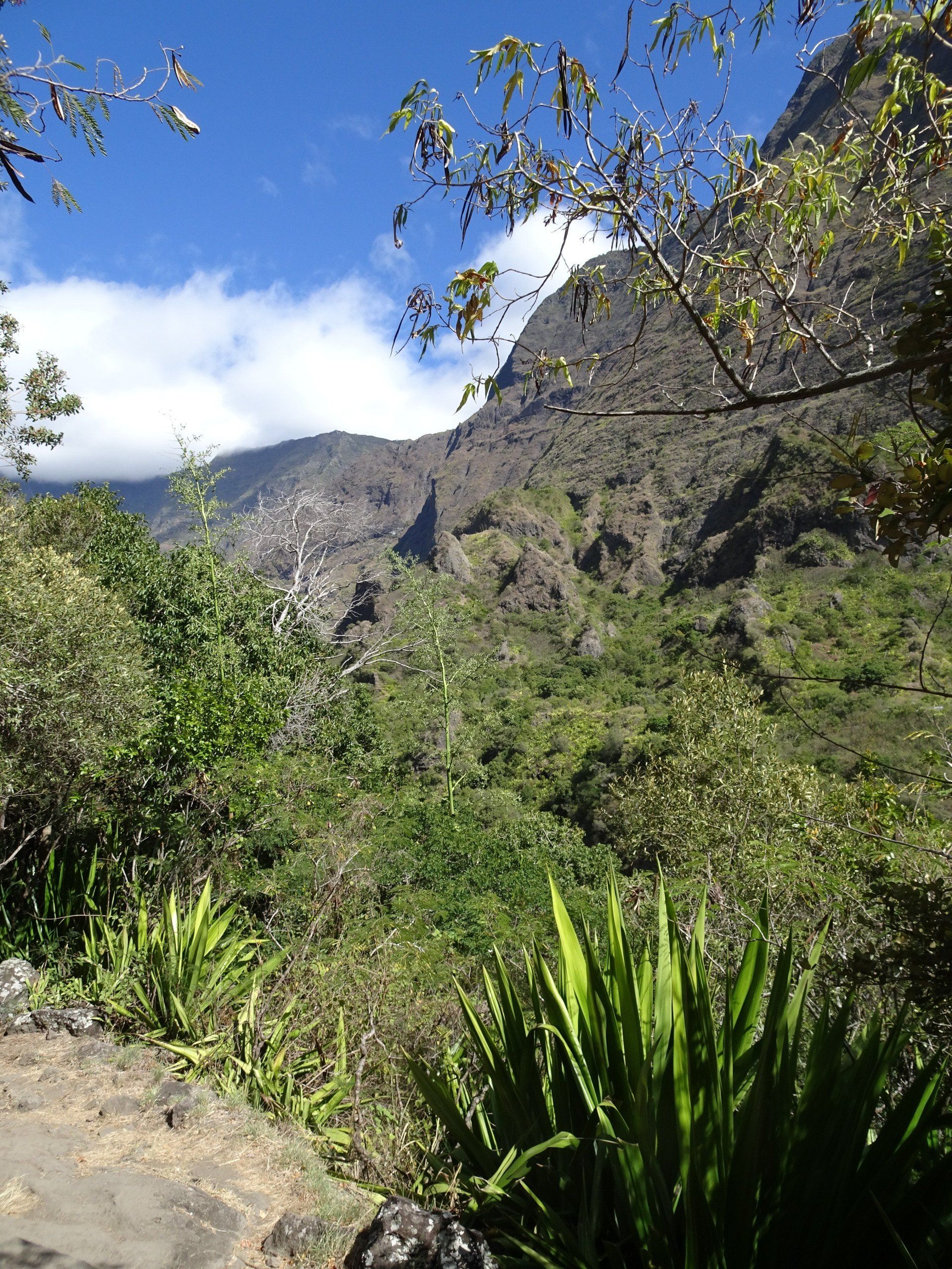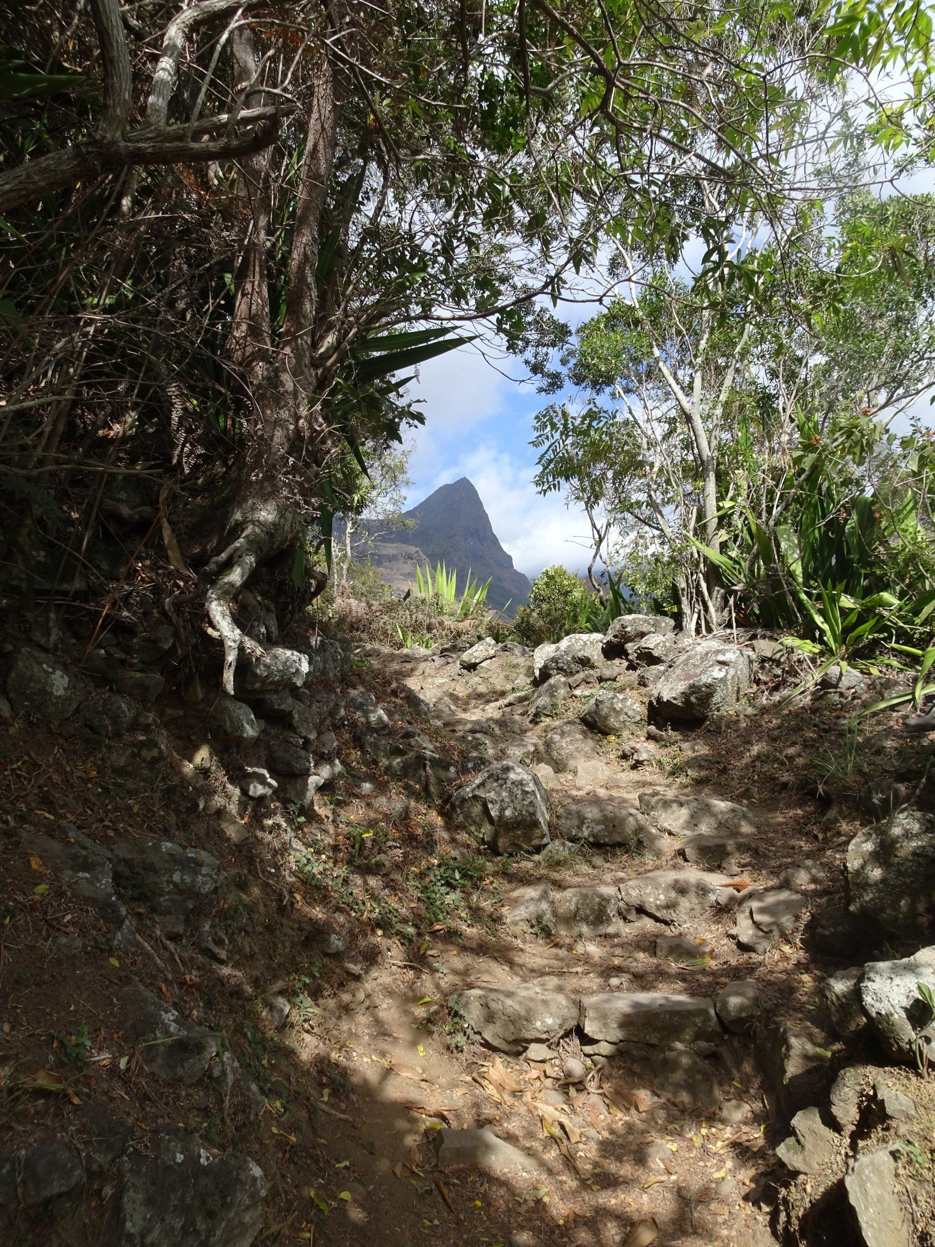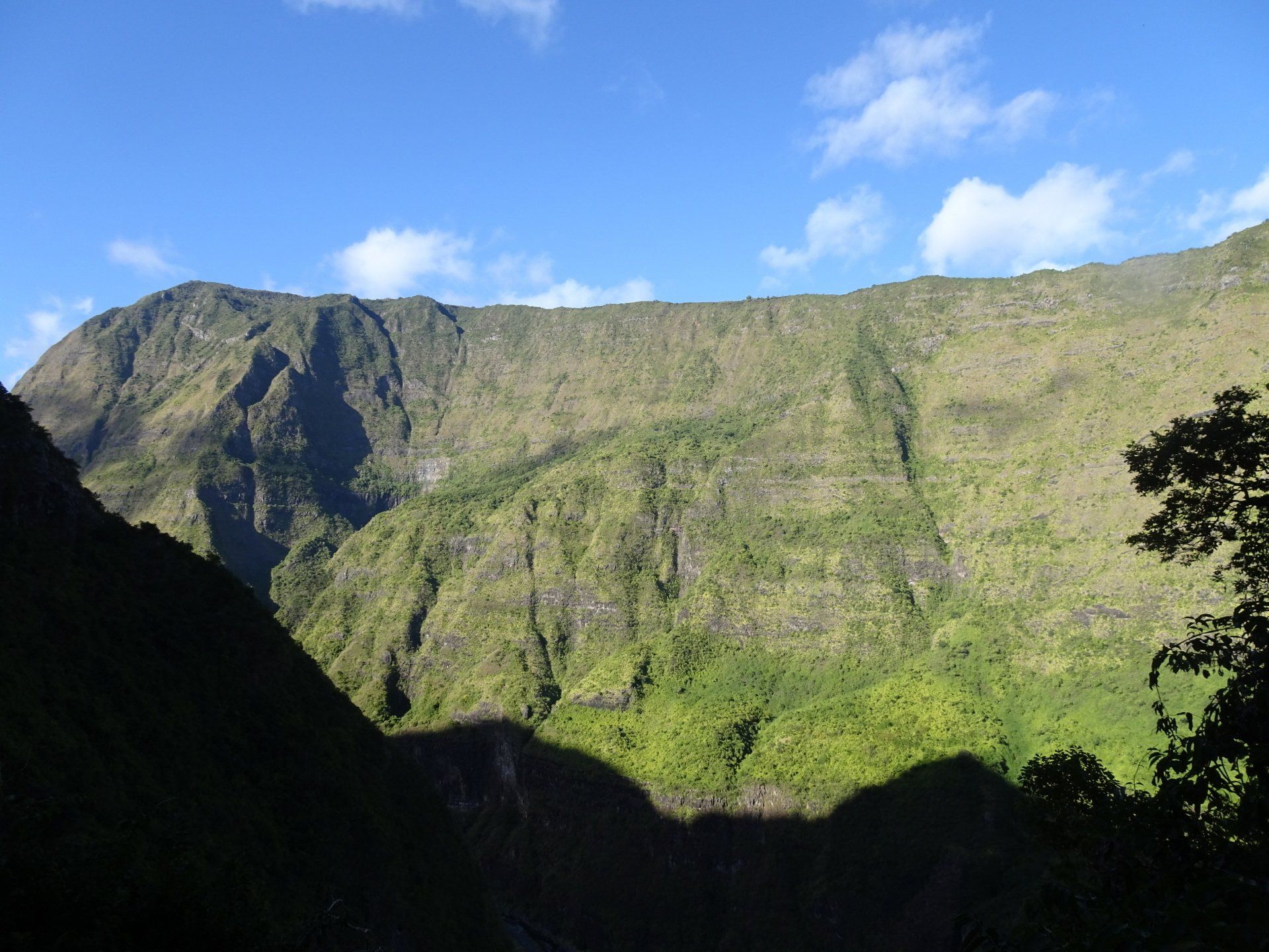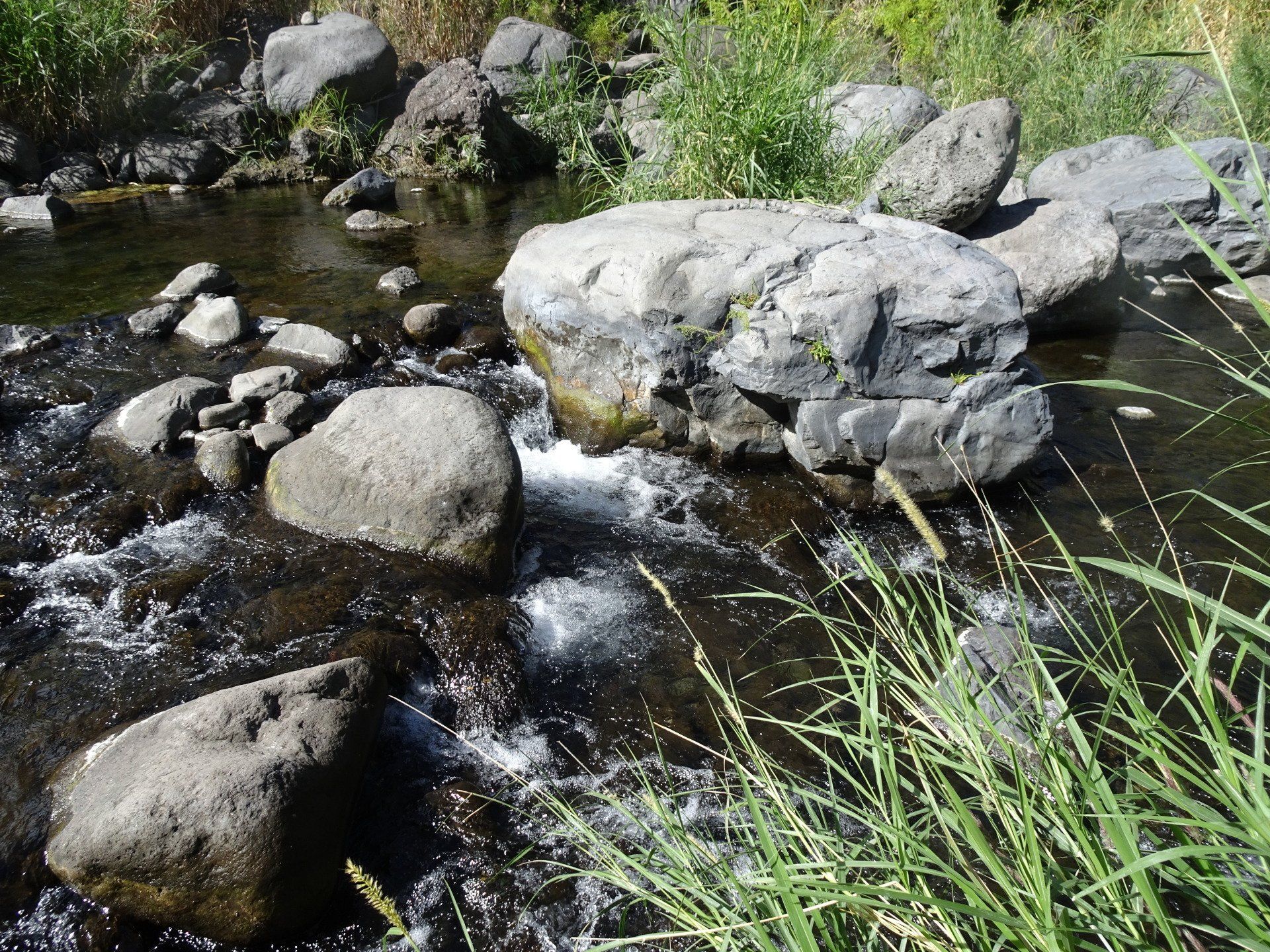 Demi tour, nous finissons par trouver l’église et suivons de vue un trailer qui s’enfile par un étroit passage entre 2 propriétés qui nous conduit jusqu’au départ du chemin descendant vers 2 bras.