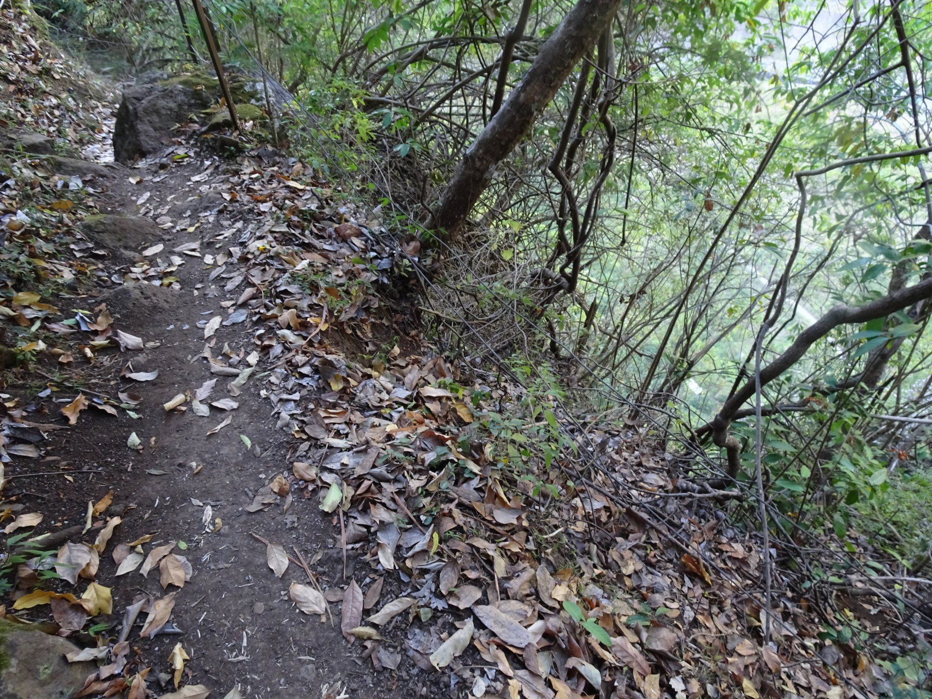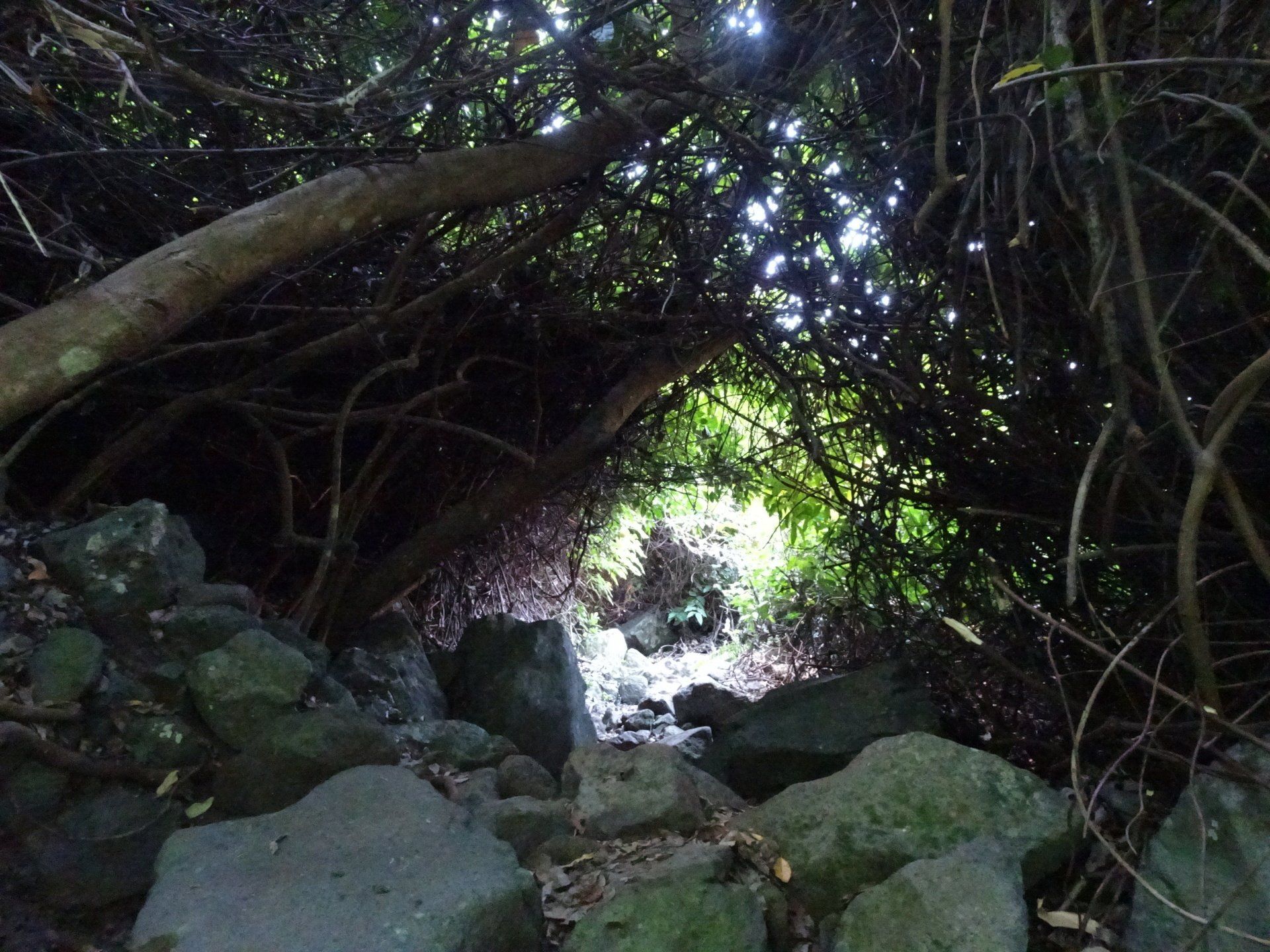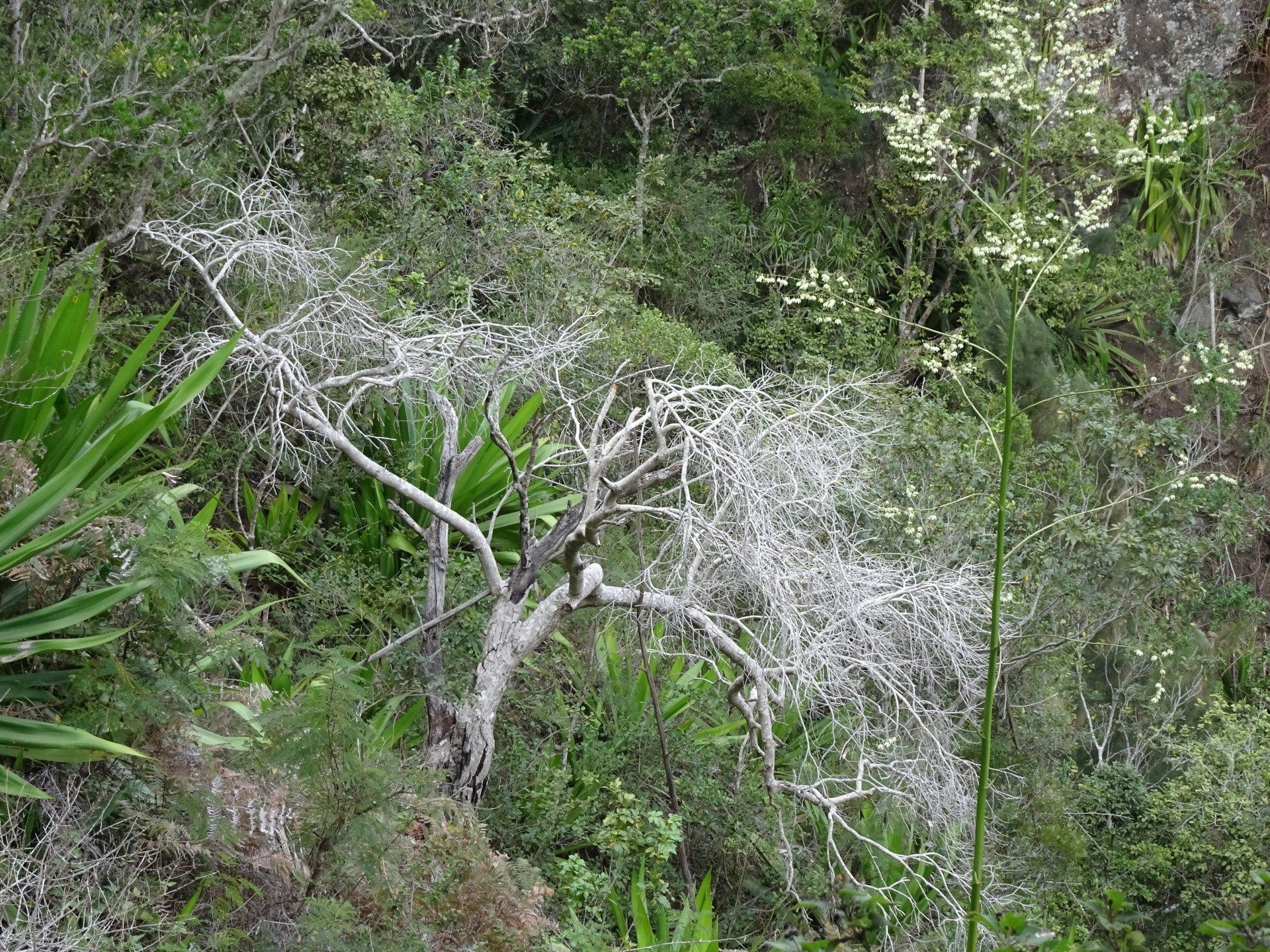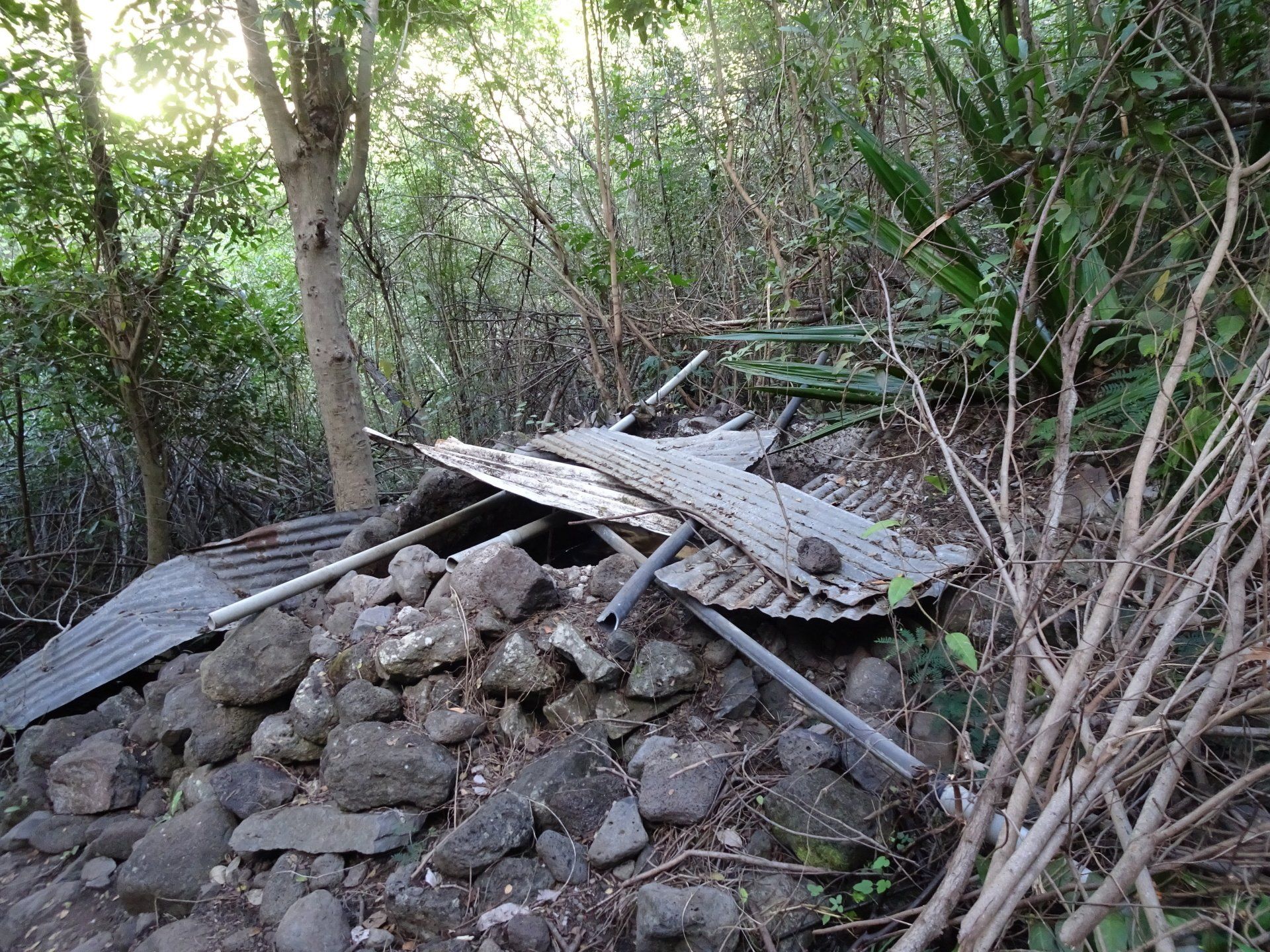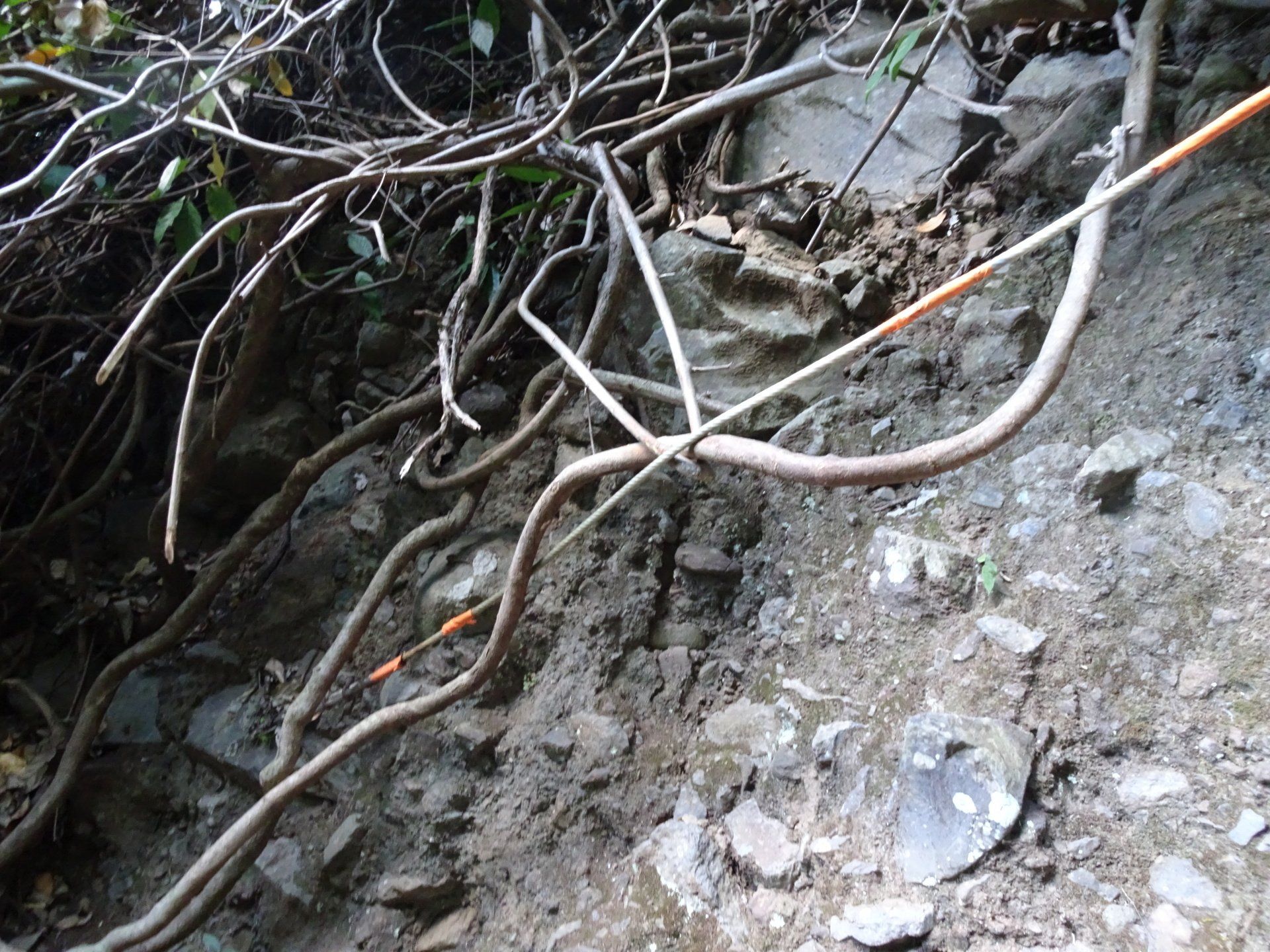 Demi tour, nous finissons par trouver l’église et suivons de vue un trailer qui s’enfile par un étroit passage entre 2 propriétés qui nous conduit jusqu’au départ du chemin descendant vers 2 bras.