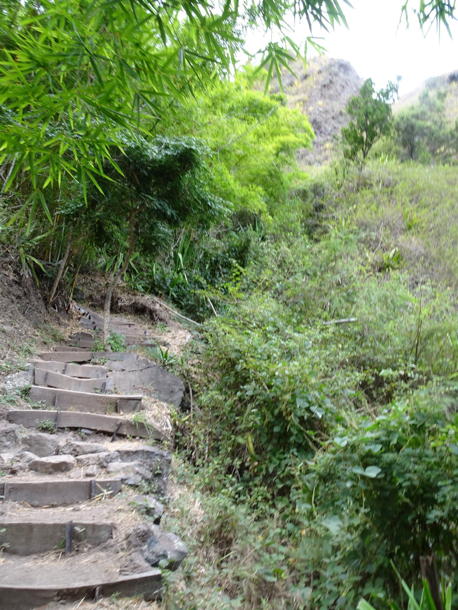 A l’arrêt de bus, nous demandons à un jeune du coin la direction de l’église. Il nous indique de remonter la route. Après plusieurs virages, le doute s’installe, le parcours ressemble de moins en moins à un raccourci. Plus loin, nous demandons confirmation de la direction de l’église à un automobiliste qui marque un stop. Il nous indique vers le bas. No comment !