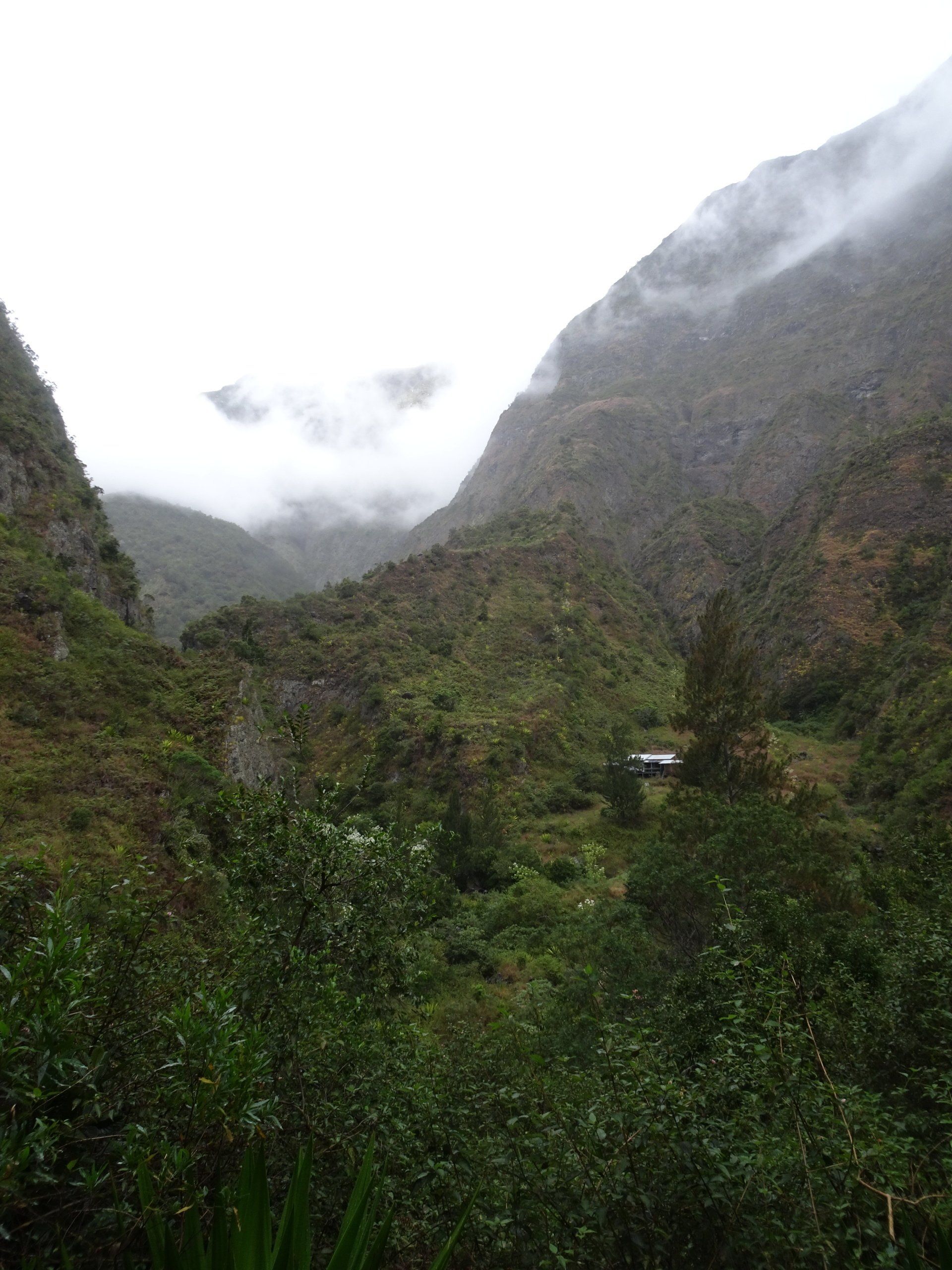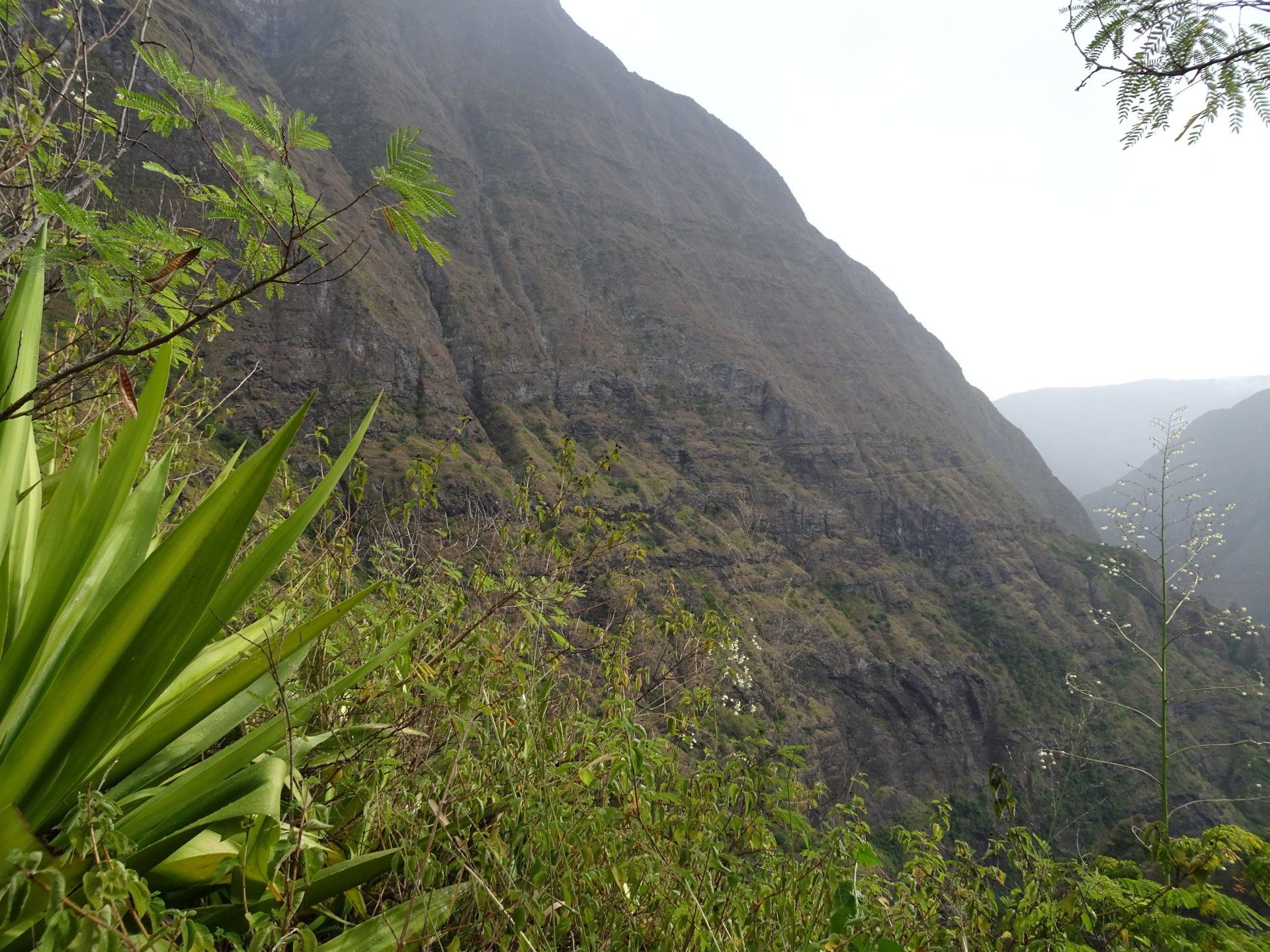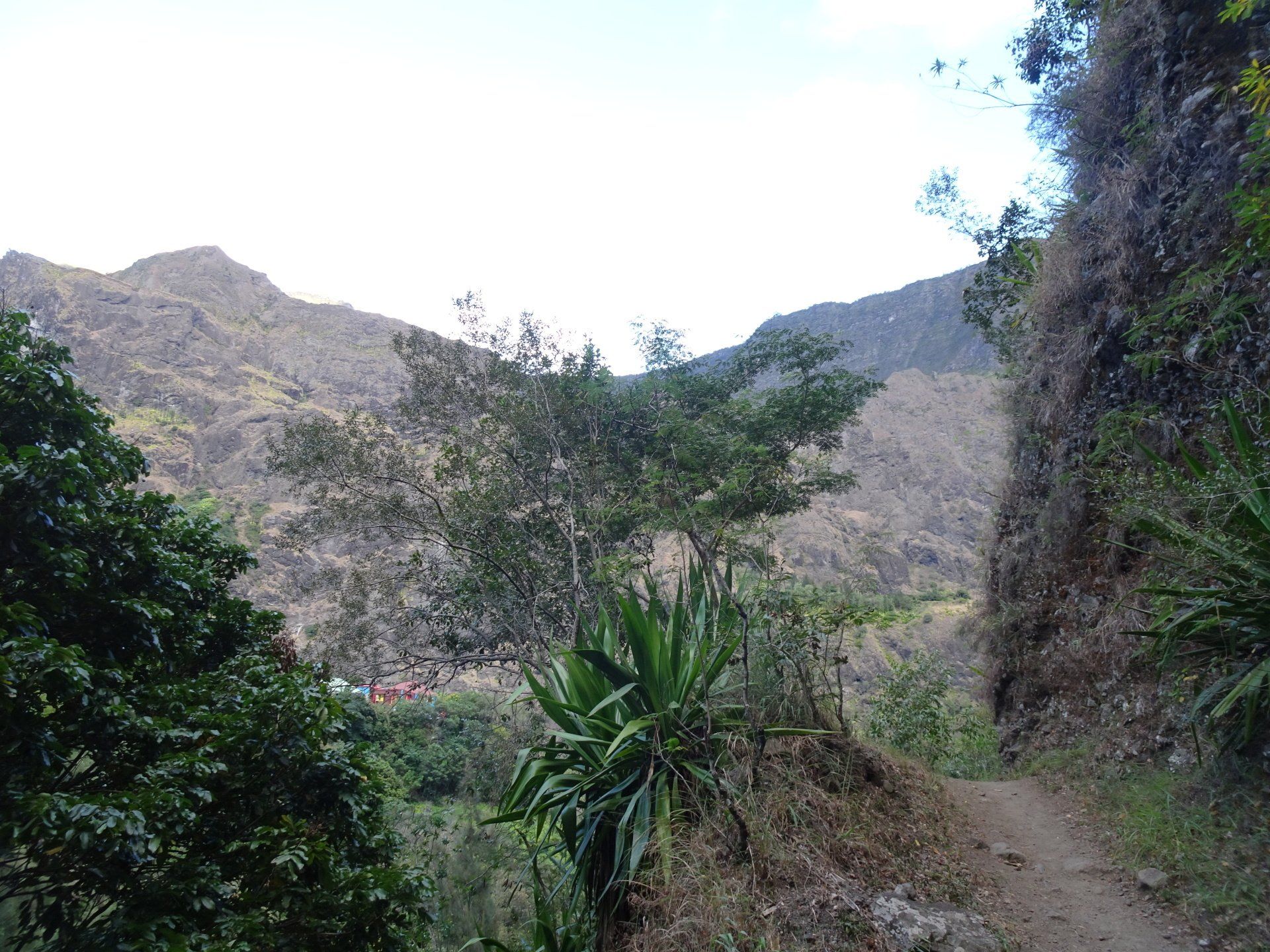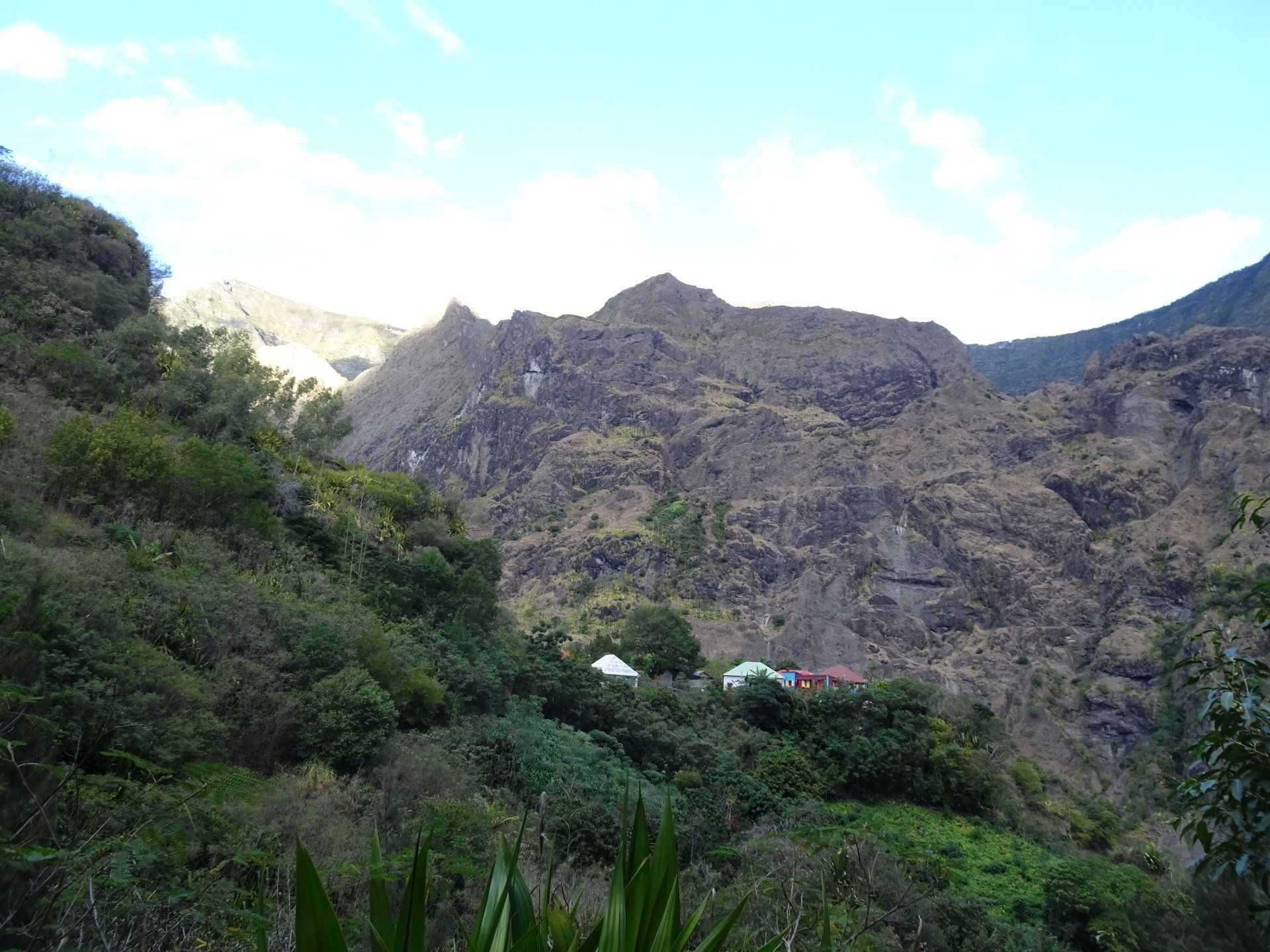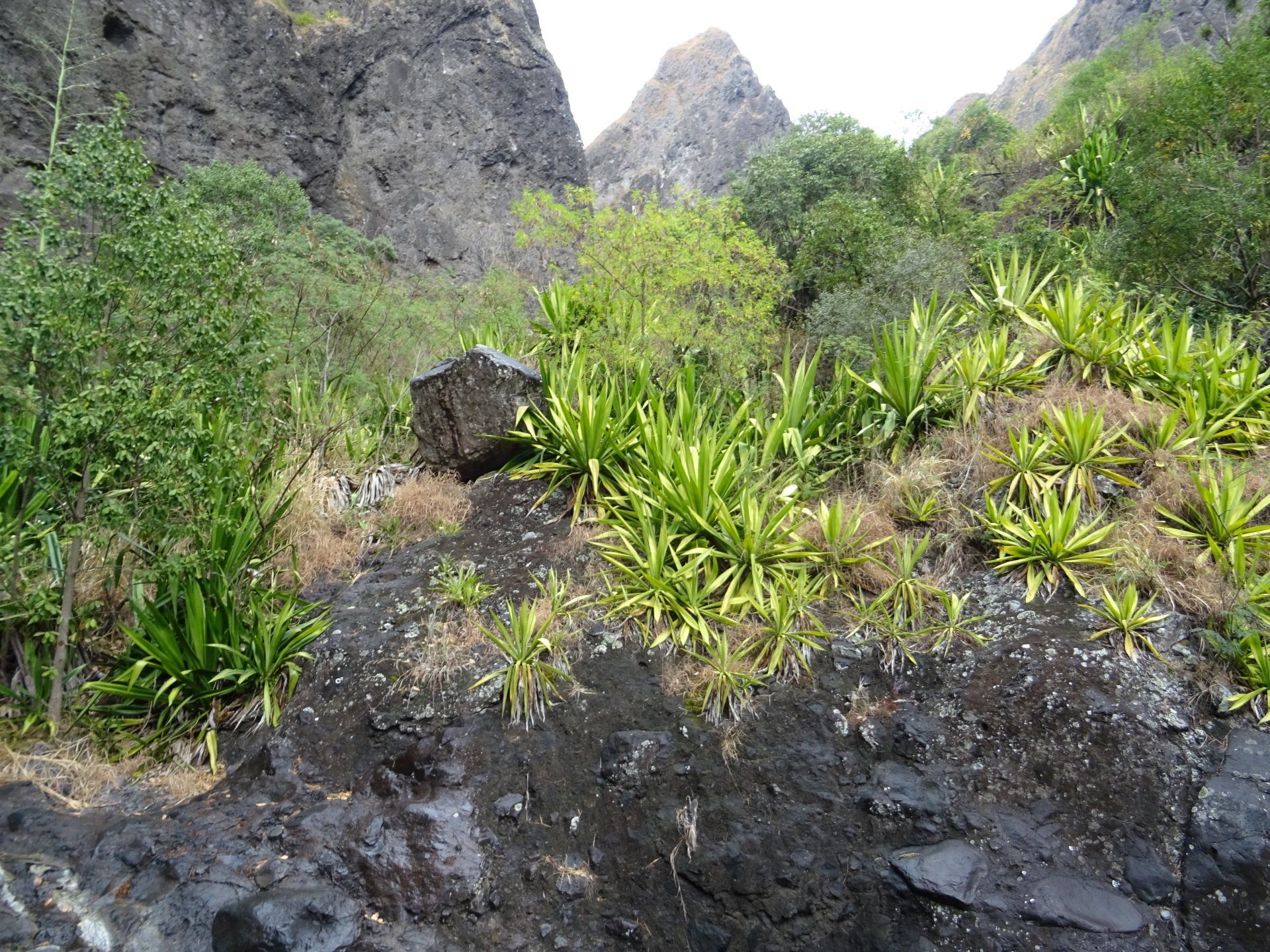 L’hélico doit passer aujourd’hui mais fin de matinée. Nous serons déjà partis. Ça serait risqué de l’attendre, grosse journée prévue. Parmi les 3 itinéraires, nous avons choisi le plus long, par l’îlet des orangers et la brèche. Nous partons juste avant le départ des enfants à l’école. Les muscles s’habituent, les douleurs sont moins présentes.