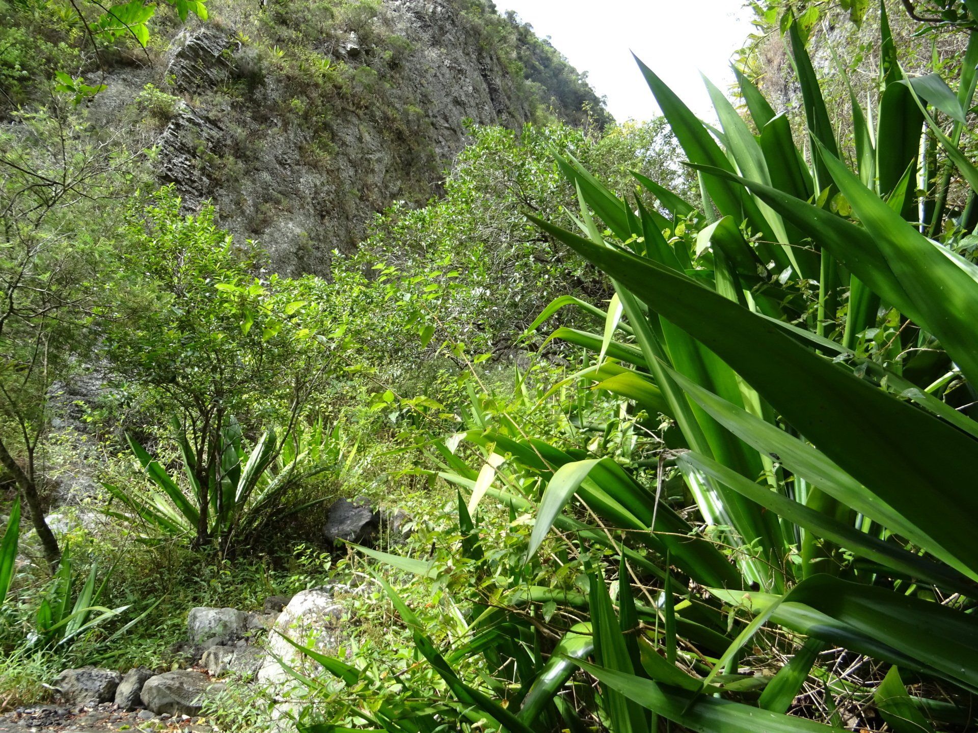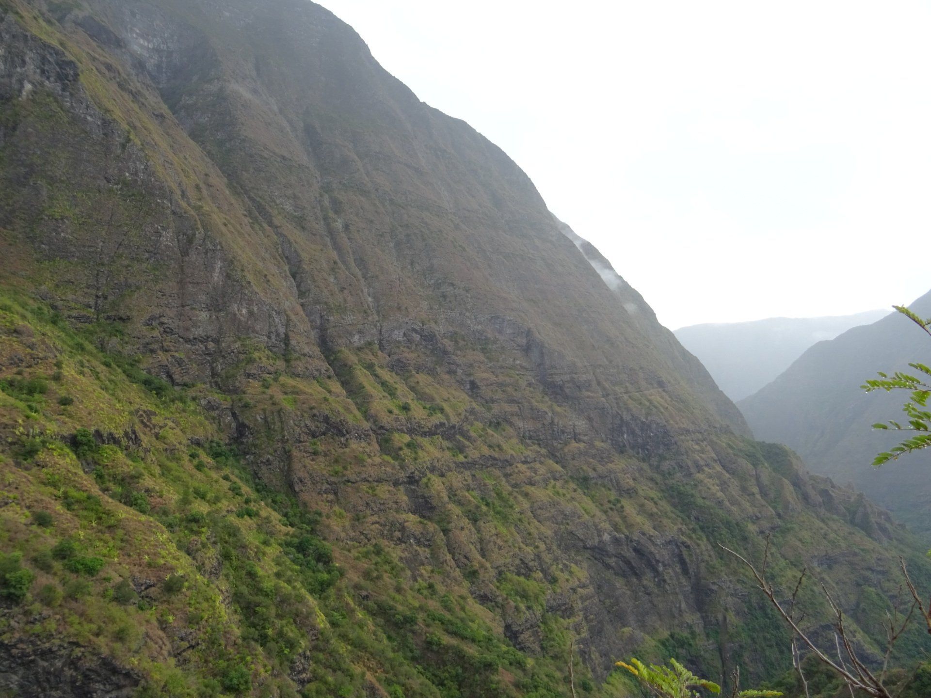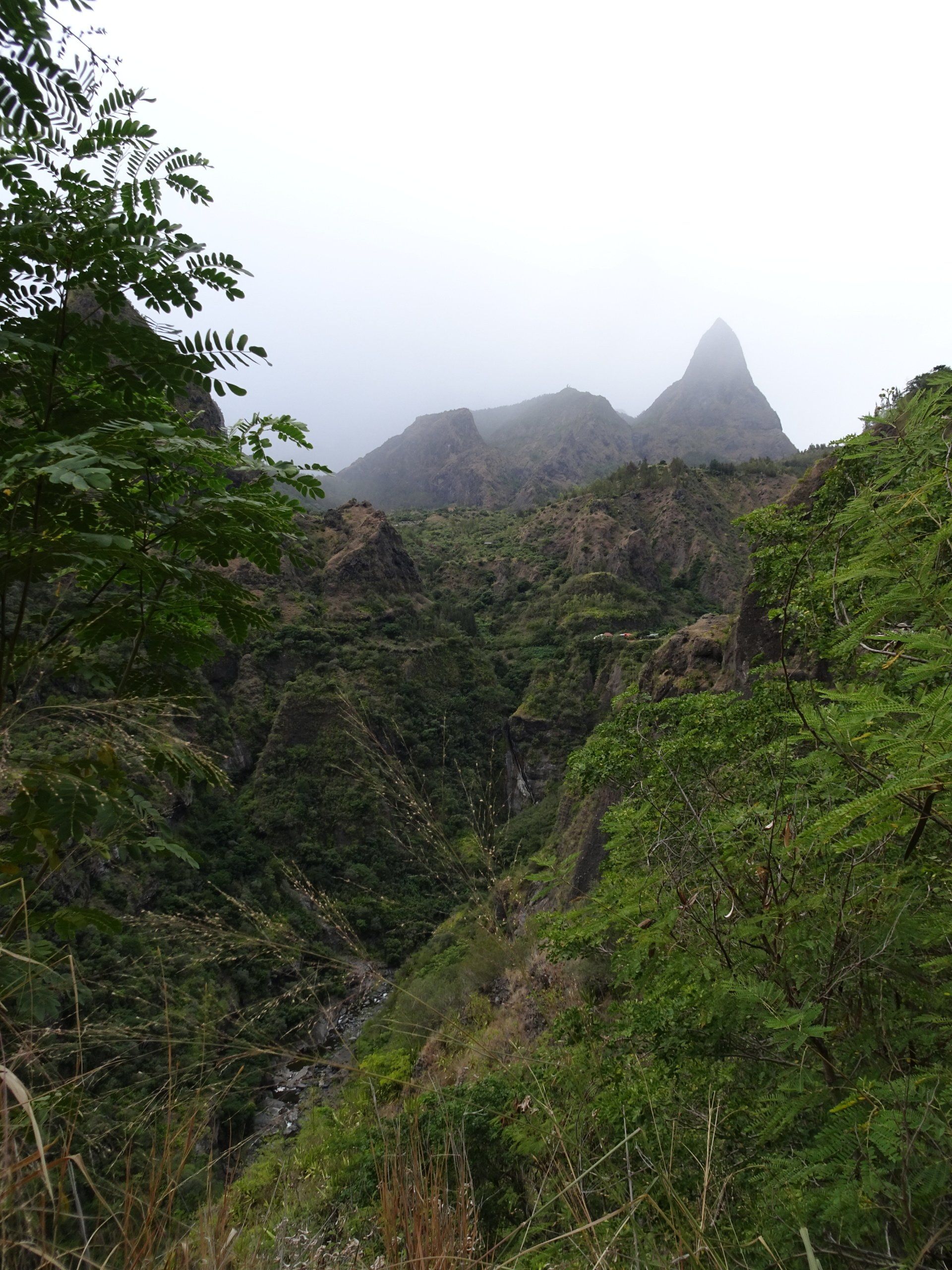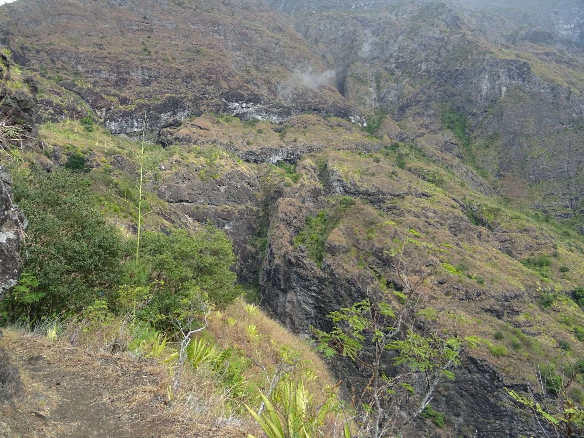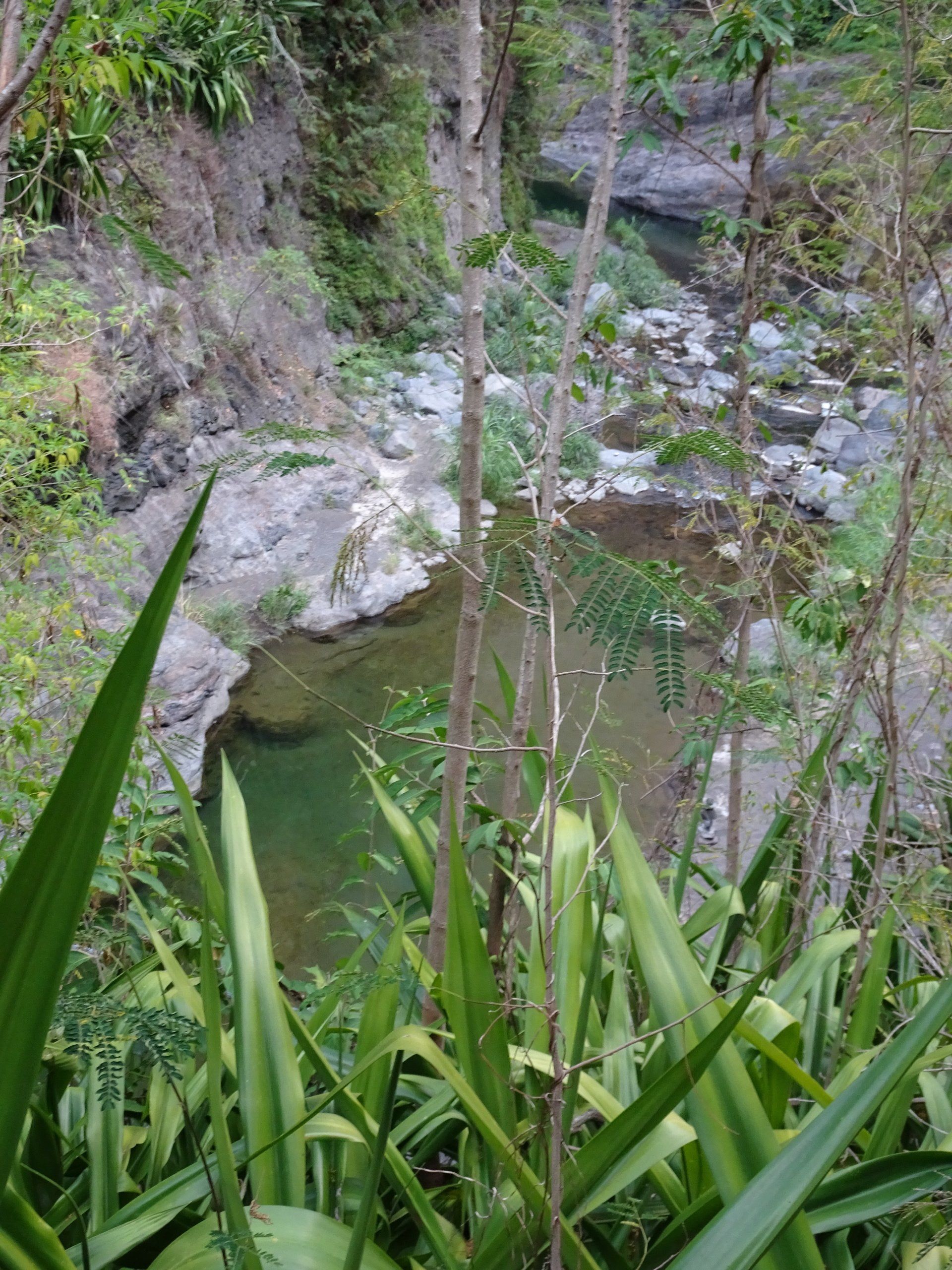 L’hélico doit passer aujourd’hui mais fin de matinée. Nous serons déjà partis. Ça serait risqué de l’attendre, grosse journée prévue. Parmi les 3 itinéraires, nous avons choisi le plus long, par l’îlet des orangers et la brèche. Nous partons juste avant le départ des enfants à l’école. Les muscles s’habituent, les douleurs sont moins présentes.