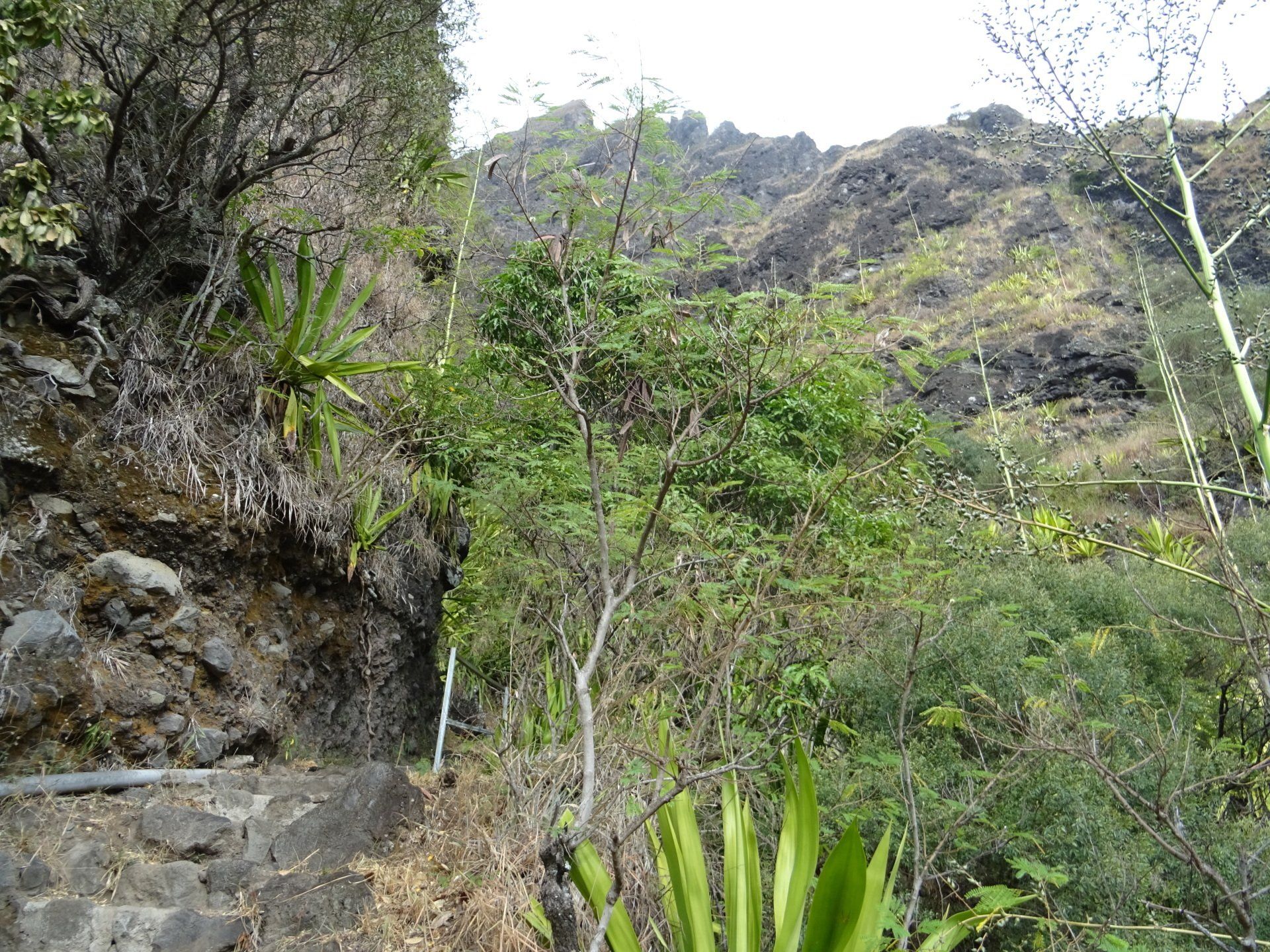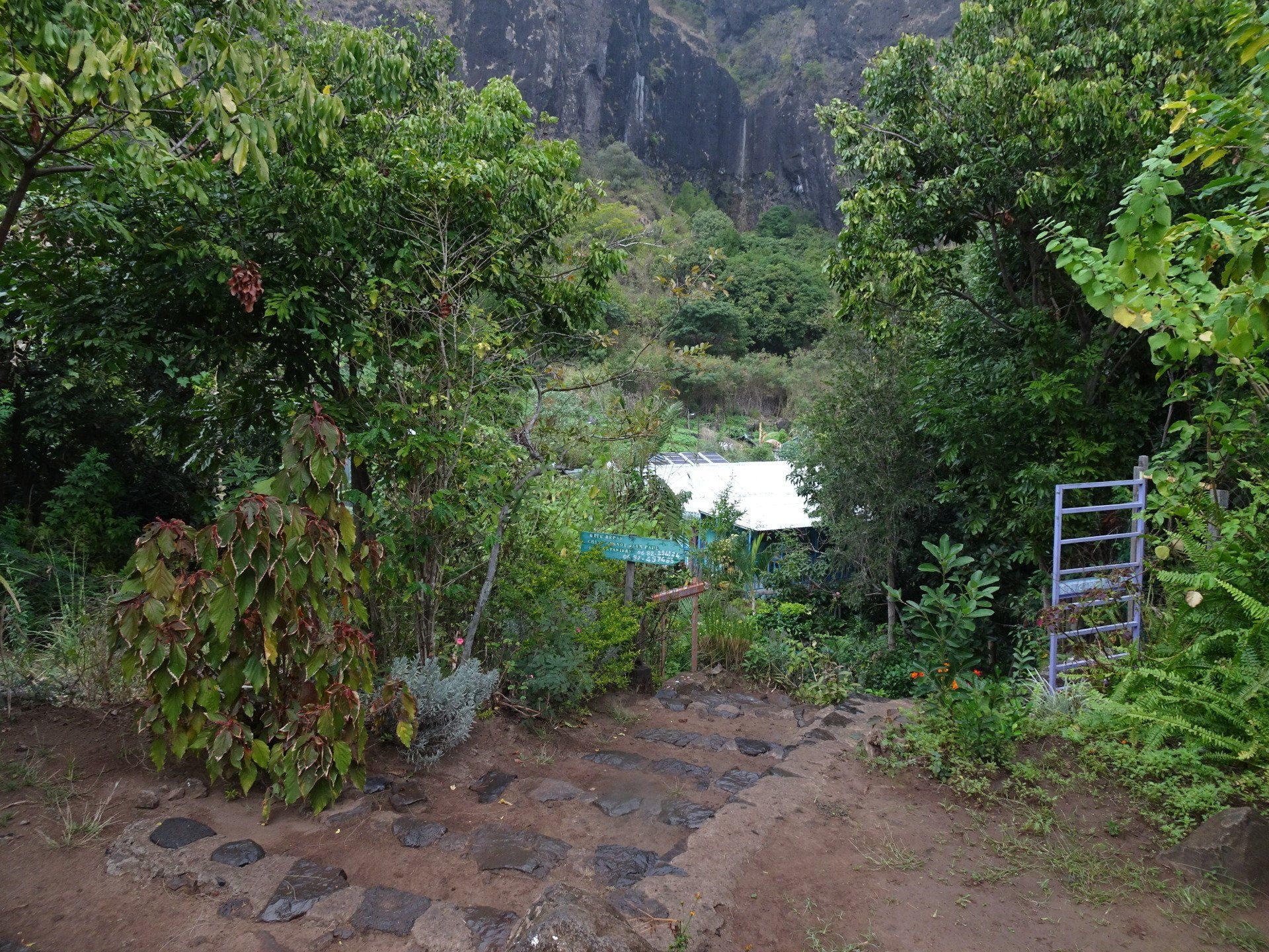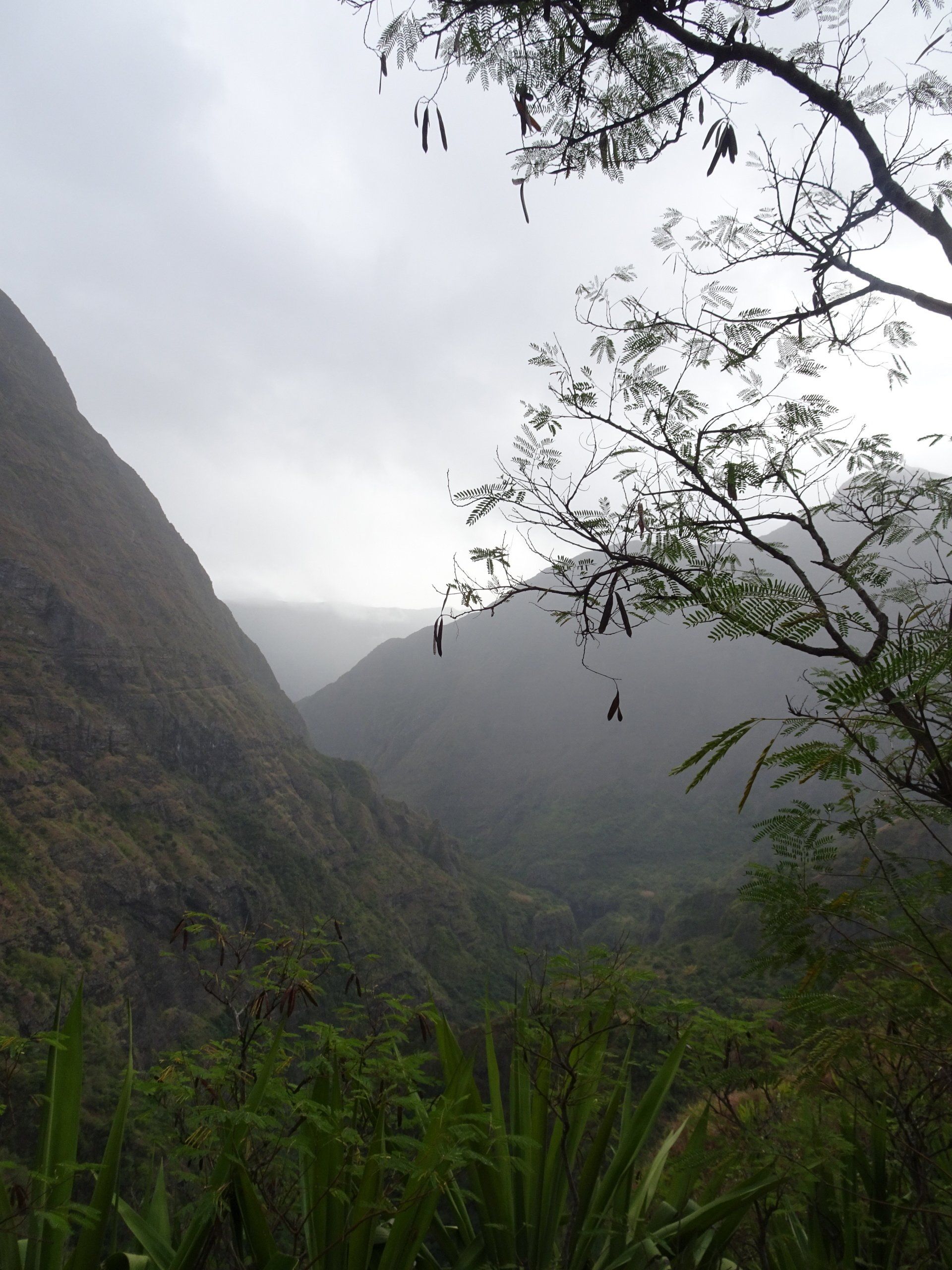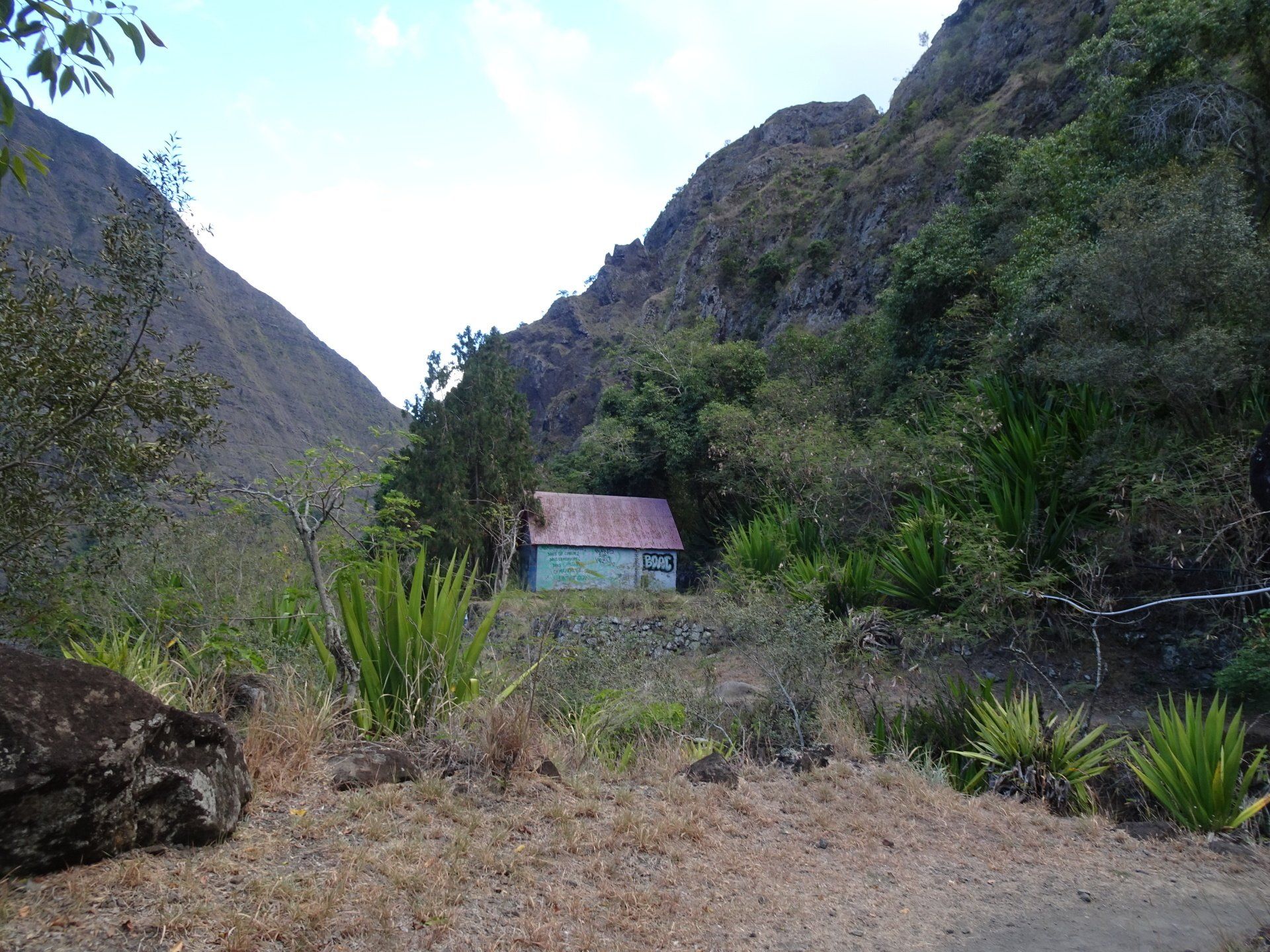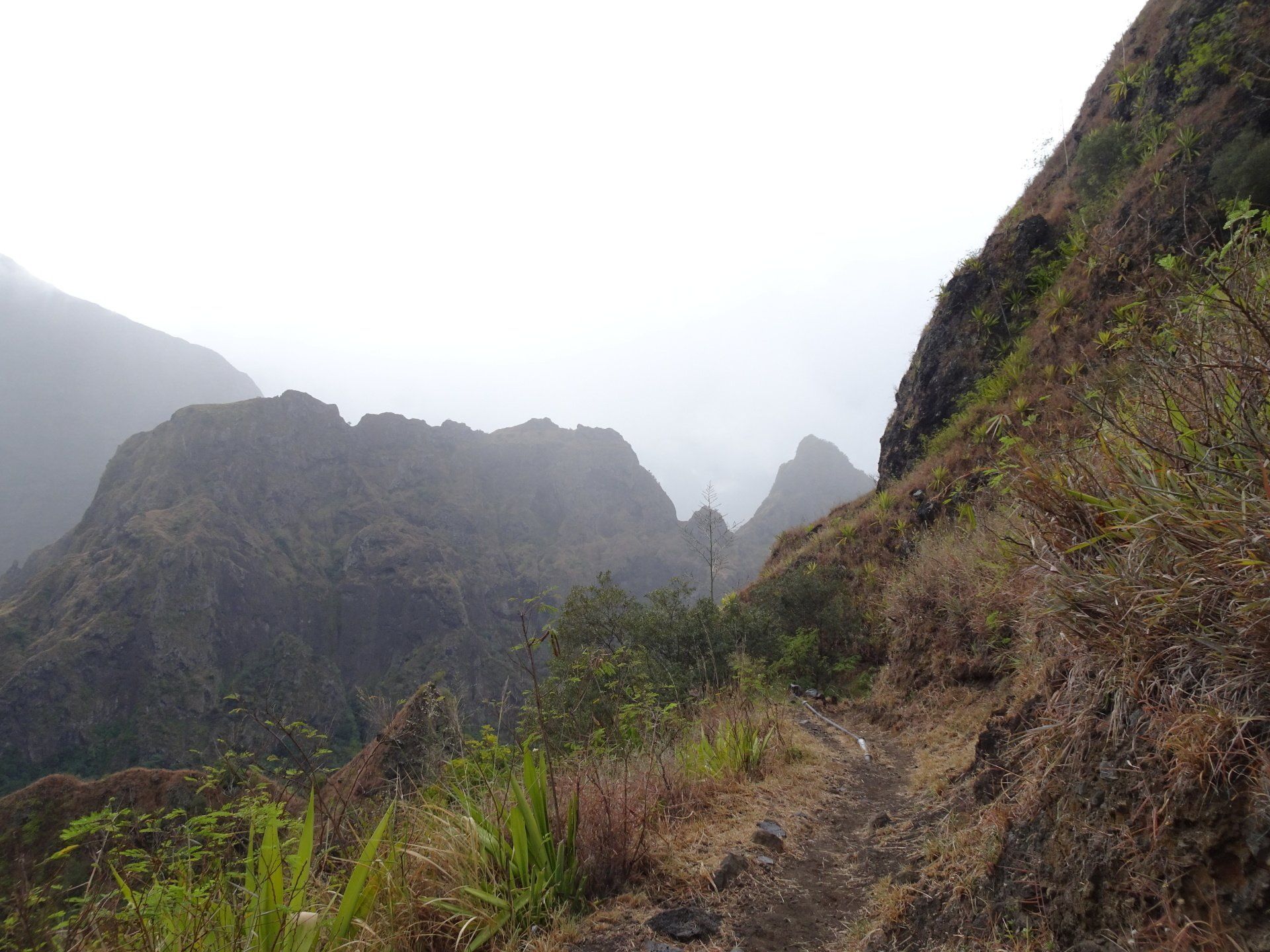 L’hélico doit passer aujourd’hui mais fin de matinée. Nous serons déjà partis. Ça serait risqué de l’attendre, grosse journée prévue. Parmi les 3 itinéraires, nous avons choisi le plus long, par l’îlet des orangers et la brèche. Nous partons juste avant le départ des enfants à l’école. Les muscles s’habituent, les douleurs sont moins présentes.