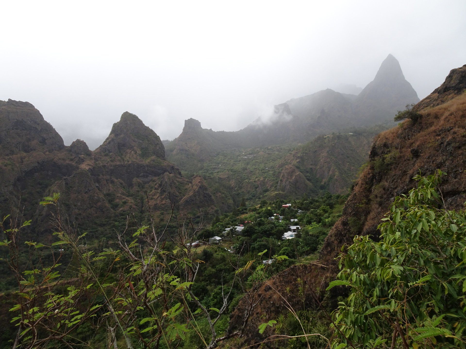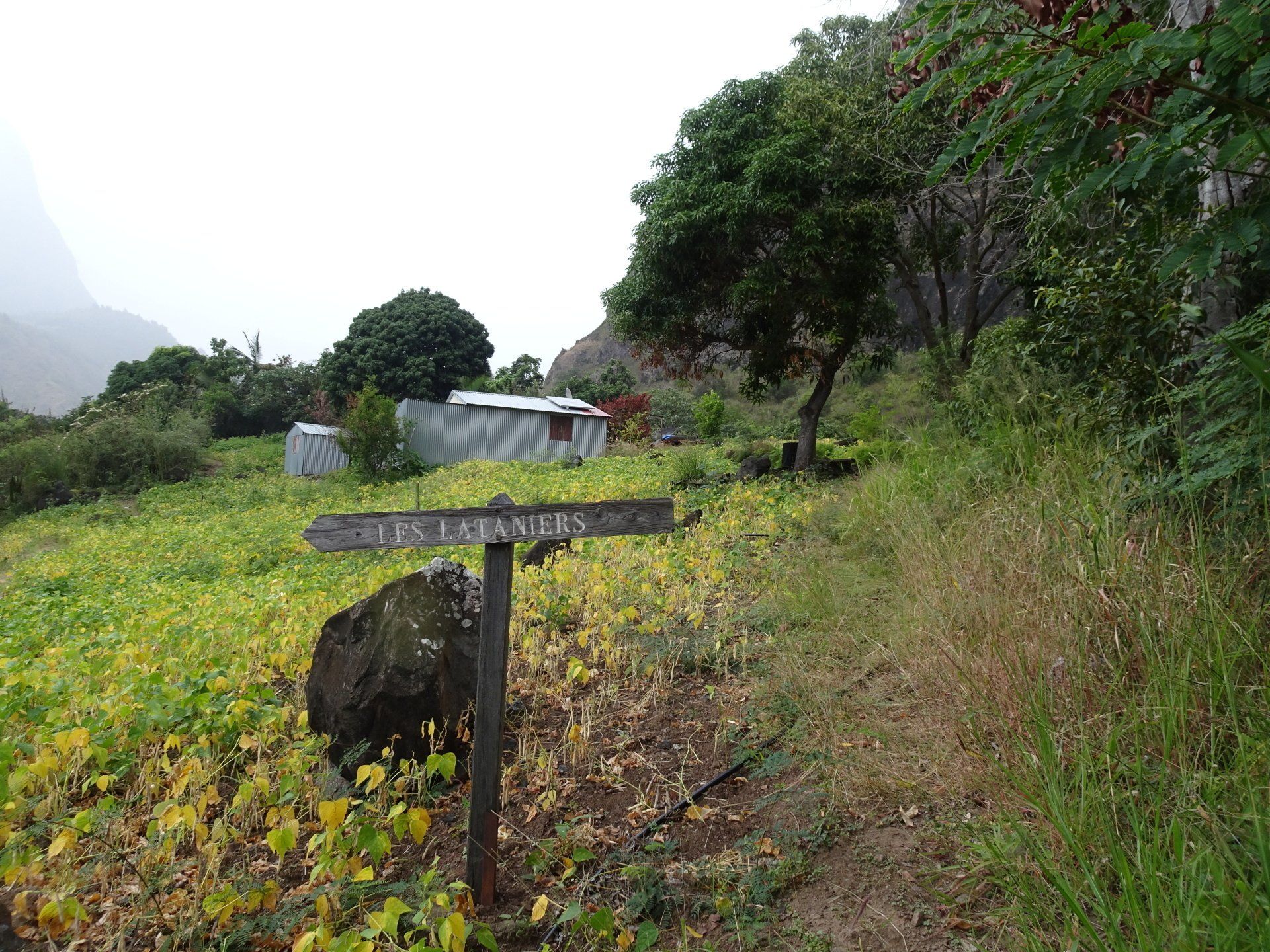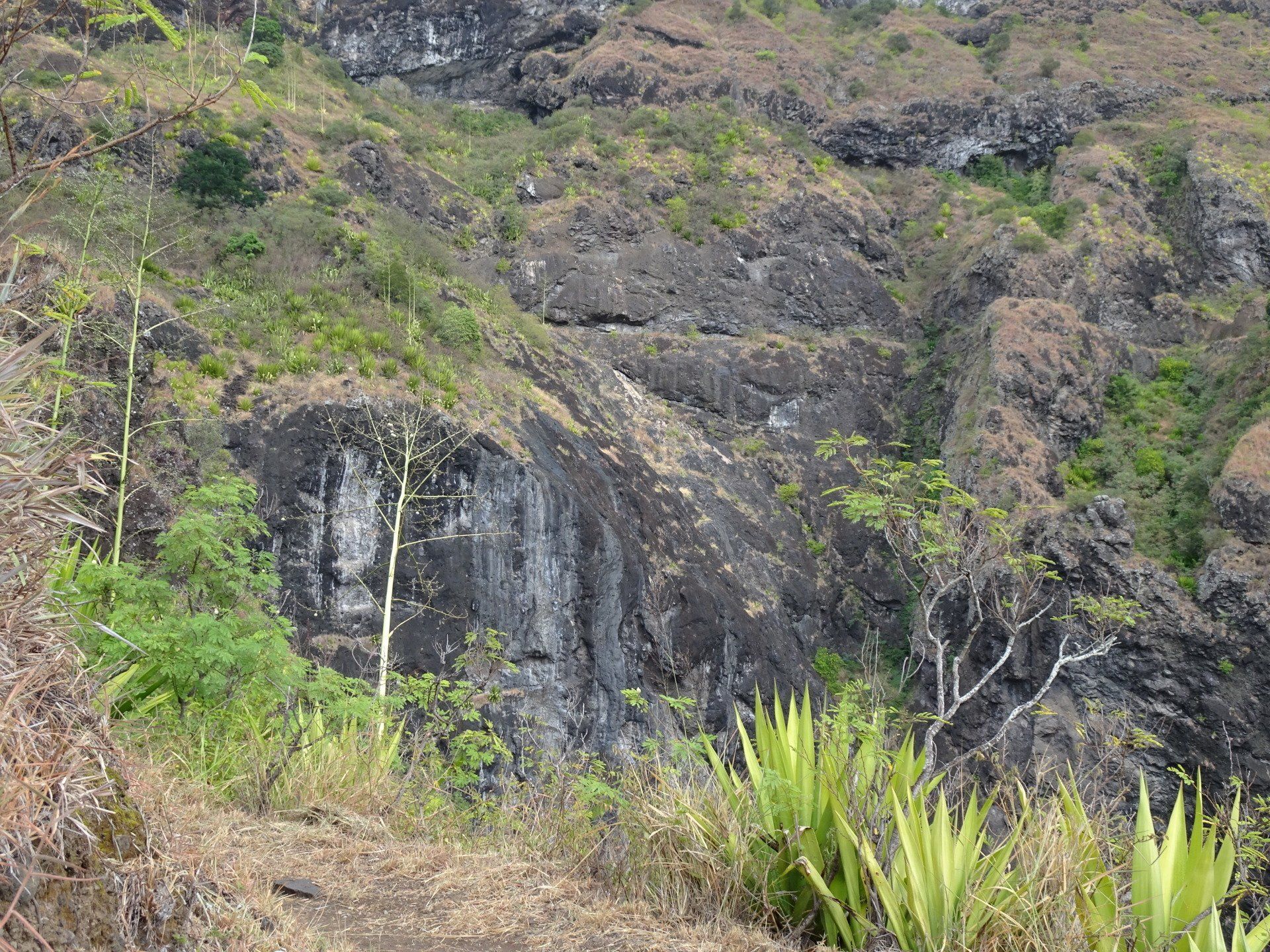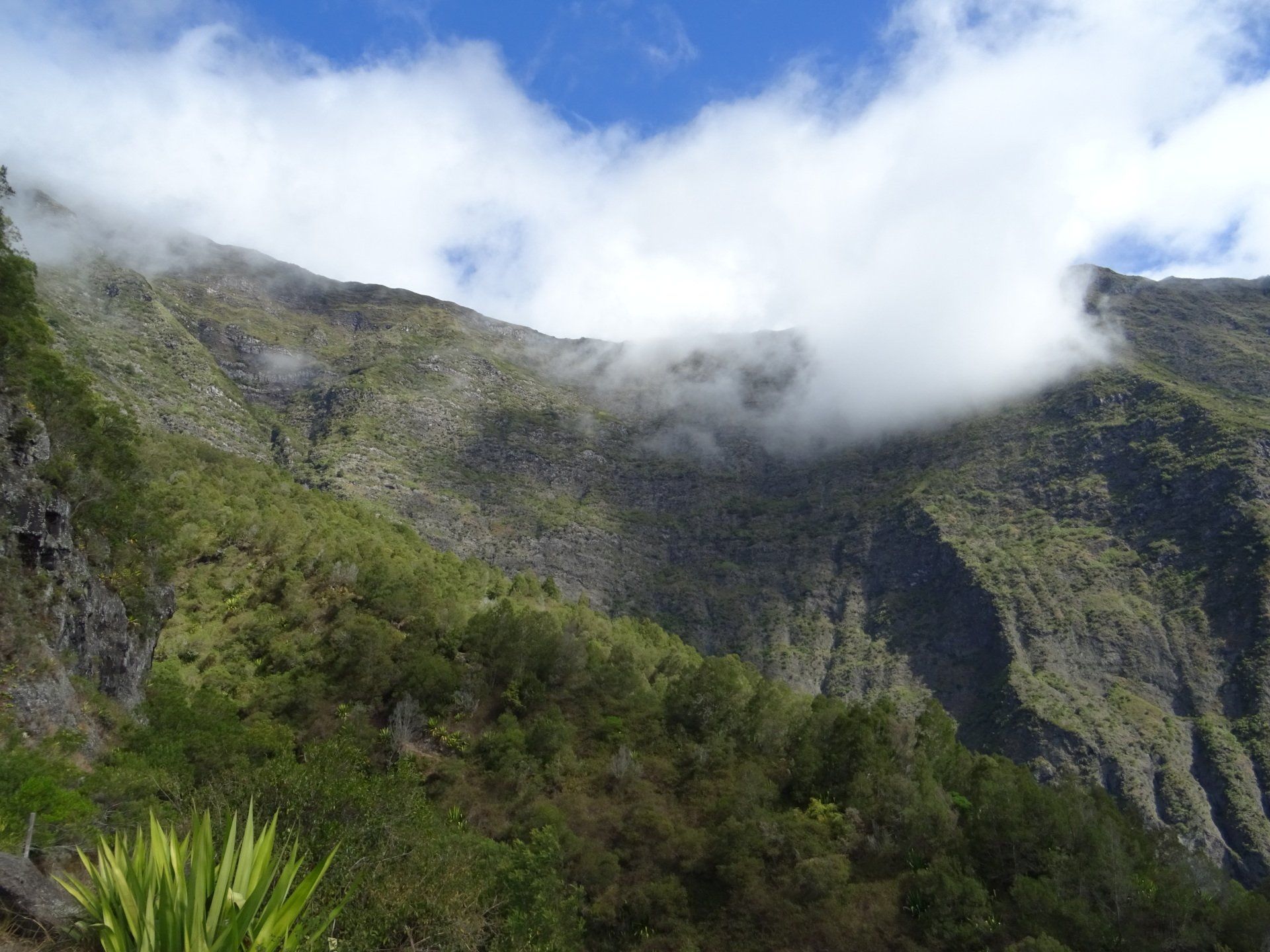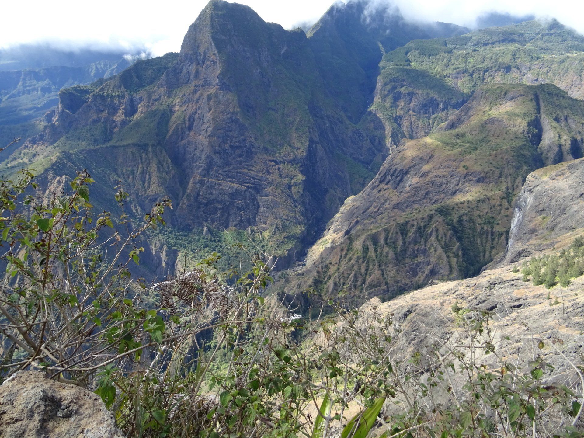 L’hélico doit passer aujourd’hui mais fin de matinée. Nous serons déjà partis. Ça serait risqué de l’attendre, grosse journée prévue. Parmi les 3 itinéraires, nous avons choisi le plus long, par l’îlet des orangers et la brèche. Nous partons juste avant le départ des enfants à l’école. Les muscles s’habituent, les douleurs sont moins présentes.