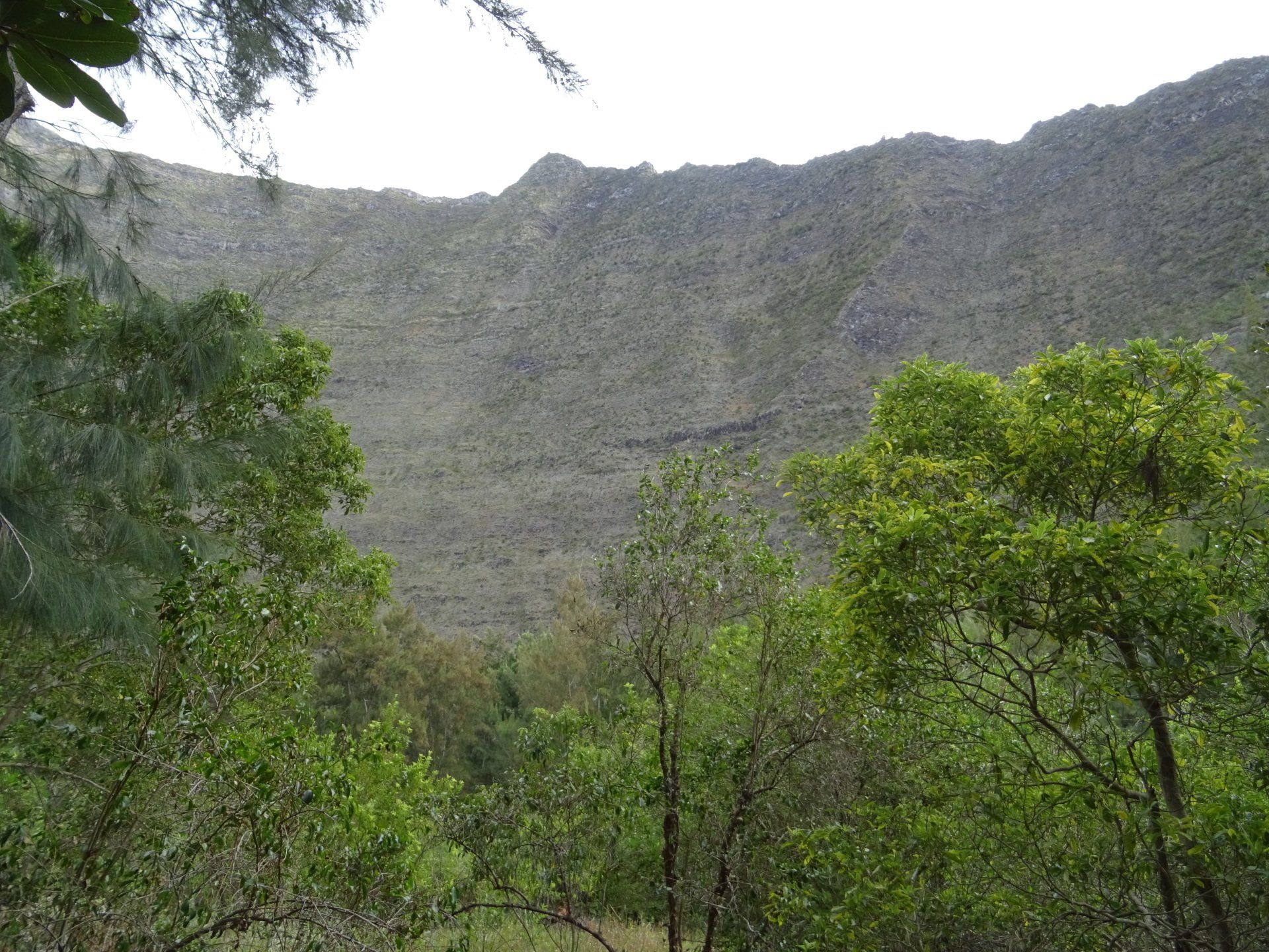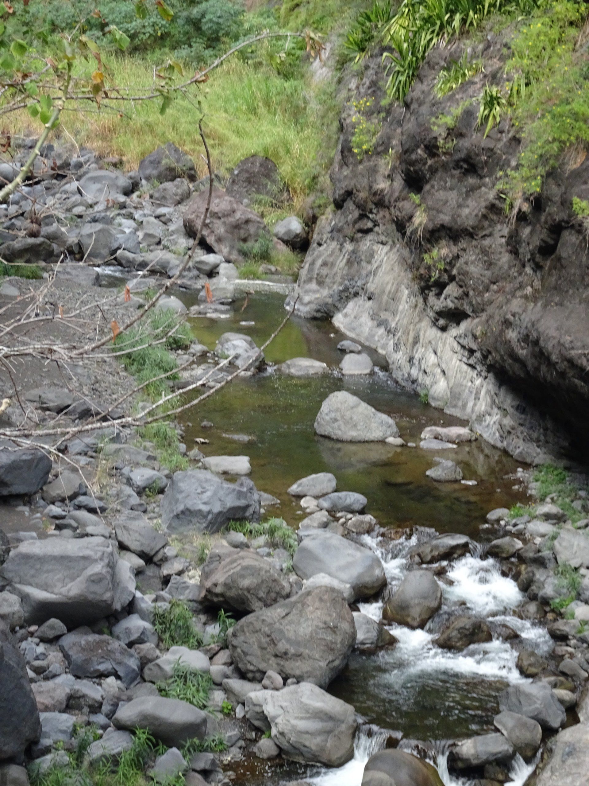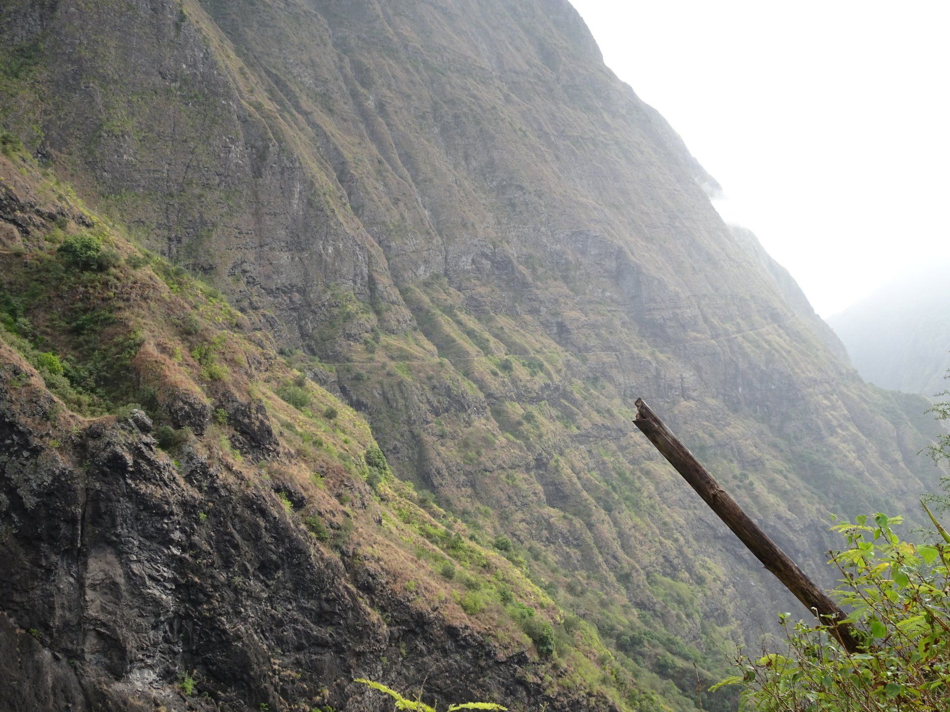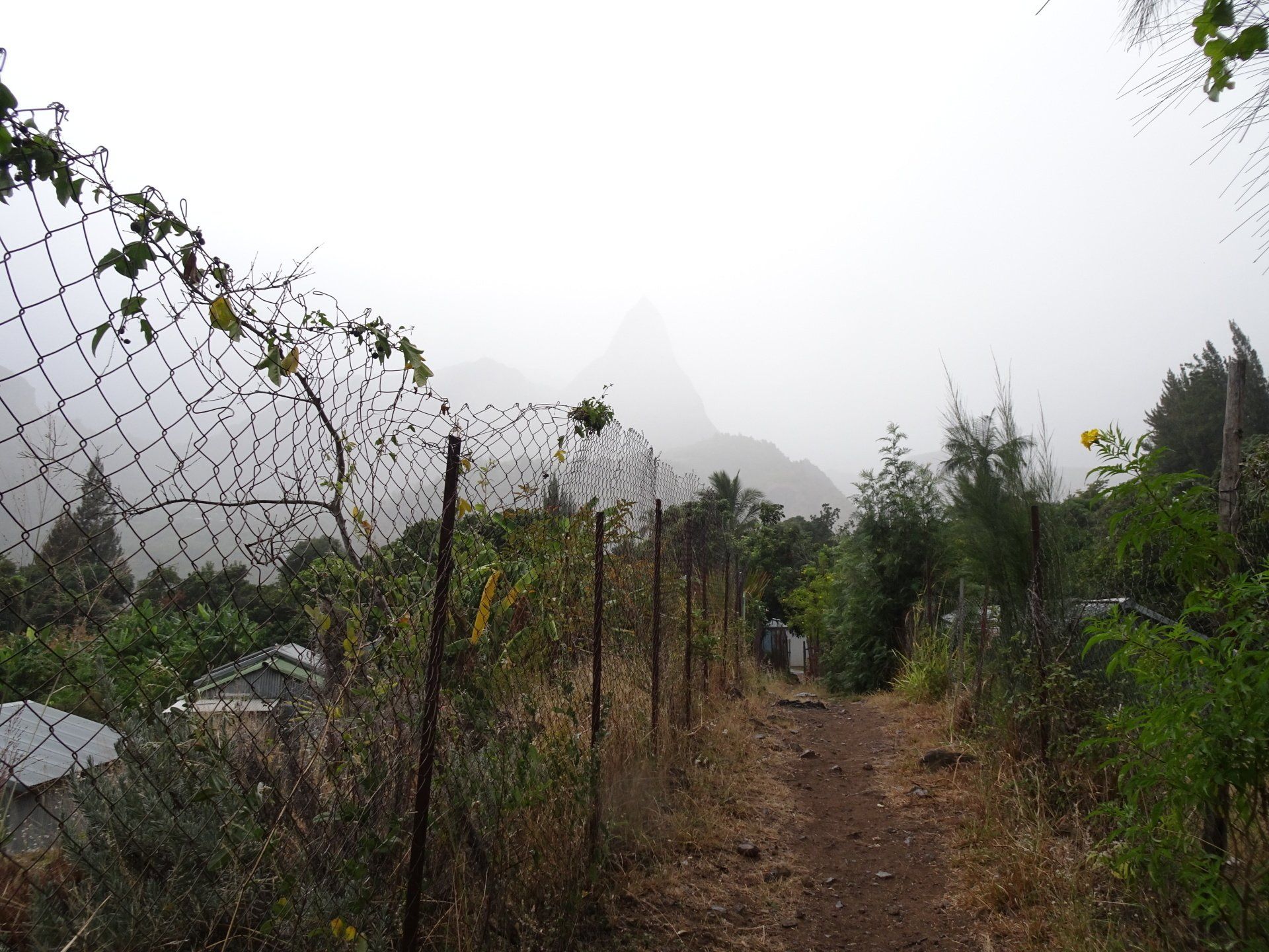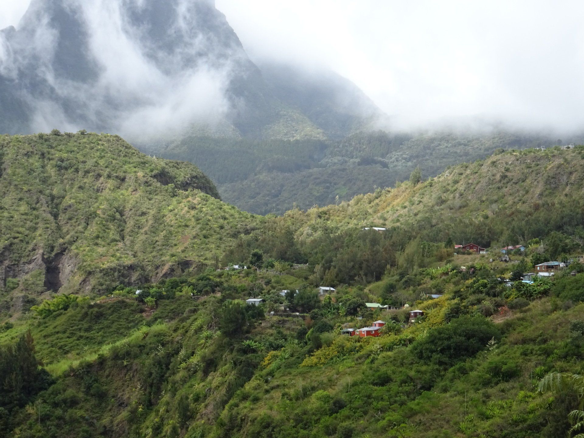 L’hélico doit passer aujourd’hui mais fin de matinée. Nous serons déjà partis. Ça serait risqué de l’attendre, grosse journée prévue. Parmi les 3 itinéraires, nous avons choisi le plus long, par l’îlet des orangers et la brèche. Nous partons juste avant le départ des enfants à l’école. Les muscles s’habituent, les douleurs sont moins présentes.