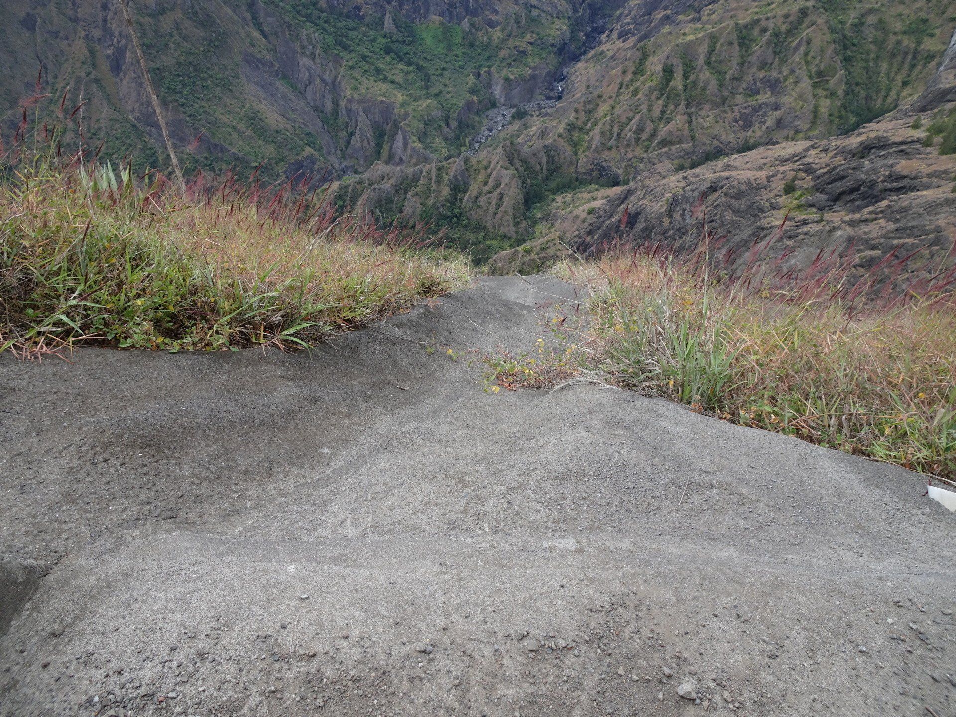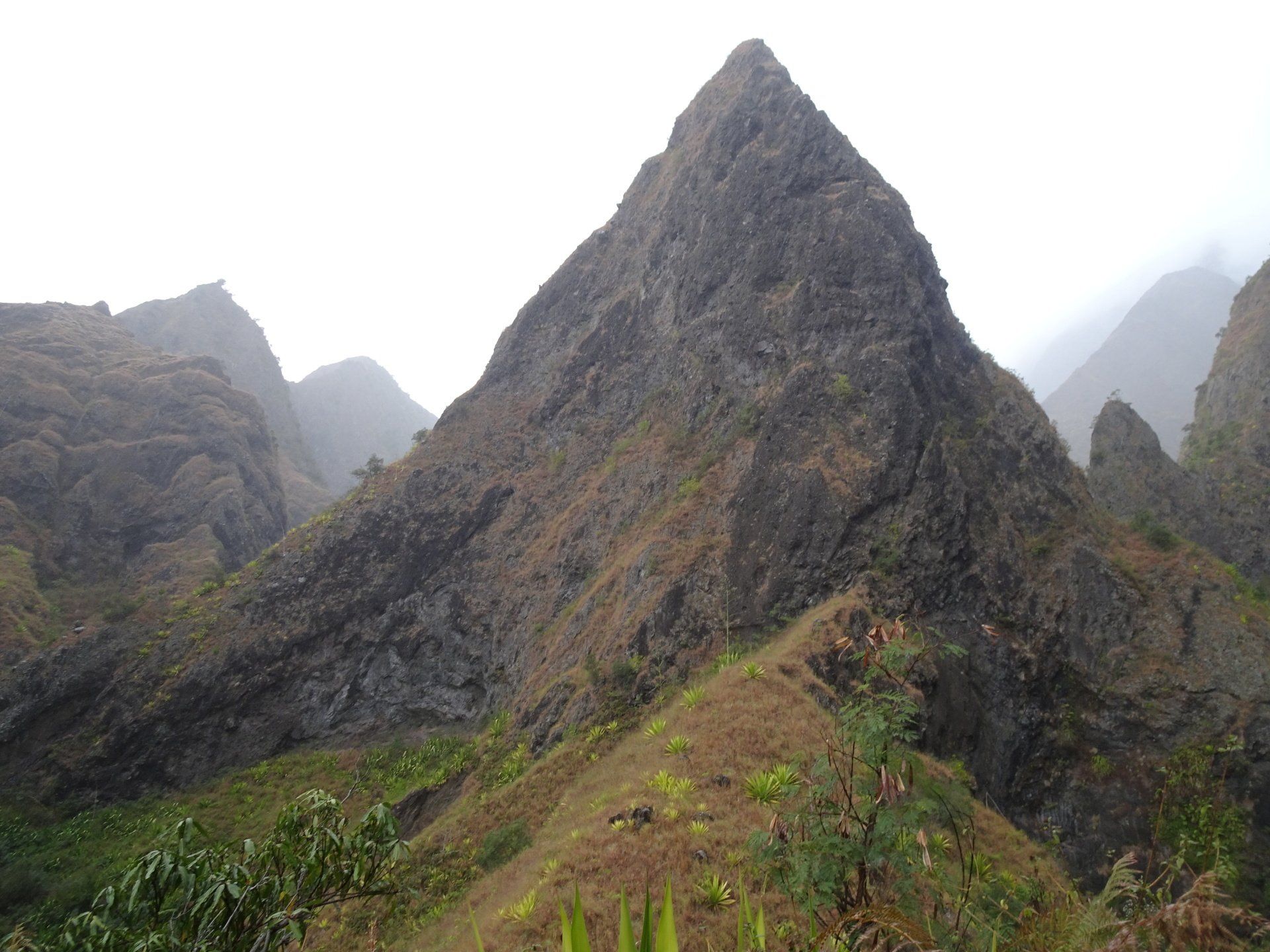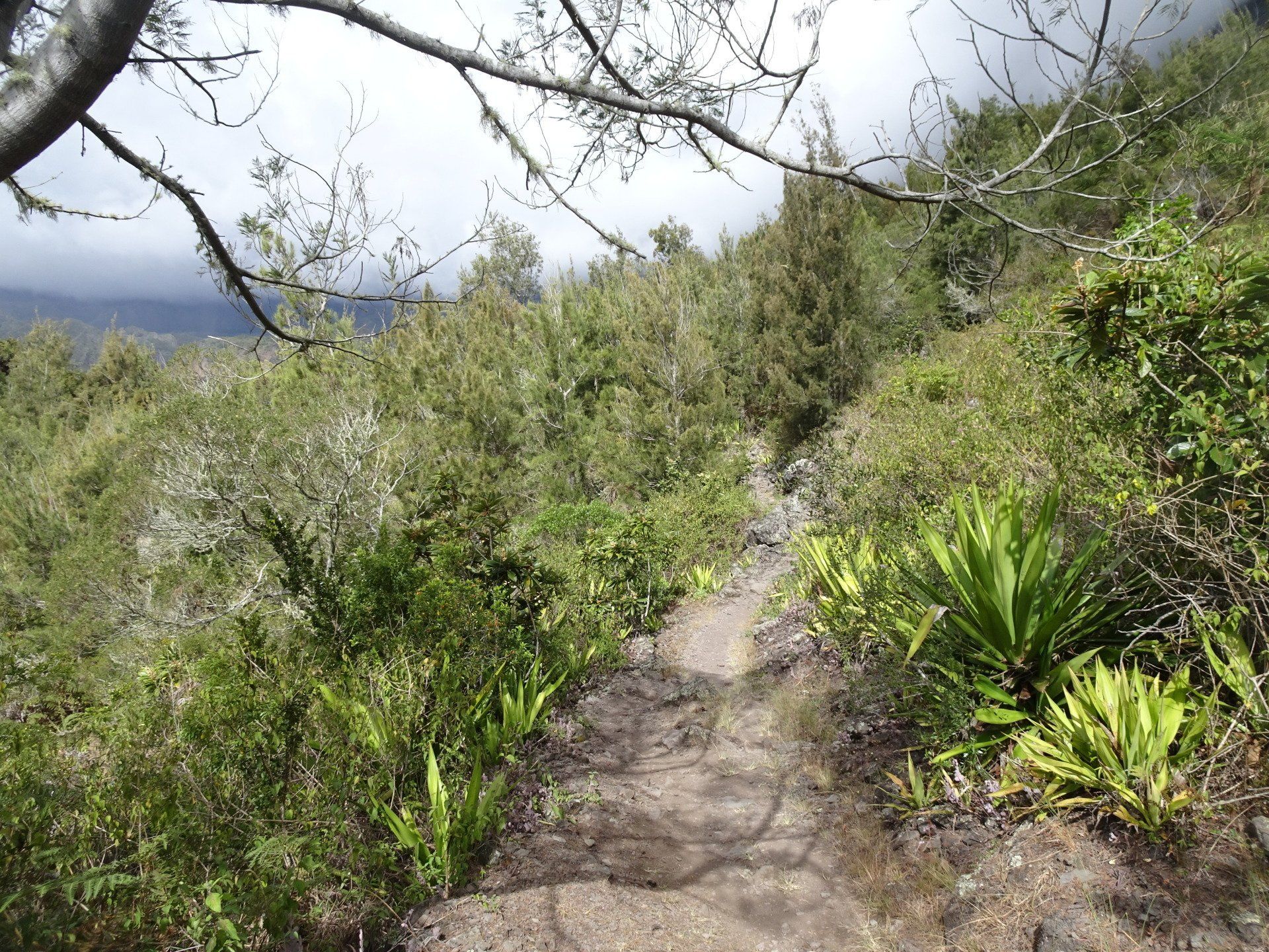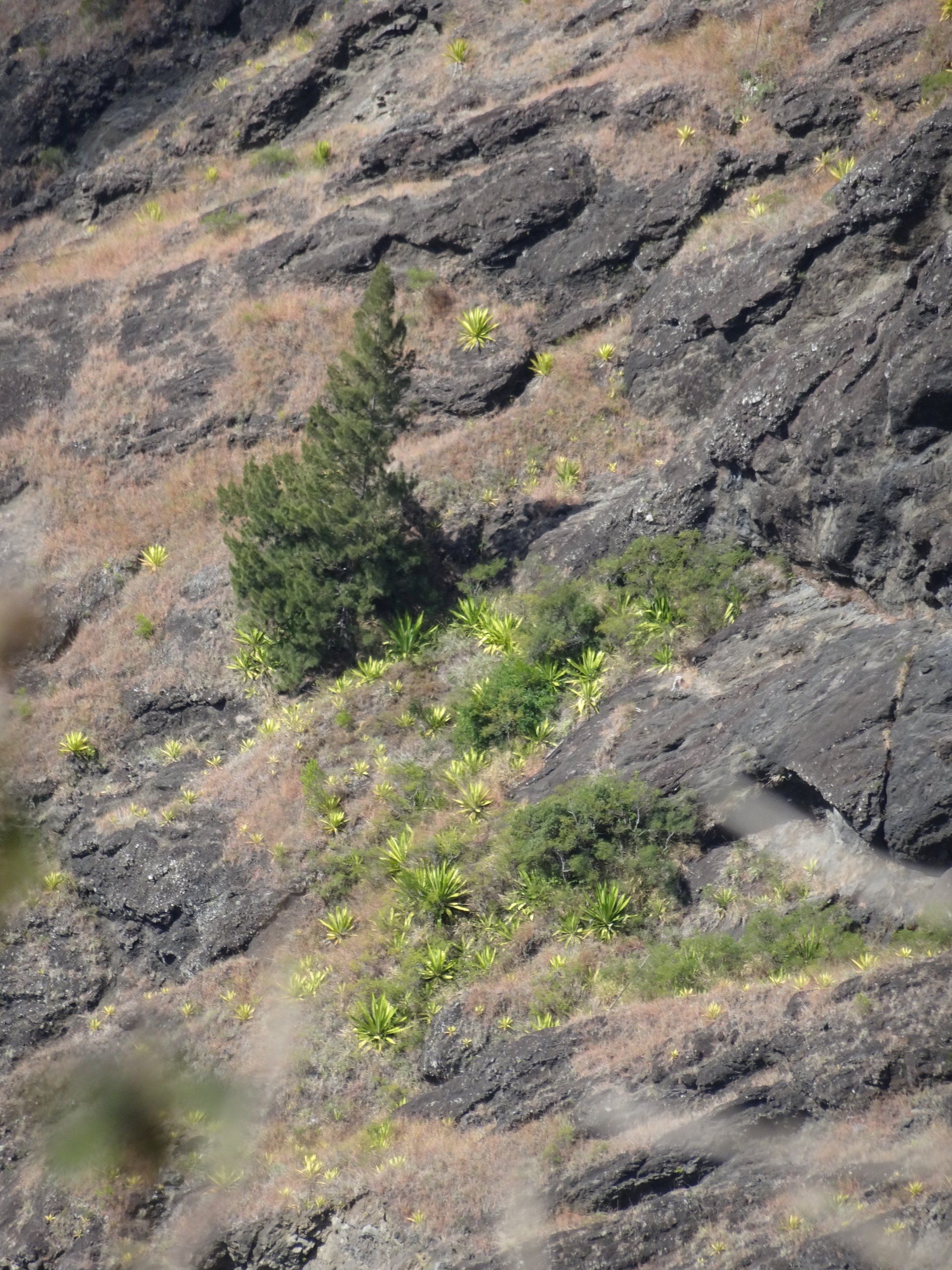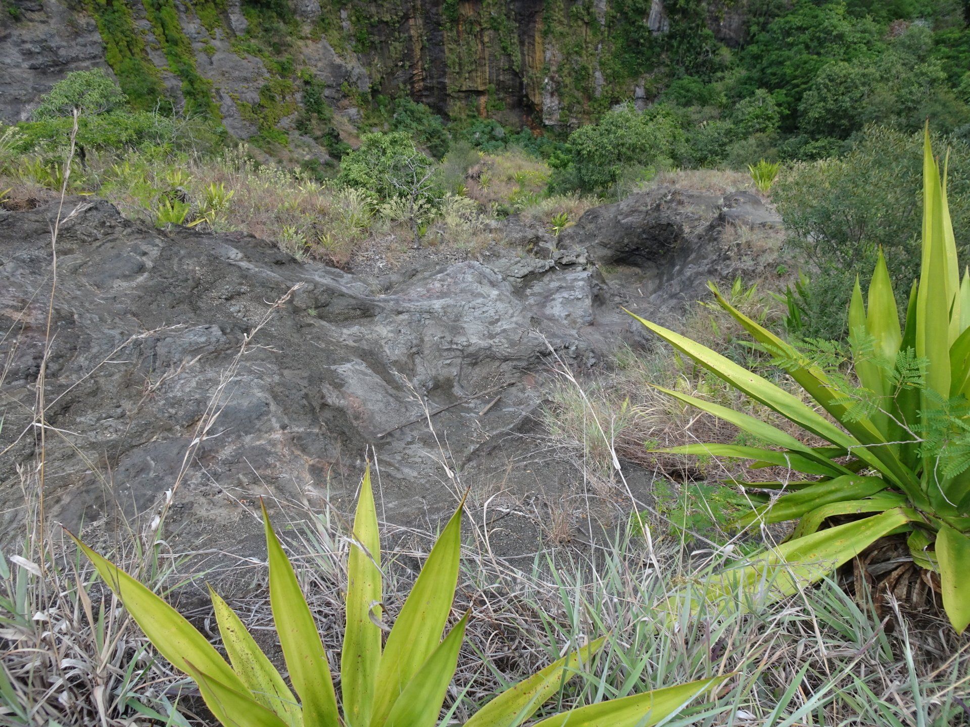 L’hélico doit passer aujourd’hui mais fin de matinée. Nous serons déjà partis. Ça serait risqué de l’attendre, grosse journée prévue. Parmi les 3 itinéraires, nous avons choisi le plus long, par l’îlet des orangers et la brèche. Nous partons juste avant le départ des enfants à l’école. Les muscles s’habituent, les douleurs sont moins présentes.