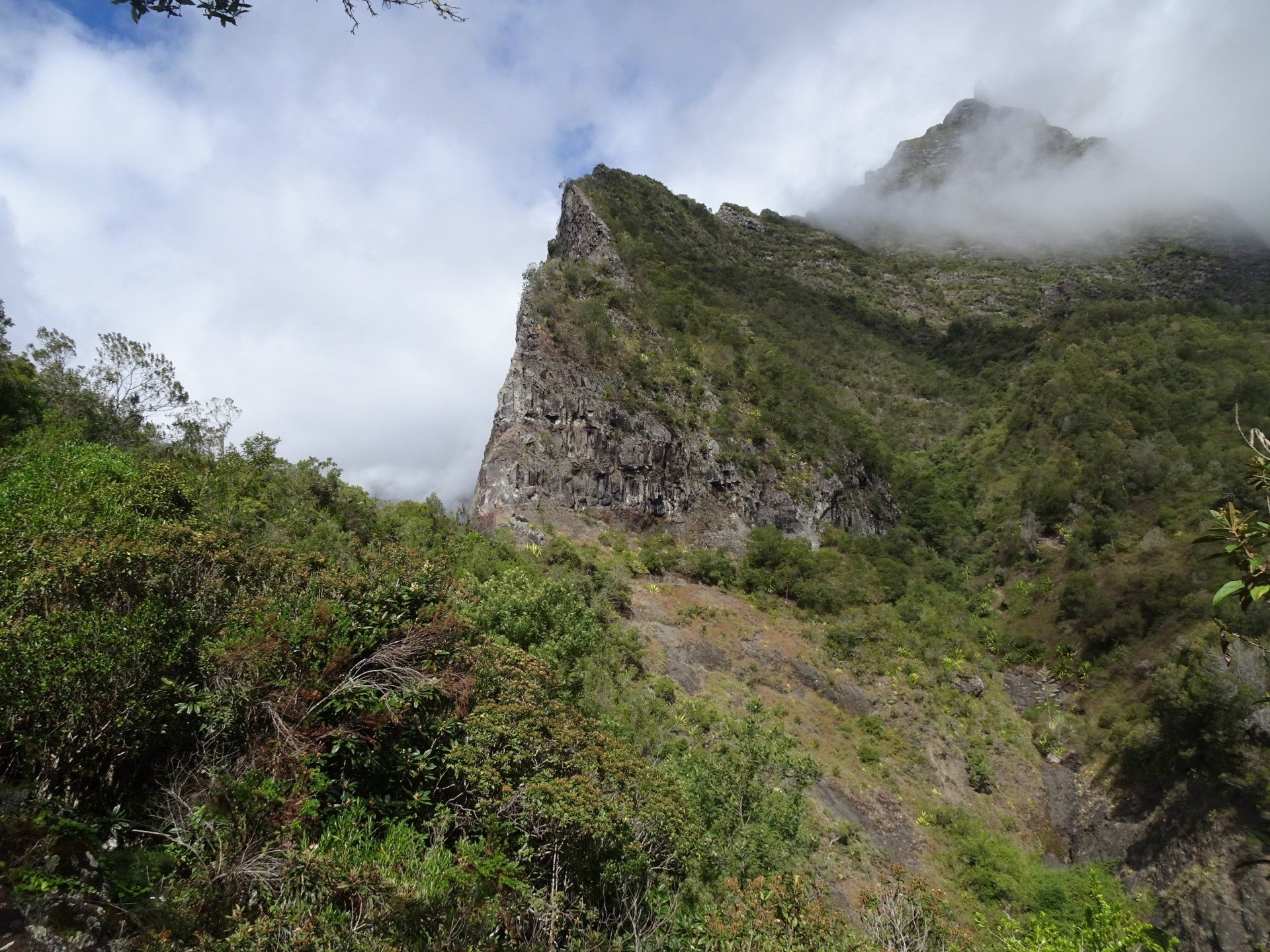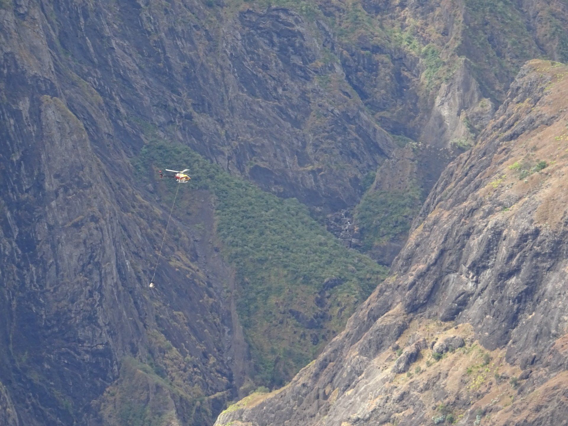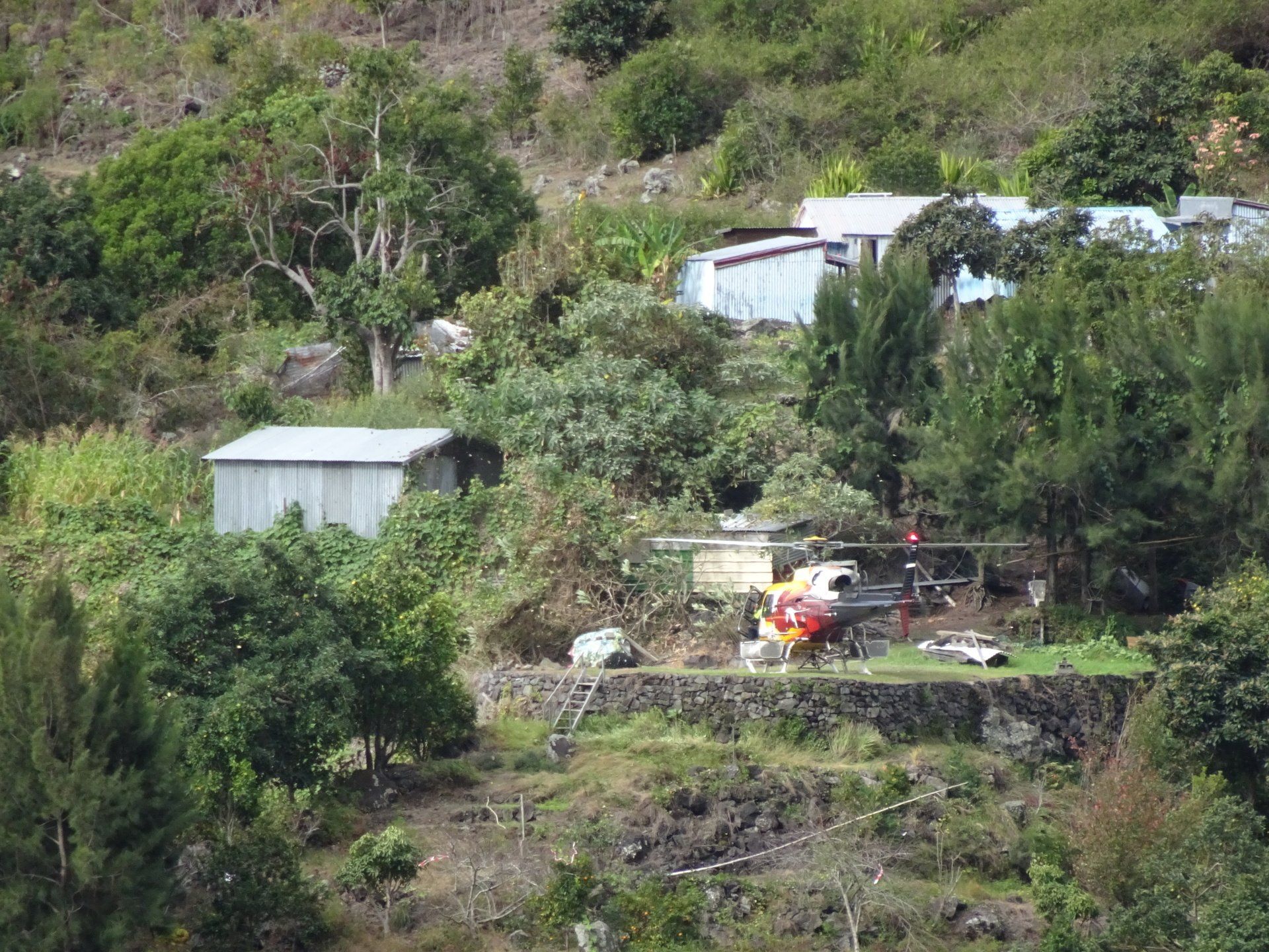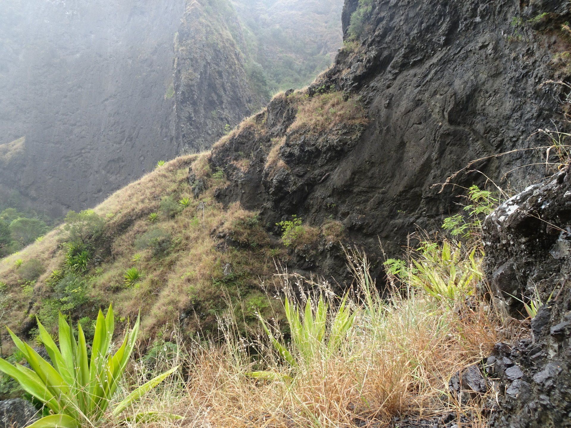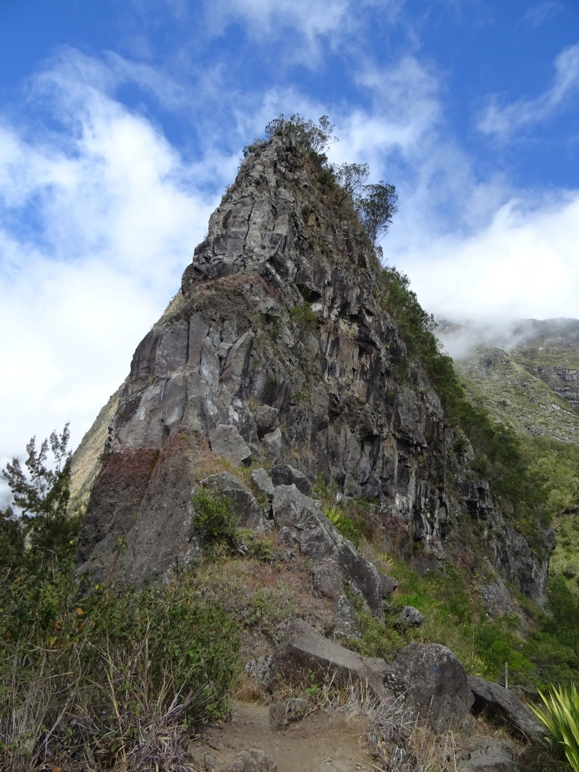 L’hélico doit passer aujourd’hui mais fin de matinée. Nous serons déjà partis. Ça serait risqué de l’attendre, grosse journée prévue. Parmi les 3 itinéraires, nous avons choisi le plus long, par l’îlet des orangers et la brèche. Nous partons juste avant le départ des enfants à l’école. Les muscles s’habituent, les douleurs sont moins présentes.