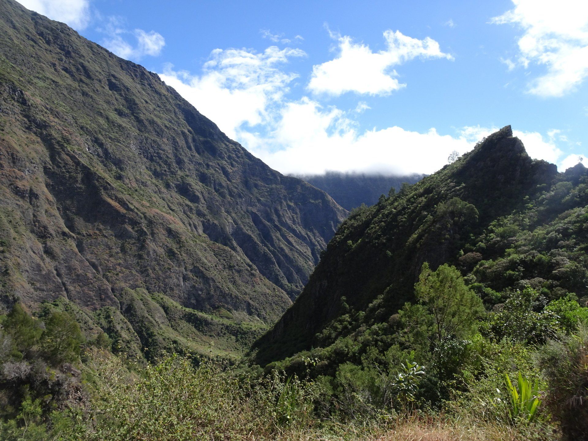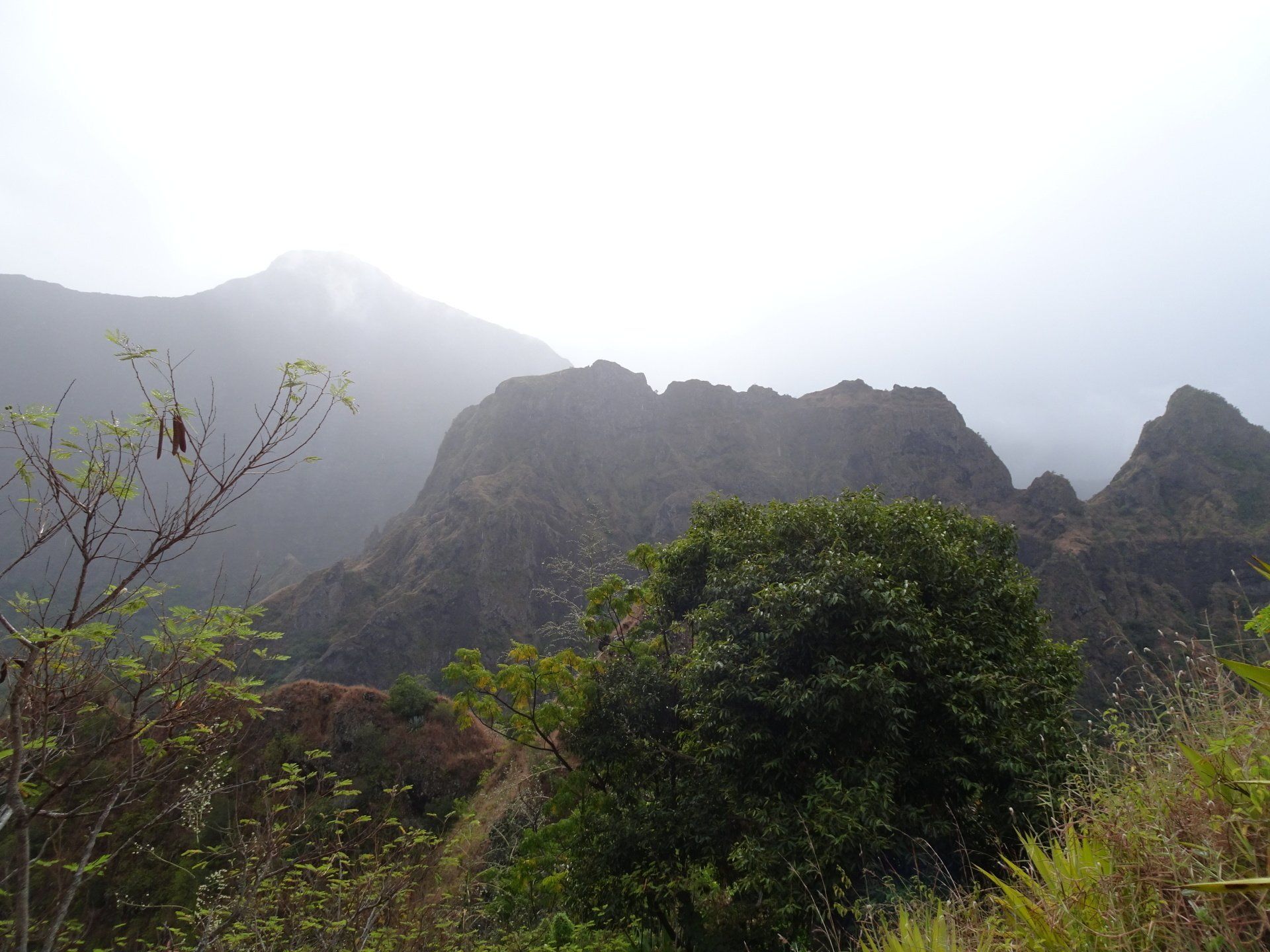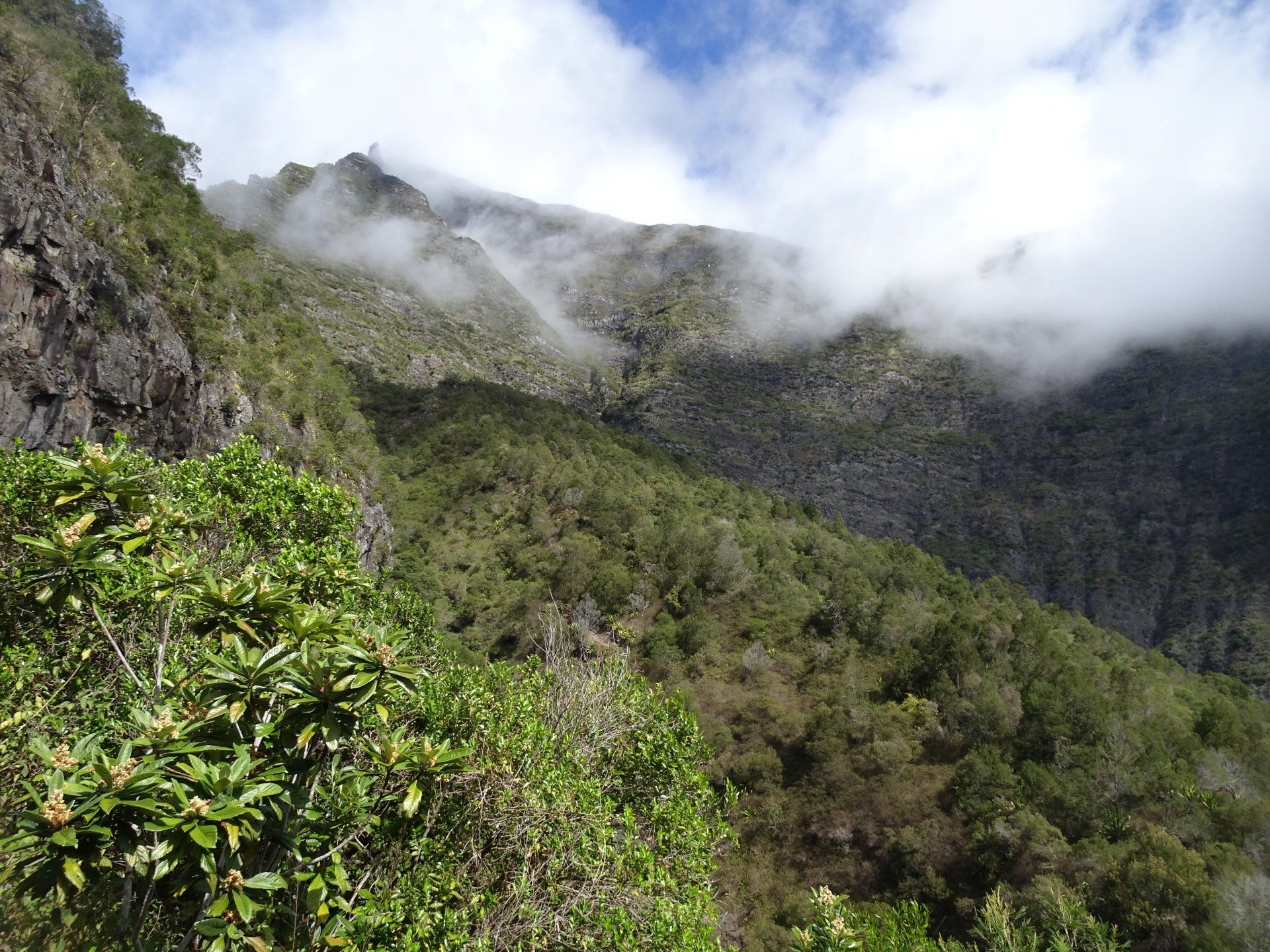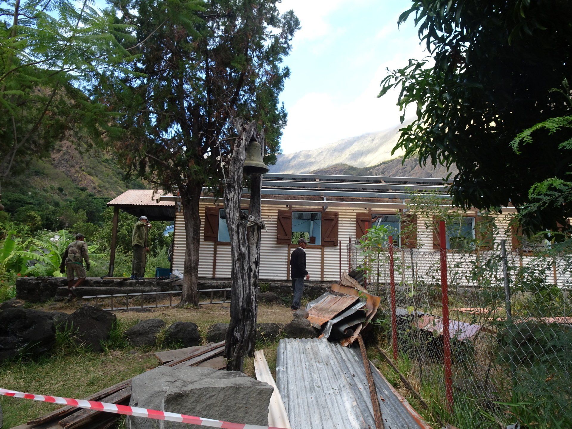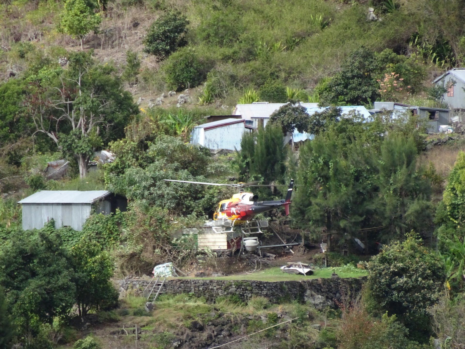 L’hélico doit passer aujourd’hui mais fin de matinée. Nous serons déjà partis. Ça serait risqué de l’attendre, grosse journée prévue. Parmi les 3 itinéraires, nous avons choisi le plus long, par l’îlet des orangers et la brèche. Nous partons juste avant le départ des enfants à l’école. Les muscles s’habituent, les douleurs sont moins présentes.