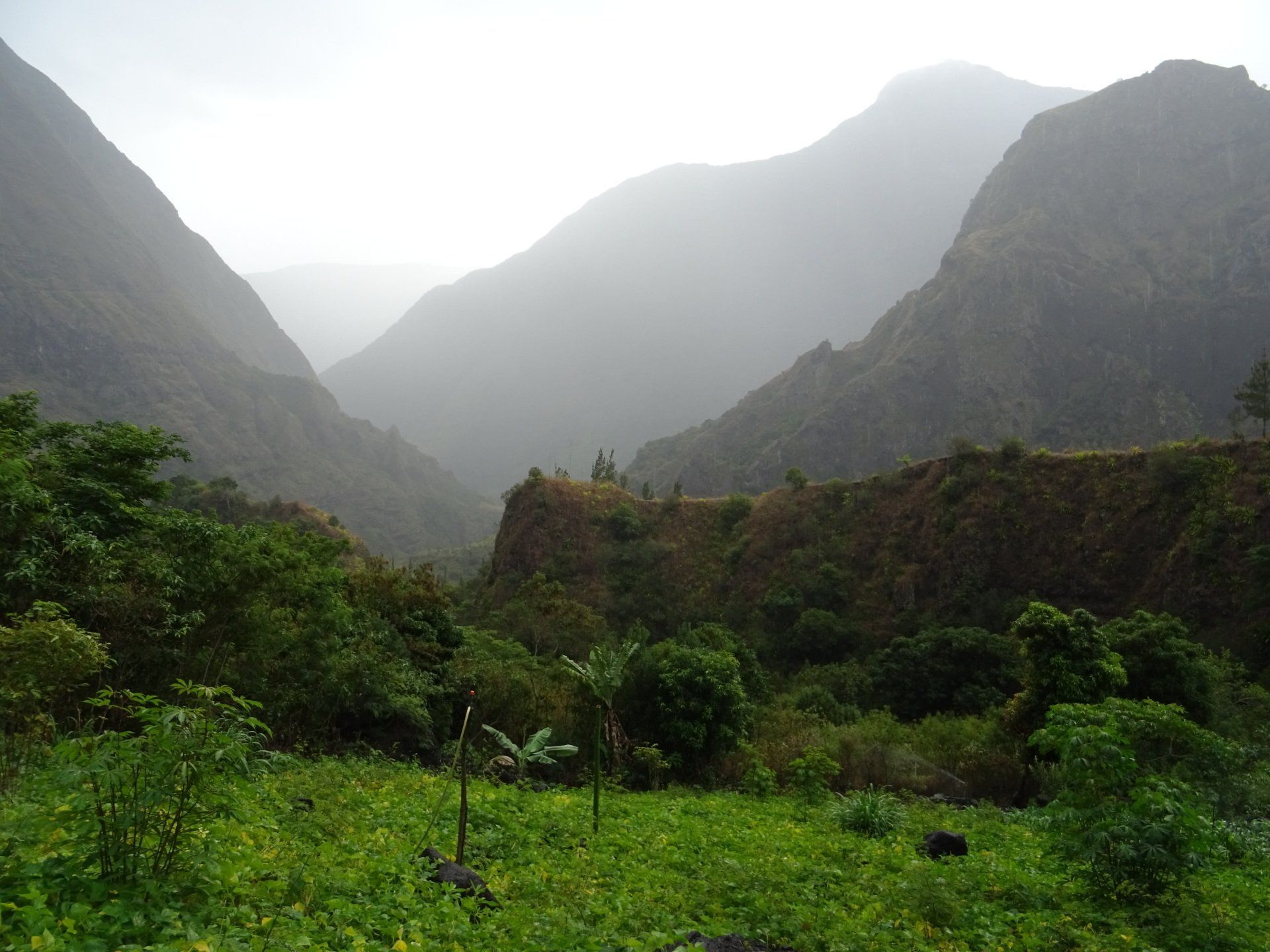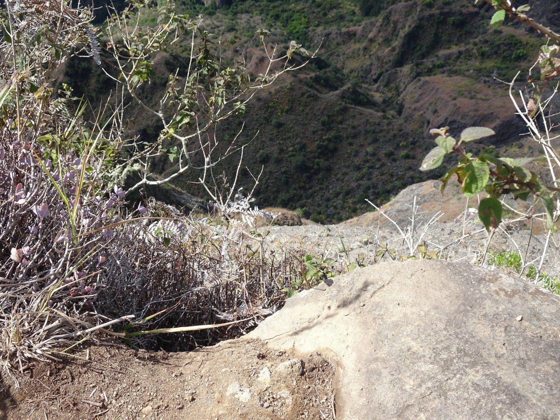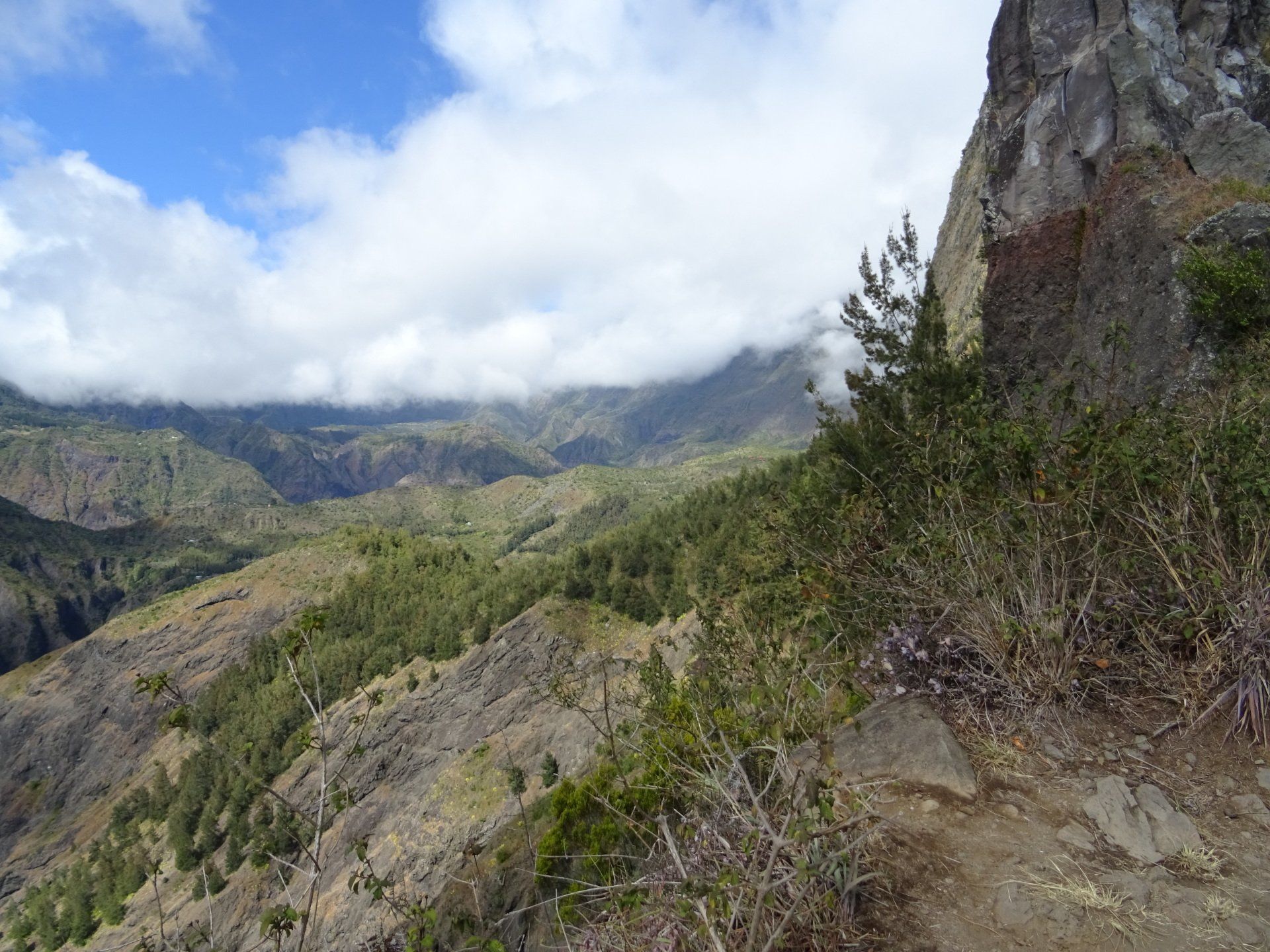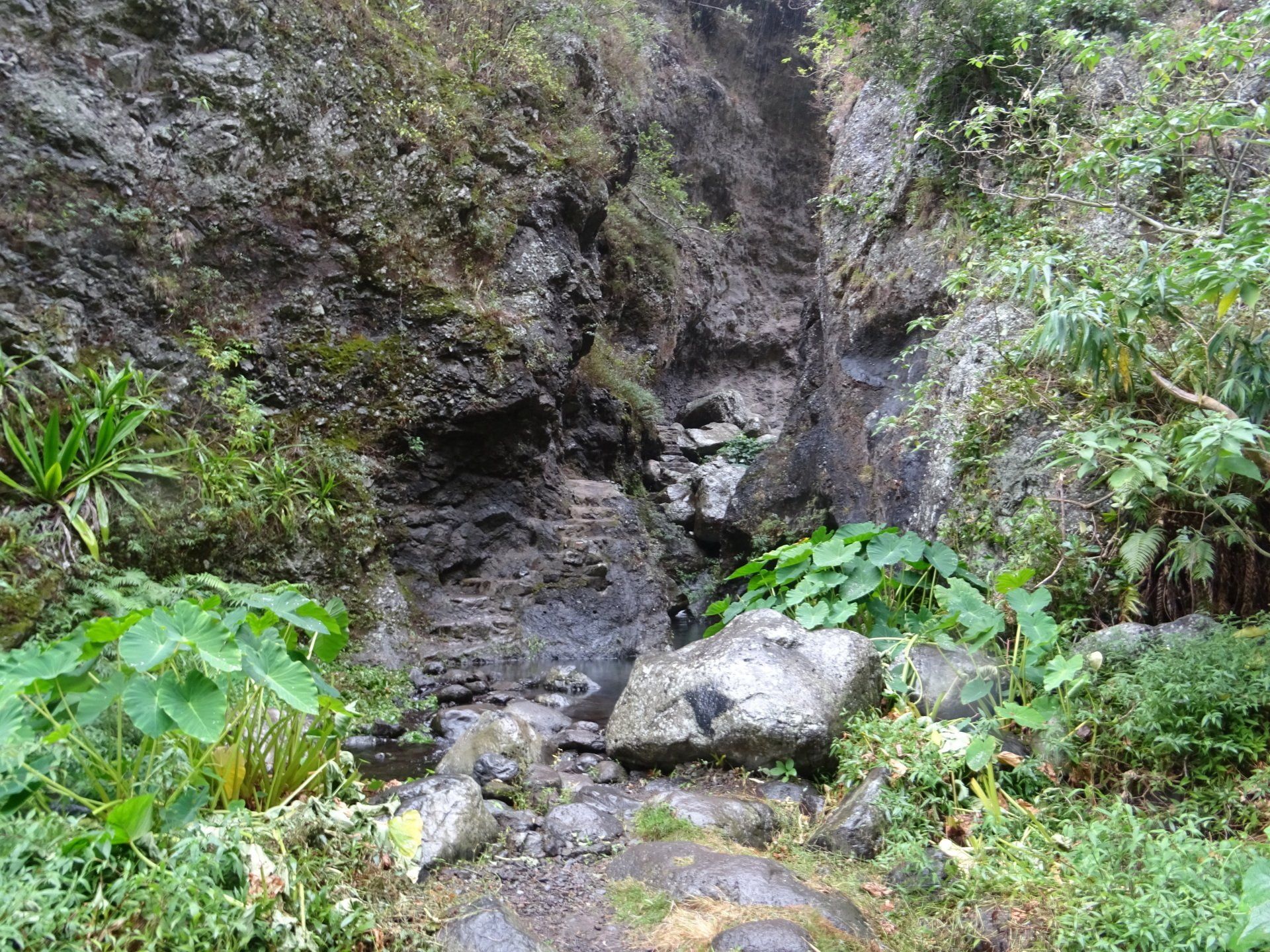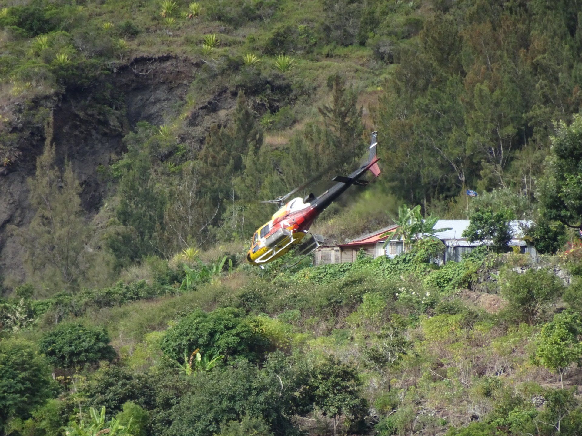 L’hélico doit passer aujourd’hui mais fin de matinée. Nous serons déjà partis. Ça serait risqué de l’attendre, grosse journée prévue. Parmi les 3 itinéraires, nous avons choisi le plus long, par l’îlet des orangers et la brèche. Nous partons juste avant le départ des enfants à l’école. Les muscles s’habituent, les douleurs sont moins présentes.