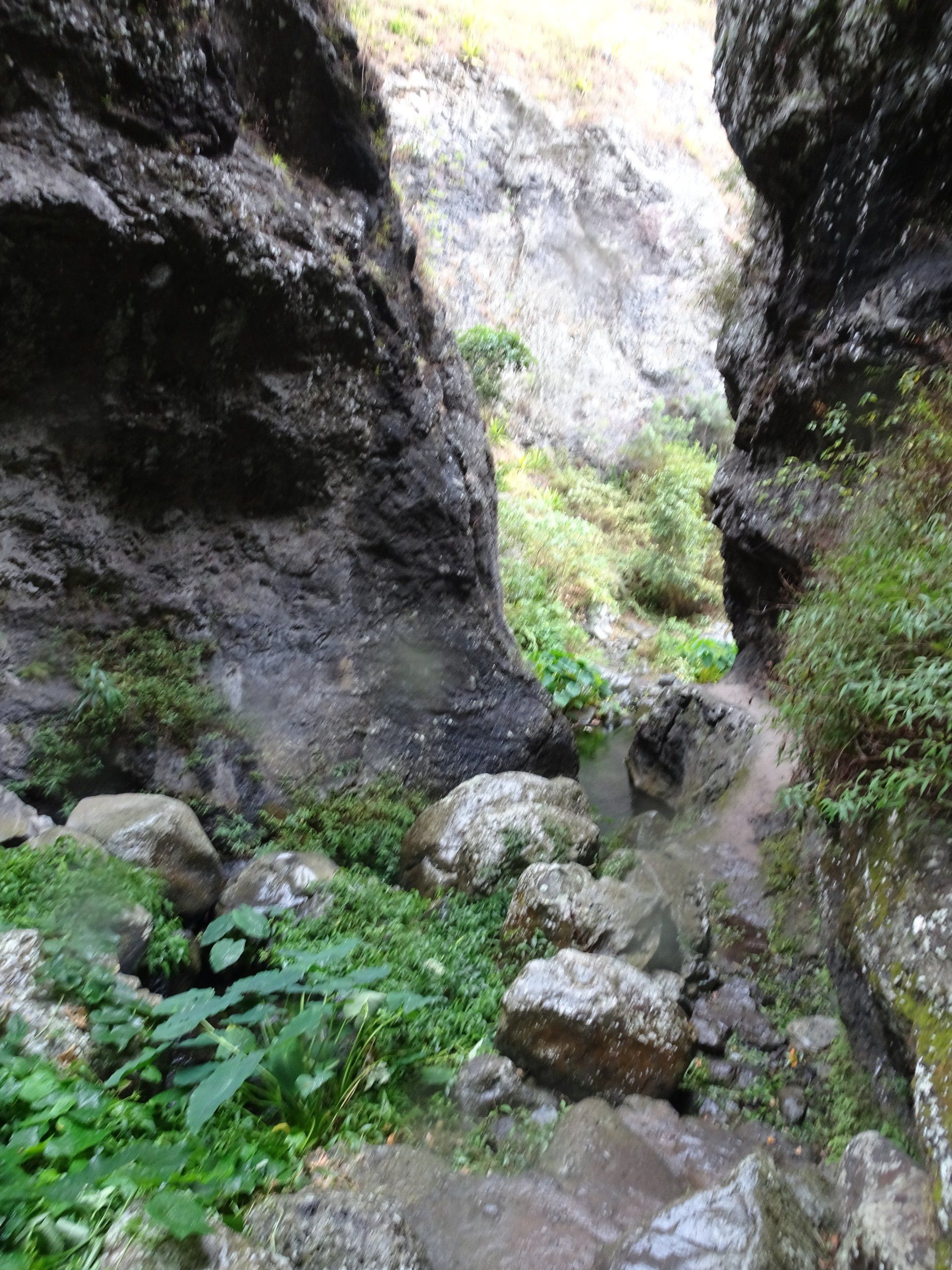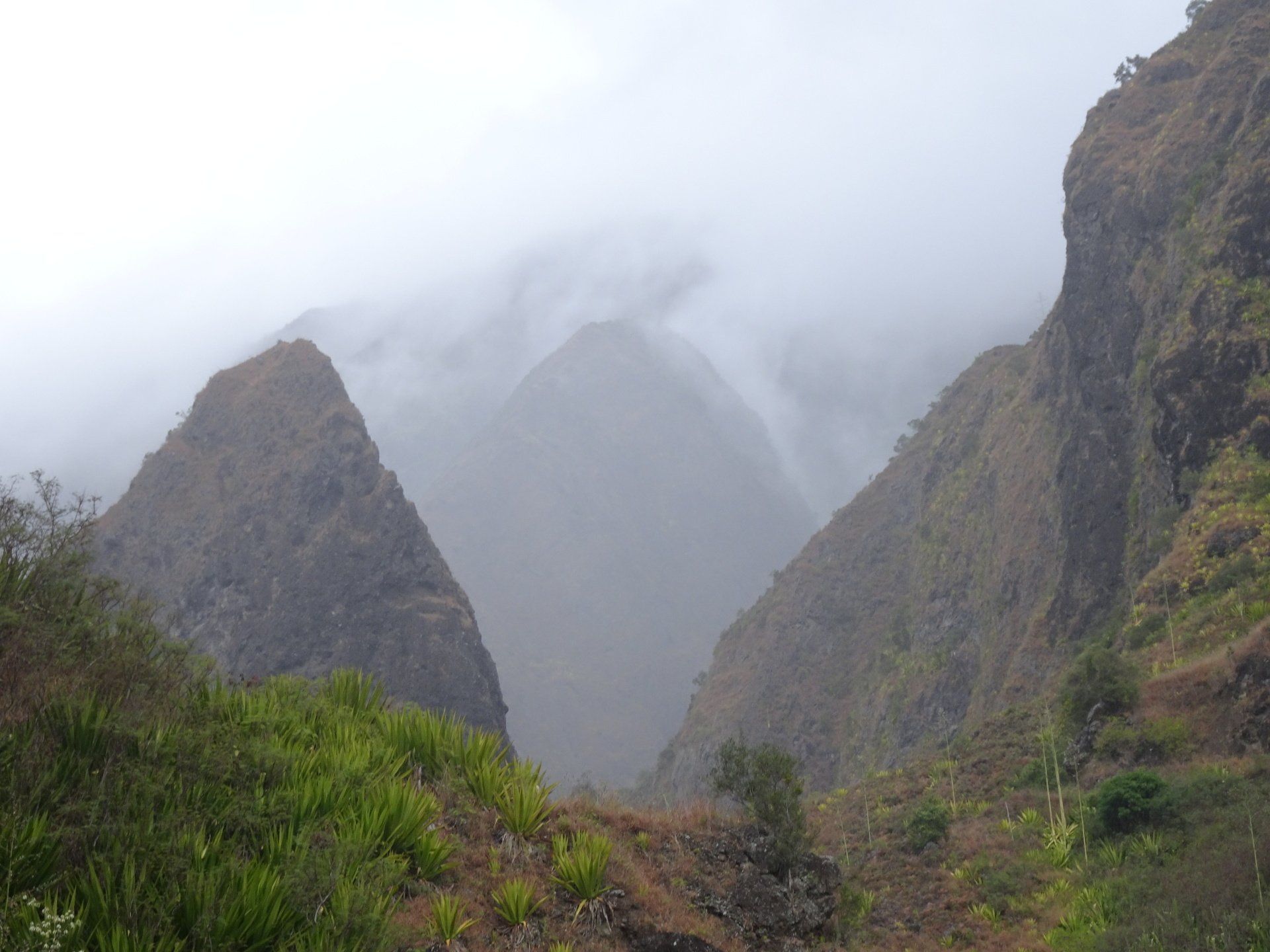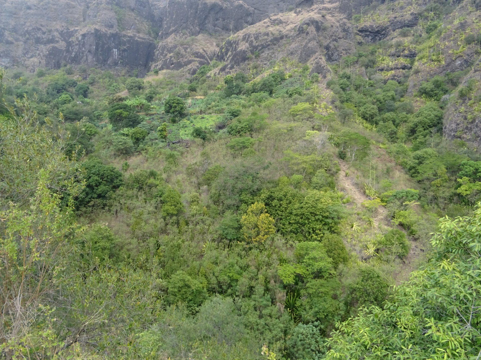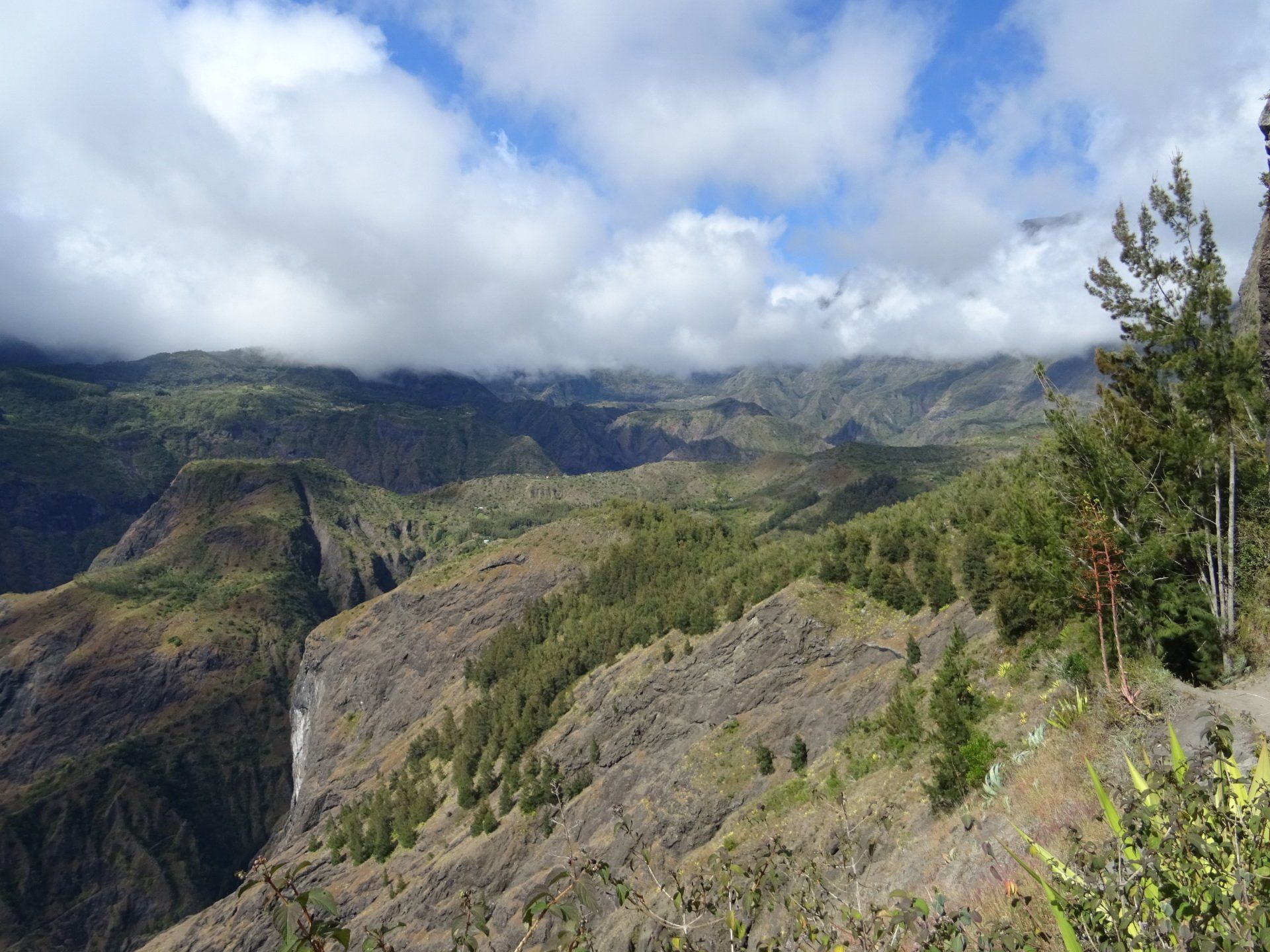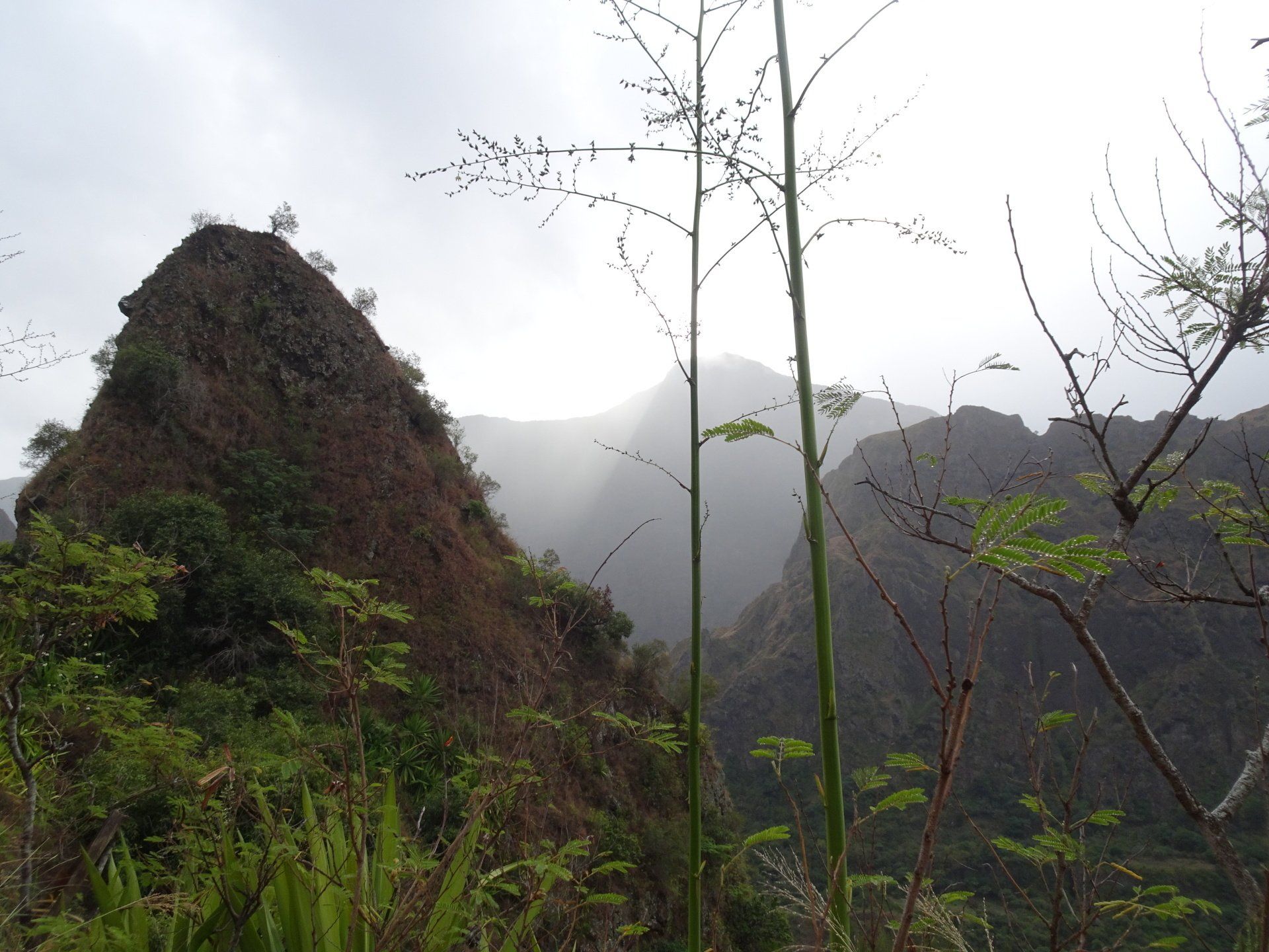 L’hélico doit passer aujourd’hui mais fin de matinée. Nous serons déjà partis. Ça serait risqué de l’attendre, grosse journée prévue. Parmi les 3 itinéraires, nous avons choisi le plus long, par l’îlet des orangers et la brèche. Nous partons juste avant le départ des enfants à l’école. Les muscles s’habituent, les douleurs sont moins présentes.