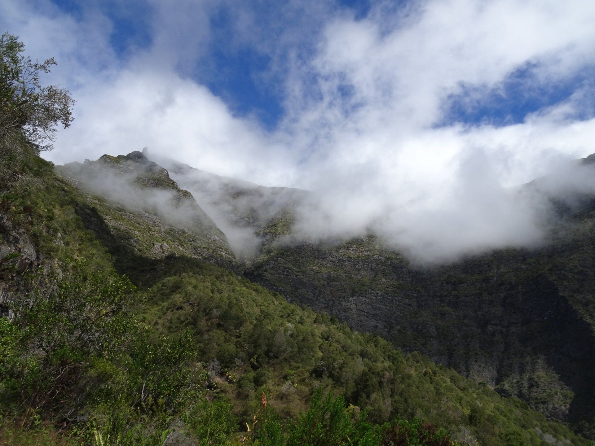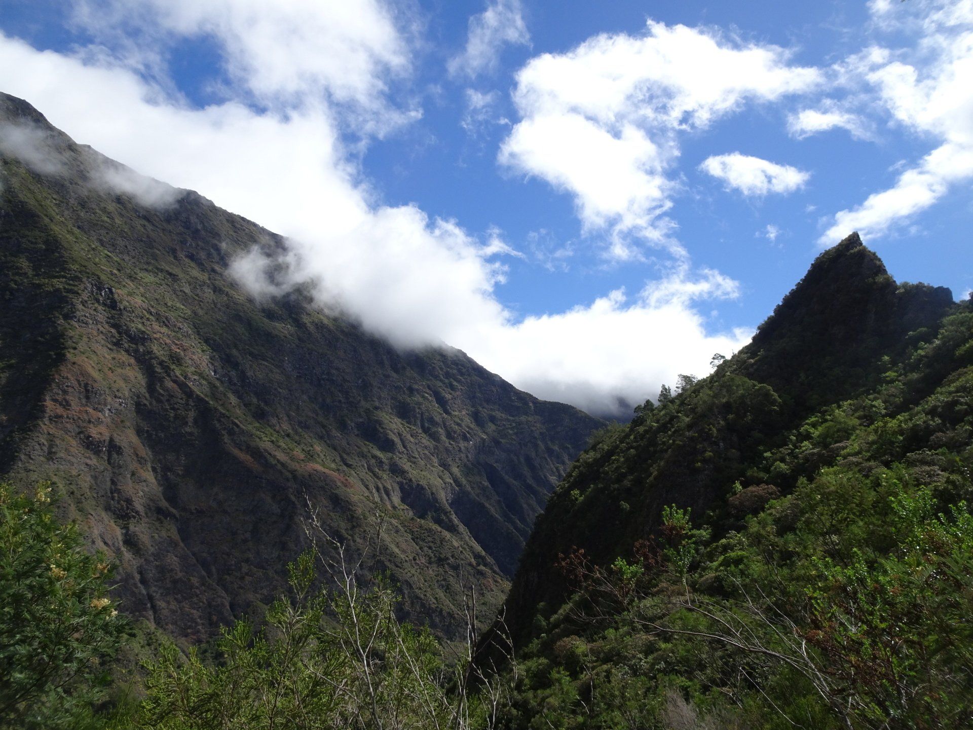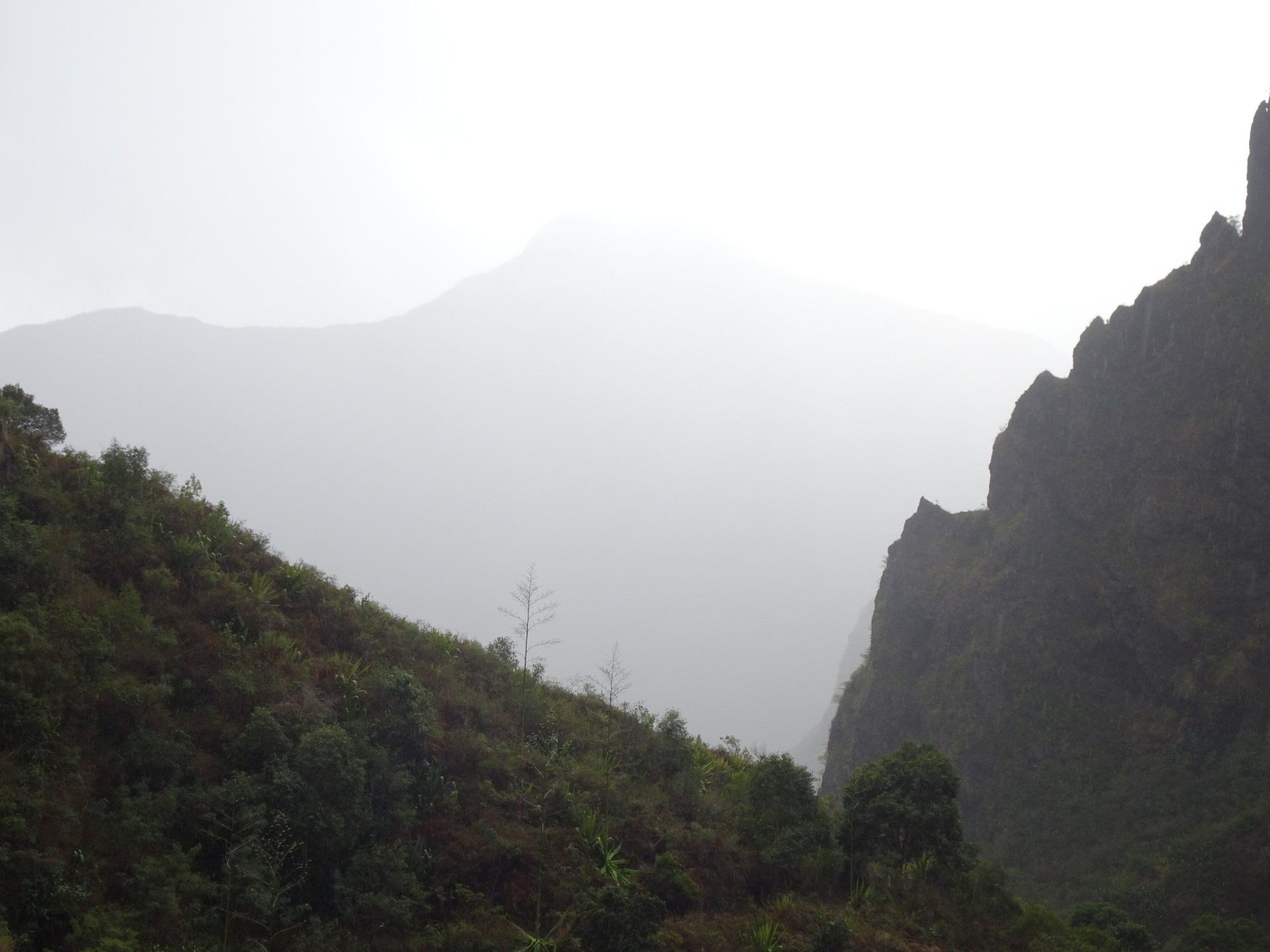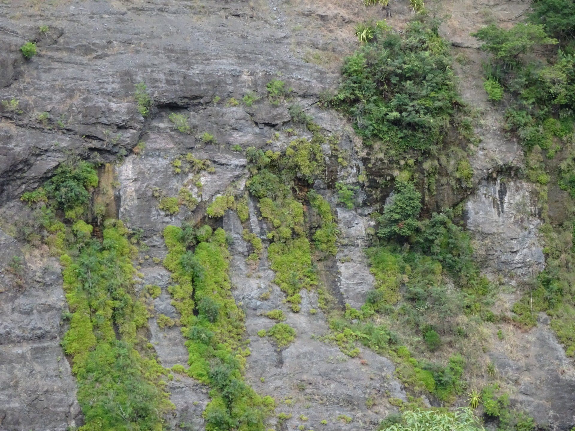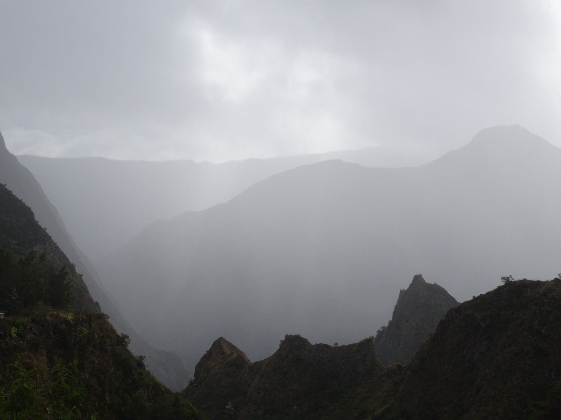L’hélico doit passer aujourd’hui mais fin de matinée. Nous serons déjà partis. Ça serait risqué de l’attendre, grosse journée prévue. Parmi les 3 itinéraires, nous avons choisi le plus long, par l’îlet des orangers et la brèche. Nous partons juste avant le départ des enfants à l’école. Les muscles s’habituent, les douleurs sont moins présentes.