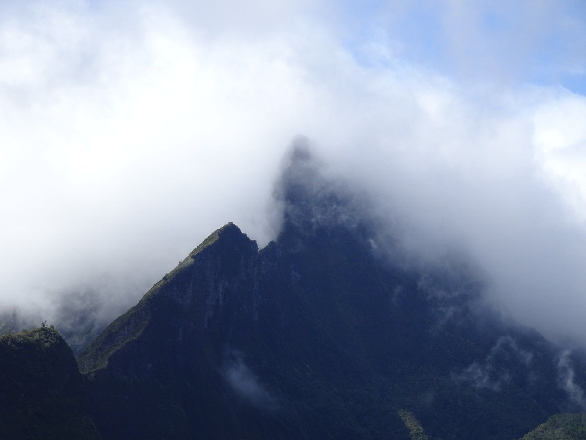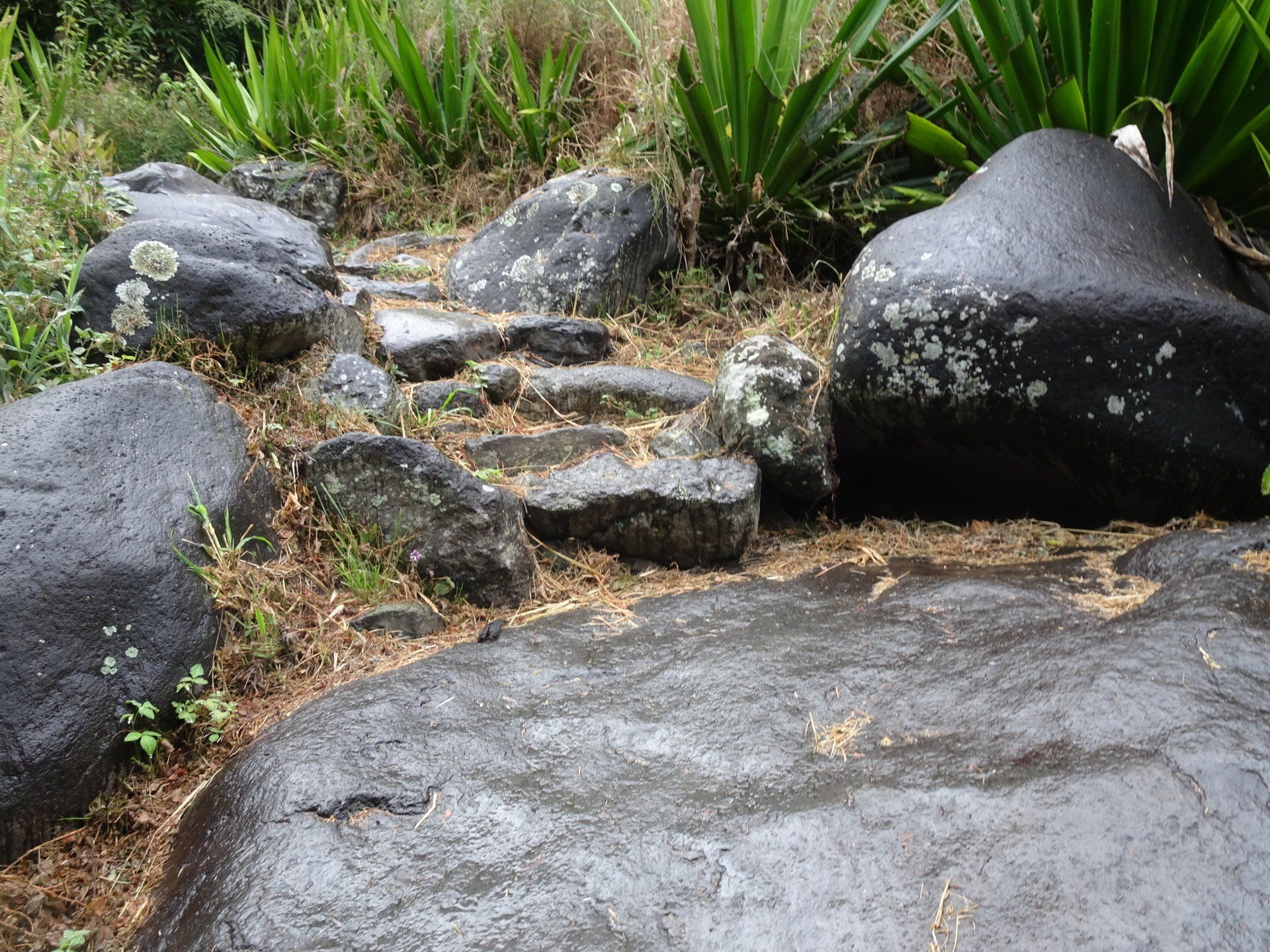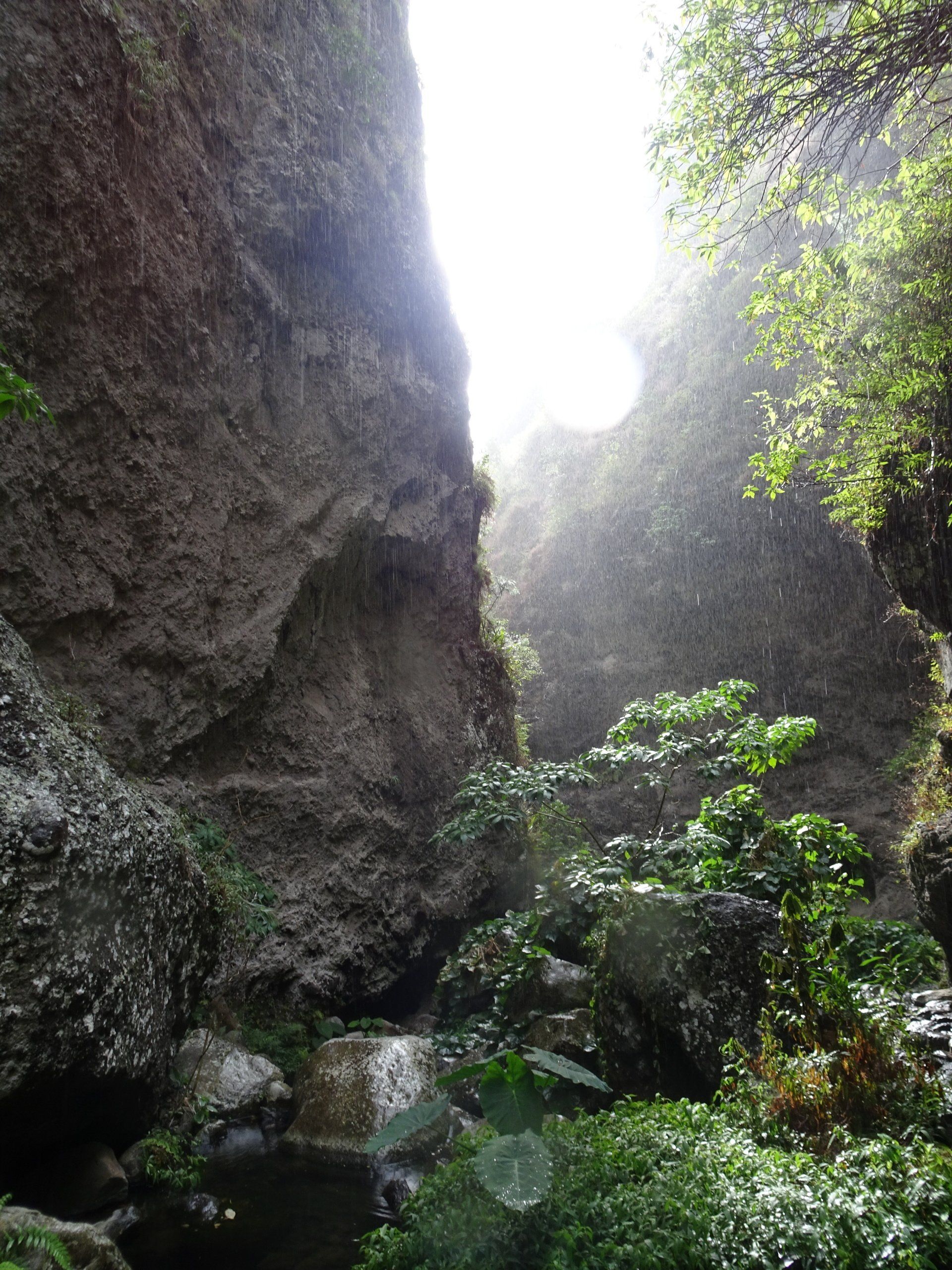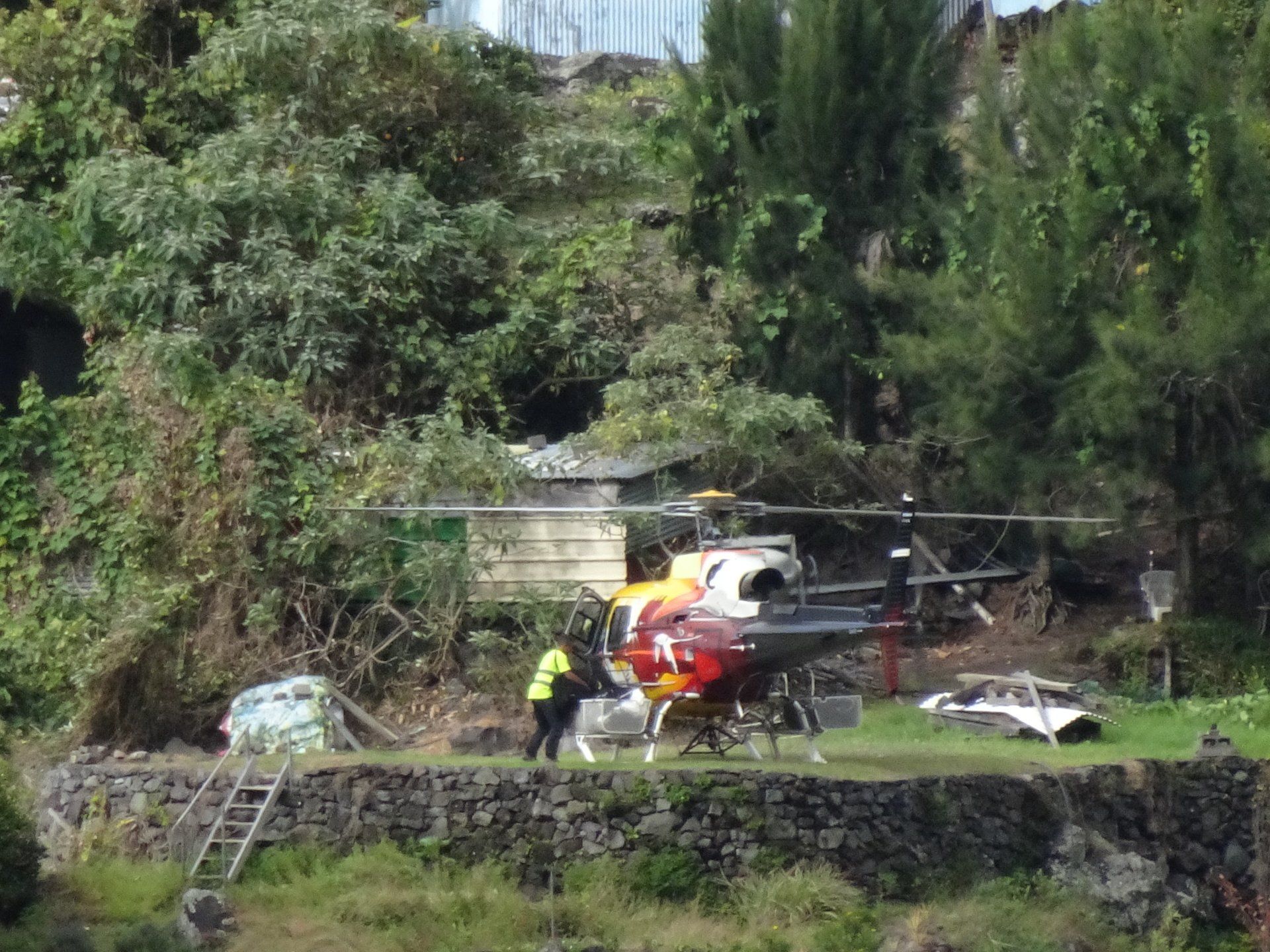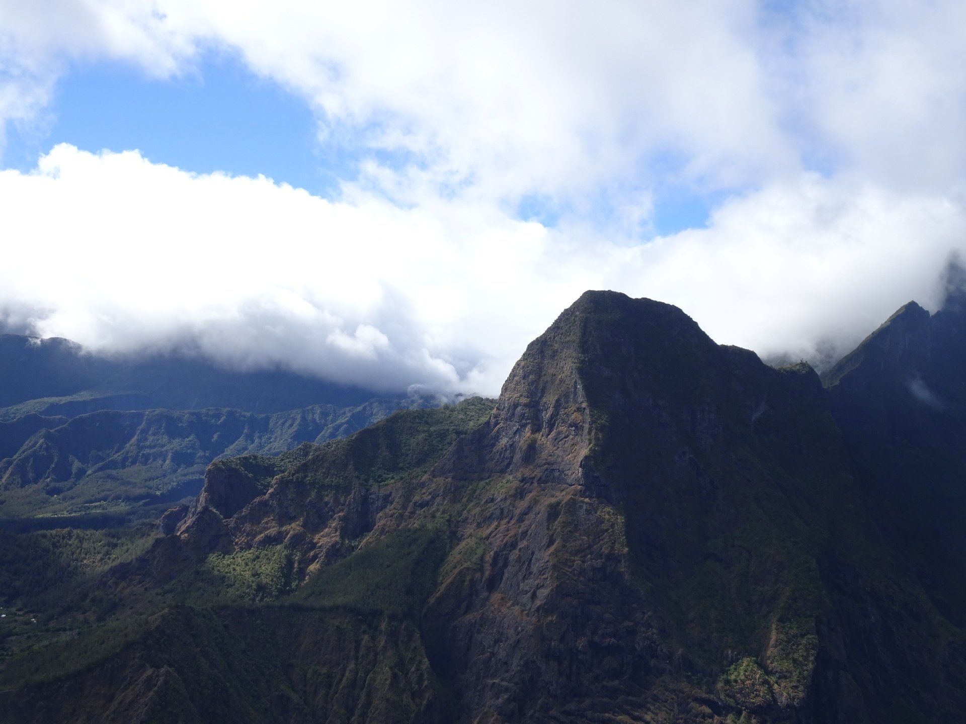 L’hélico doit passer aujourd’hui mais fin de matinée. Nous serons déjà partis. Ça serait risqué de l’attendre, grosse journée prévue. Parmi les 3 itinéraires, nous avons choisi le plus long, par l’îlet des orangers et la brèche. Nous partons juste avant le départ des enfants à l’école. Les muscles s’habituent, les douleurs sont moins présentes.
