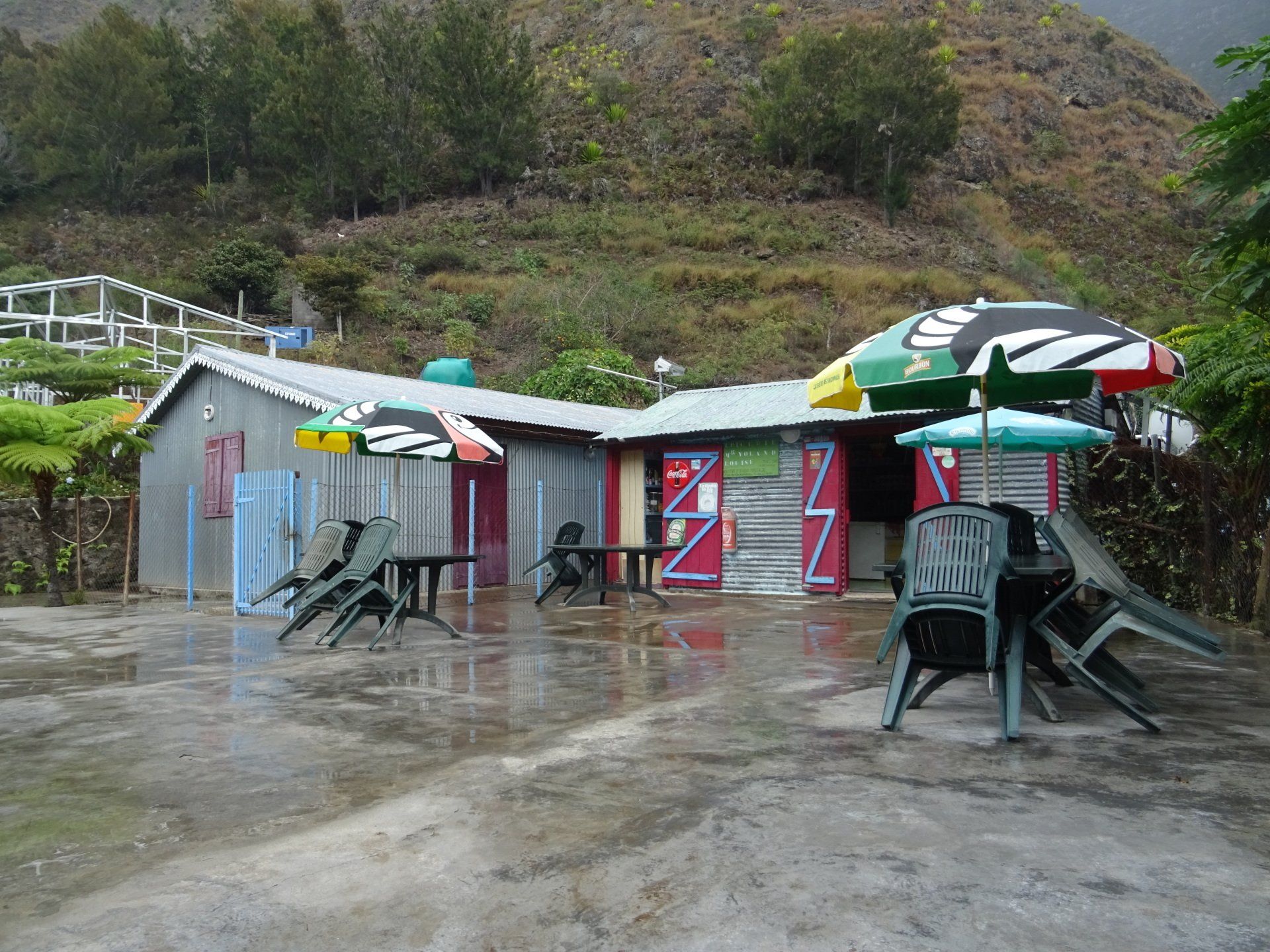 Vrai réveil à 6h30 pour retrouver les poules et le coq tous perchés dans un des arbres du gîte. Nous déjeunons avec Laurent et Elsa, les 2 toulousains partent plus tard. Pain, confiture de goyave, banane, papaye, thé, café, beurre, beurre salé. 2 repas + p’tit déj = 42€.