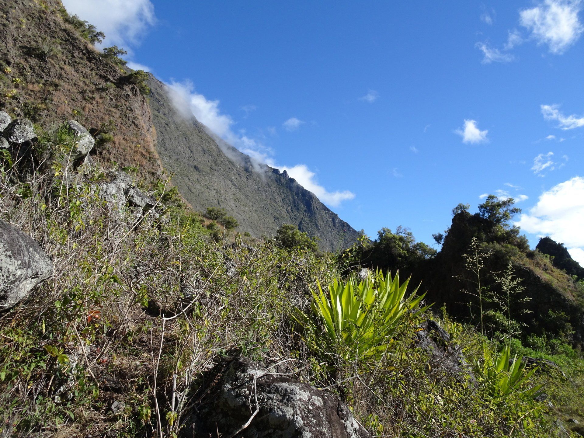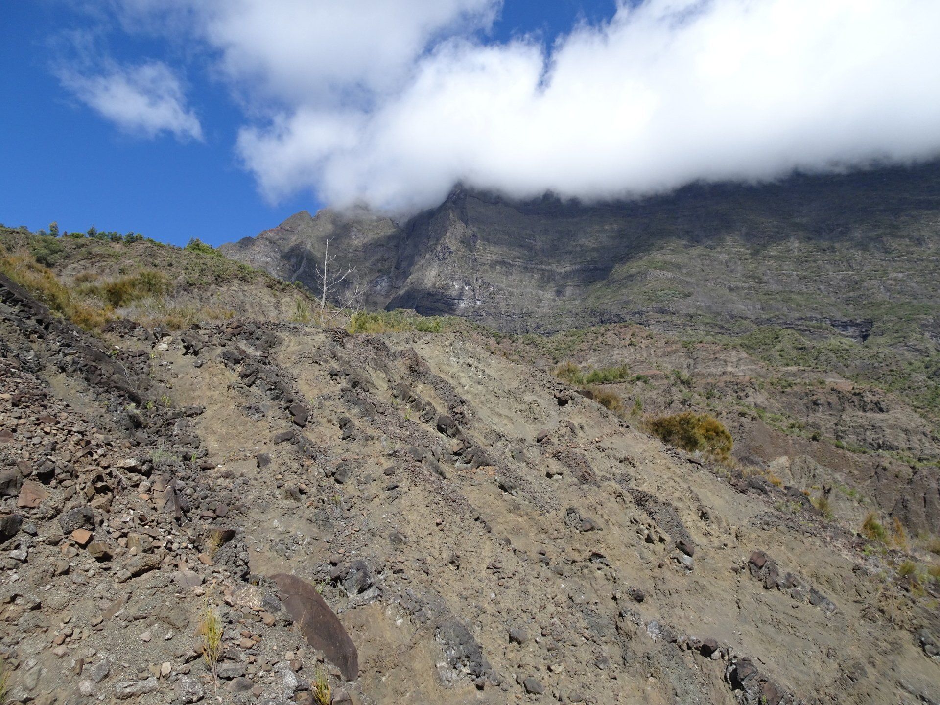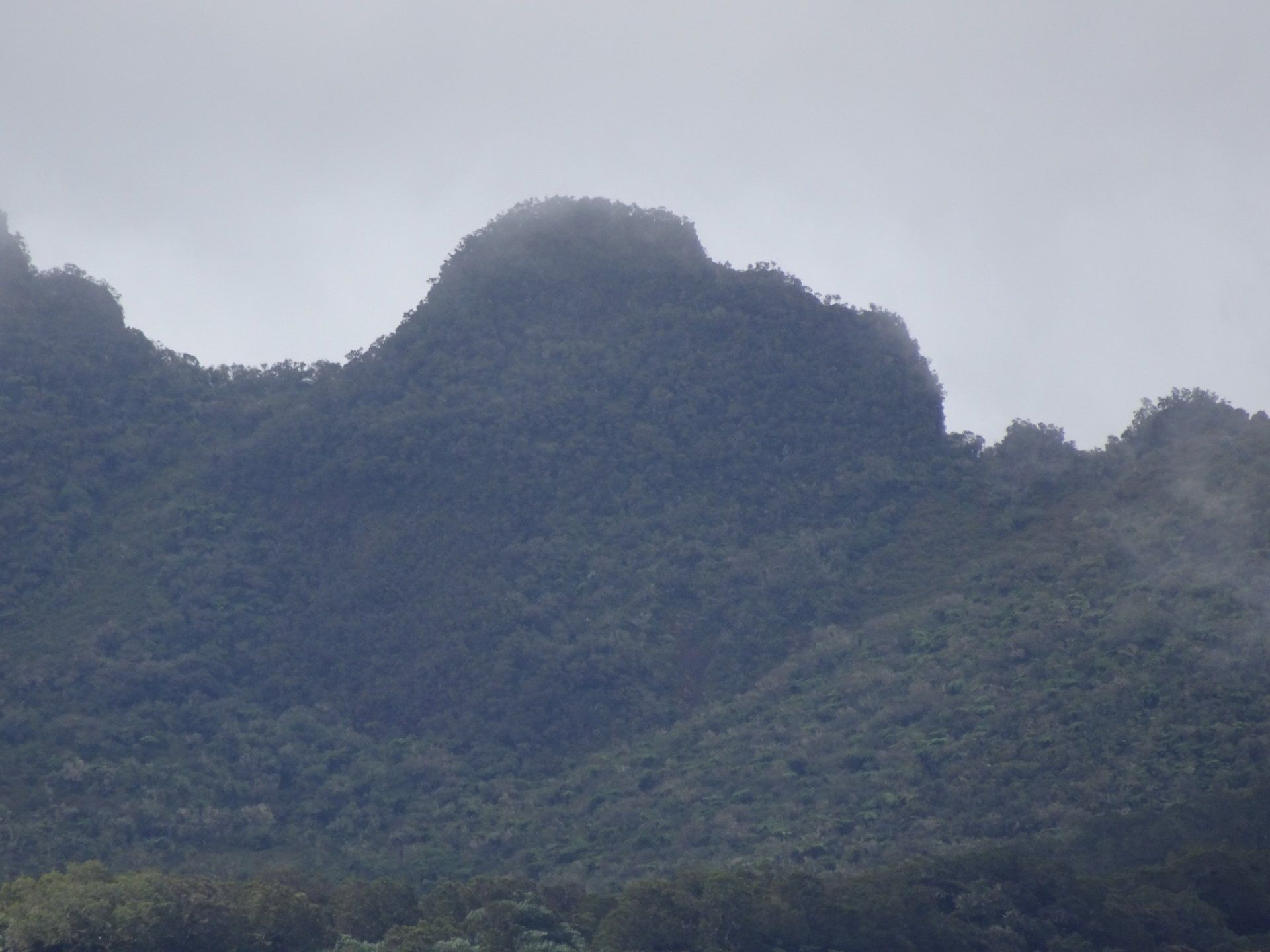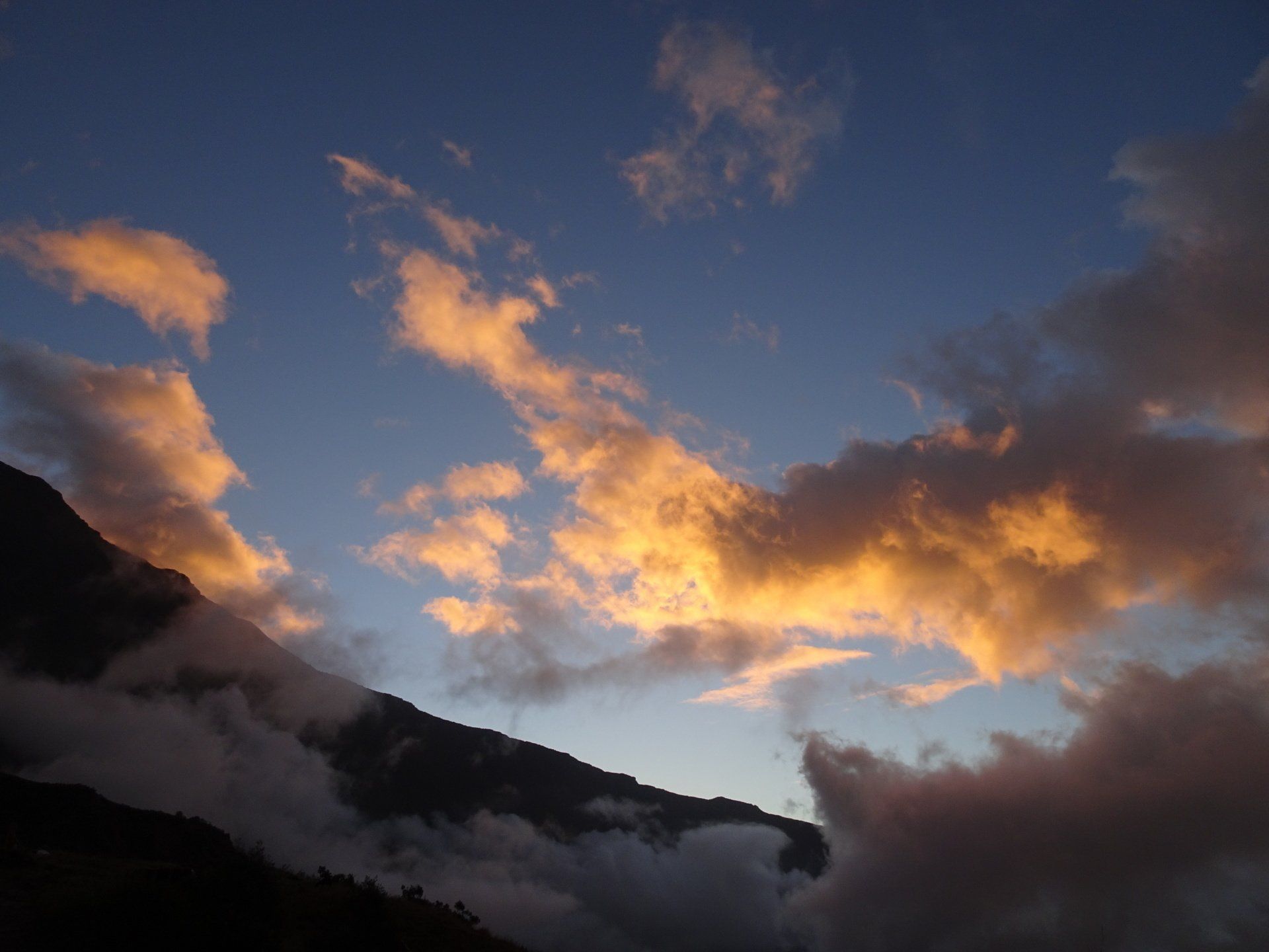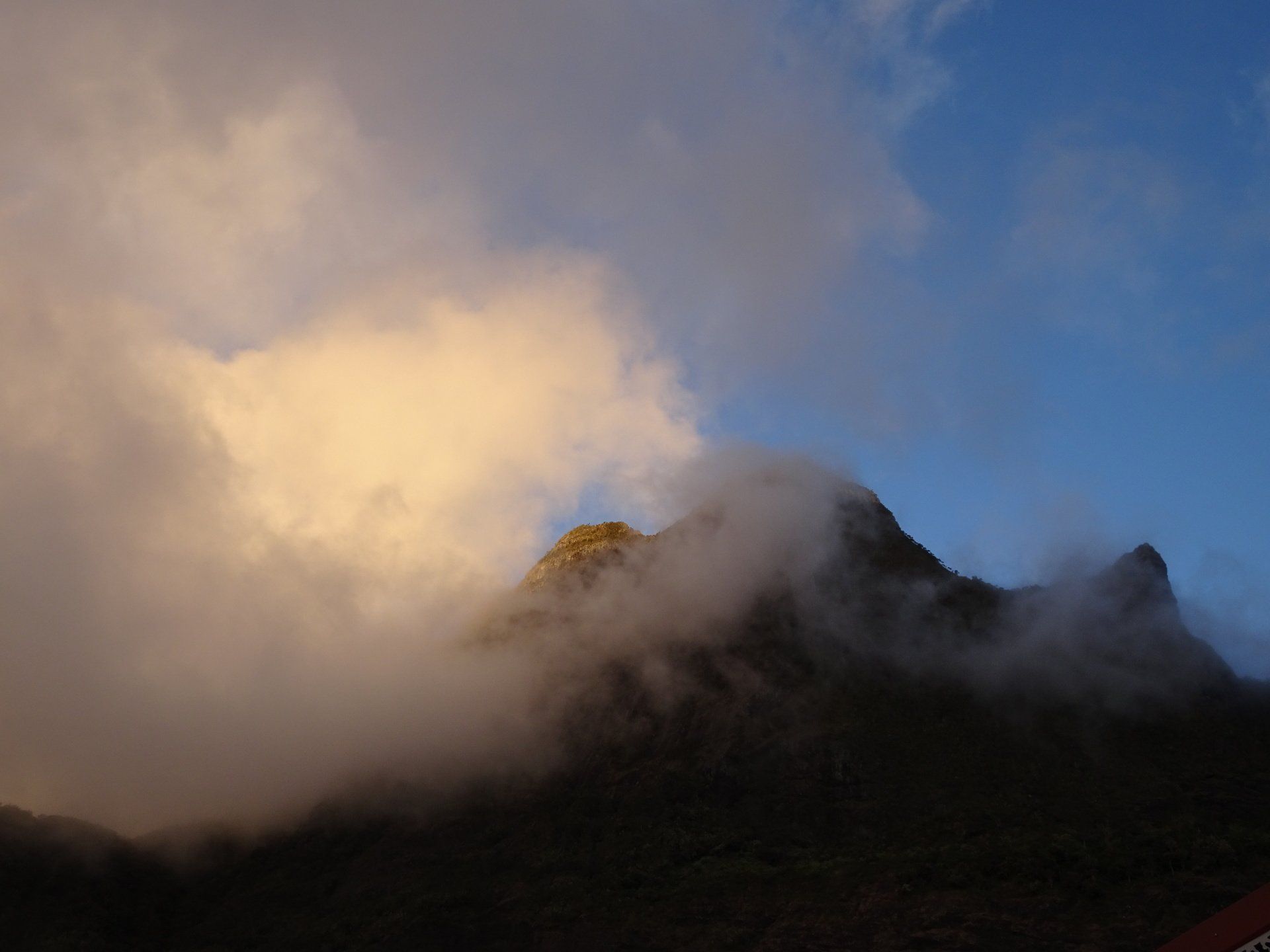 Nous aurons quelques gouttes au départ mais finalement, les sur-sacs ne serviront pas vraiment. Les montées-descentes se font sous un ciel couvert, l’atmosphère est pleine de microgouttes.