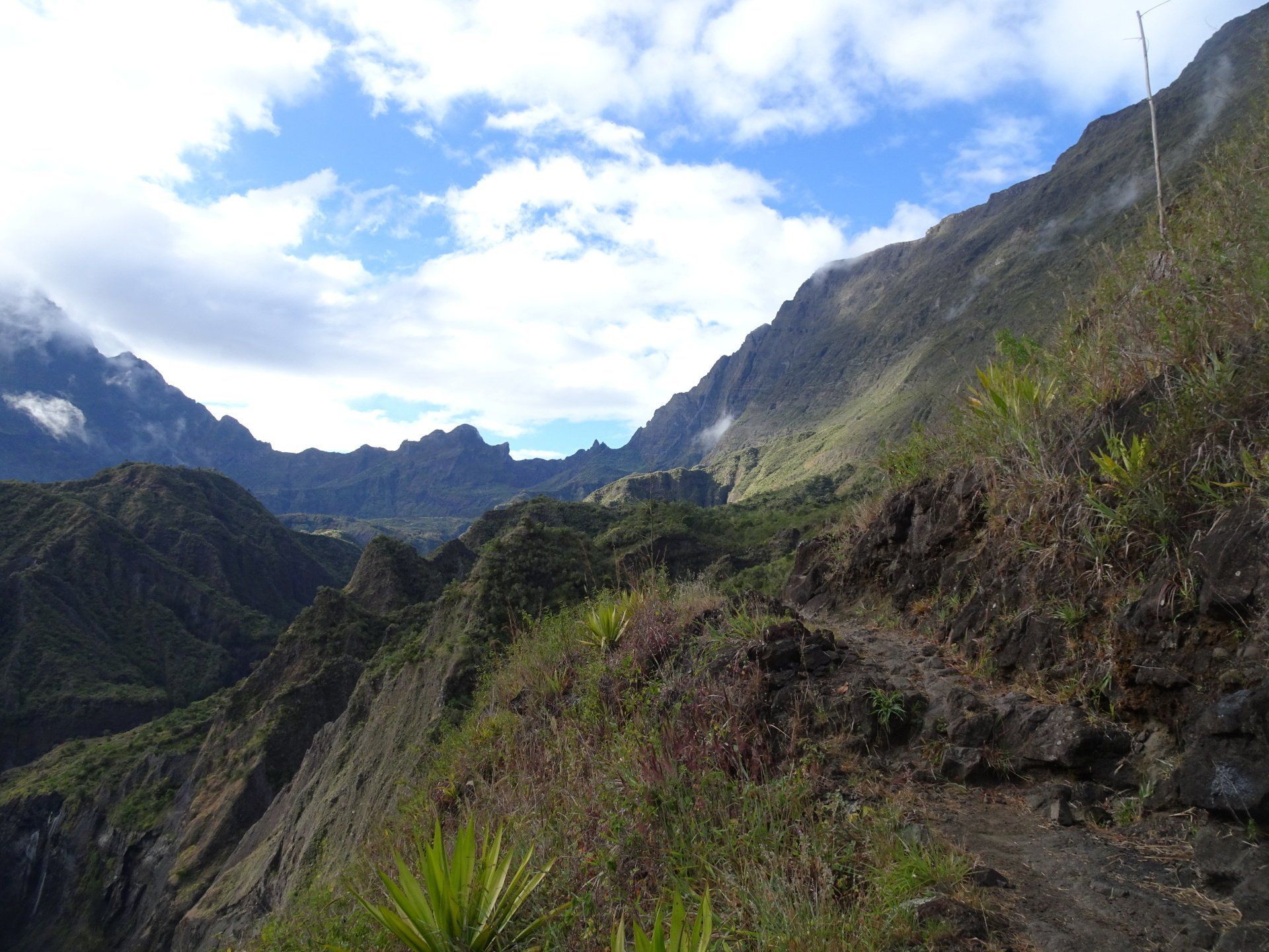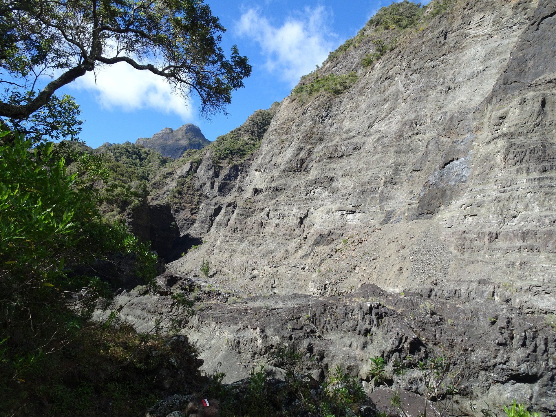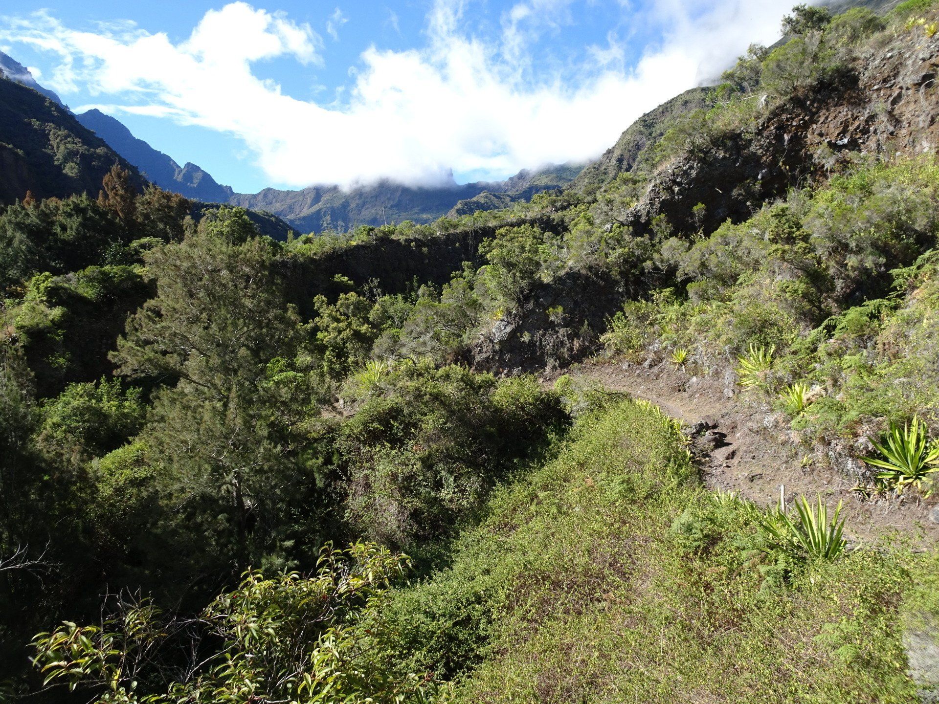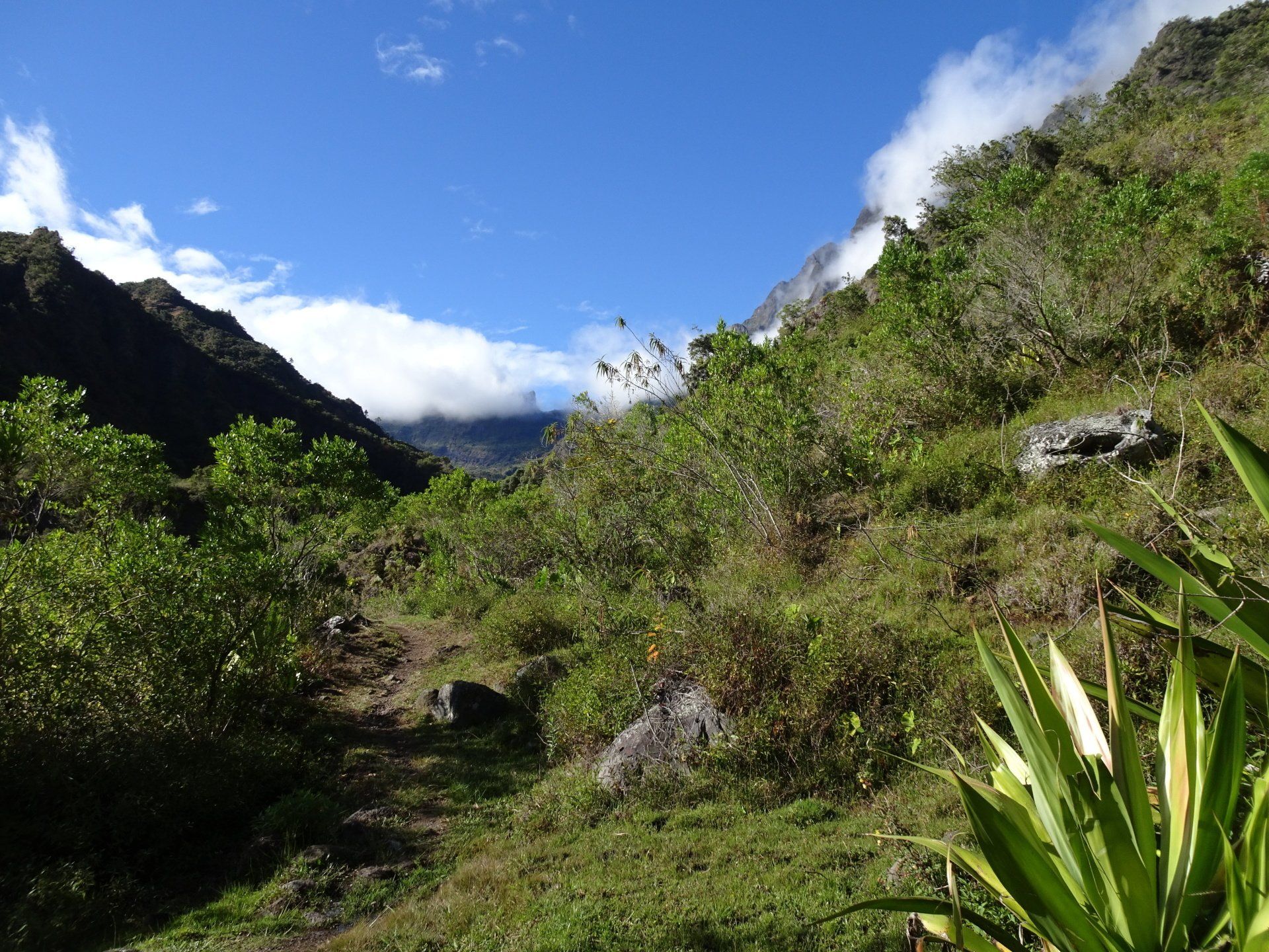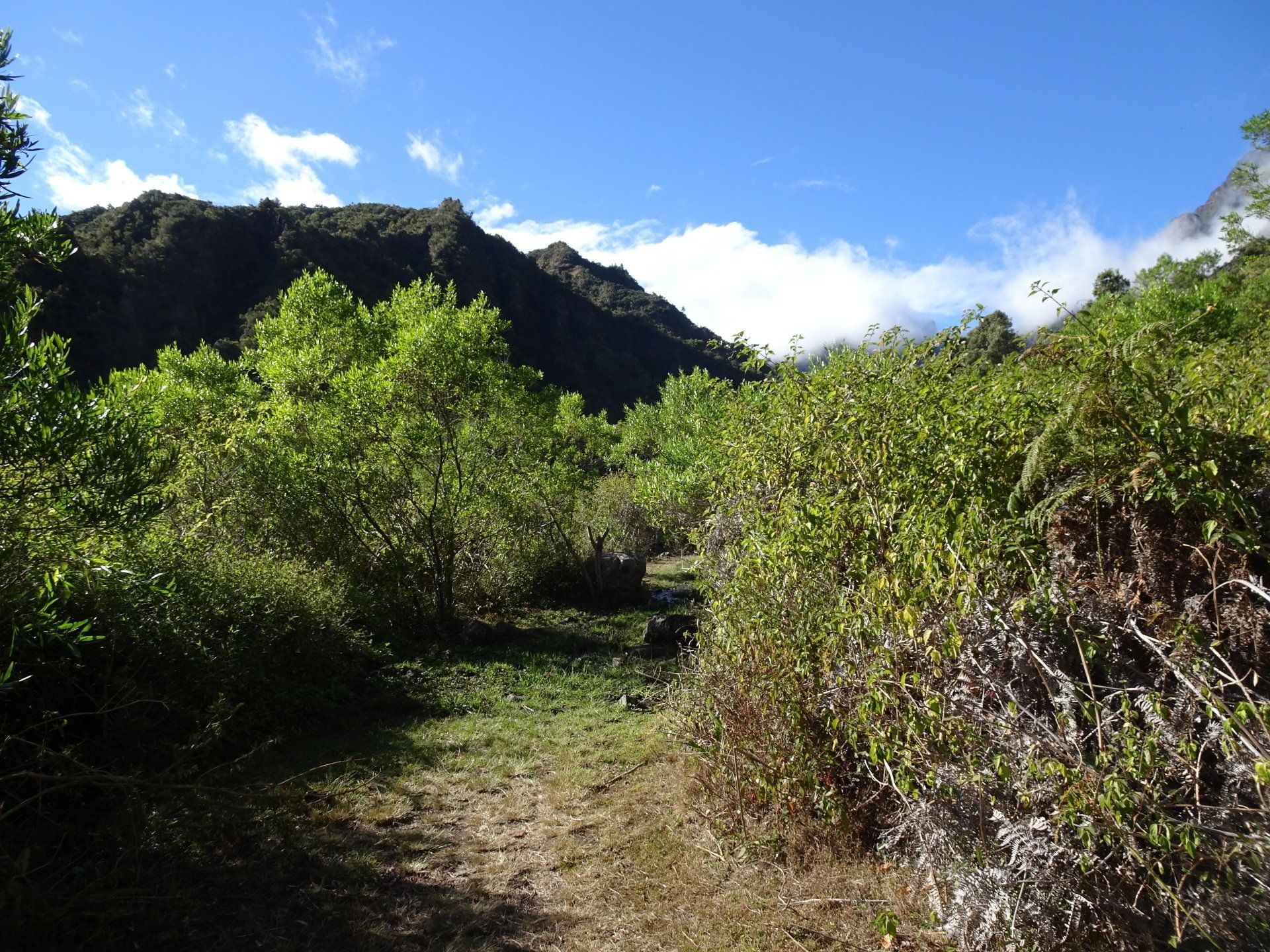 Nous aurons quelques gouttes au départ mais finalement, les sur-sacs ne serviront pas vraiment. Les montées-descentes se font sous un ciel couvert, l’atmosphère est pleine de microgouttes.